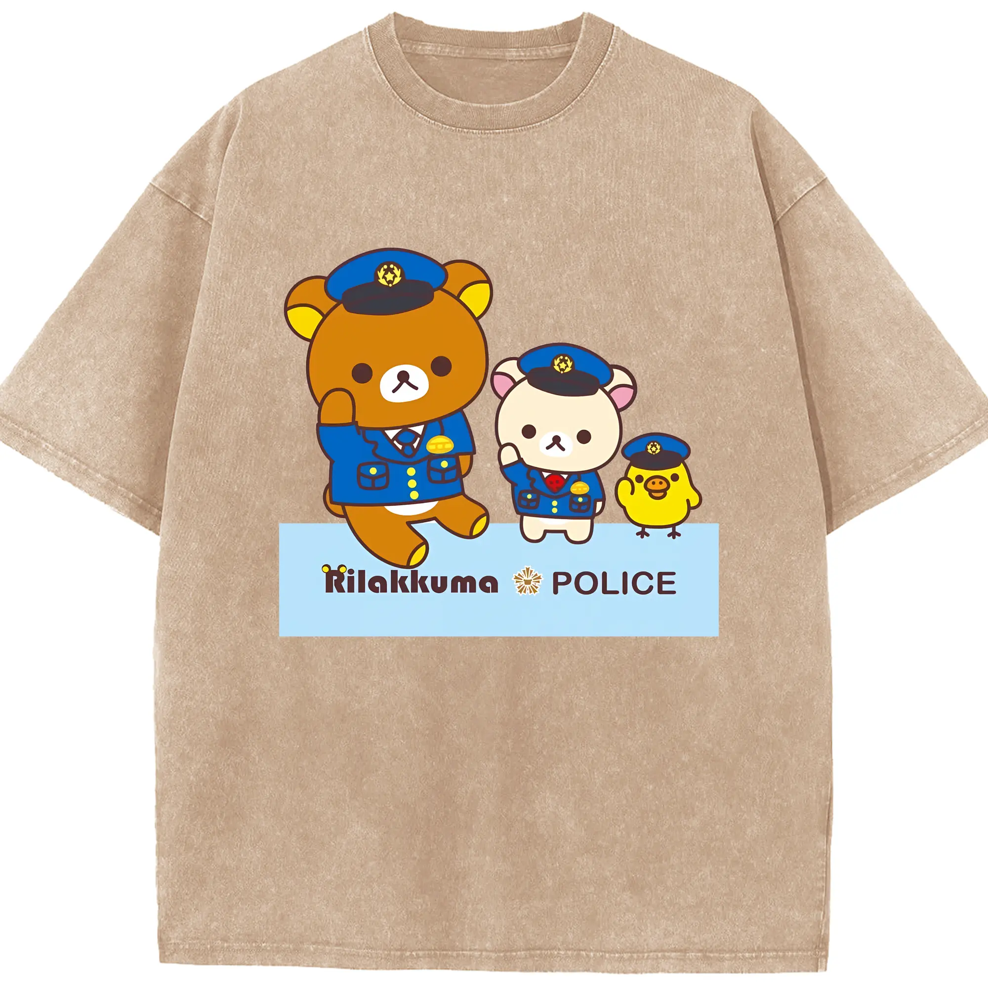 リラックマ (Rilakkuma) グッズ リラックマ (Rilakkuma) - 綿100% ヴィンテージ風 半袖Tシャツ ・ 背面プリント ・ 柔らか肌触り ・ 通気性 快適 ・ スポーツ カジュアル 外出用