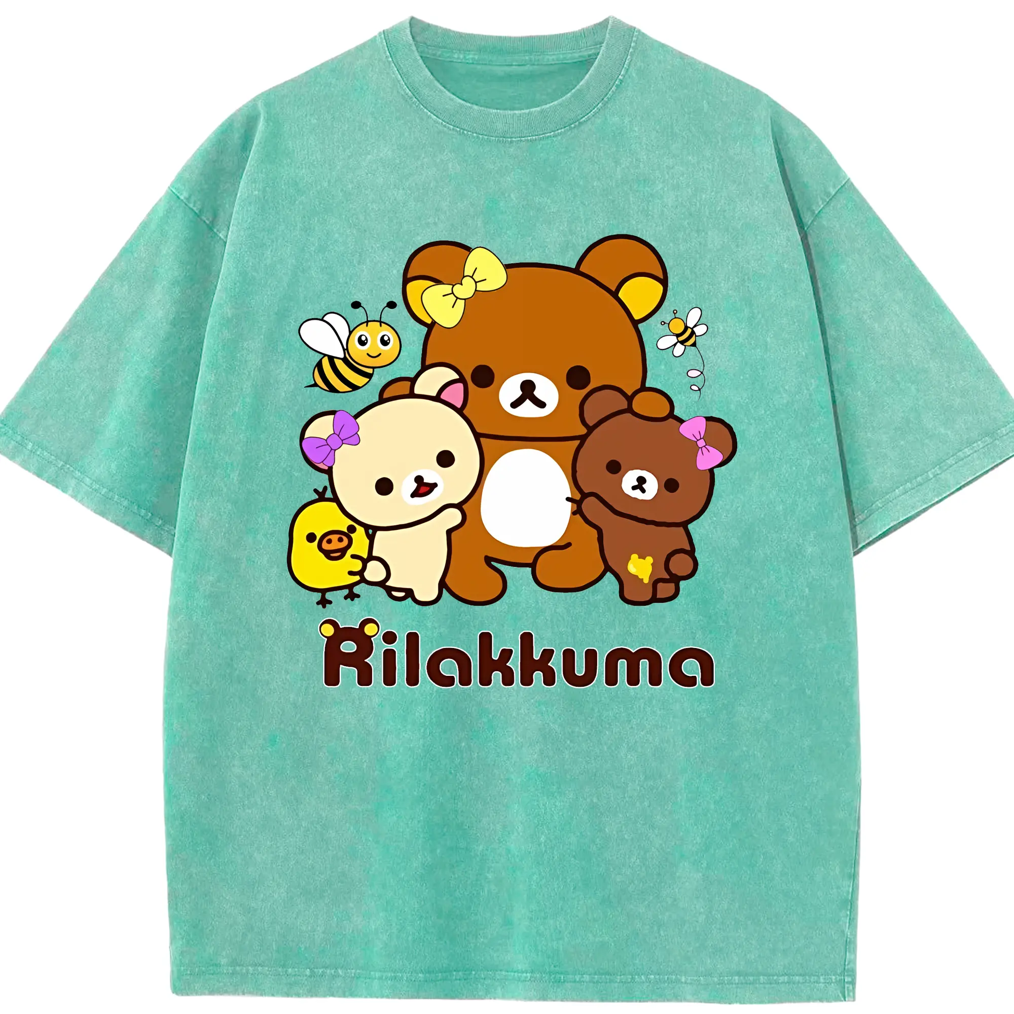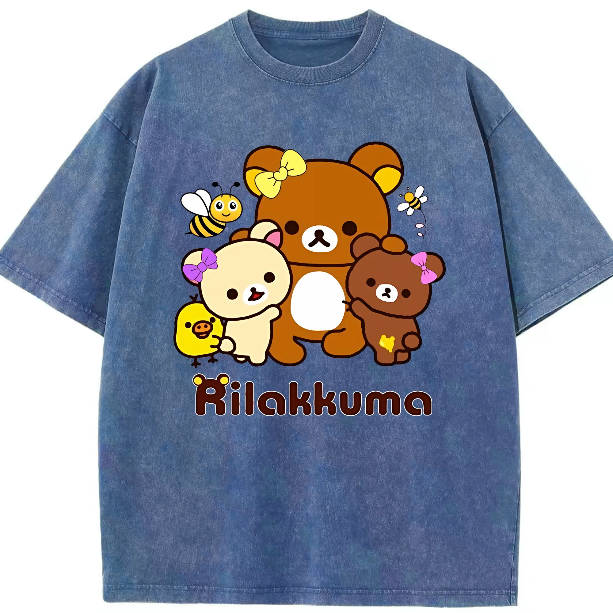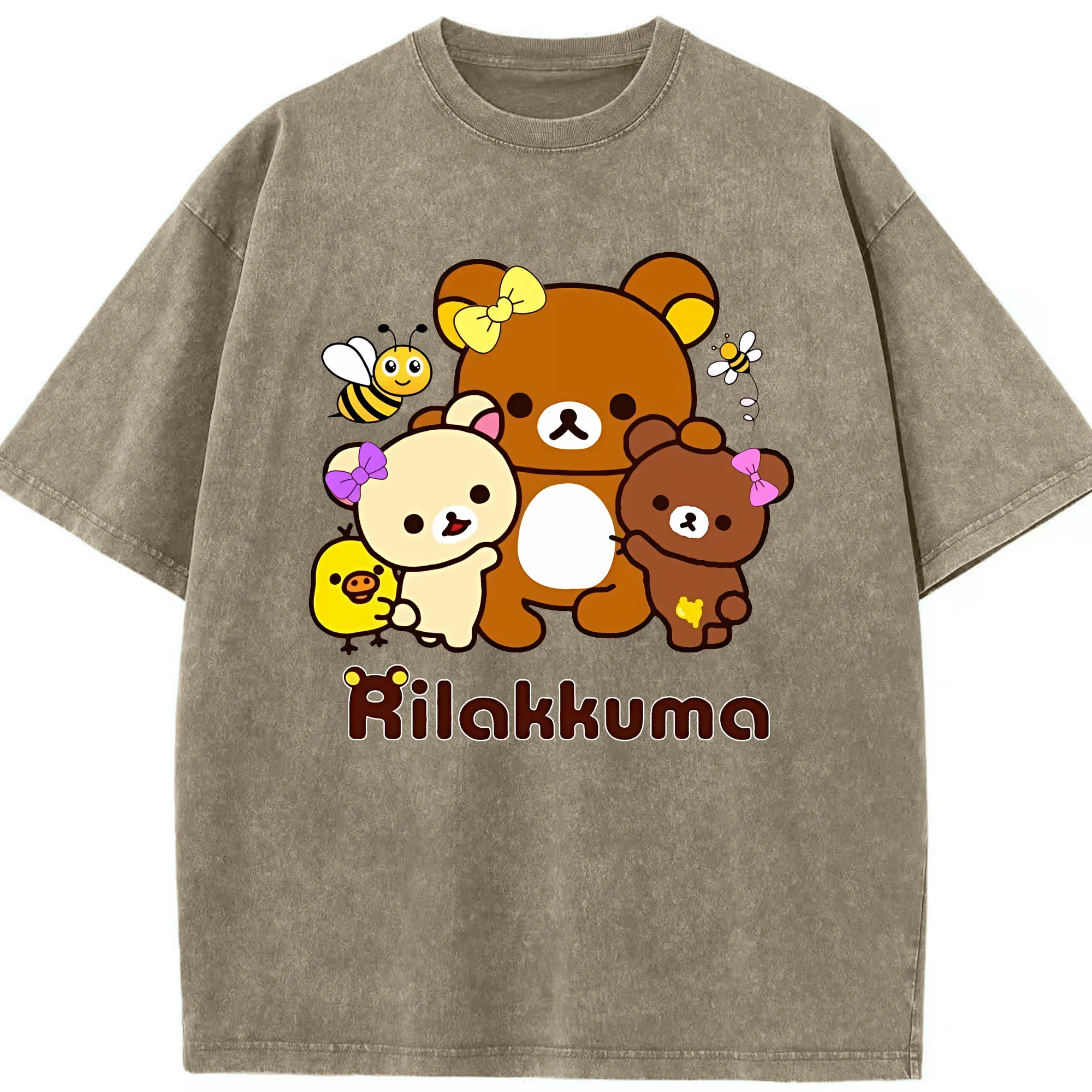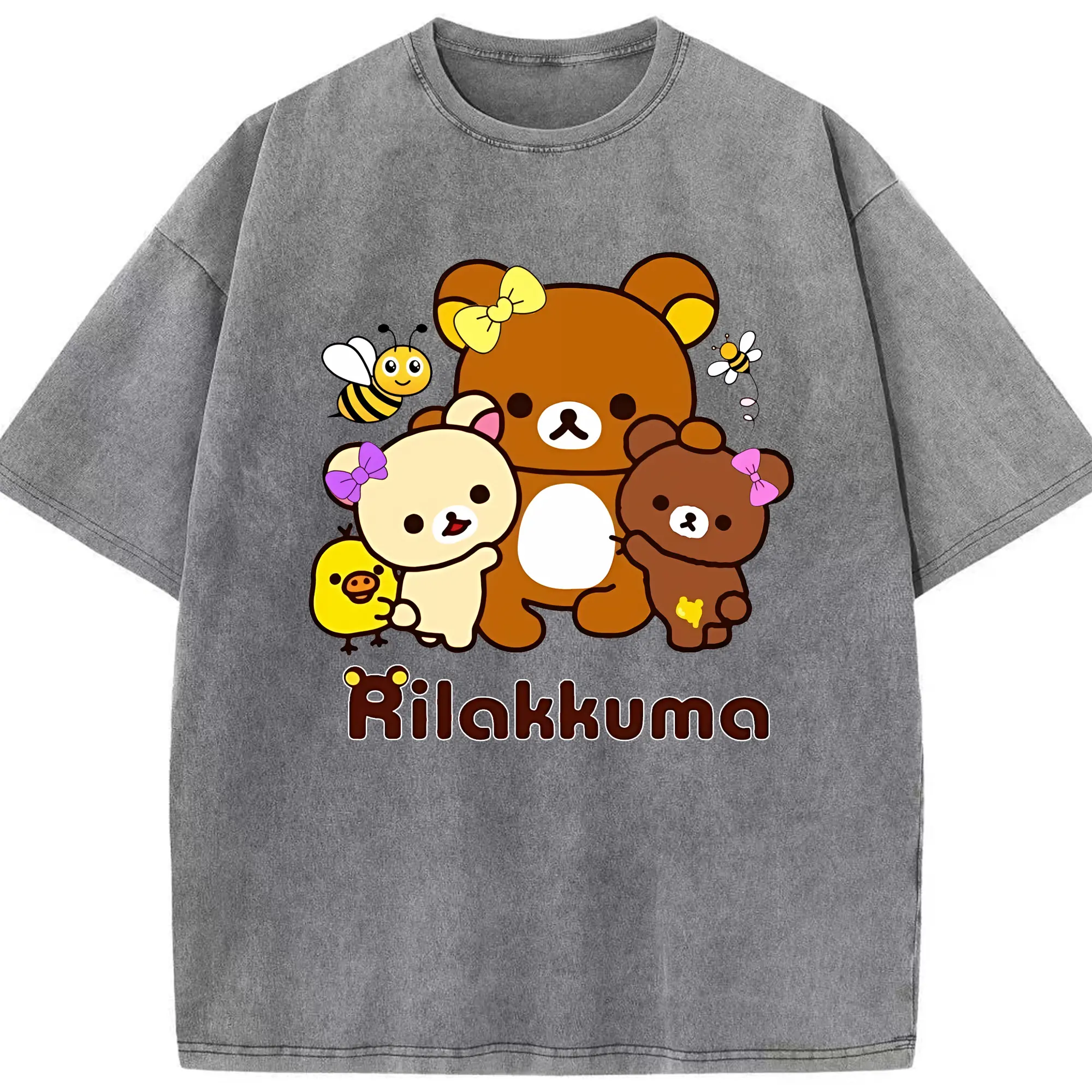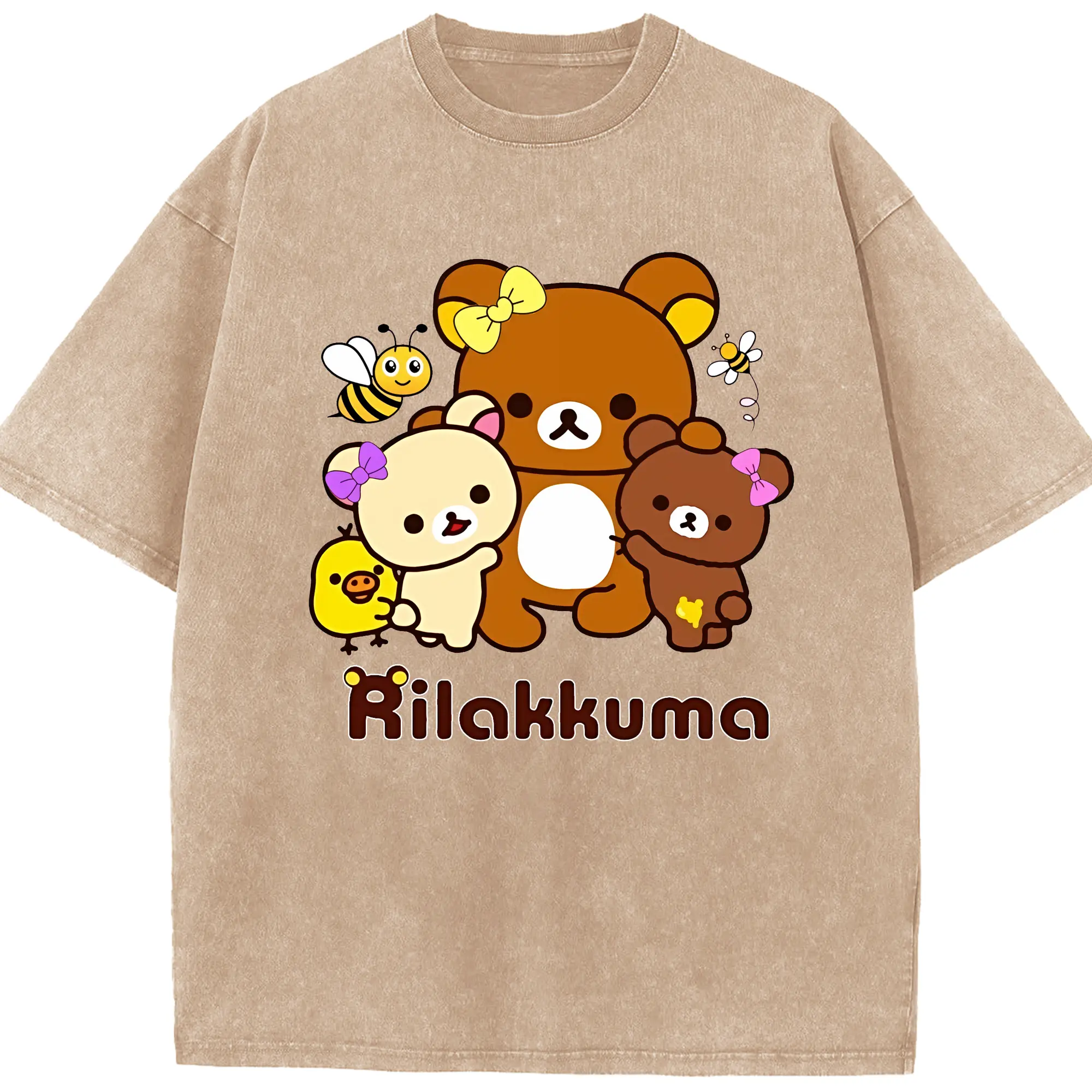 リラックマ (Rilakkuma) グッズ リラックマ (Rilakkuma) - 綿100% ヴィンテージ風 半袖Tシャツ ・ 背面プリント ・ 柔らか肌触り ・ 通気性 快適 ・ スポーツ カジュアル 外出用