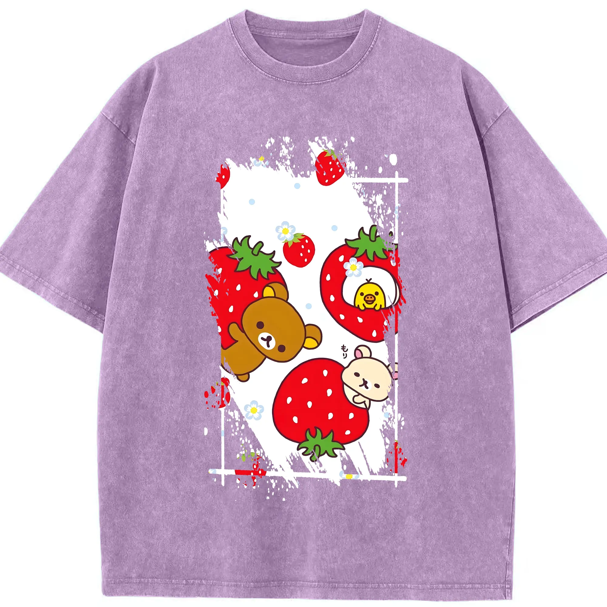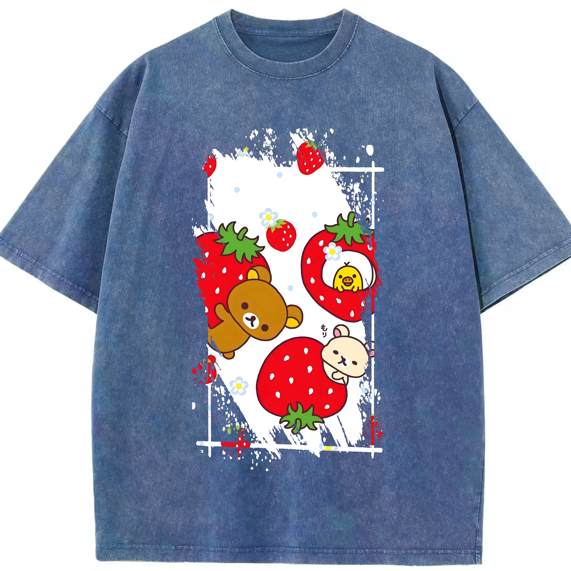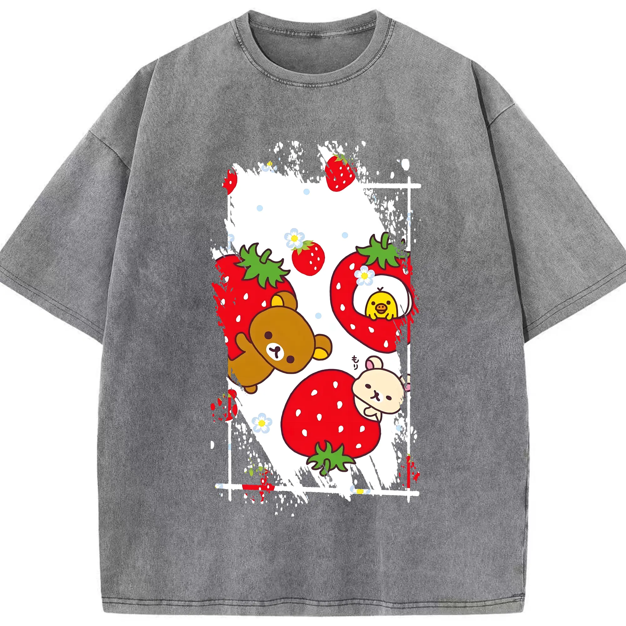 リラックマ (Rilakkuma) グッズ リラックマ (Rilakkuma) - 綿100% ヴィンテージ風 半袖Tシャツ ・ 背面プリント ・ 柔らか肌触り ・ 通気性 快適 ・ スポーツ カジュアル 外出用