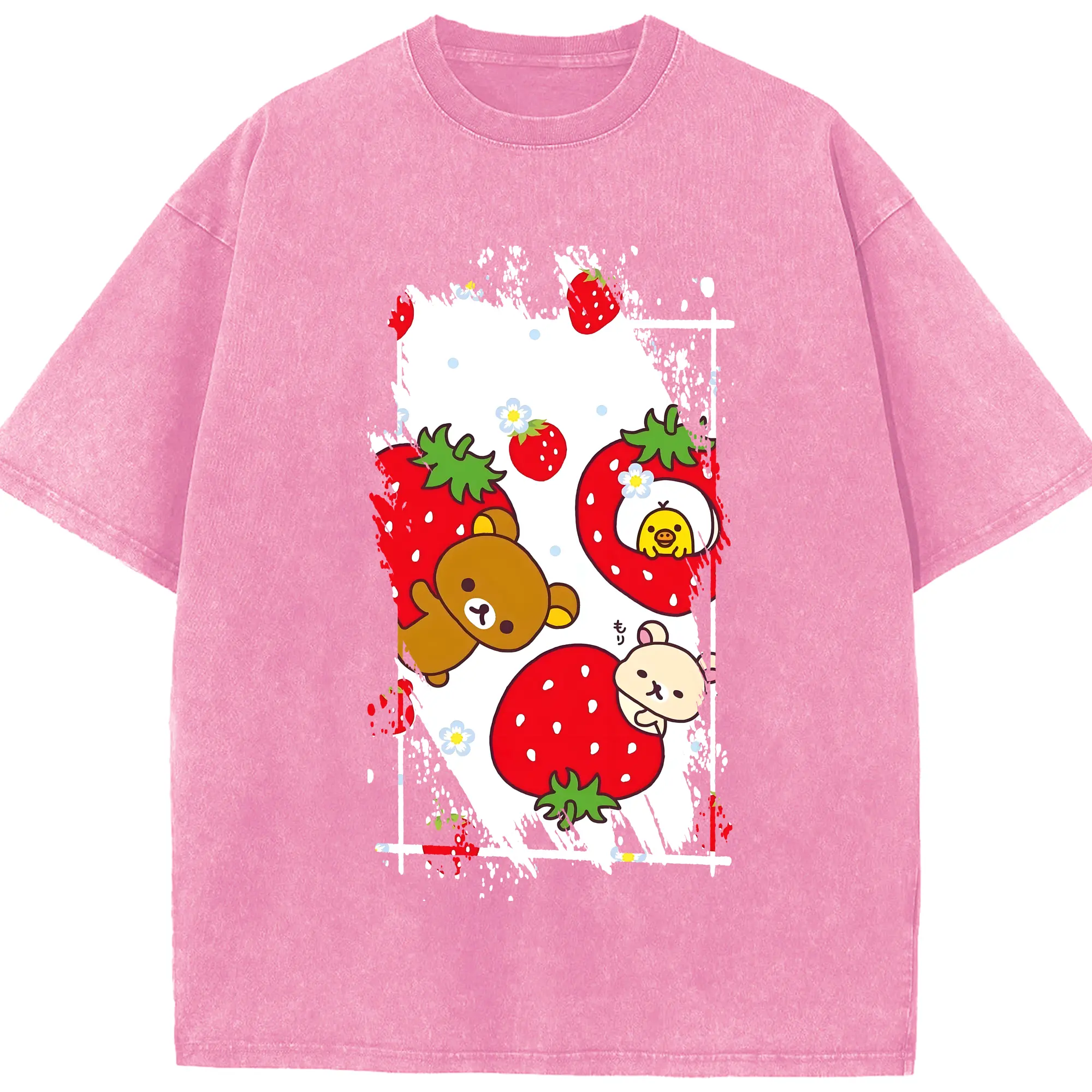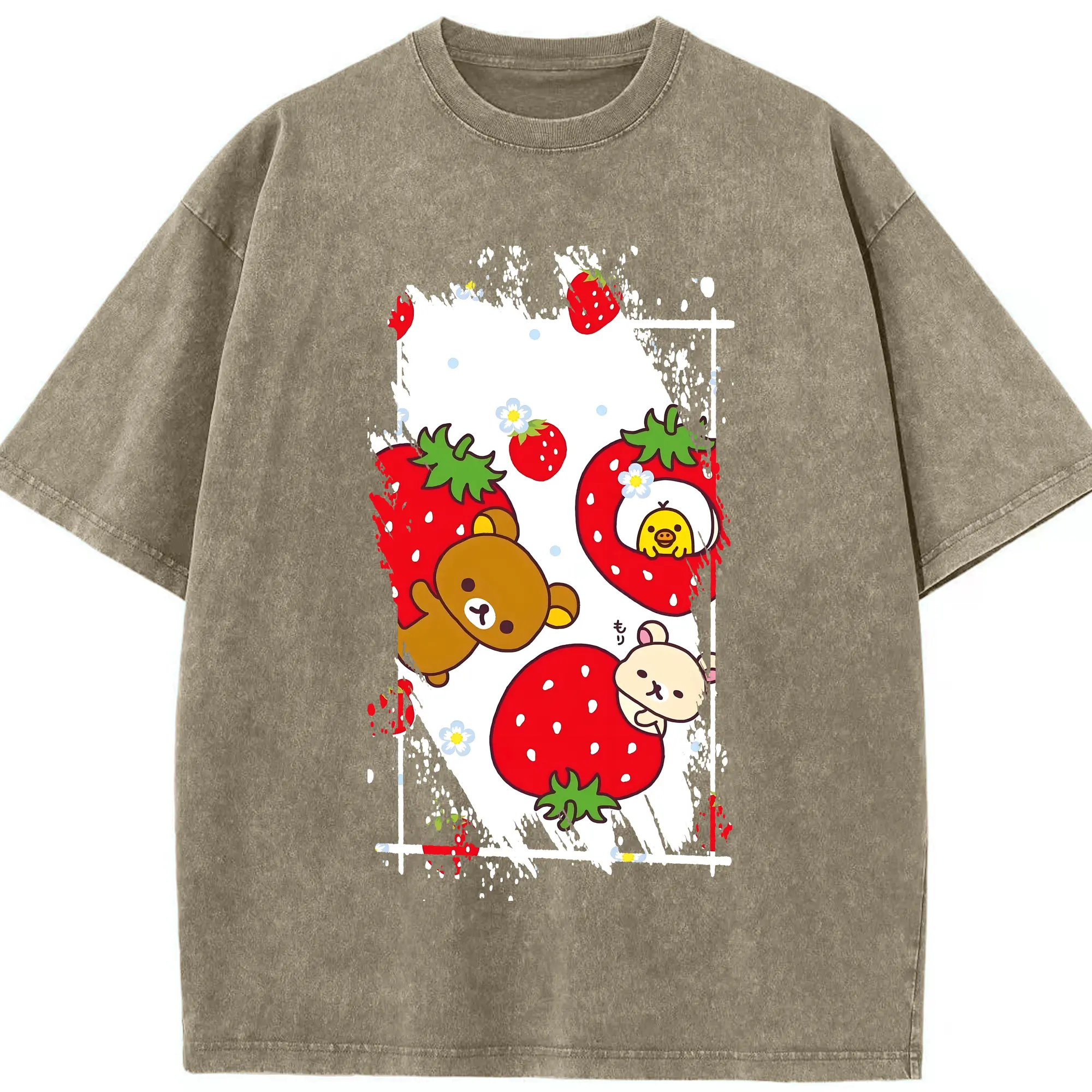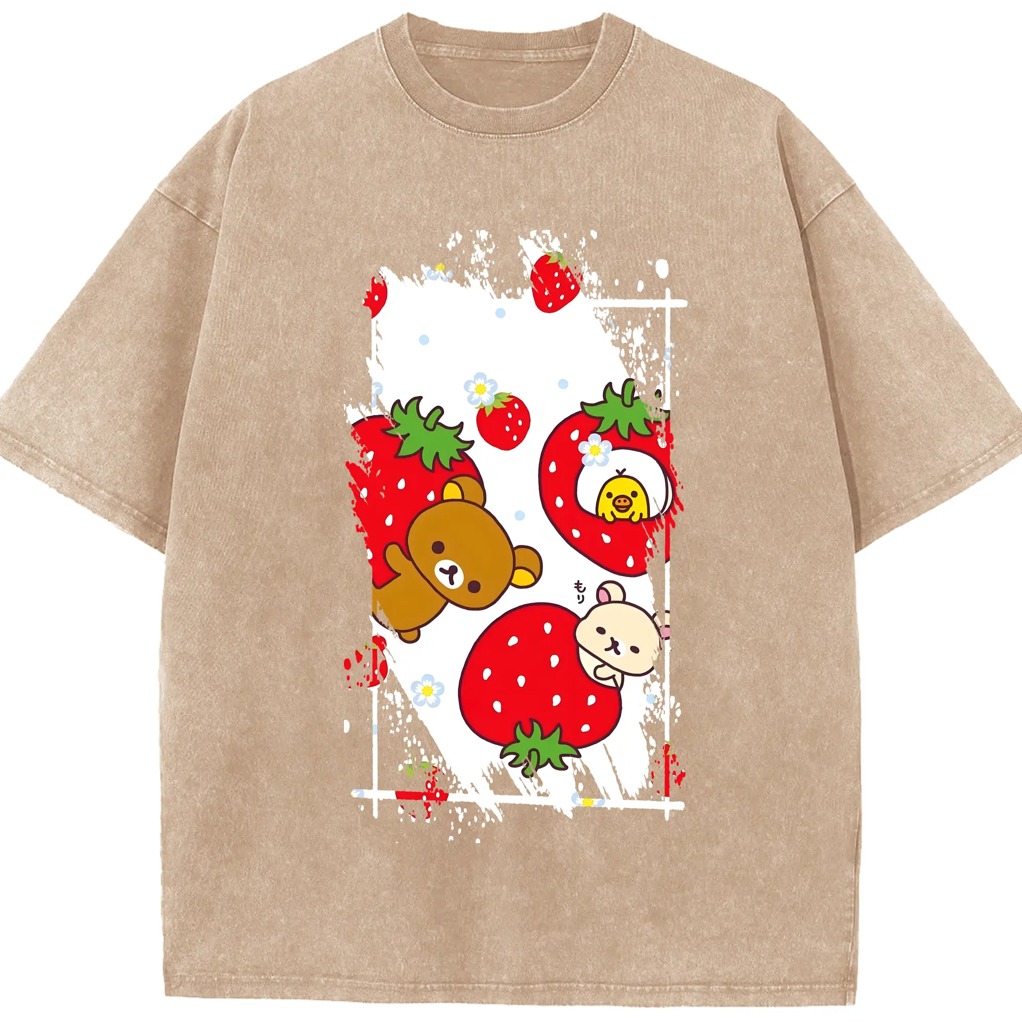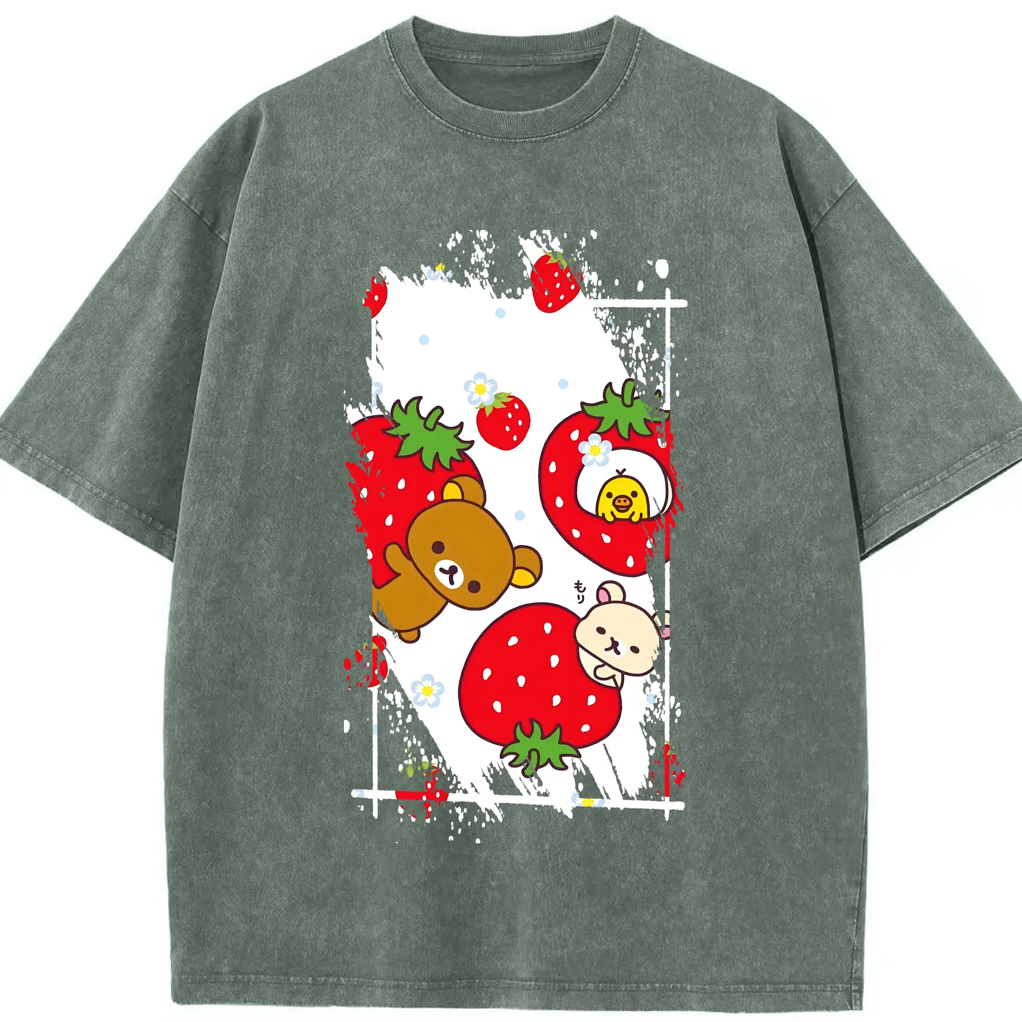リラックマ (Rilakkuma) グッズ リラックマ (Rilakkuma) - 綿100% ヴィンテージ風 半袖Tシャツ ・ 背面プリント ・ 柔らか肌触り ・ 通気性 快適 ・ スポーツ カジュアル 外出用