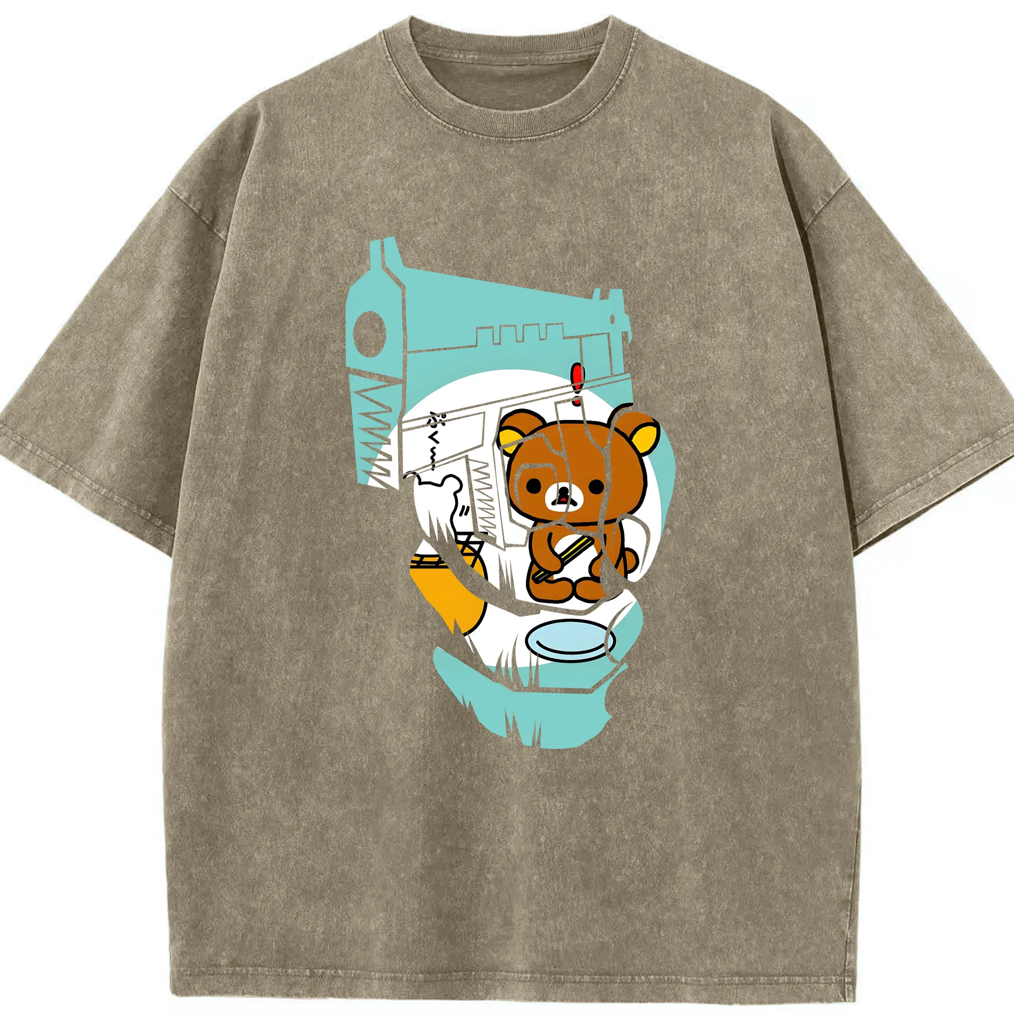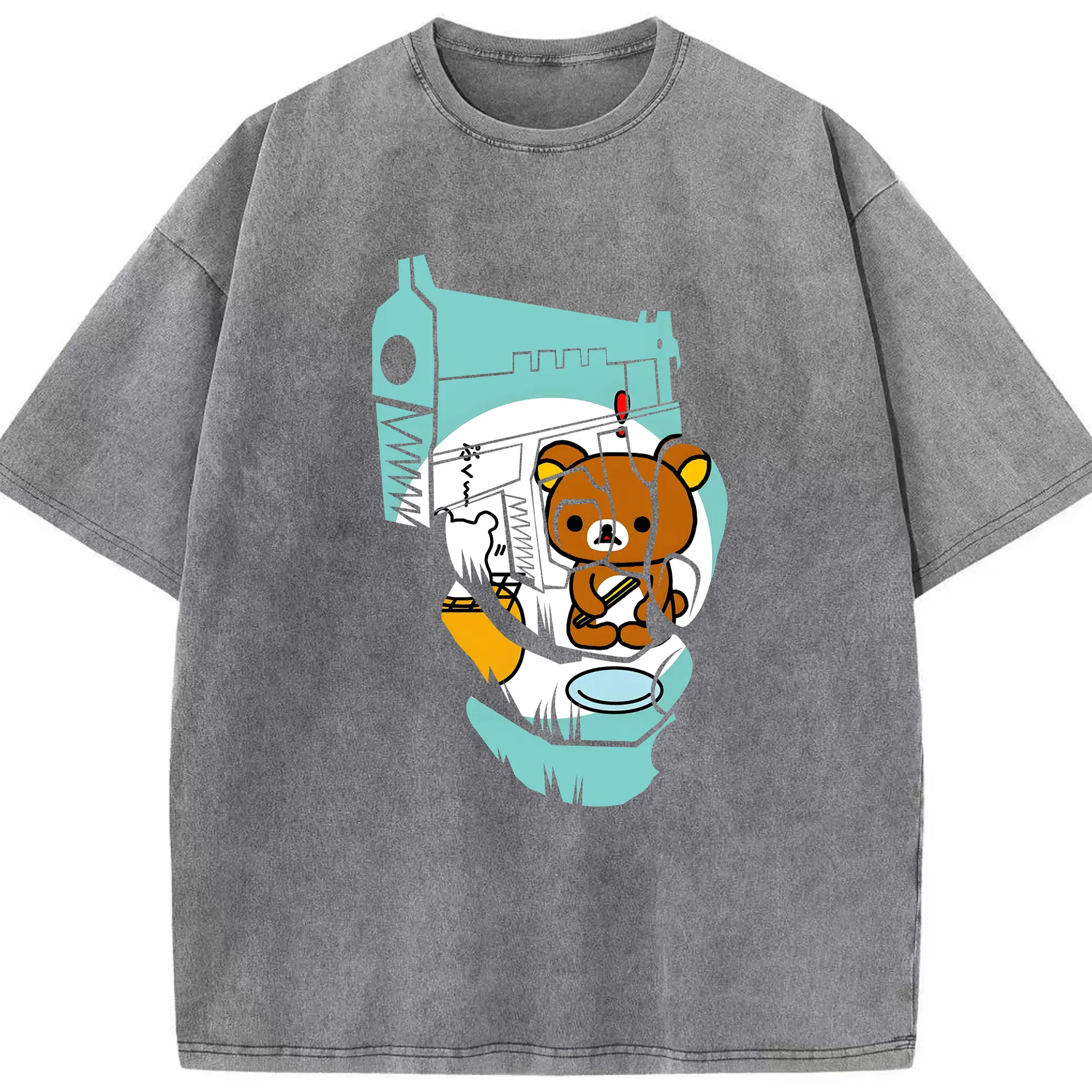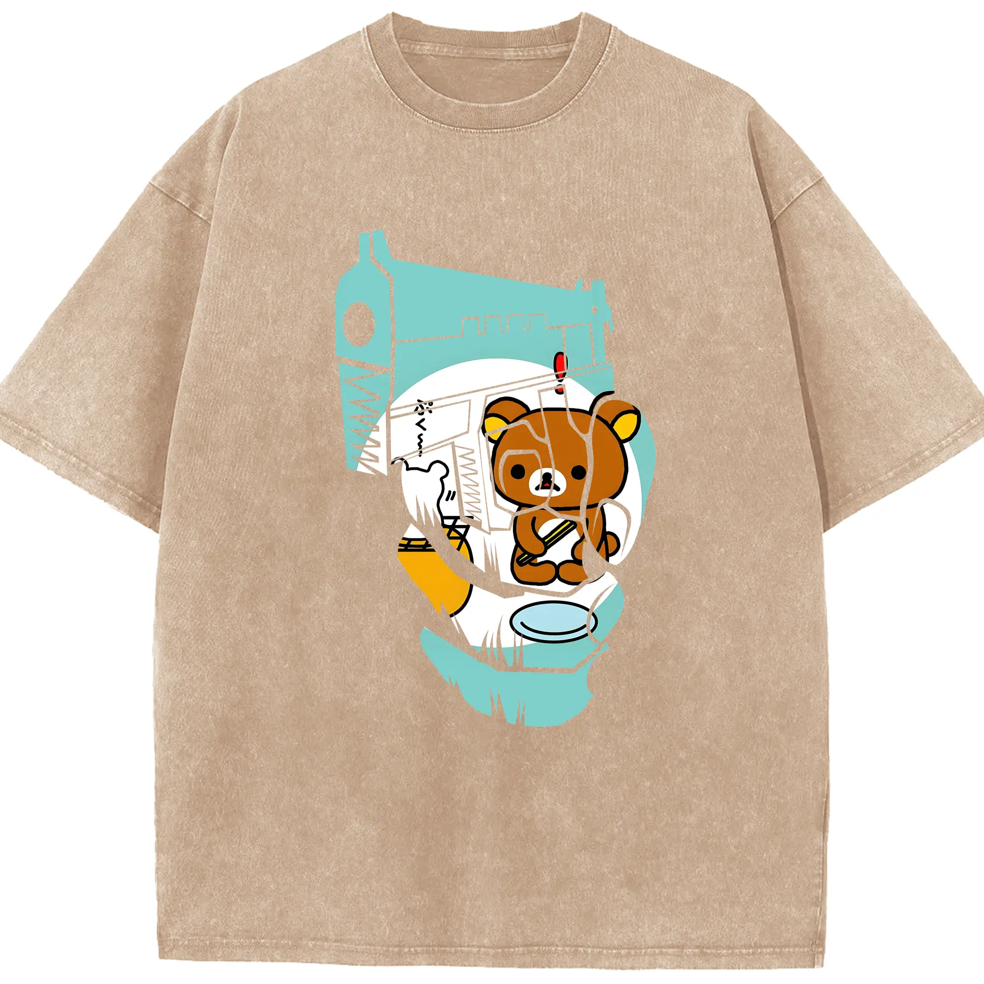 リラックマ (Rilakkuma) グッズ リラックマ (Rilakkuma) - 綿100% ヴィンテージ風 半袖Tシャツ ・ 背面プリント ・ 柔らか肌触り ・ 通気性 快適 ・ スポーツ カジュアル 外出用