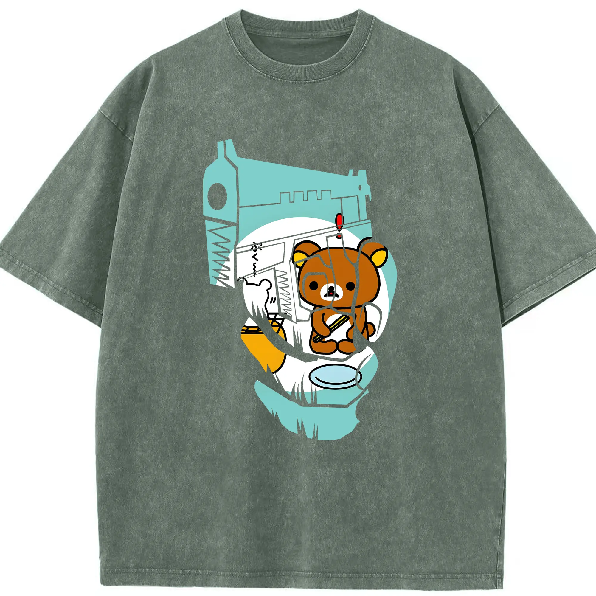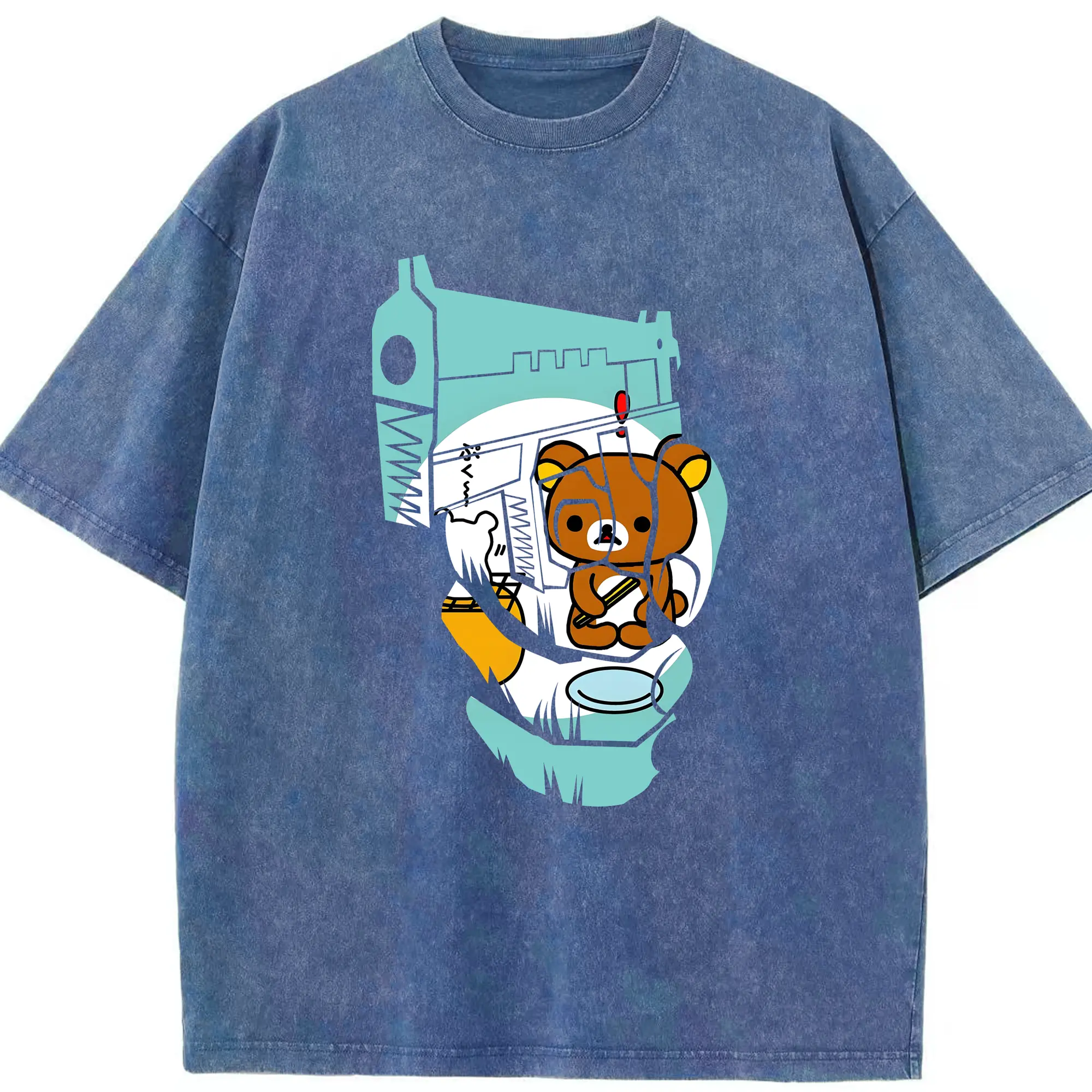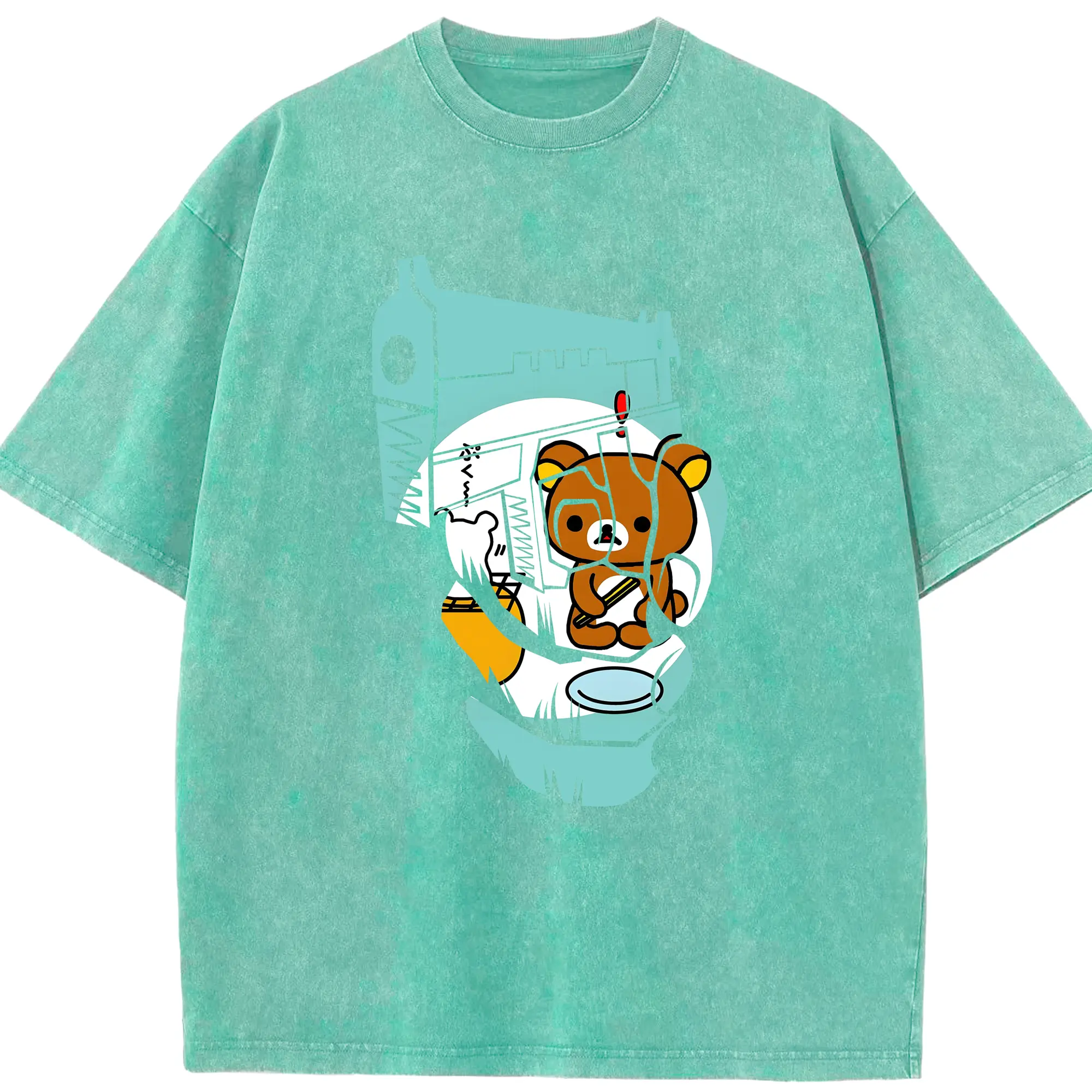 リラックマ (Rilakkuma) グッズ リラックマ (Rilakkuma) - 綿100% ヴィンテージ風 半袖Tシャツ ・ 背面プリント ・ 柔らか肌触り ・ 通気性 快適 ・ スポーツ カジュアル 外出用