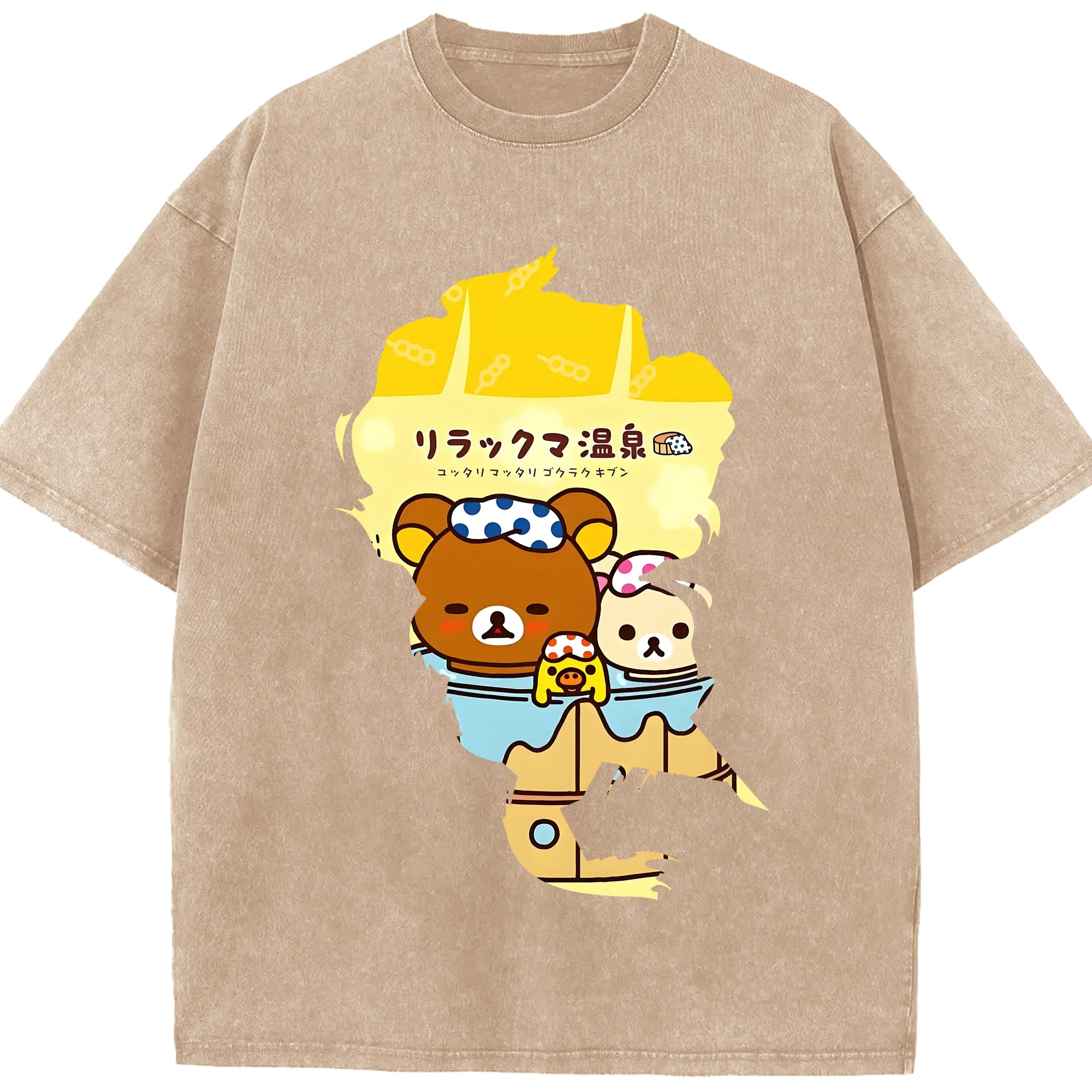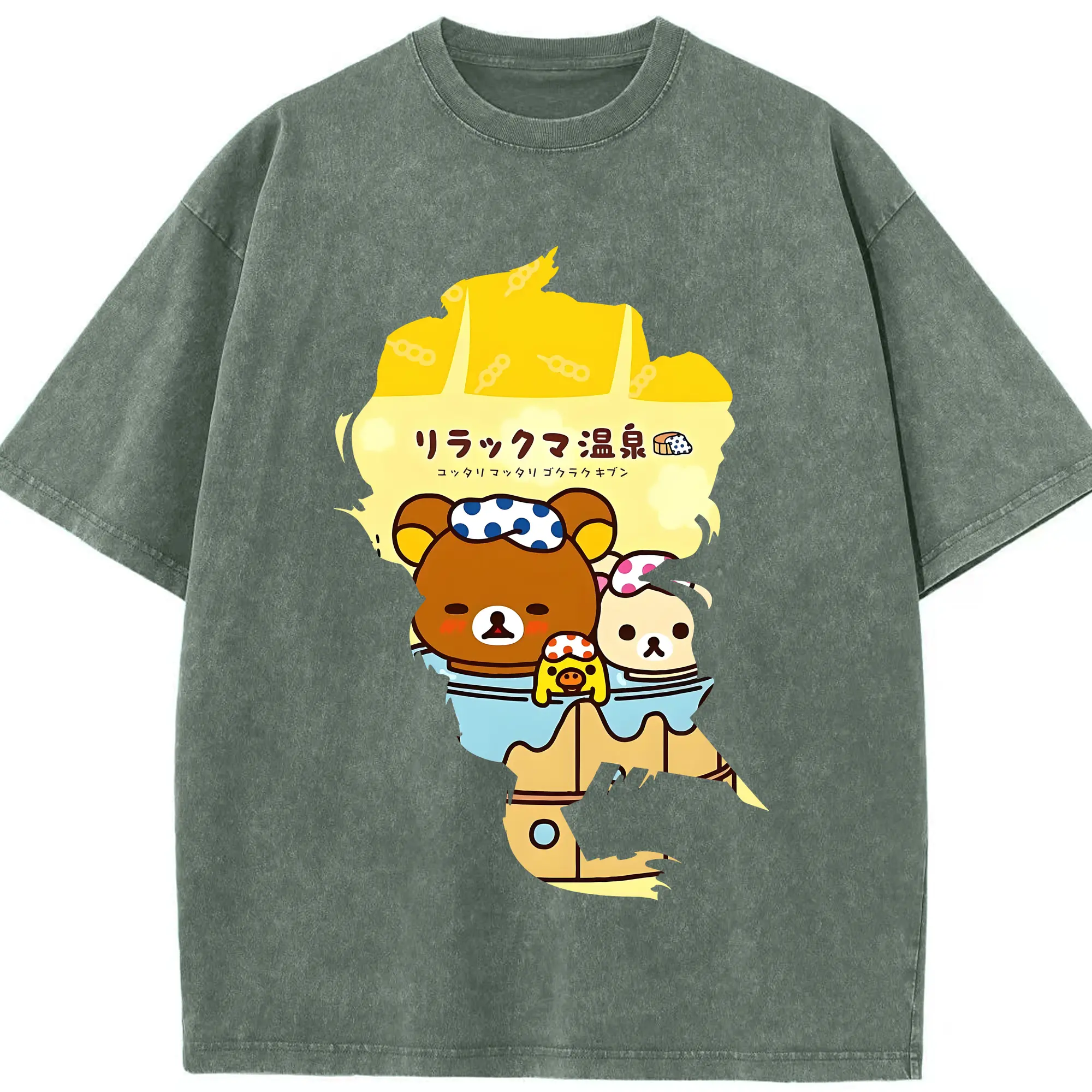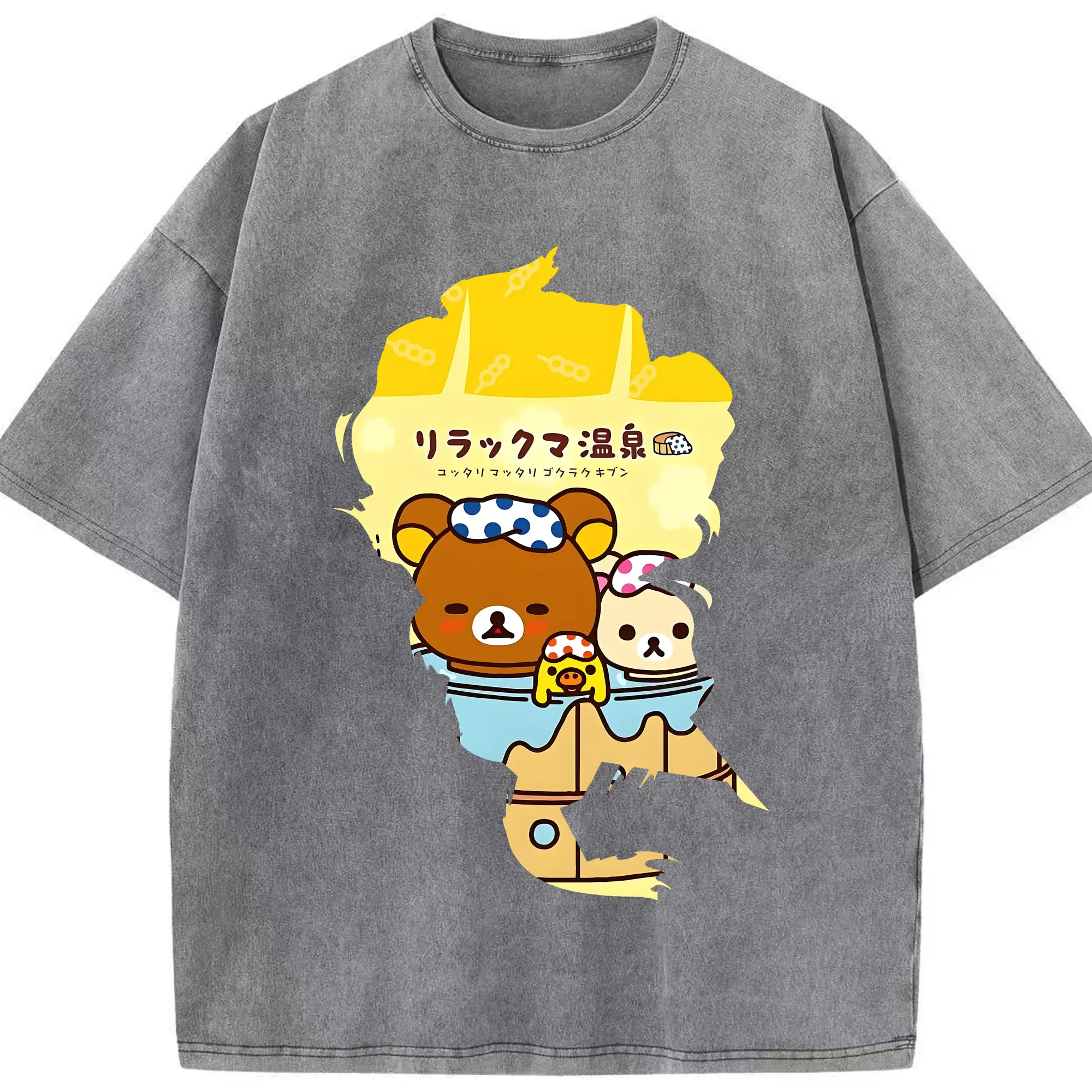 リラックマ (Rilakkuma) グッズ リラックマ (Rilakkuma) - 綿100% ヴィンテージ風 半袖Tシャツ ・ 背面プリント ・ 柔らか肌触り ・ 通気性 快適 ・ スポーツ カジュアル 外出用