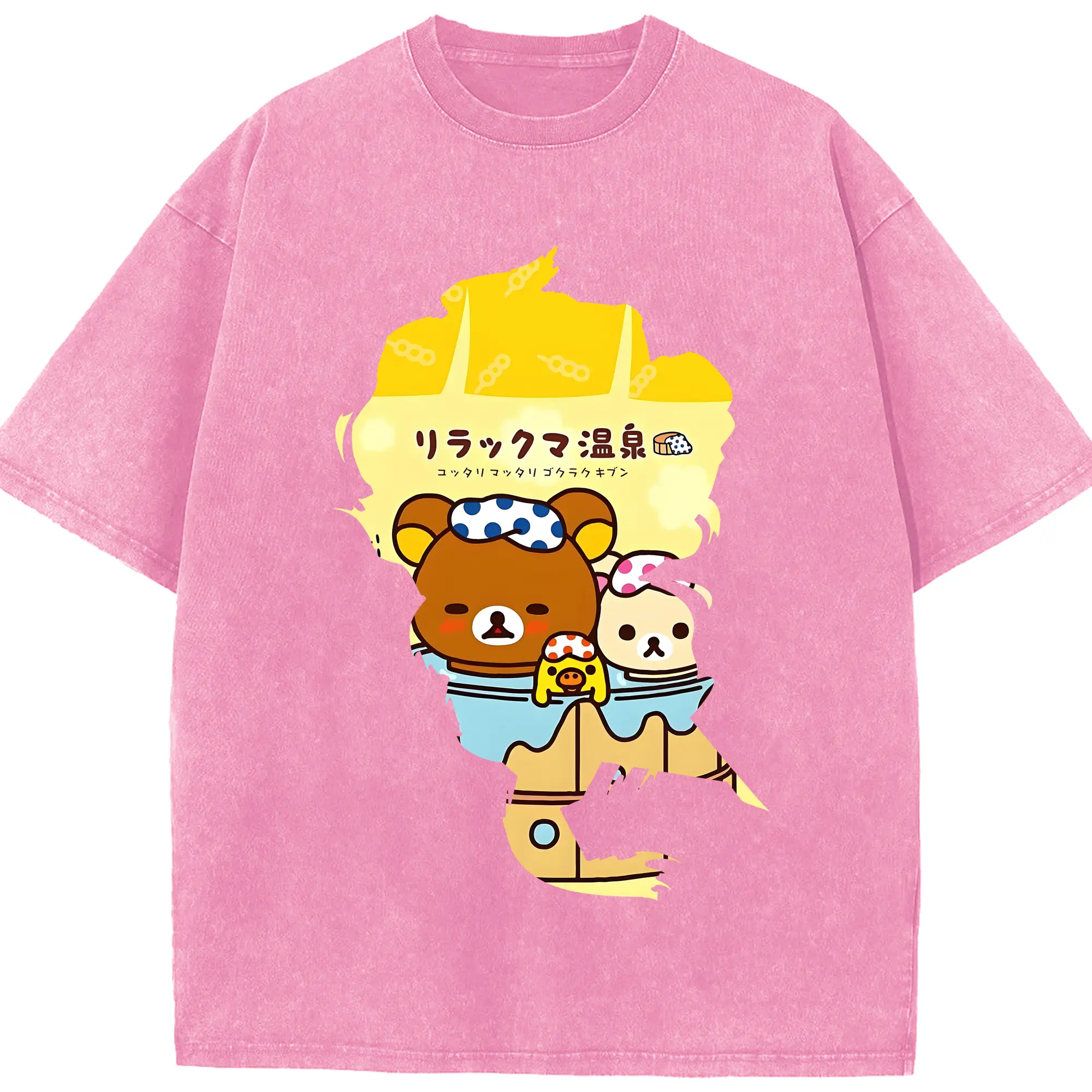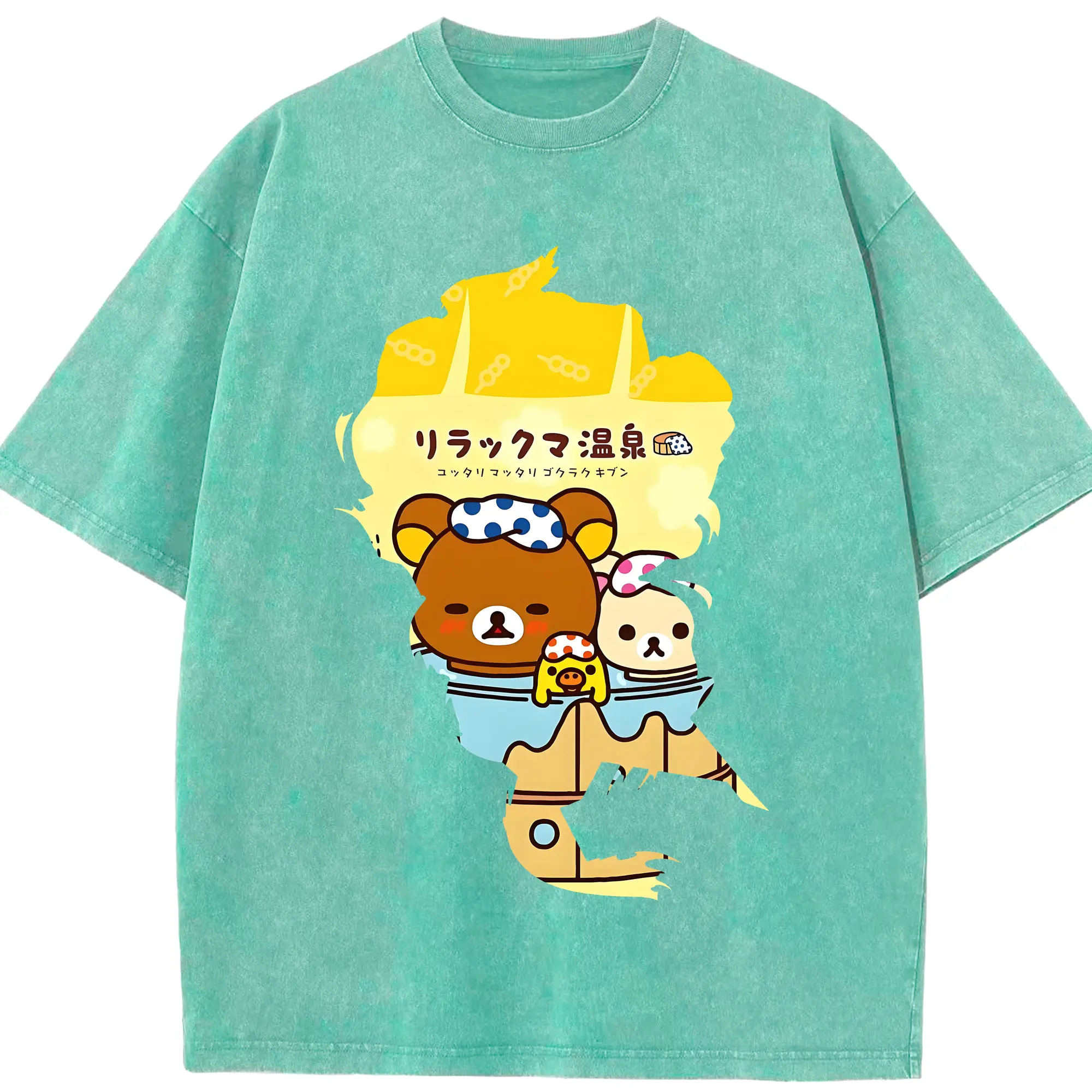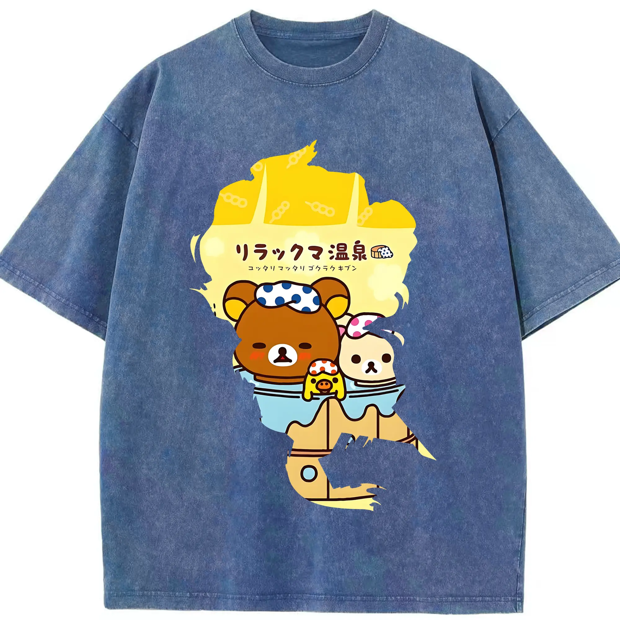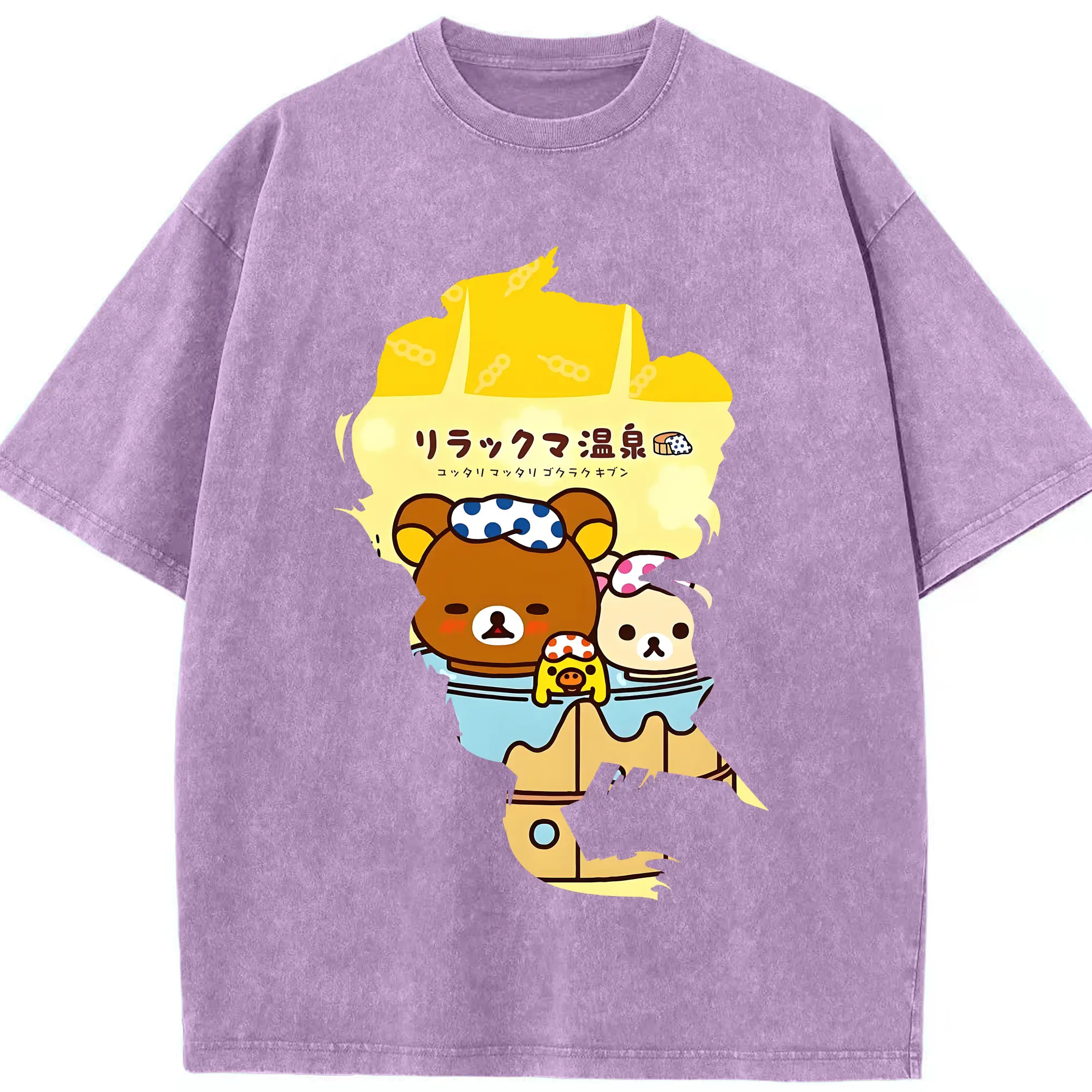 リラックマ (Rilakkuma) グッズ リラックマ (Rilakkuma) - 綿100% ヴィンテージ風 半袖Tシャツ ・ 背面プリント ・ 柔らか肌触り ・ 通気性 快適 ・ スポーツ カジュアル 外出用