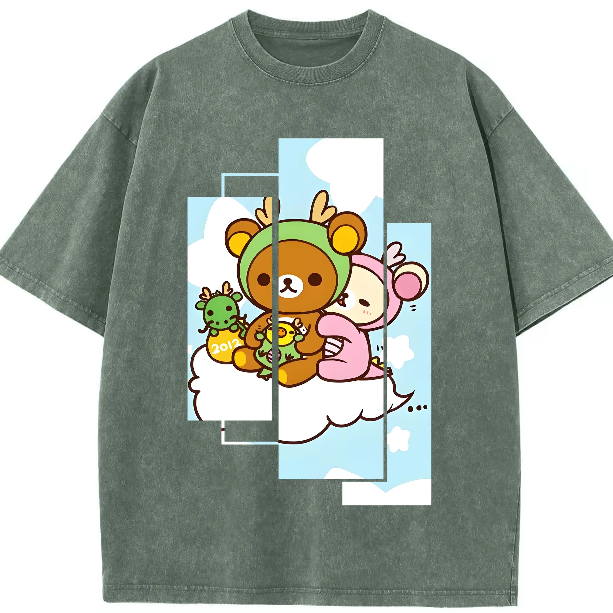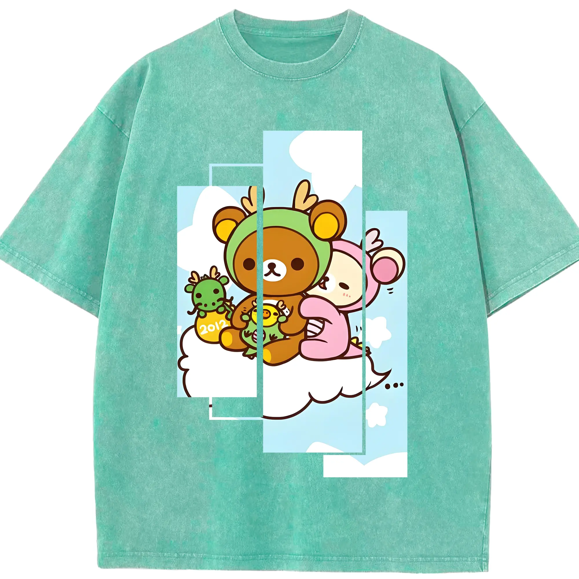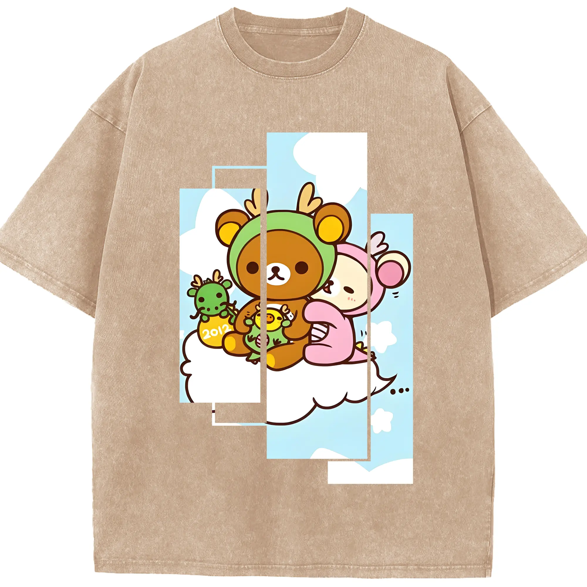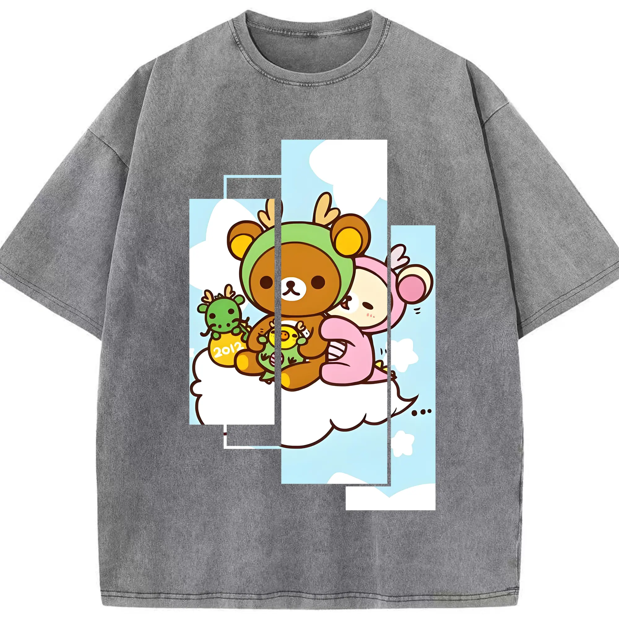 リラックマ (Rilakkuma) グッズ リラックマ (Rilakkuma) - 綿100% ヴィンテージ風 半袖Tシャツ ・ 背面プリント ・ 柔らか肌触り ・ 通気性 快適 ・ スポーツ カジュアル 外出用