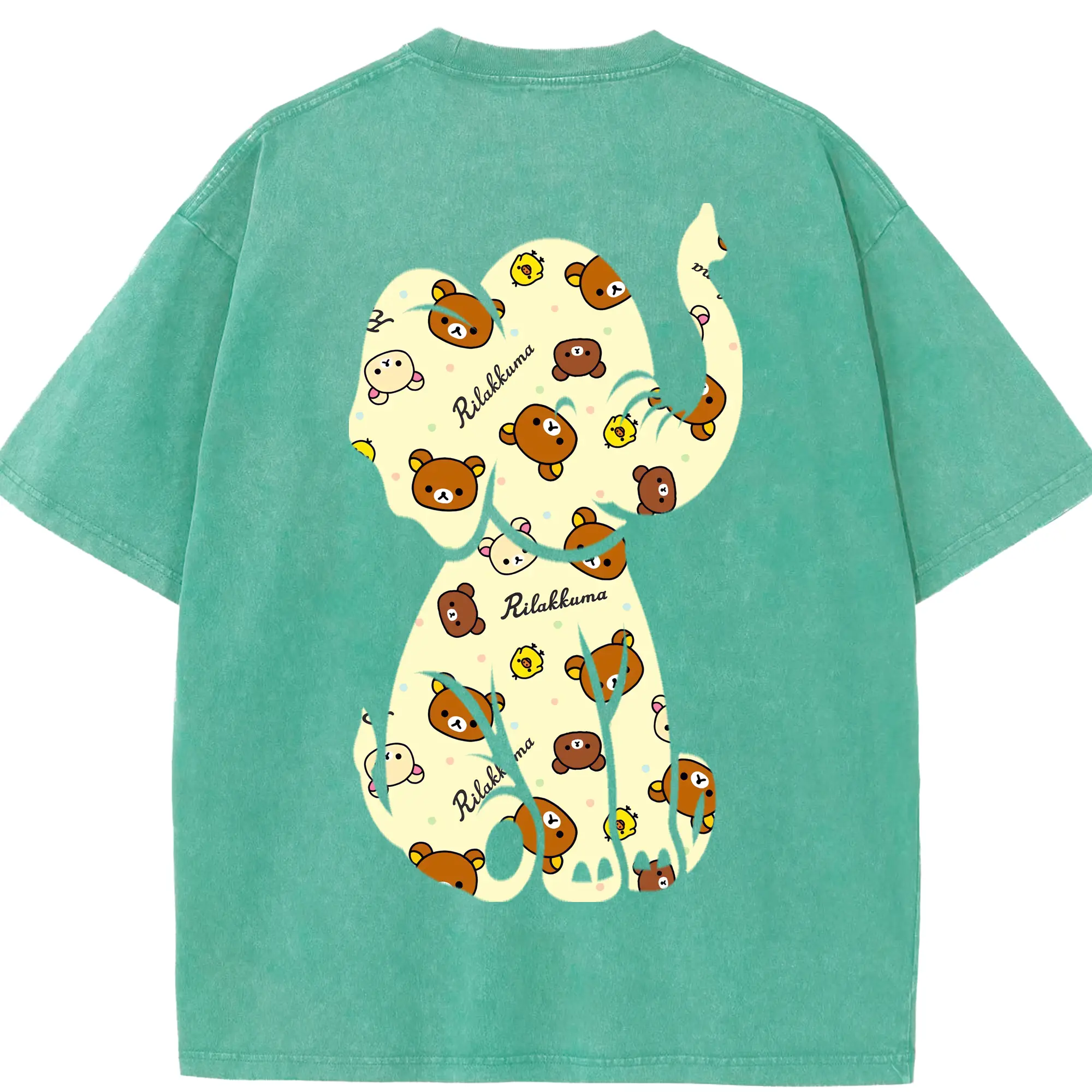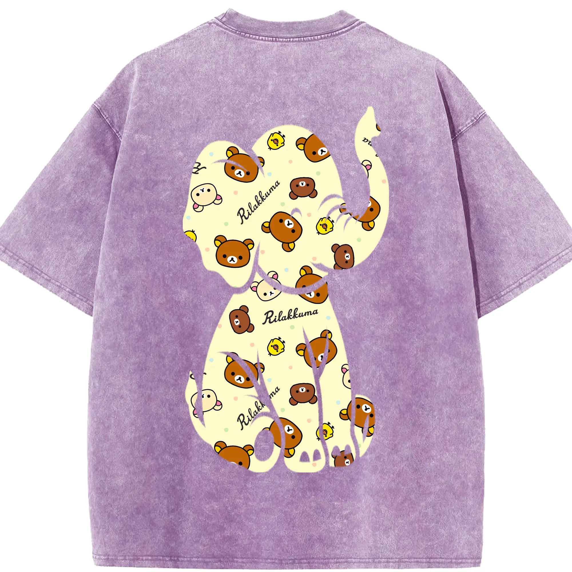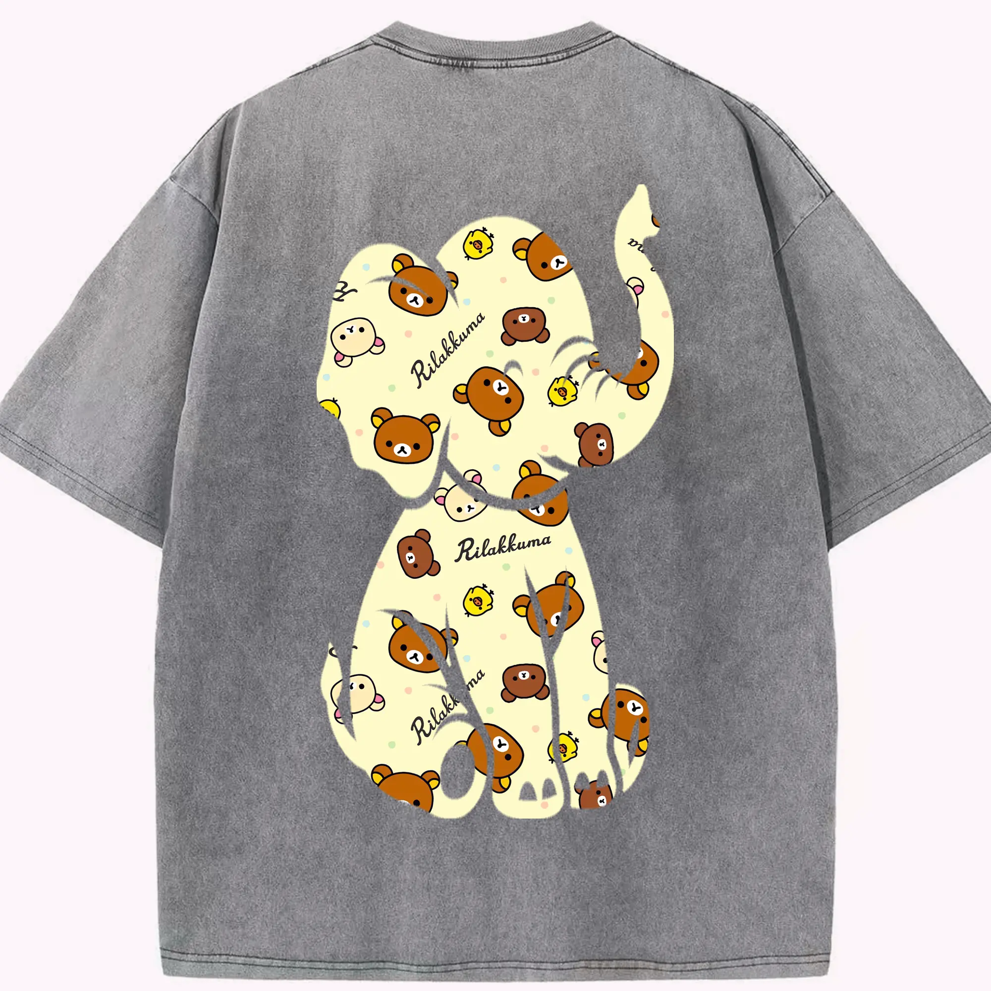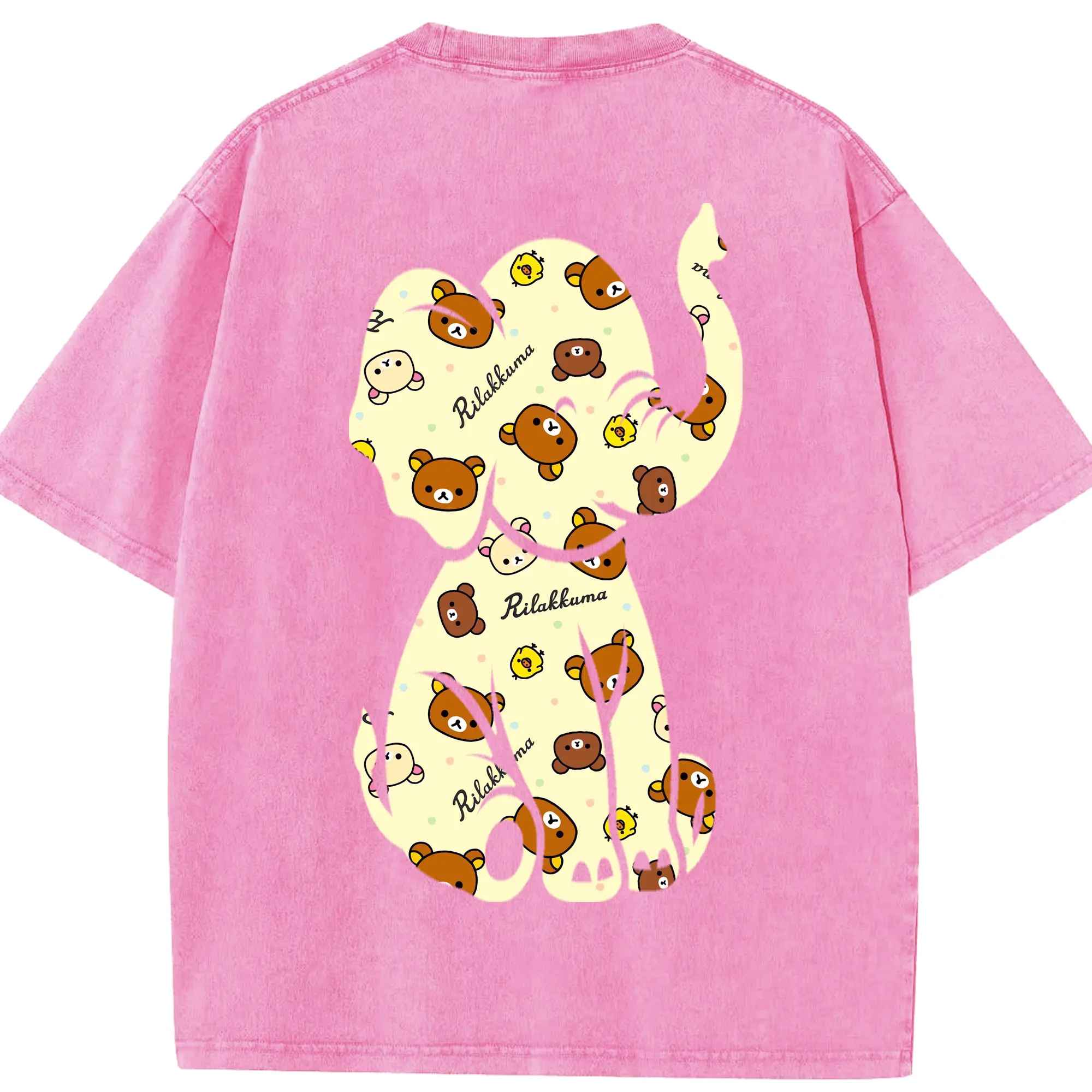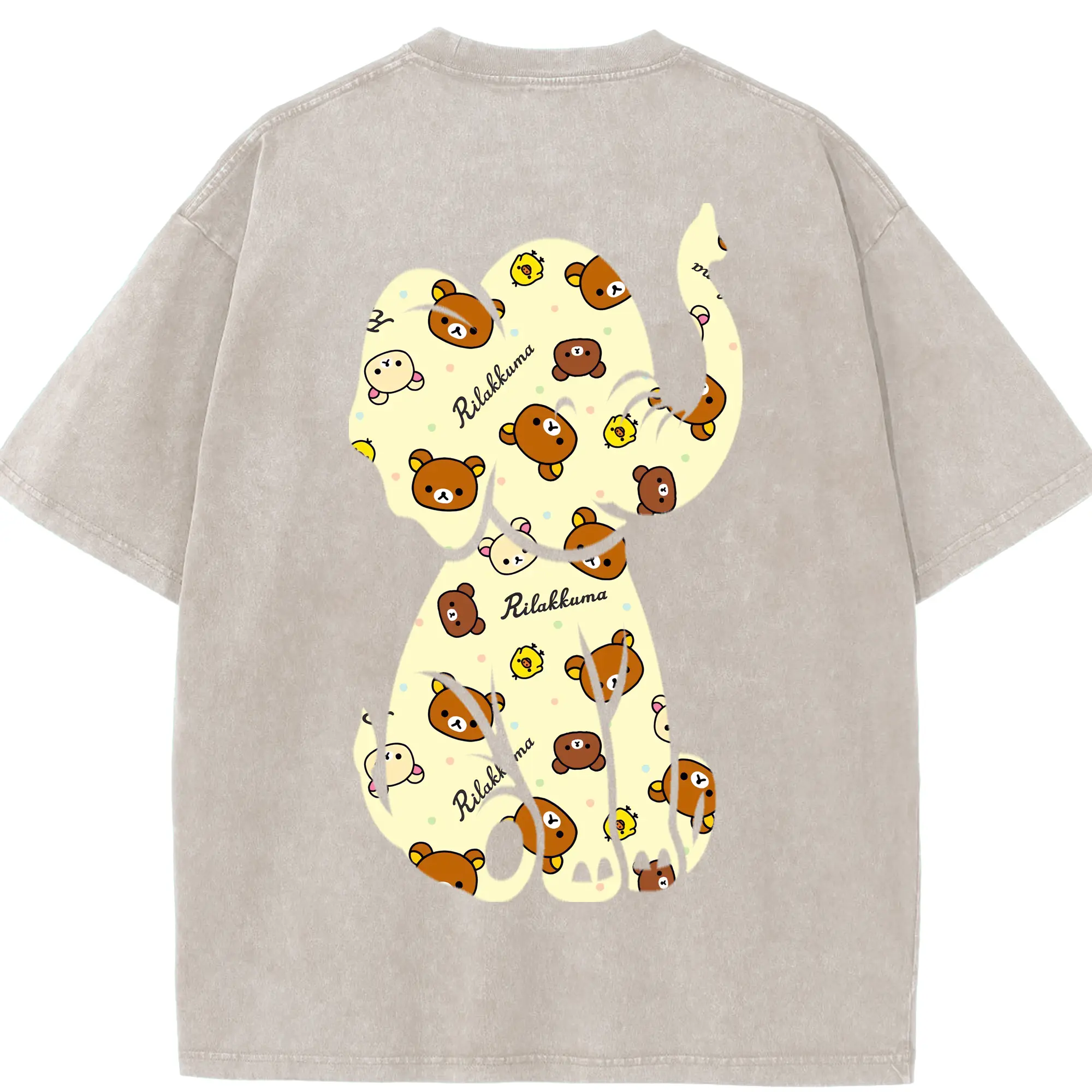 リラックマ (Rilakkuma) グッズ リラックマ (Rilakkuma) - 綿100% ヴィンテージ風 半袖Tシャツ ・ フロントプリント ・ 柔らか肌触り ・ 通気性 快適 ・ スポーツ カジュアル 外出用