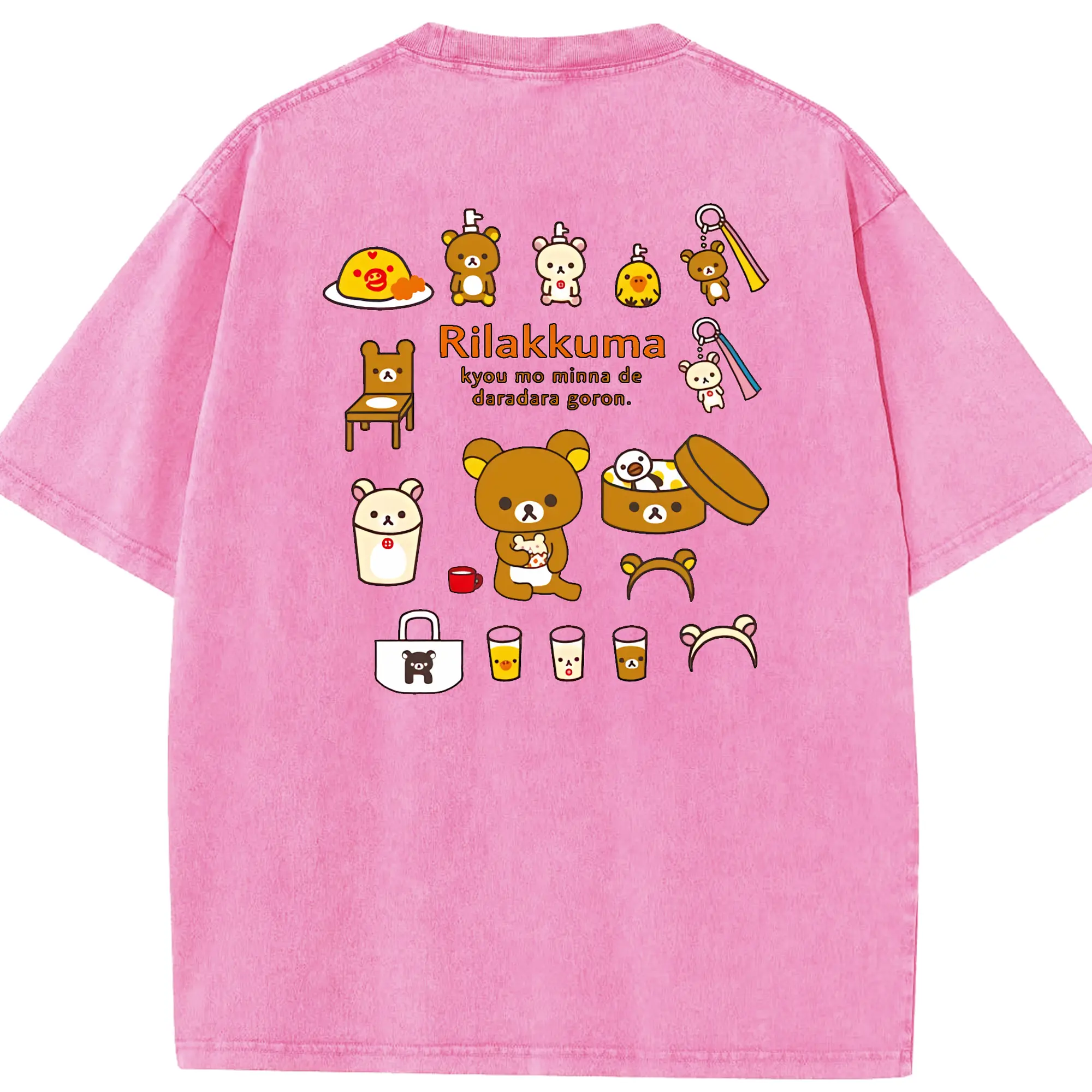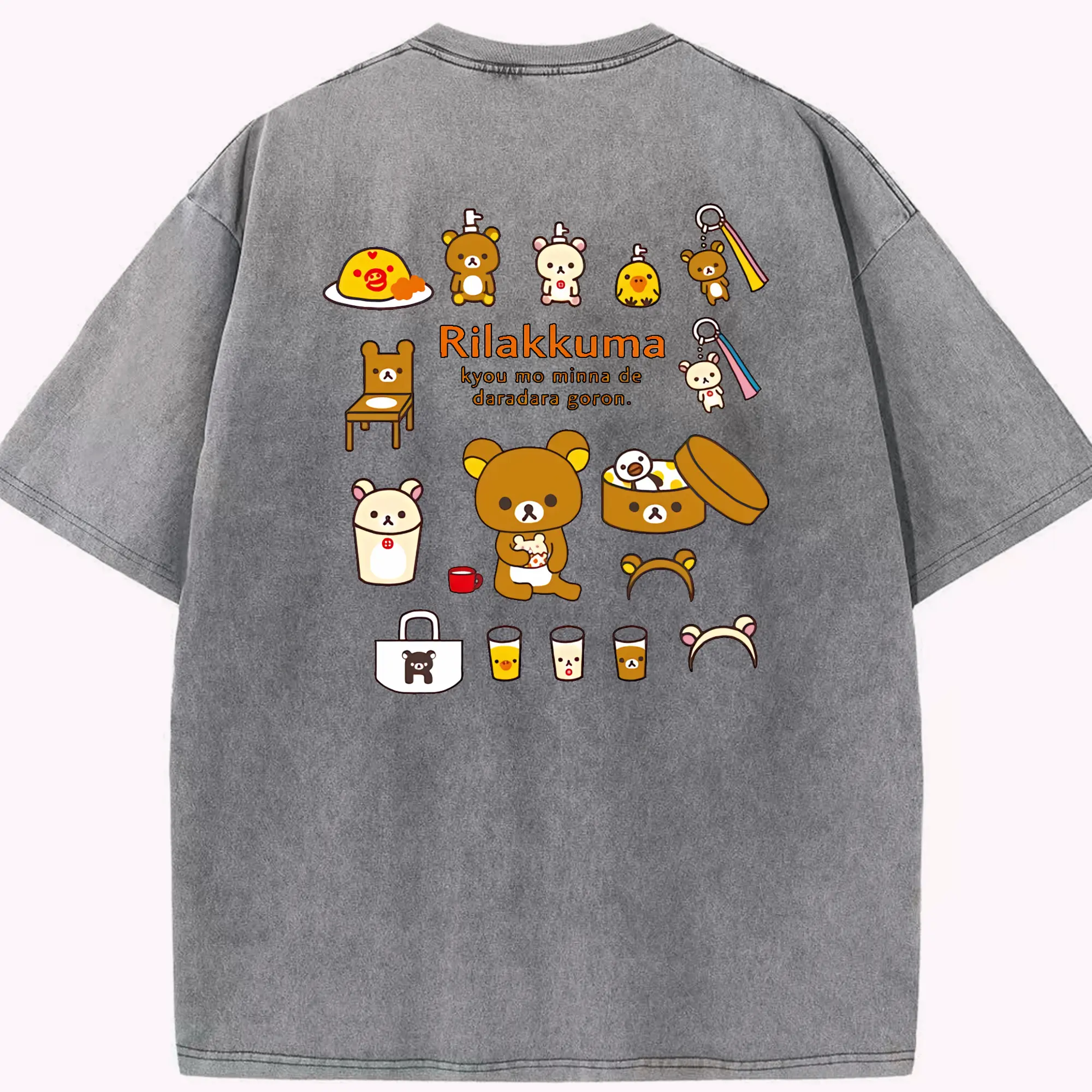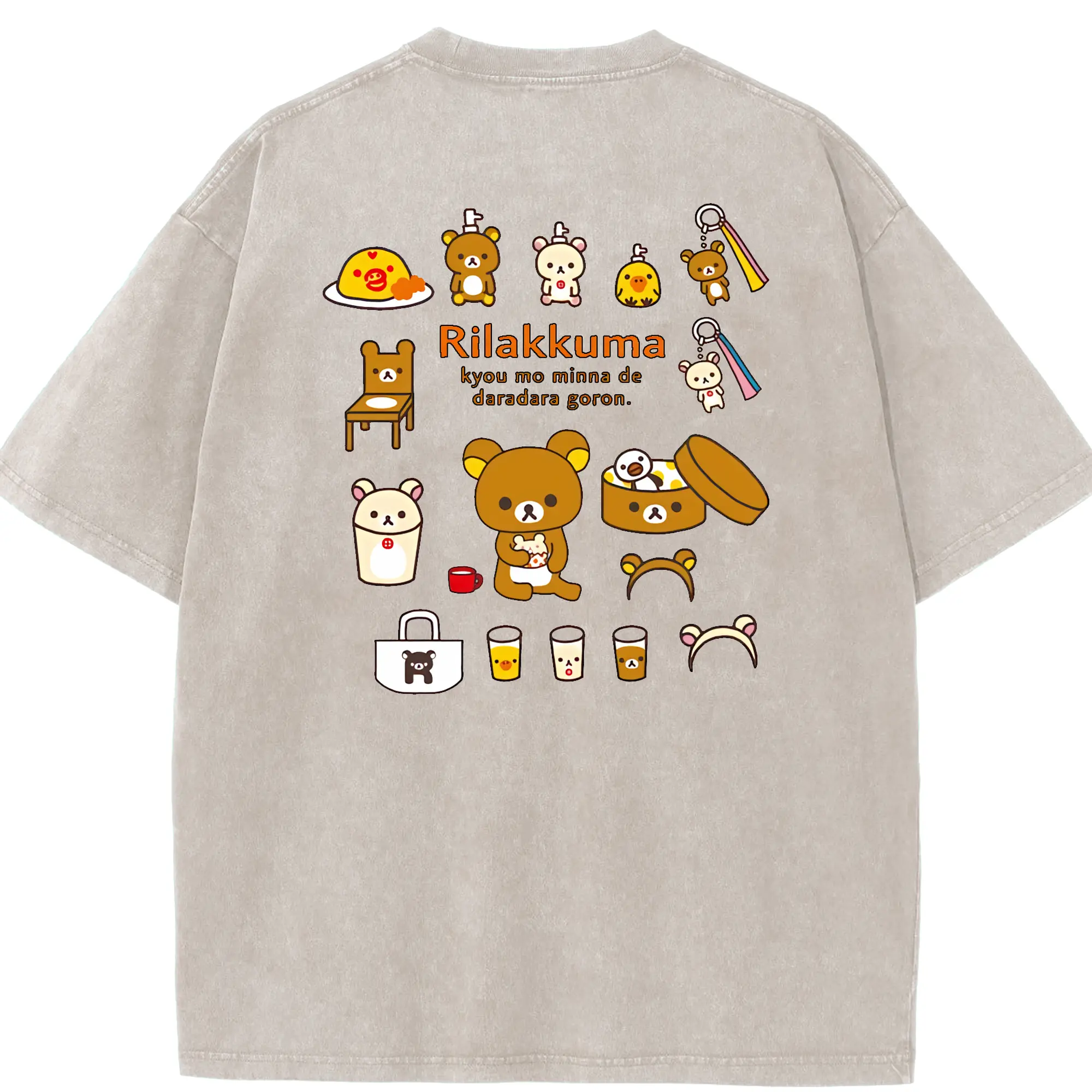 リラックマ (Rilakkuma) グッズ リラックマ (Rilakkuma) - 綿100% ヴィンテージ風 半袖Tシャツ ・ フロントプリント ・ 柔らか肌触り ・ 通気性 快適 ・ スポーツ カジュアル 外出用