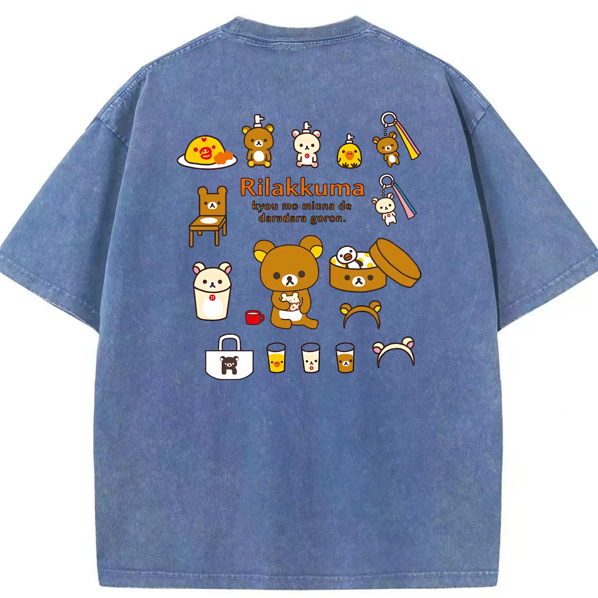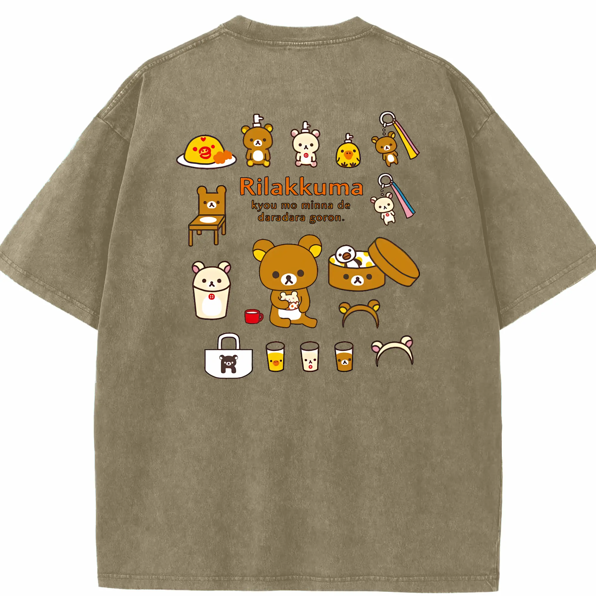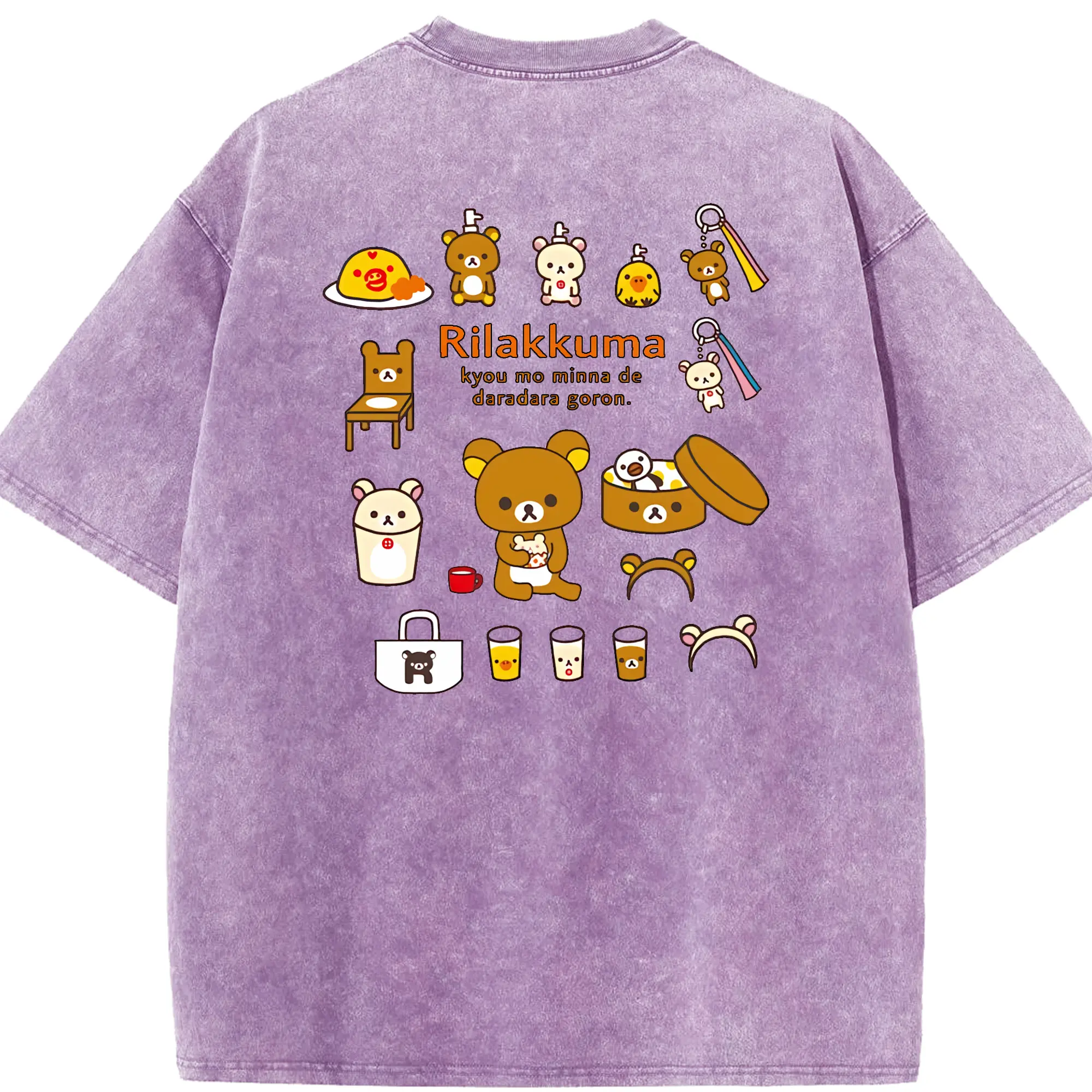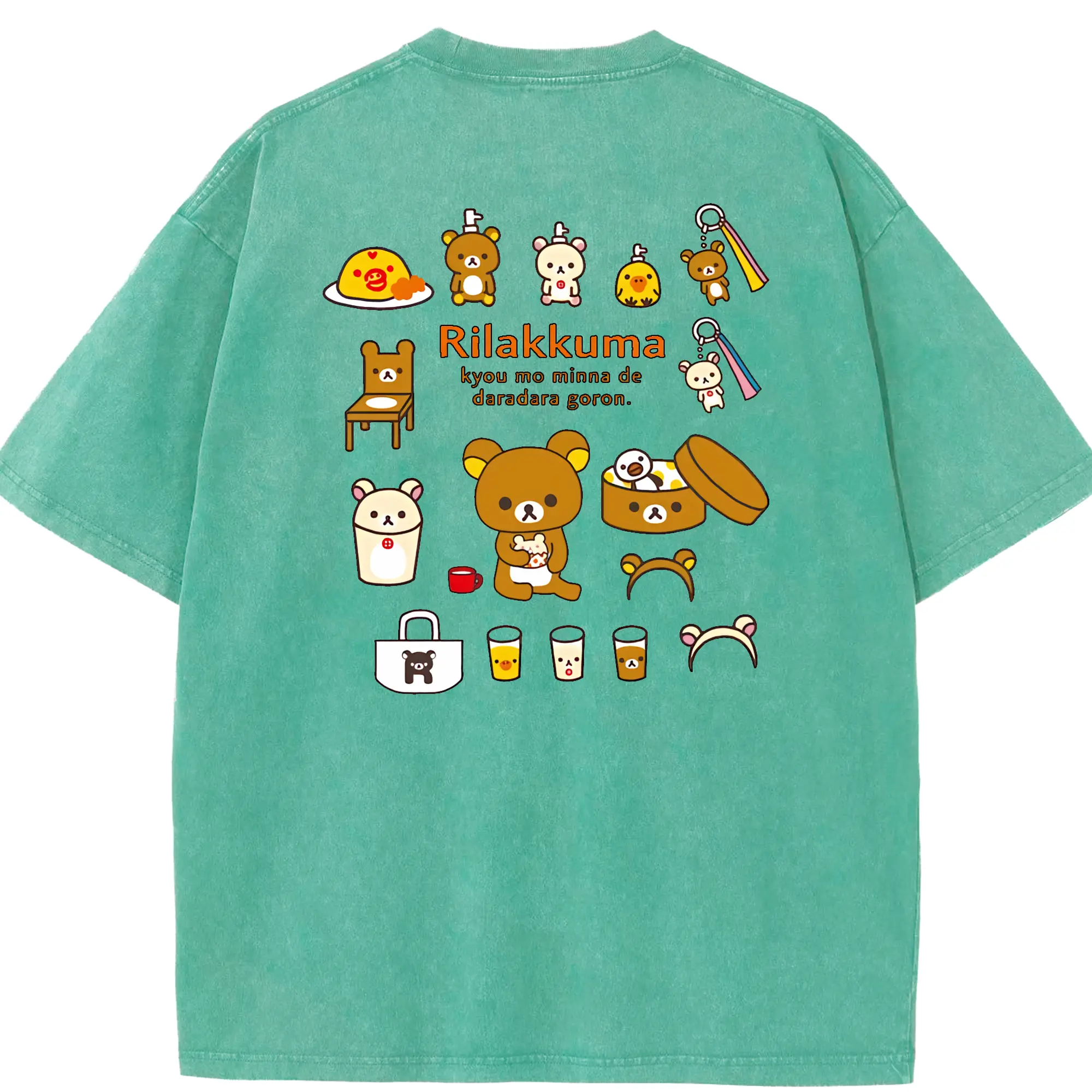 リラックマ (Rilakkuma) グッズ リラックマ (Rilakkuma) - 綿100% ヴィンテージ風 半袖Tシャツ ・ フロントプリント ・ 柔らか肌触り ・ 通気性 快適 ・ スポーツ カジュアル 外出用