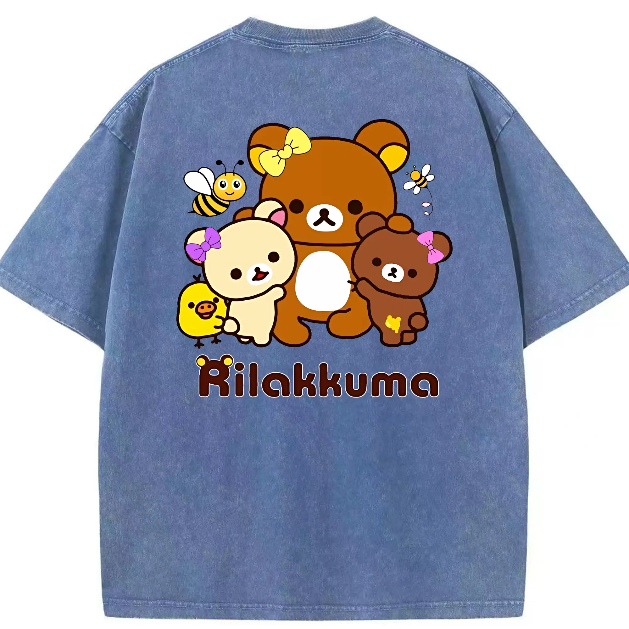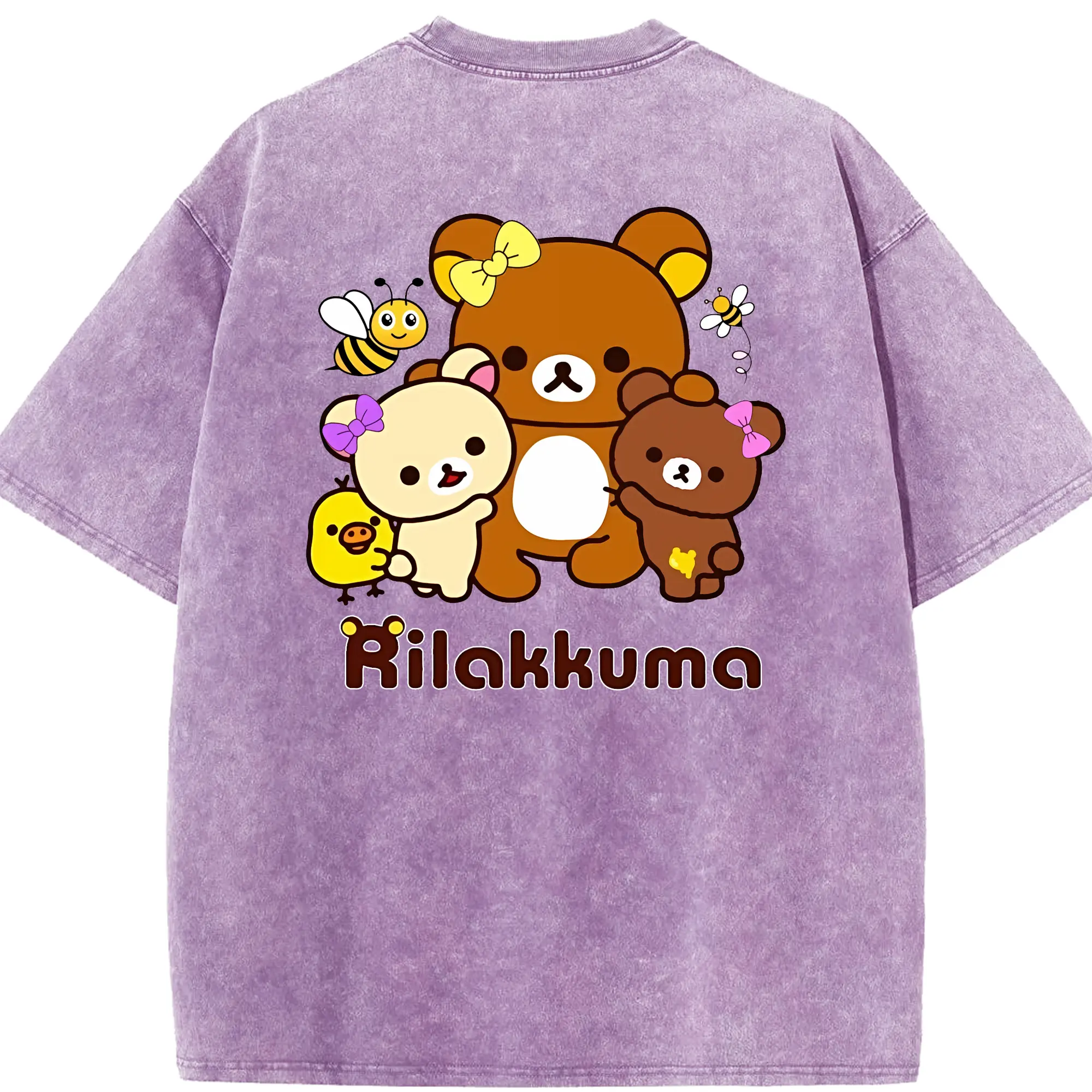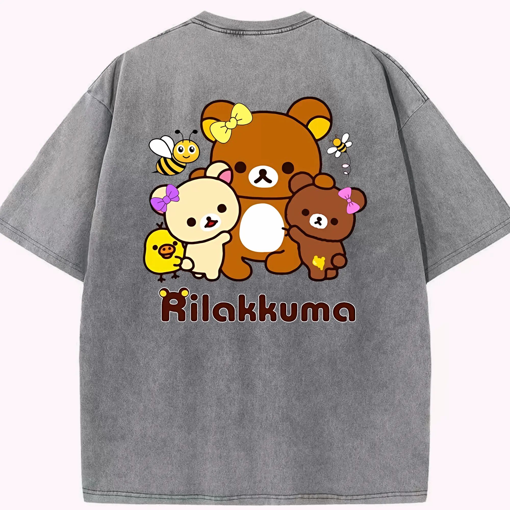 リラックマ (Rilakkuma) グッズ リラックマ (Rilakkuma) - 綿100% ヴィンテージ風 半袖Tシャツ ・ フロントプリント ・ 柔らか肌触り ・ 通気性 快適 ・ スポーツ カジュアル 外出用