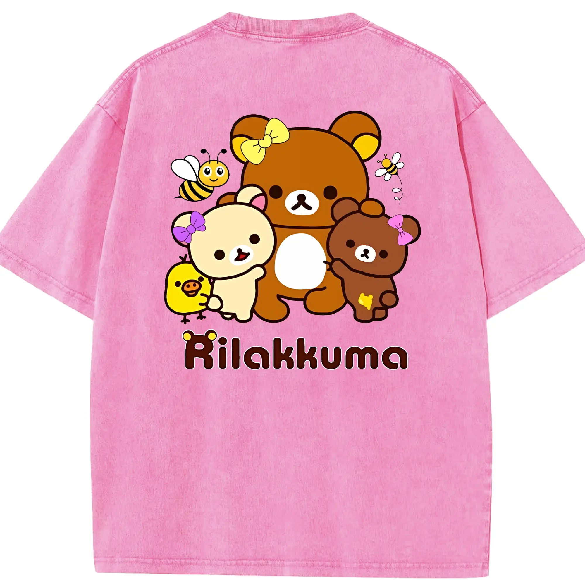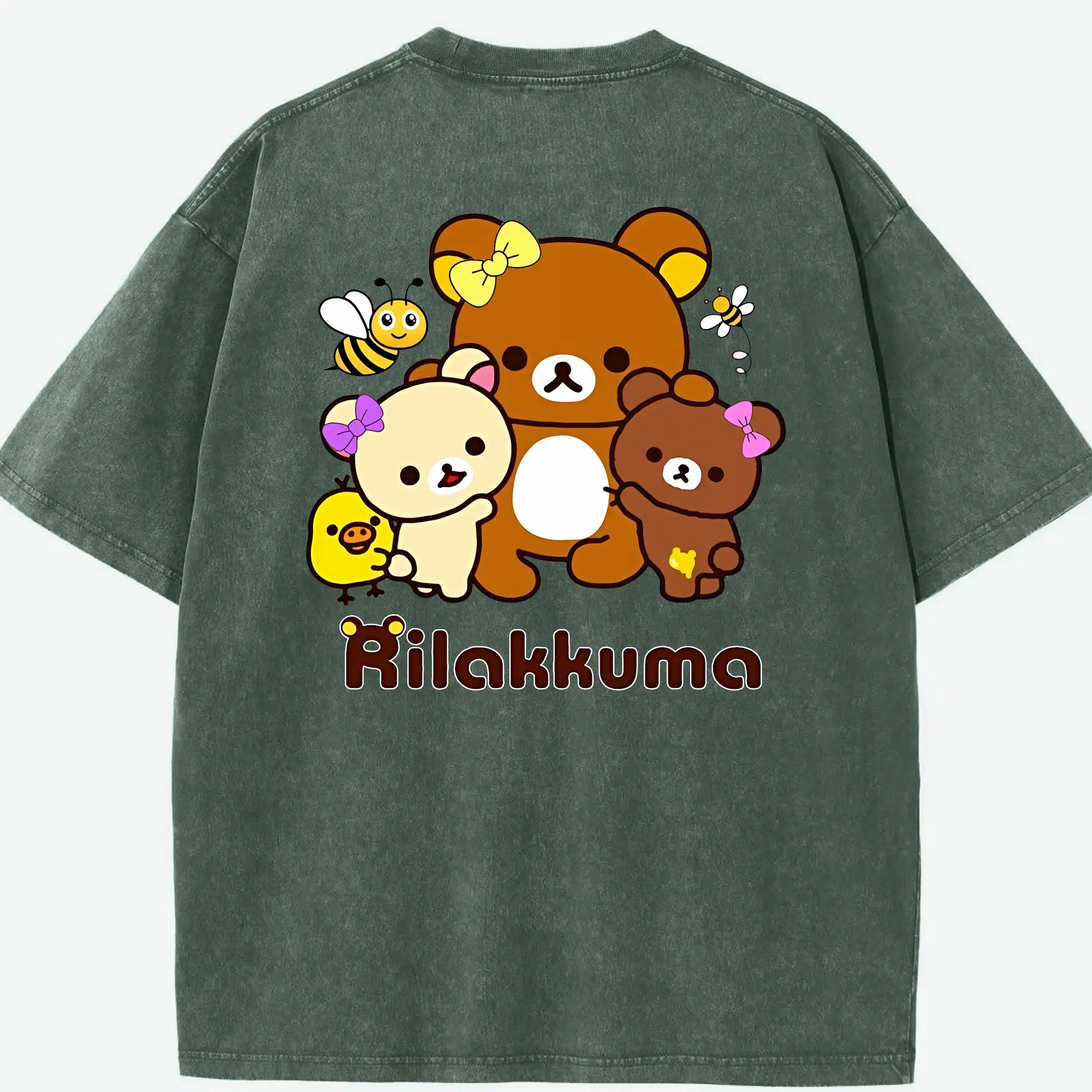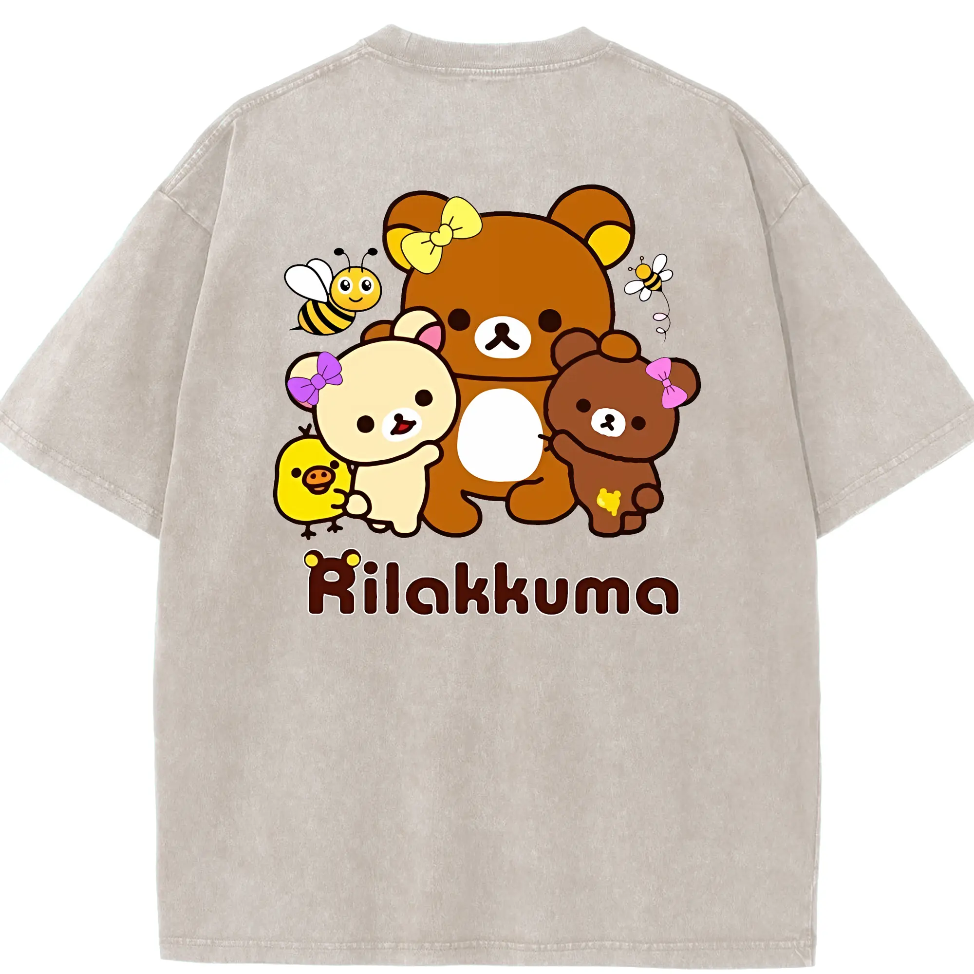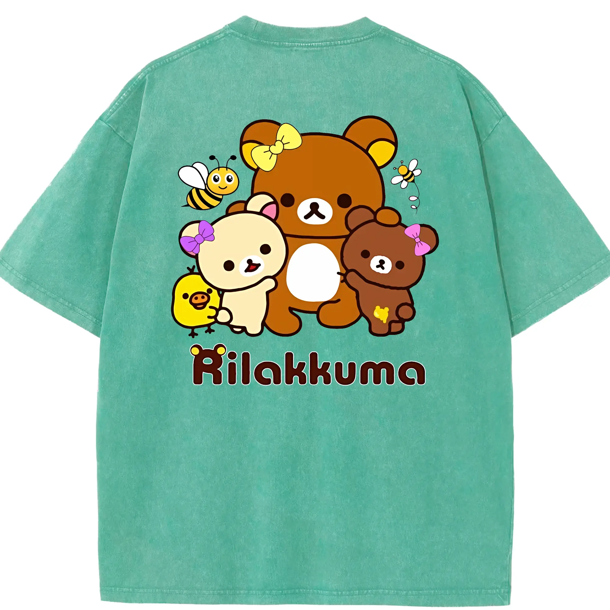 リラックマ (Rilakkuma) グッズ リラックマ (Rilakkuma) - 綿100% ヴィンテージ風 半袖Tシャツ ・ フロントプリント ・ 柔らか肌触り ・ 通気性 快適 ・ スポーツ カジュアル 外出用