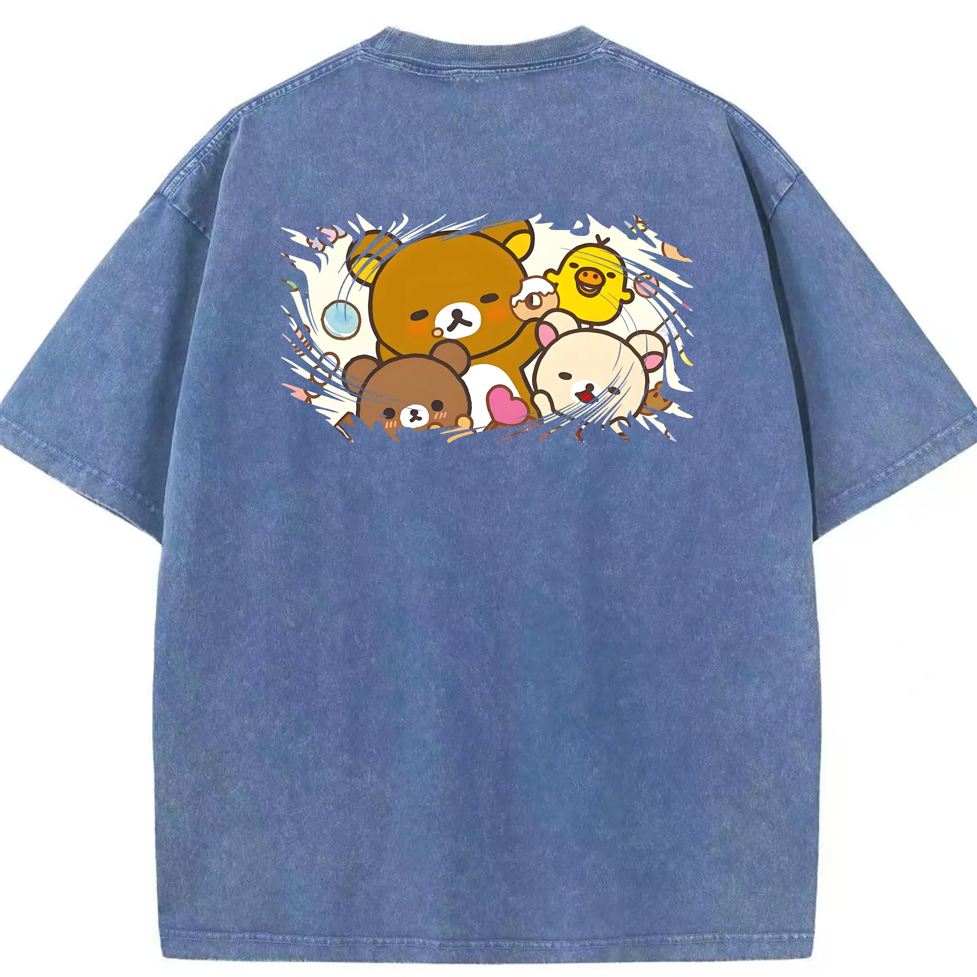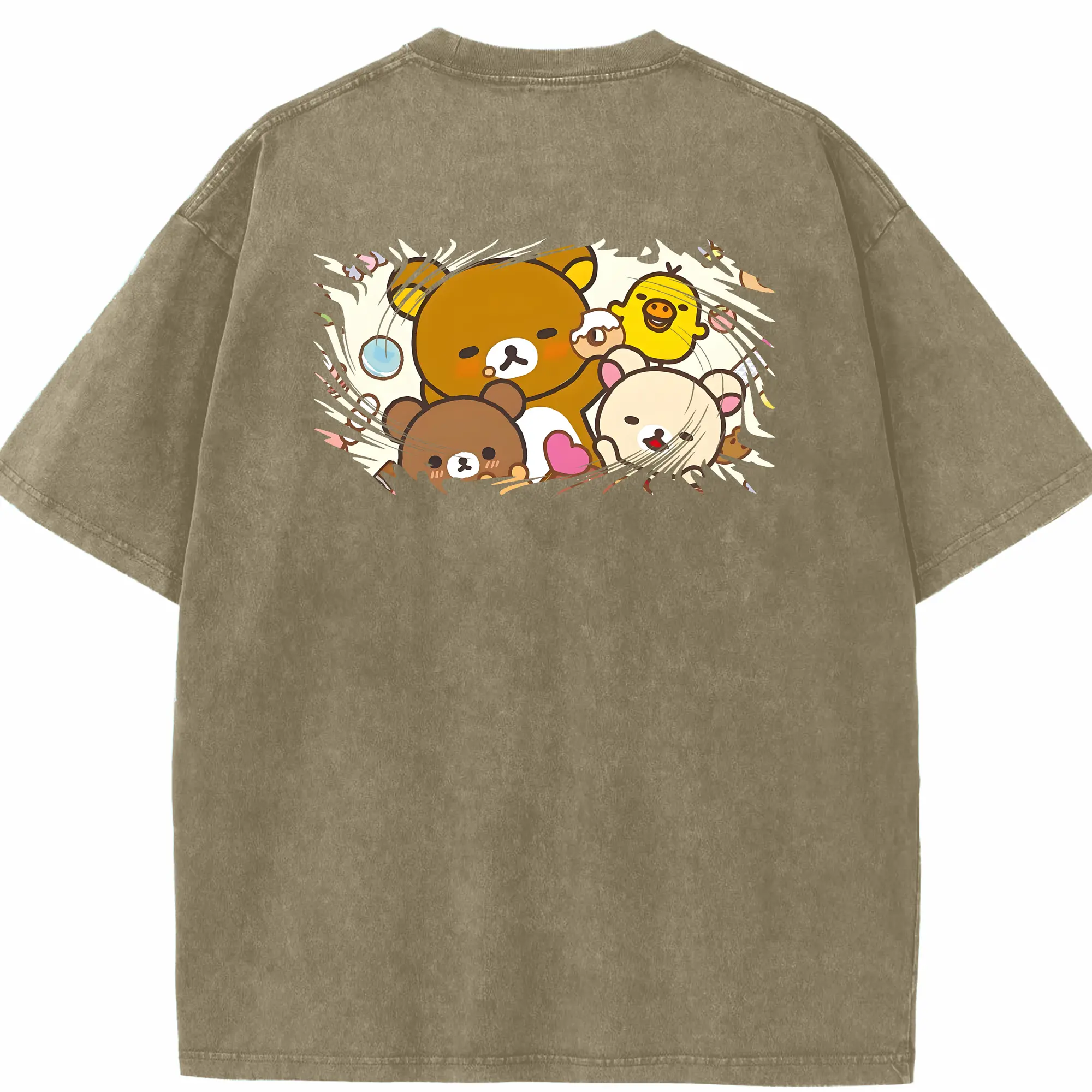 リラックマ (Rilakkuma) グッズ リラックマ (Rilakkuma) - 綿100% ヴィンテージ風 半袖Tシャツ ・ フロントプリント ・ 柔らか肌触り ・ 通気性 快適 ・ スポーツ カジュアル 外出用