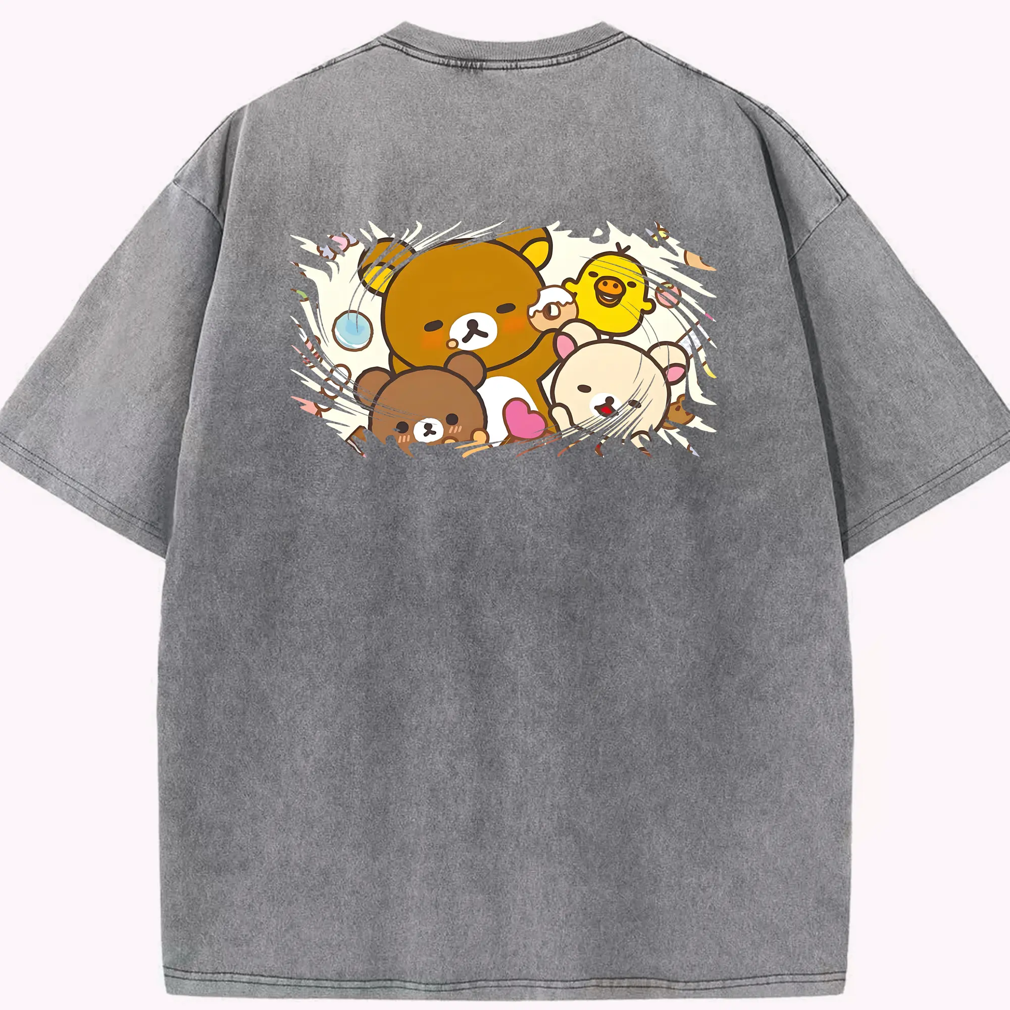 リラックマ (Rilakkuma) グッズ リラックマ (Rilakkuma) - 綿100% 半袖Tシャツ ・ バックプリント ・ 快適 通気性 ・ 日常使い 散歩 スポーツ用