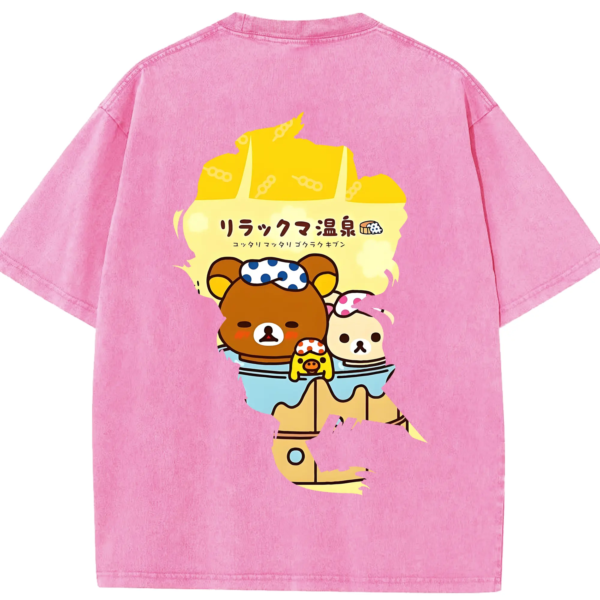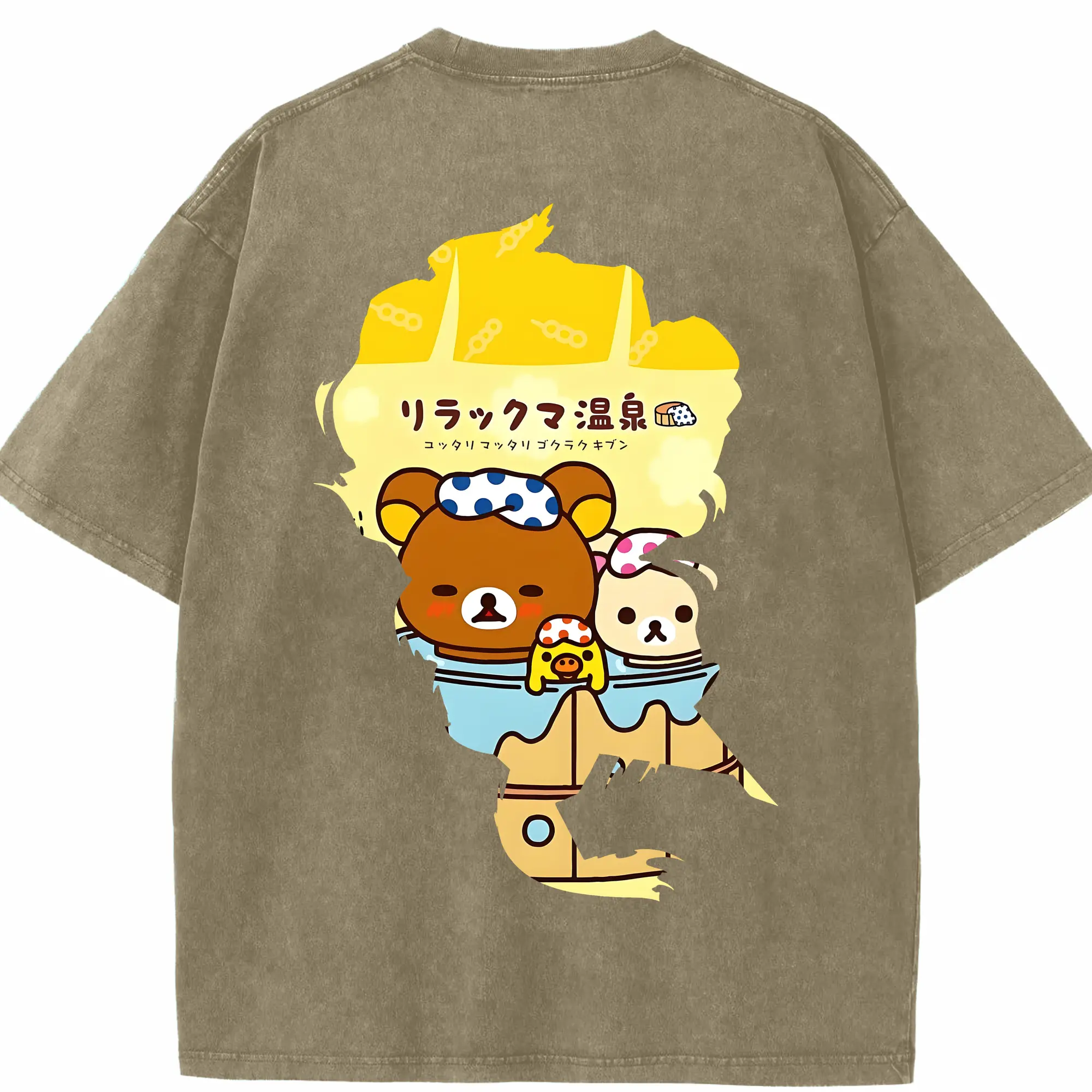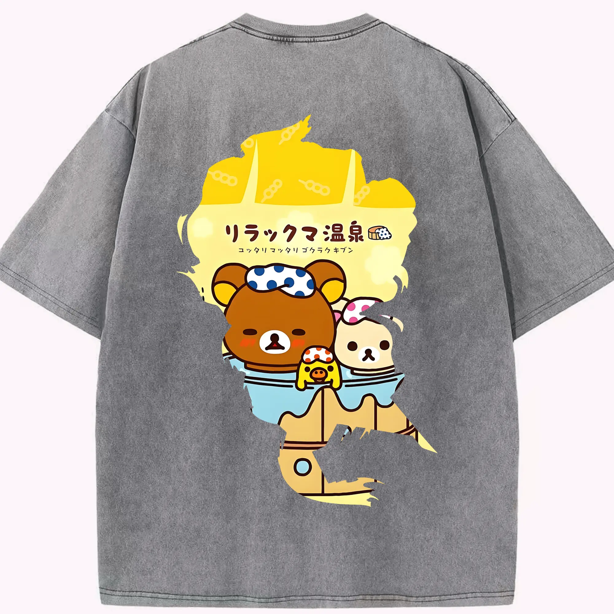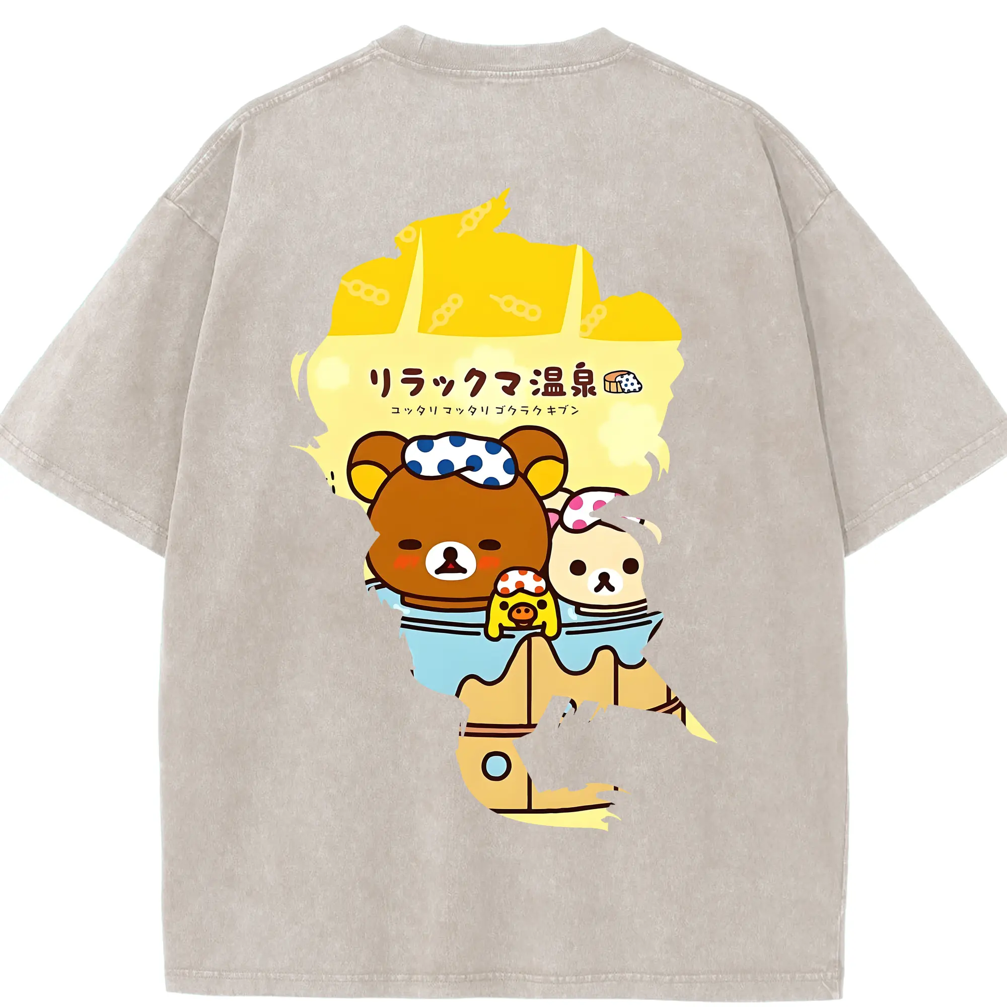 リラックマ (Rilakkuma) グッズ リラックマ (Rilakkuma) - 綿100% ヴィンテージ風 半袖Tシャツ ・ フロントプリント ・ 柔らか肌触り ・ 通気性 快適 ・ スポーツ カジュアル 外出用