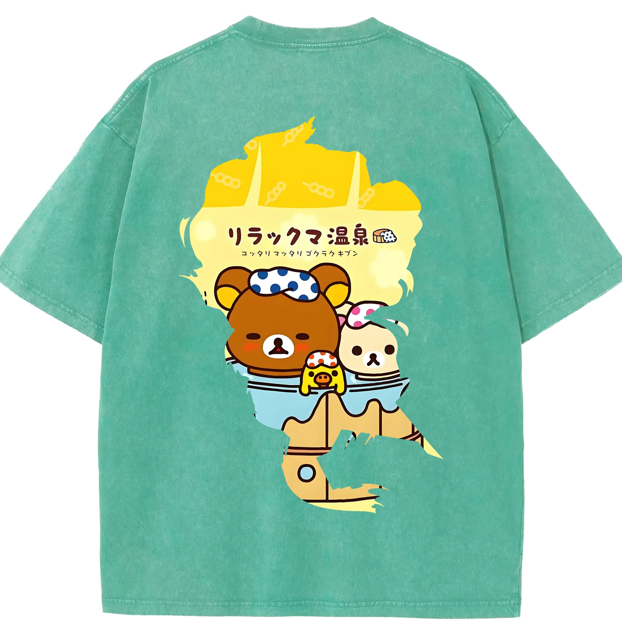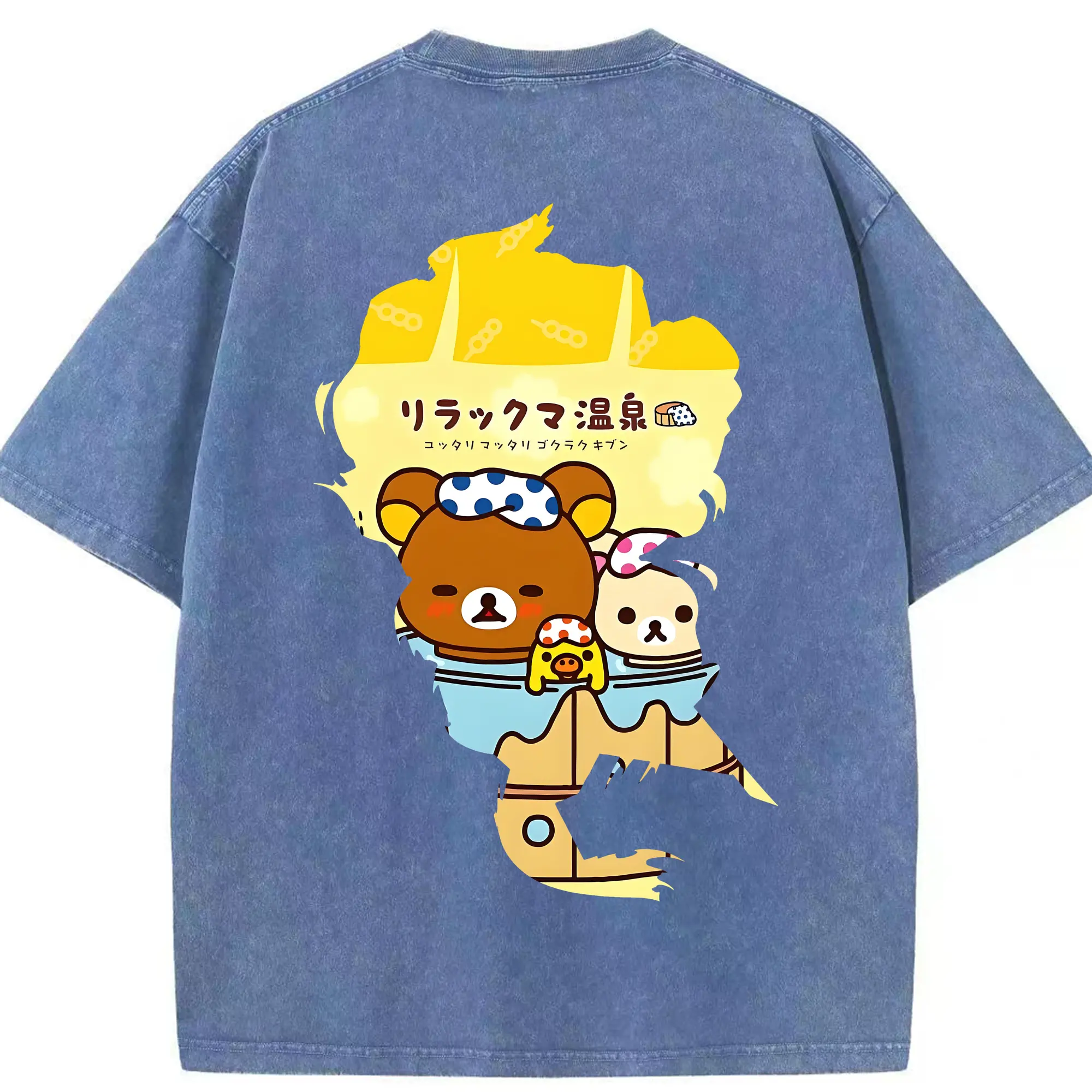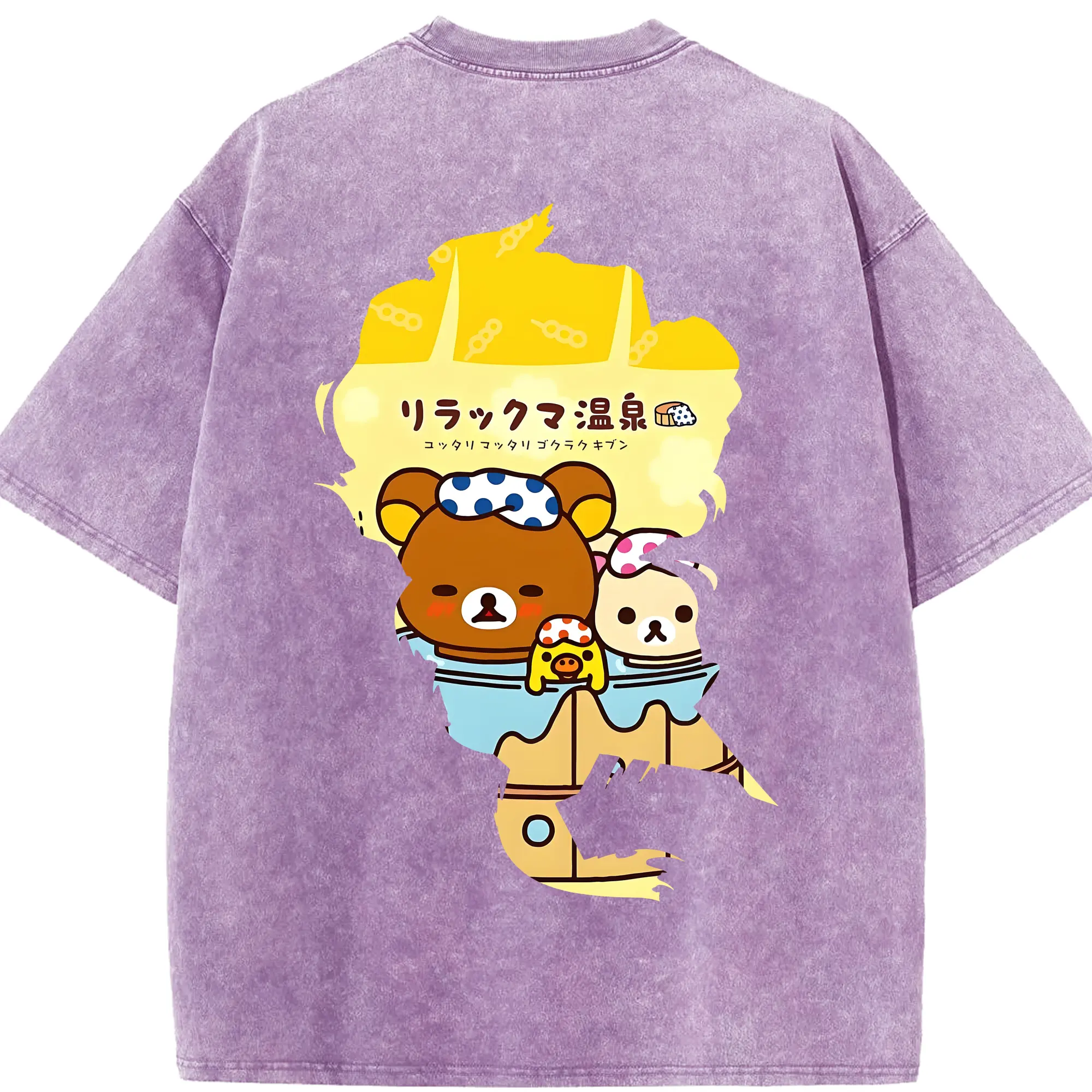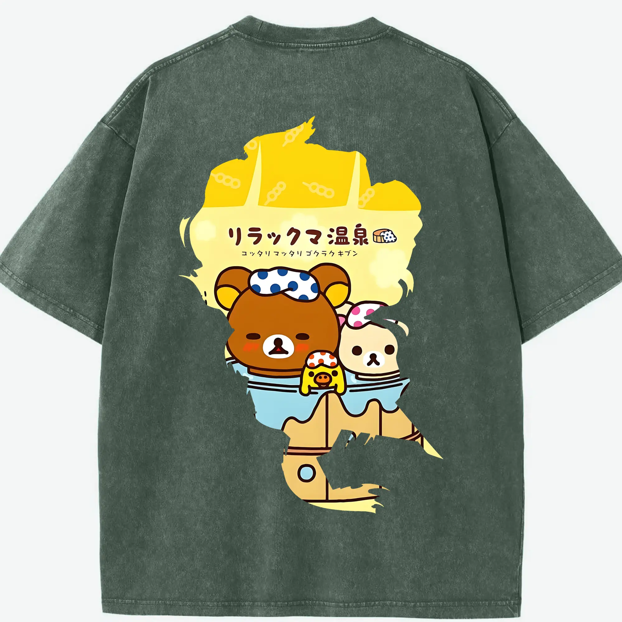 リラックマ (Rilakkuma) グッズ リラックマ (Rilakkuma) - 綿100% ヴィンテージ風 半袖Tシャツ ・ フロントプリント ・ 柔らか肌触り ・ 通気性 快適 ・ スポーツ カジュアル 外出用