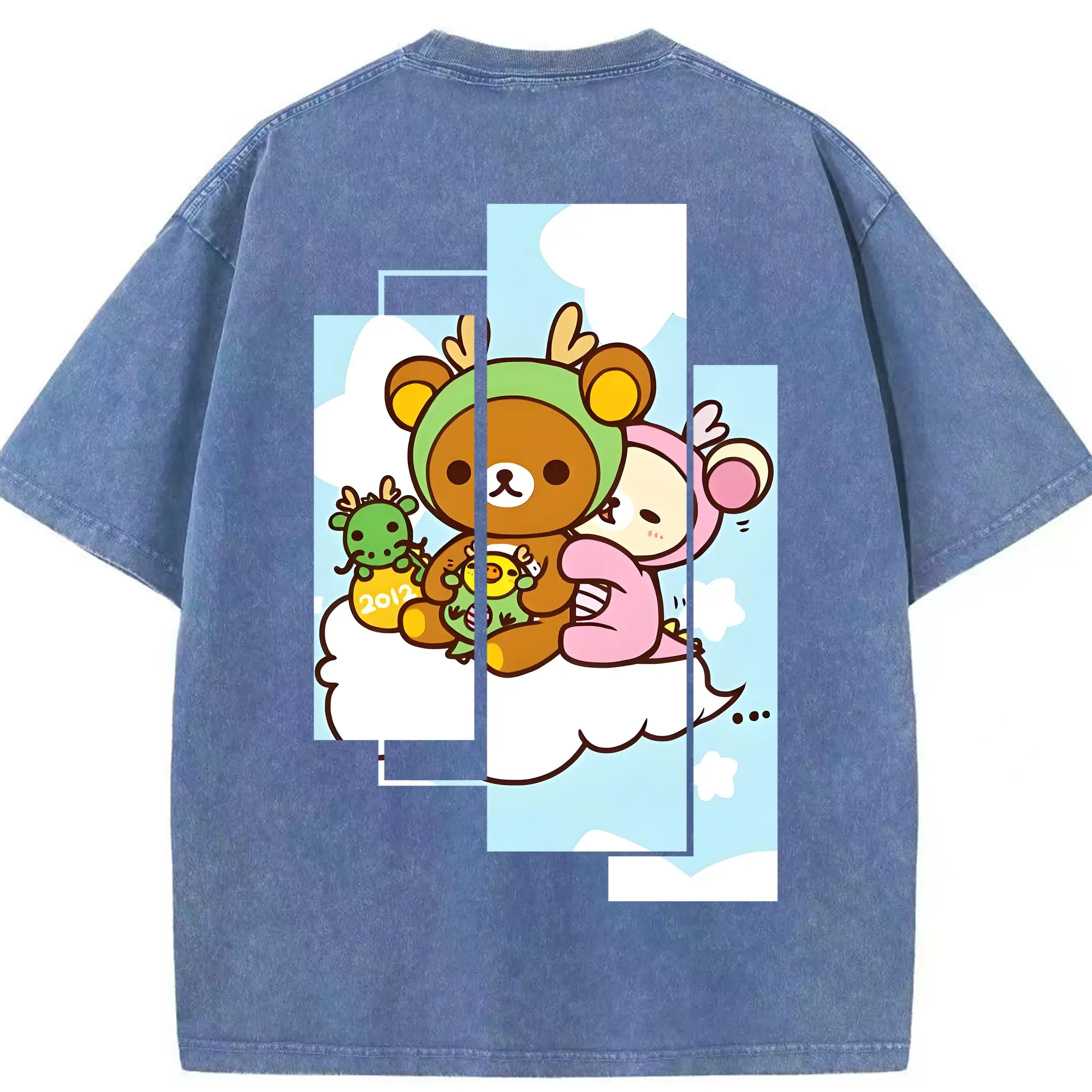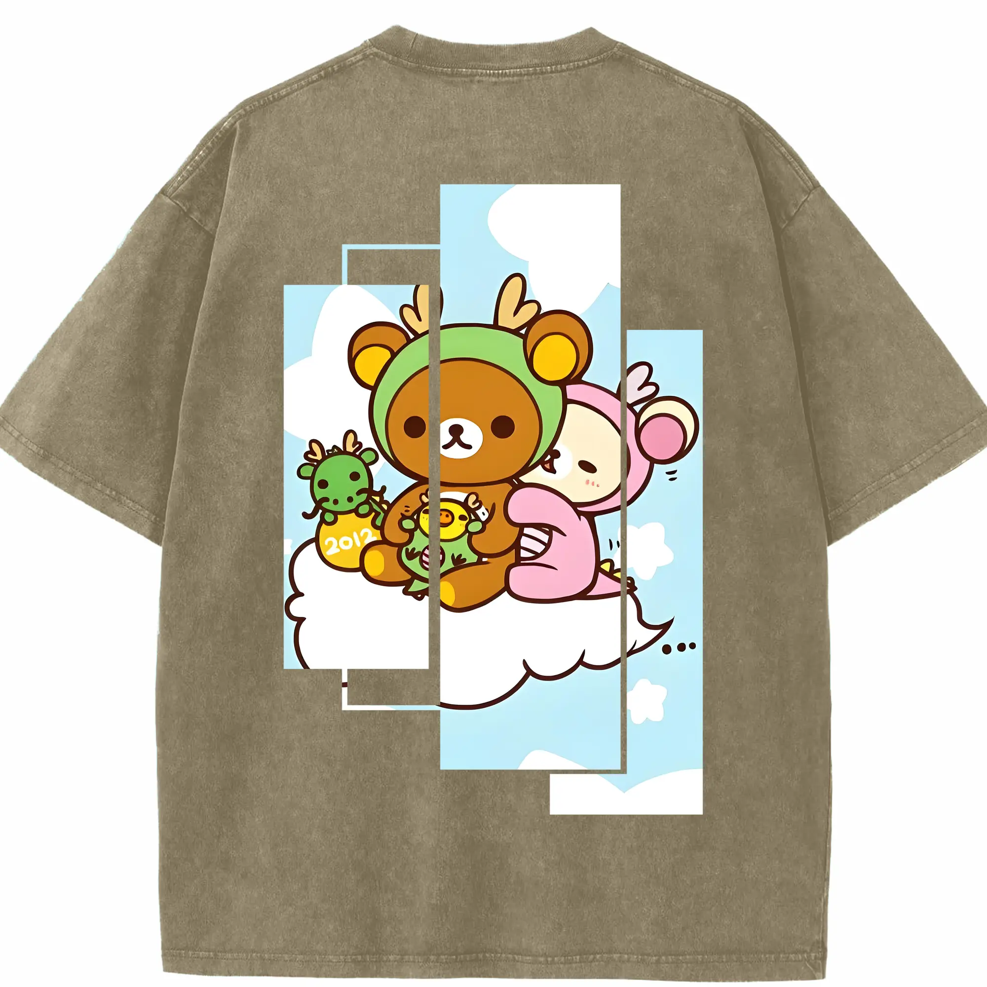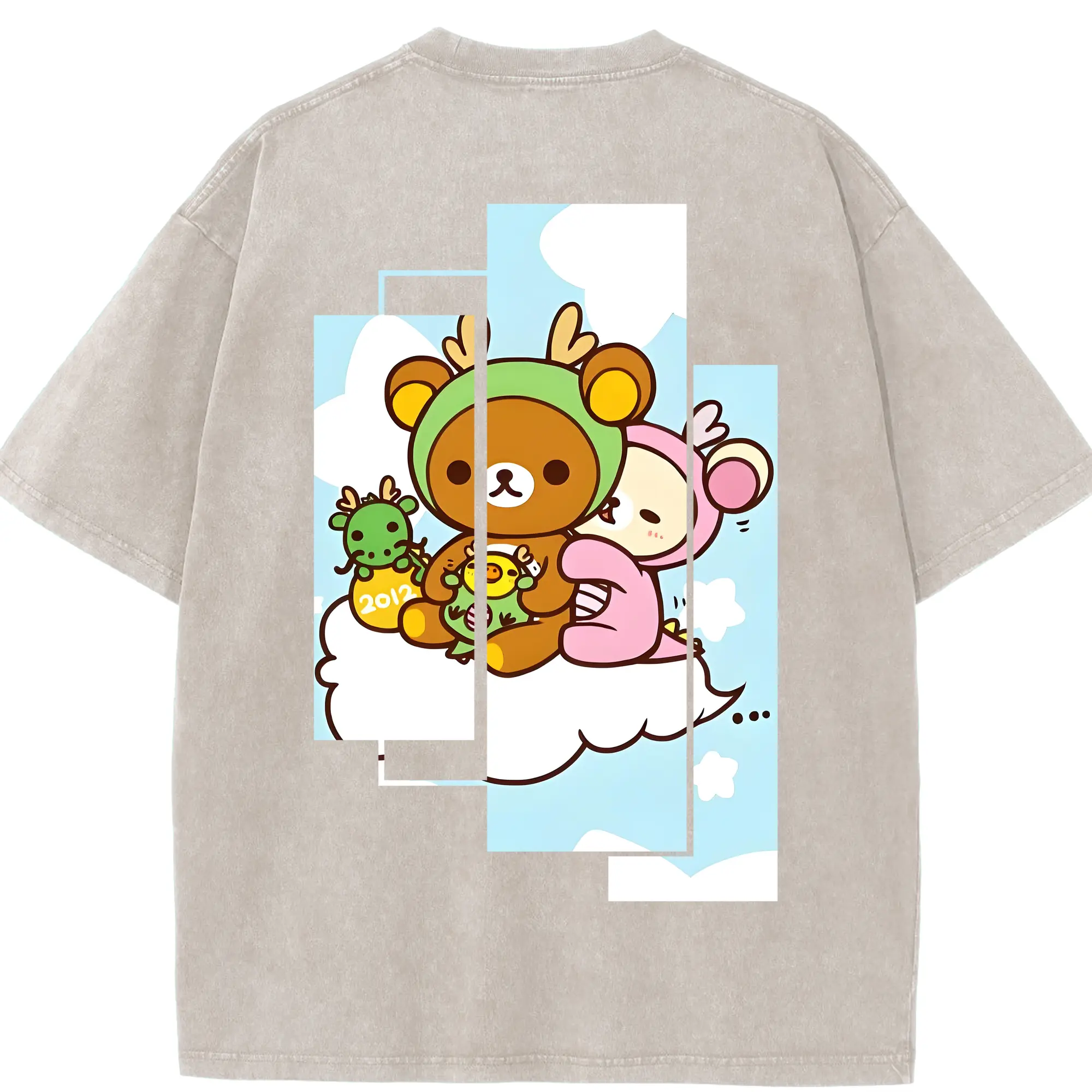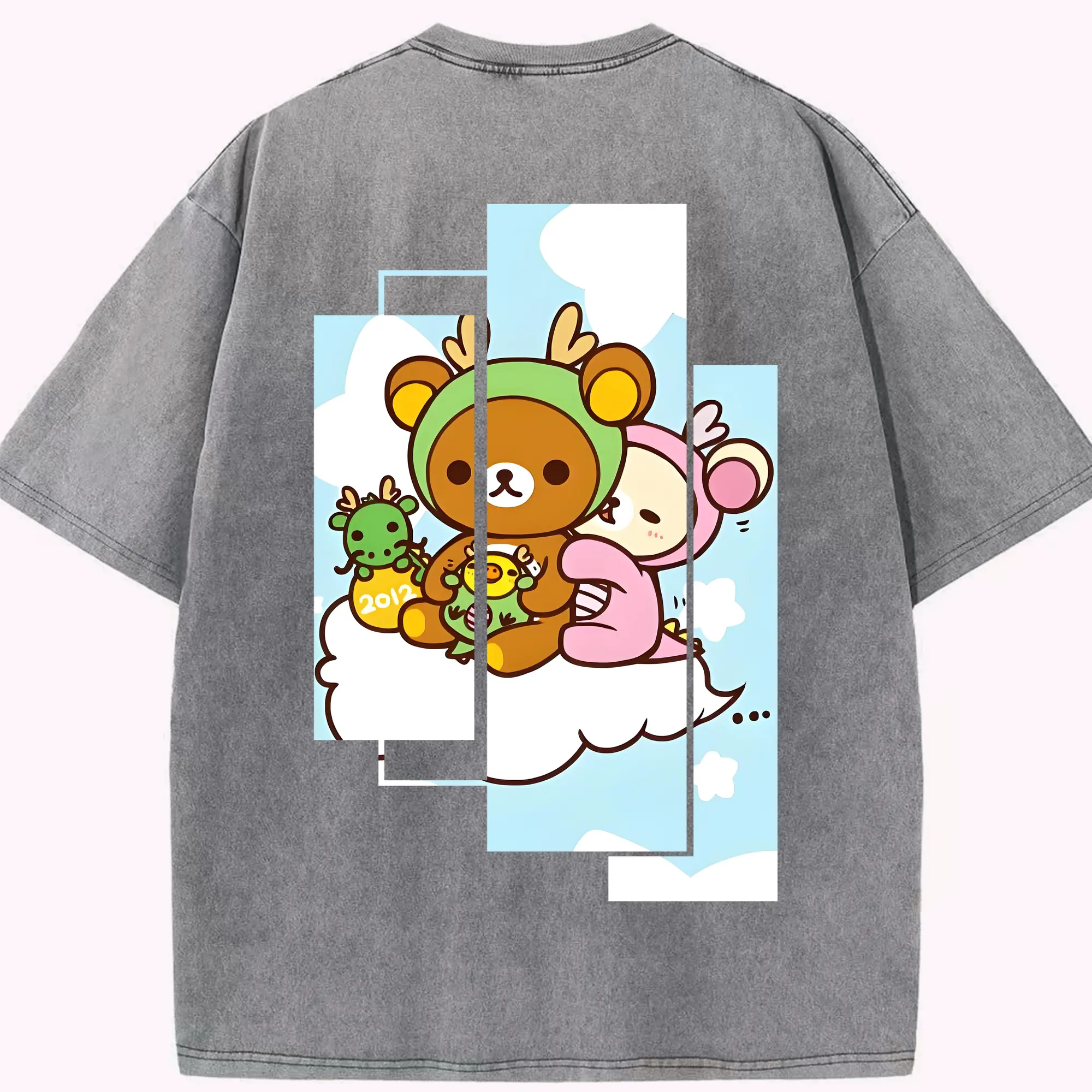 リラックマ (Rilakkuma) グッズ リラックマ (Rilakkuma) - 綿100% ヴィンテージ風 半袖Tシャツ ・ フロントプリント ・ 柔らか肌触り ・ 通気性 快適 ・ スポーツ カジュアル 外出用