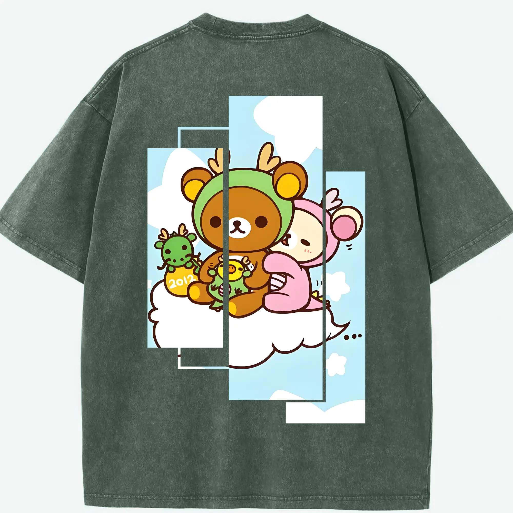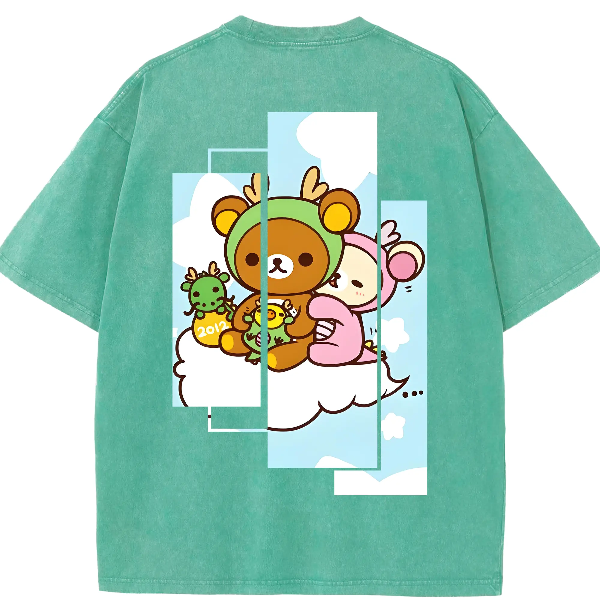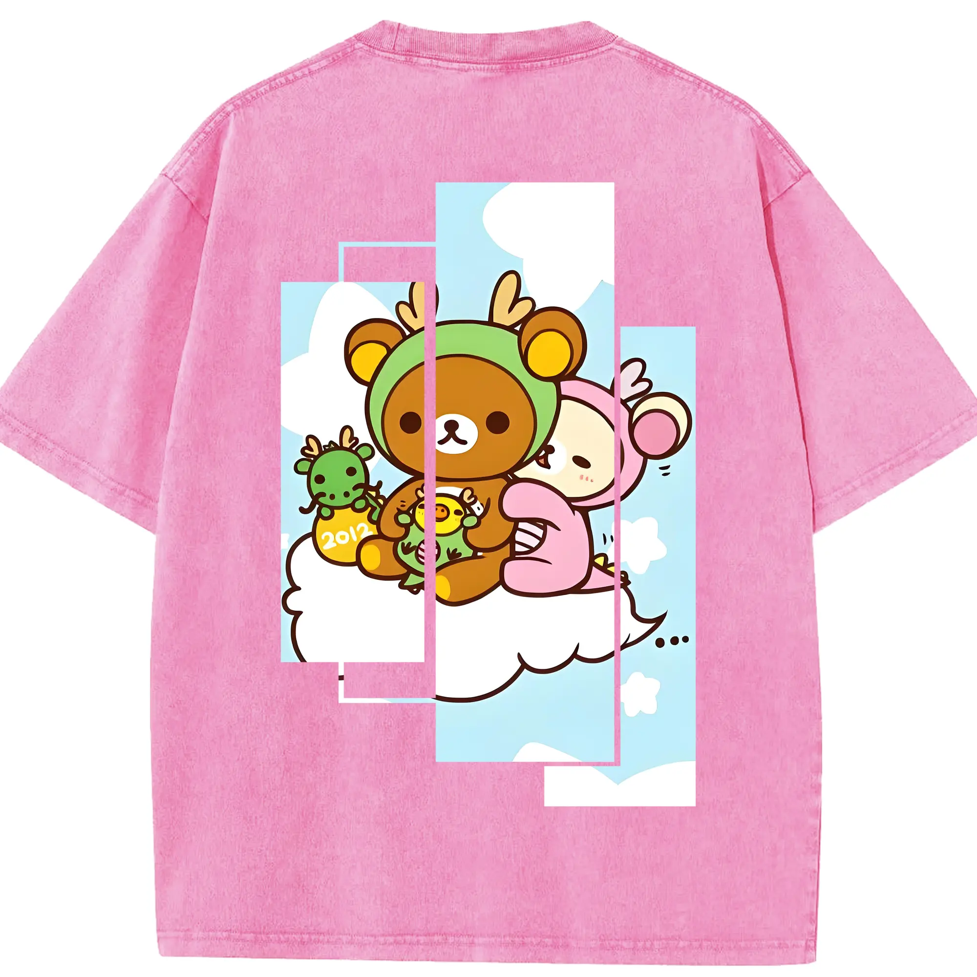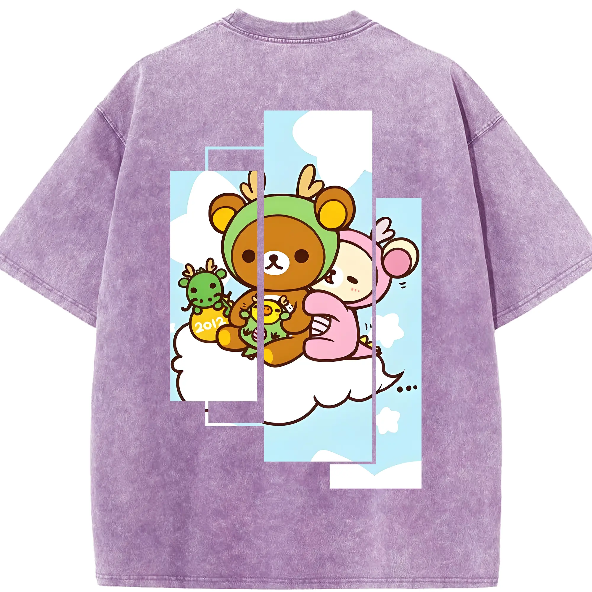 リラックマ (Rilakkuma) グッズ リラックマ (Rilakkuma) - 綿100% ヴィンテージ風 半袖Tシャツ ・ フロントプリント ・ 柔らか肌触り ・ 通気性 快適 ・ スポーツ カジュアル 外出用