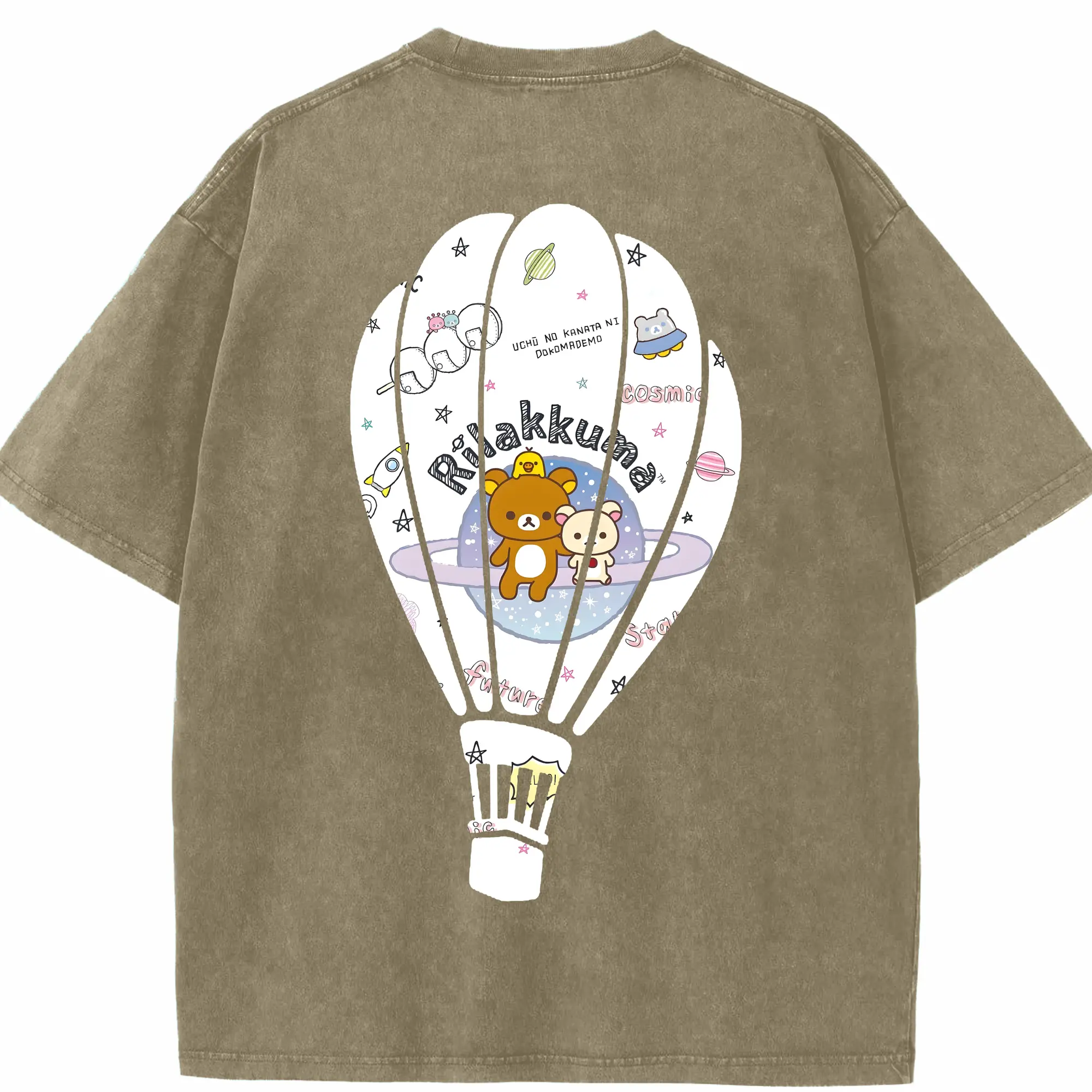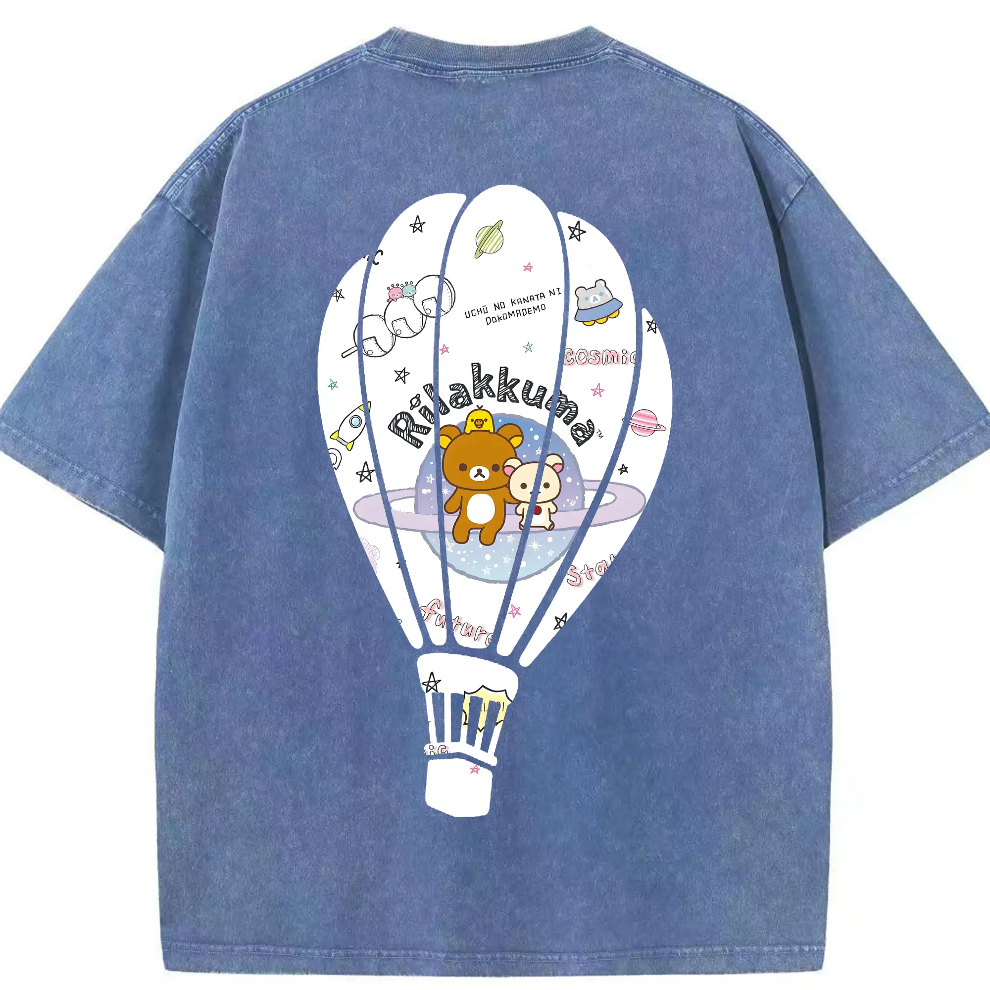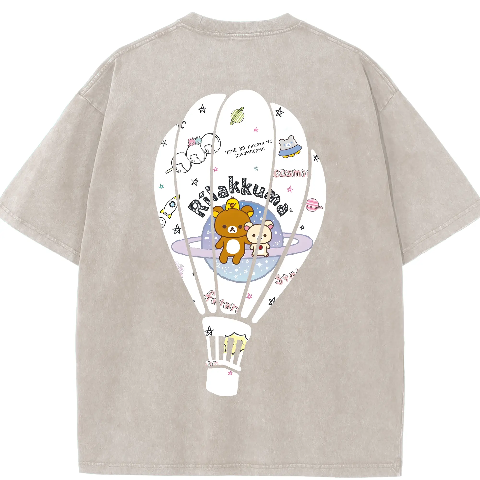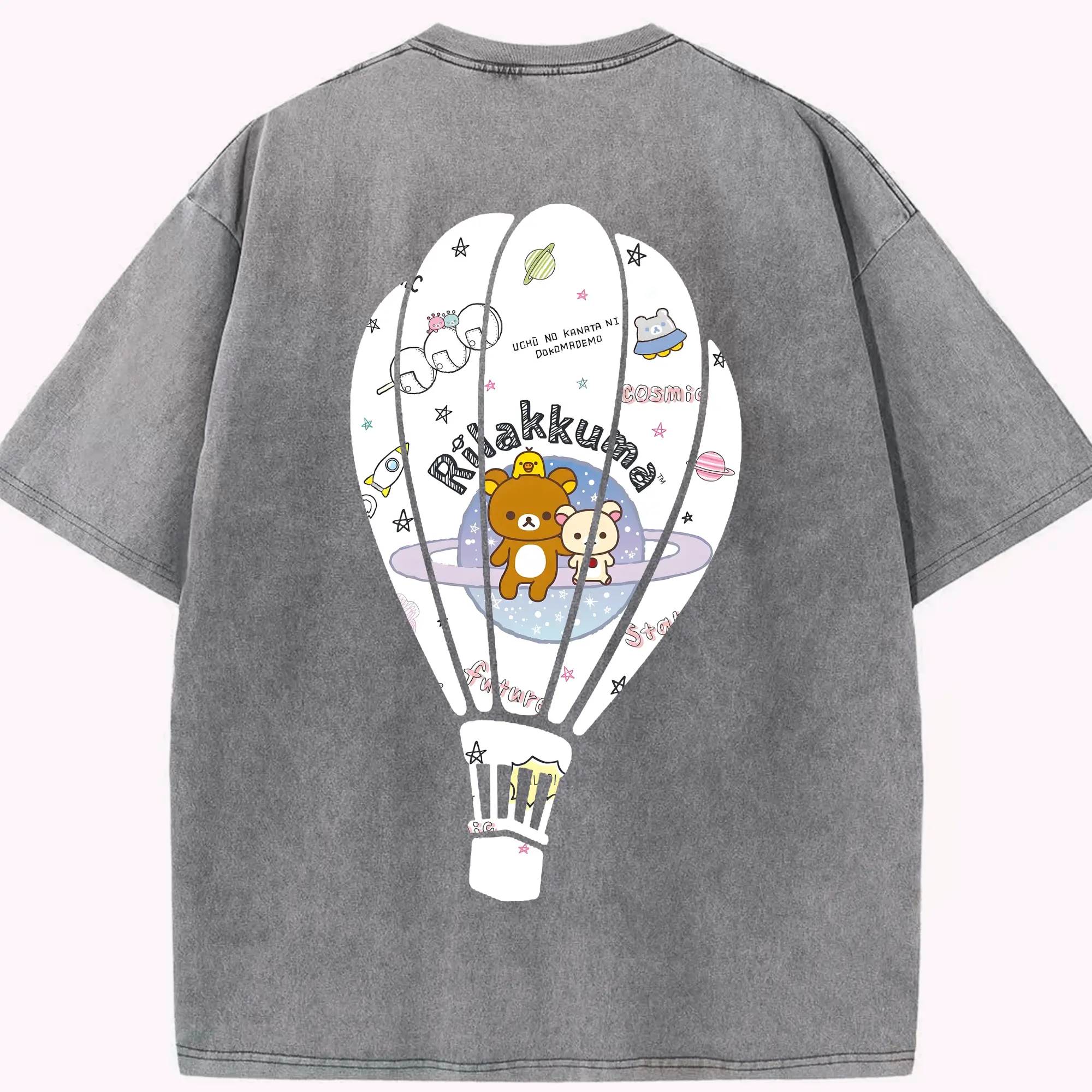 リラックマ (Rilakkuma) グッズ リラックマ (Rilakkuma) - 綿100% ヴィンテージ風 半袖Tシャツ ・ フロントプリント ・ 柔らか肌触り ・ 通気性 快適 ・ スポーツ カジュアル 外出用