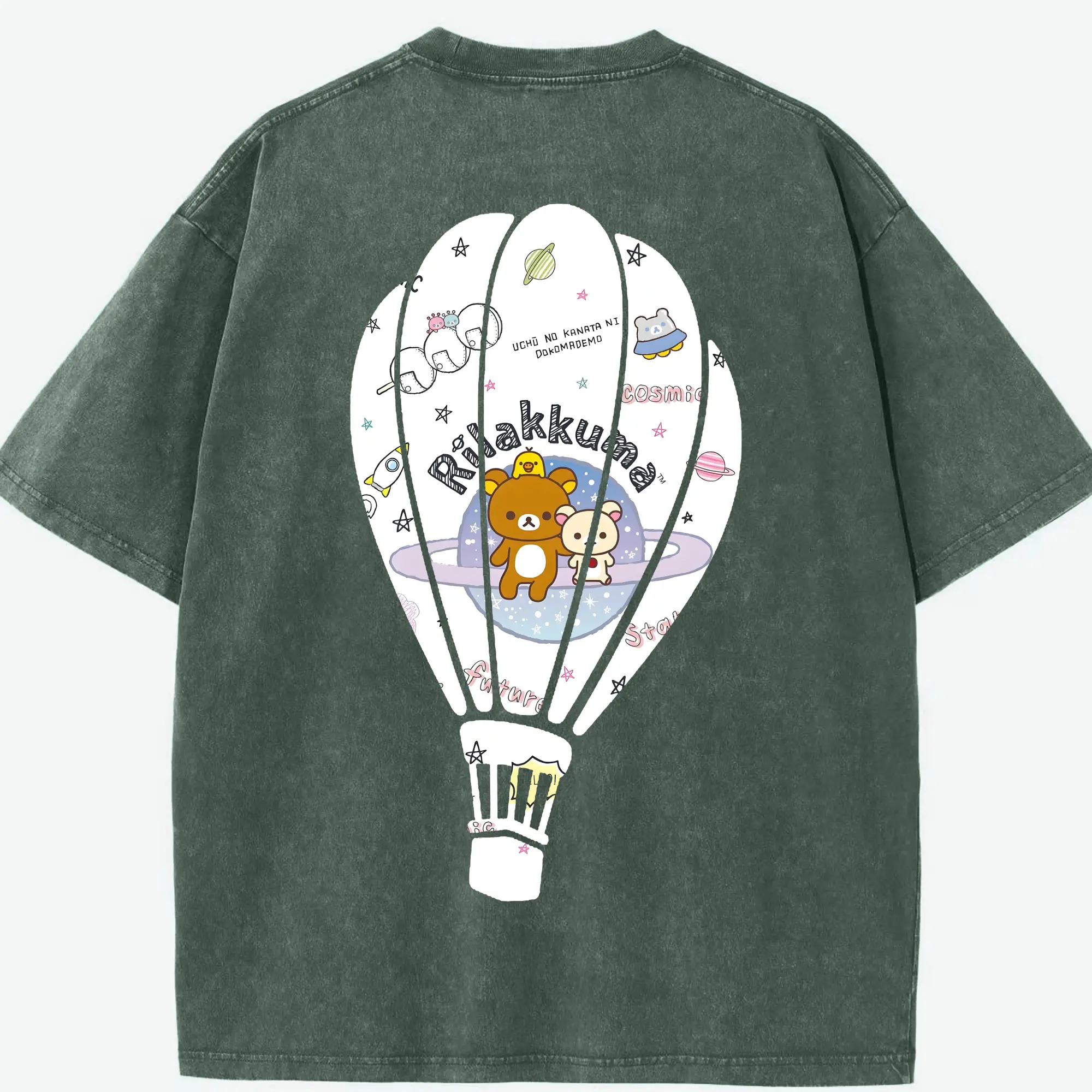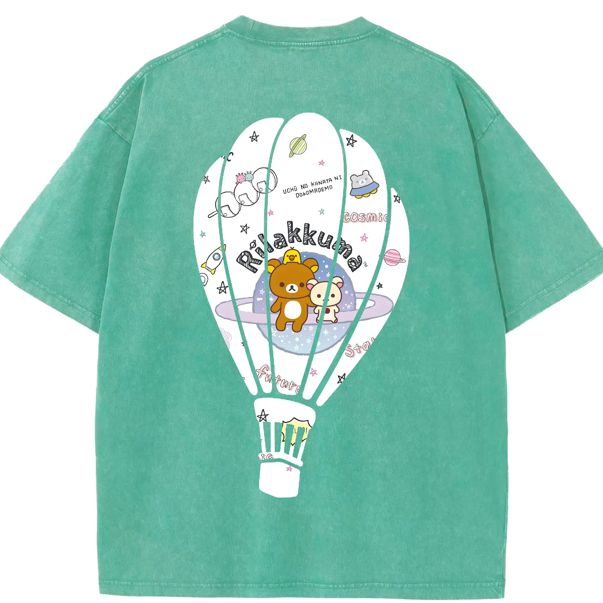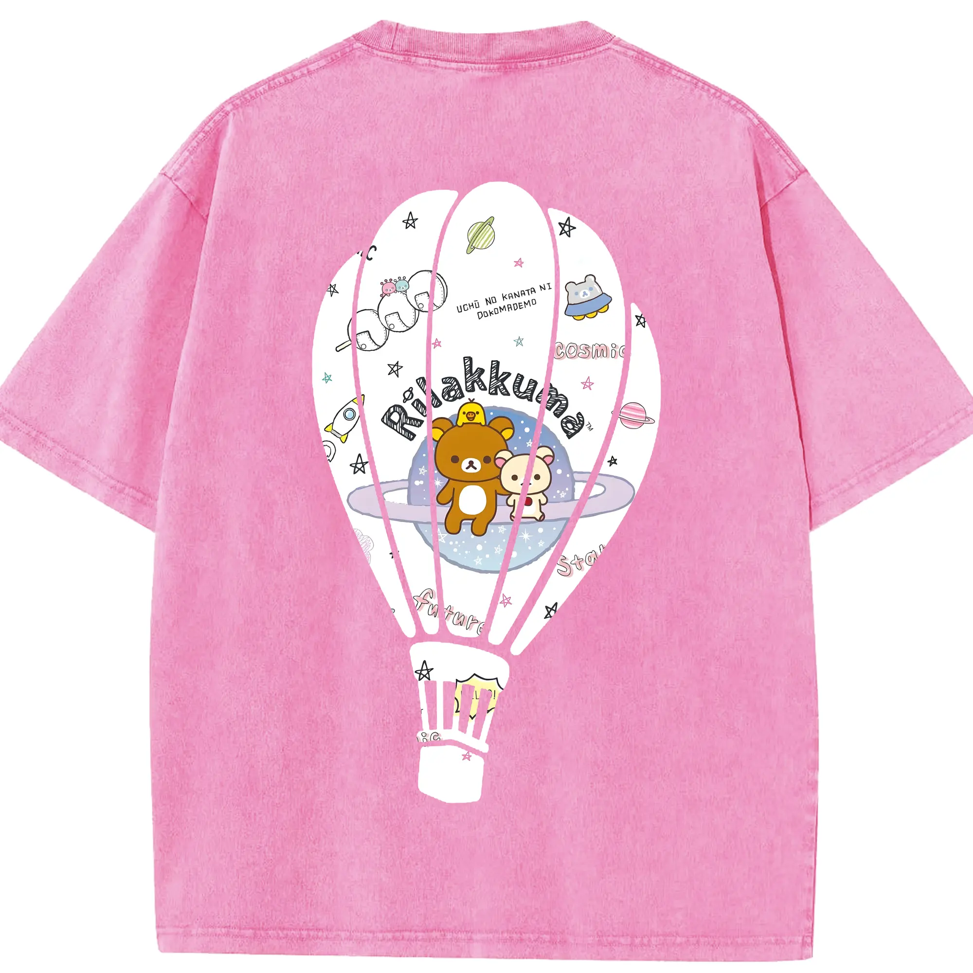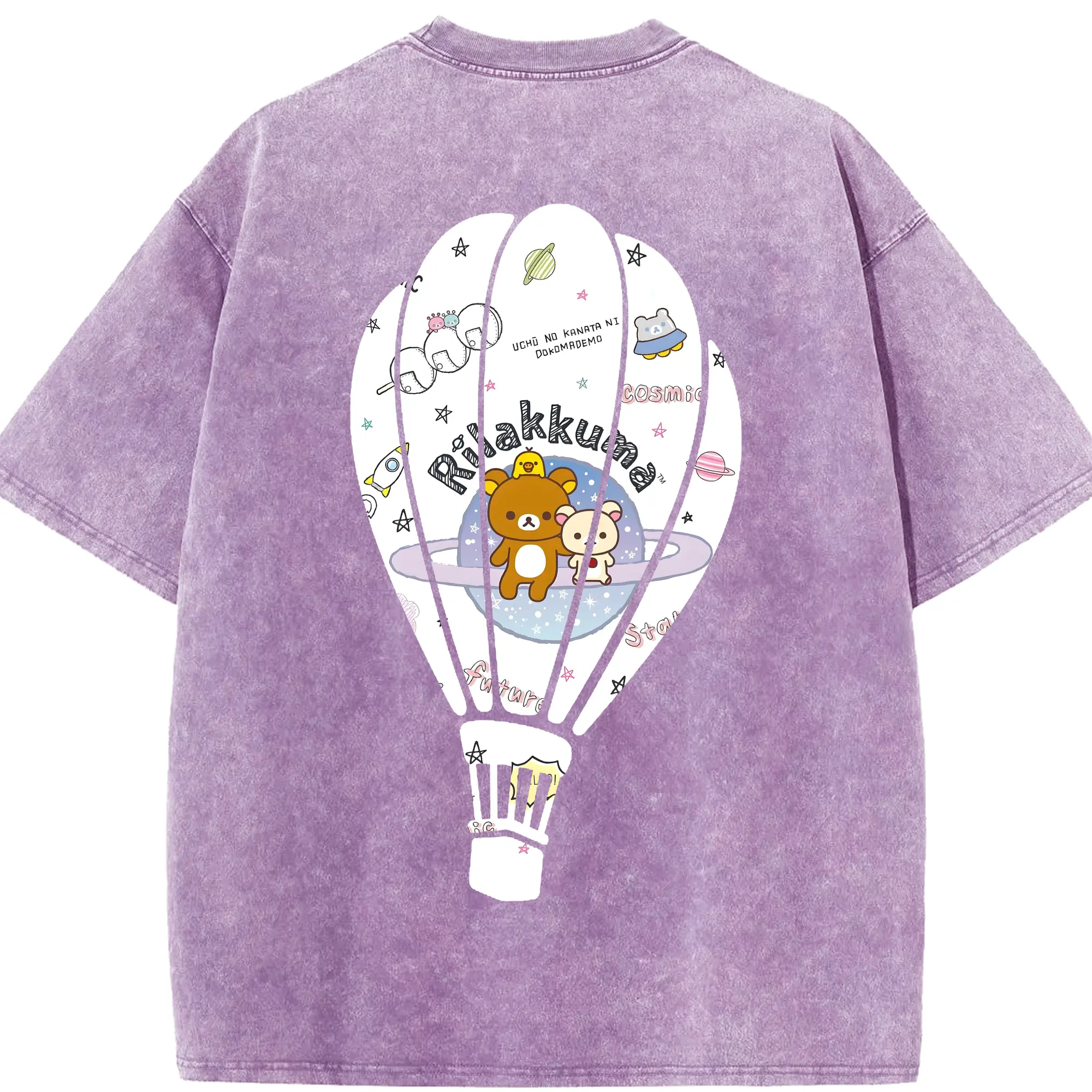 リラックマ (Rilakkuma) グッズ リラックマ (Rilakkuma) - 綿100% ヴィンテージ風 半袖Tシャツ ・ フロントプリント ・ 柔らか肌触り ・ 通気性 快適 ・ スポーツ カジュアル 外出用