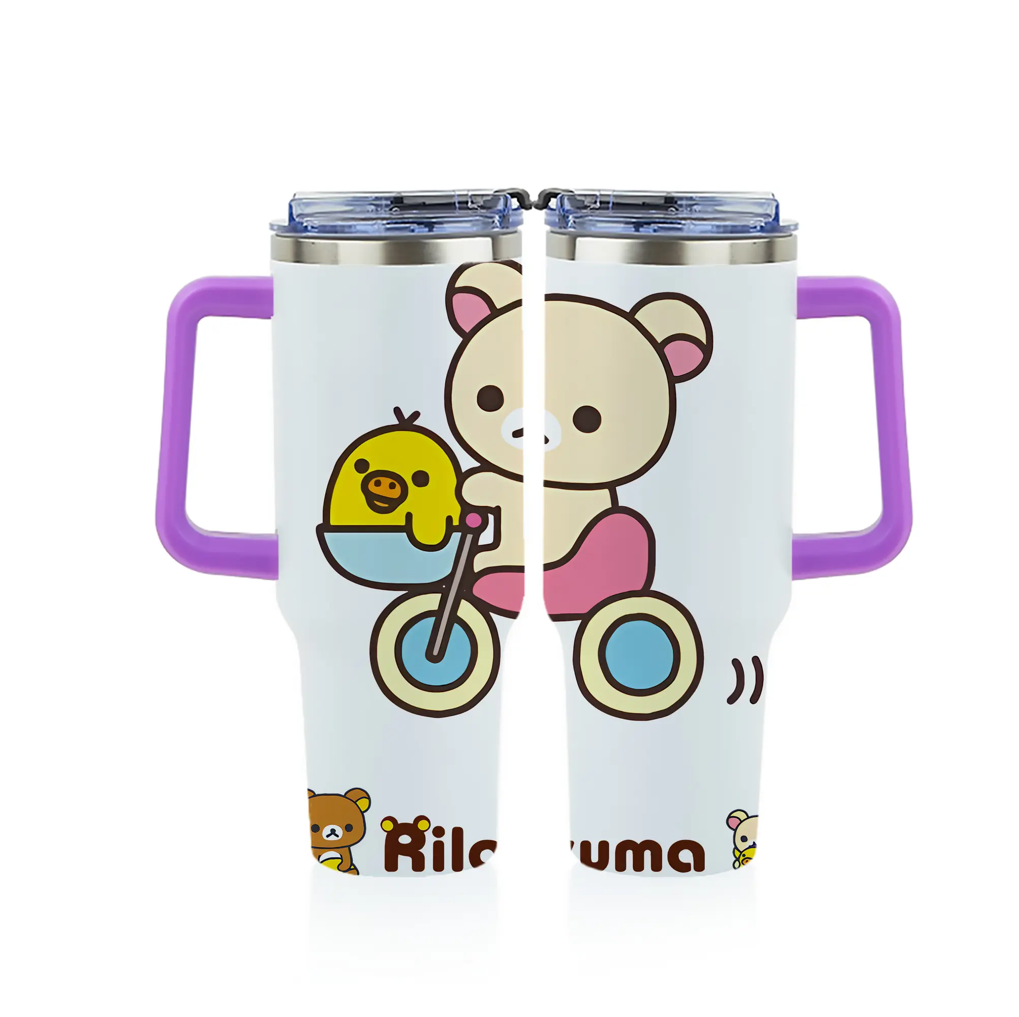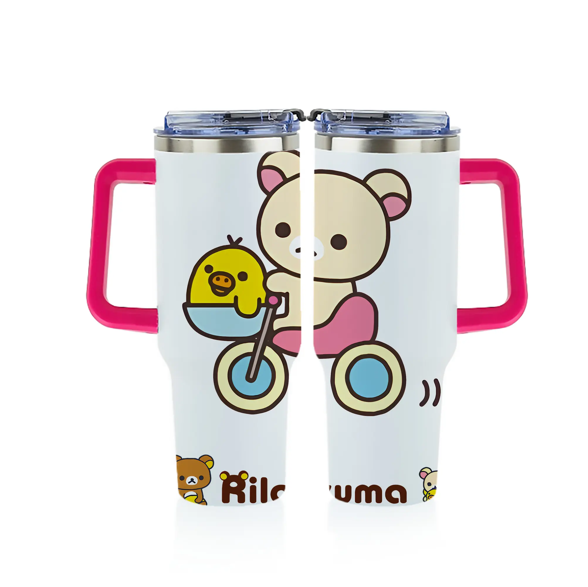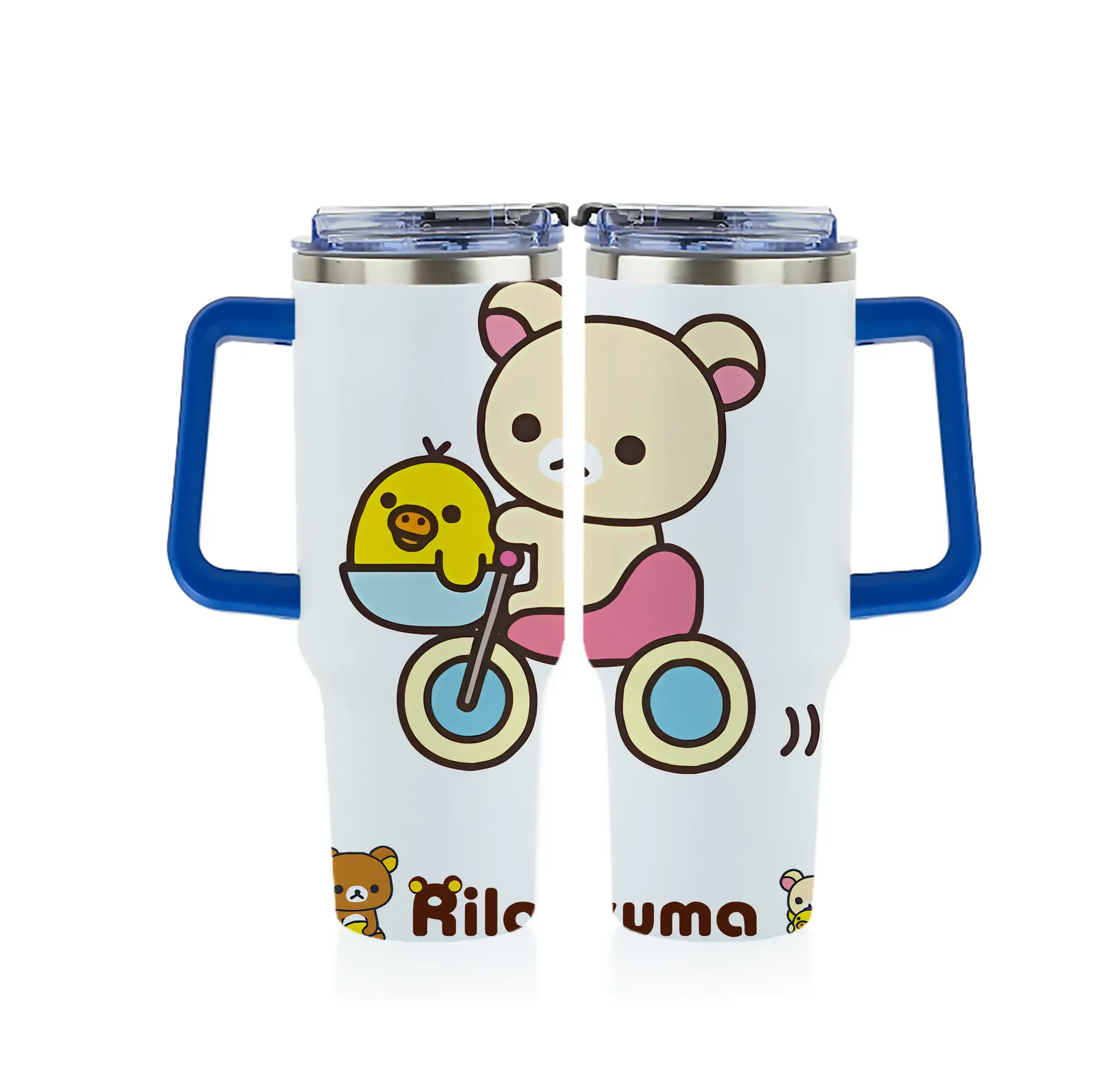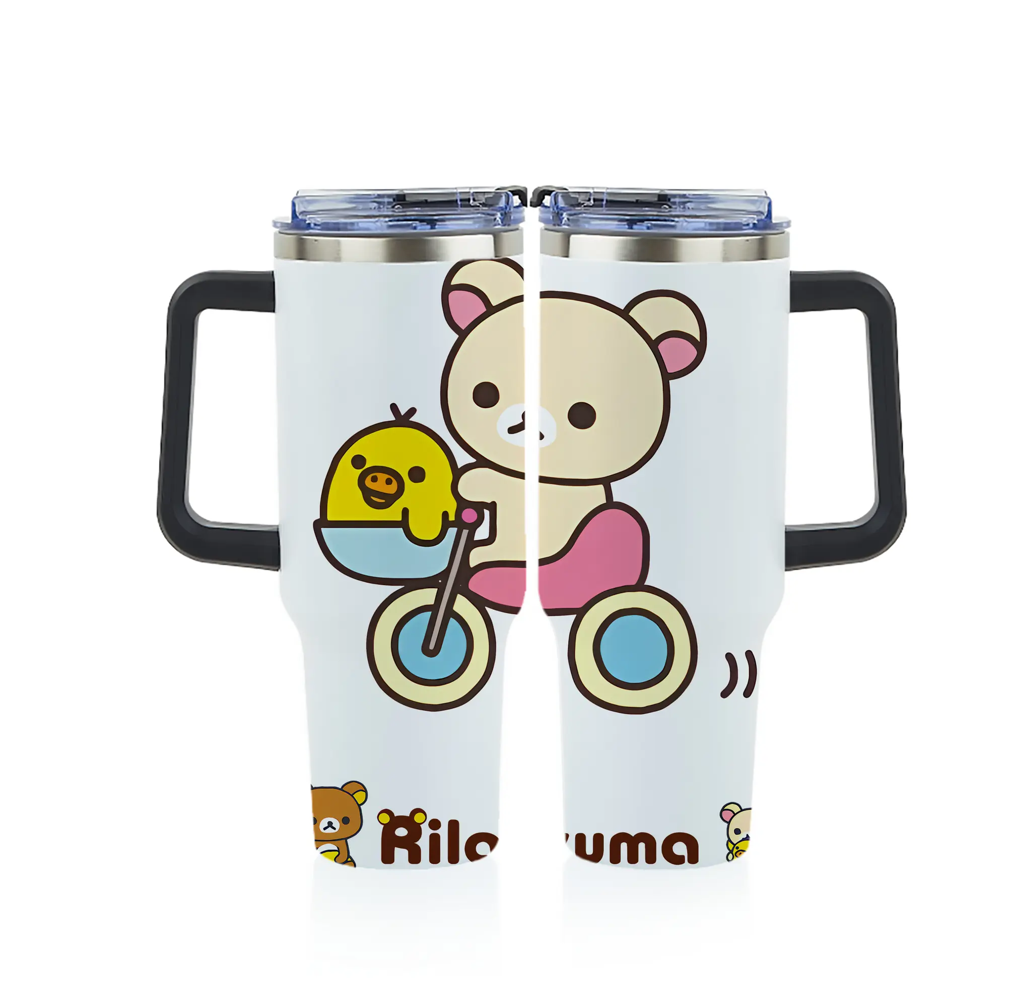 リラックマ (Rilakkuma) グッズ コリラックマ (Korirakkuma) - 1200mL フルプリント車用タンブラー ・ 304ステンレス 内側 ・ 201ステンレス 外側 ・ 保温 保冷 ・ 通勤 ドライブ アウトドア用