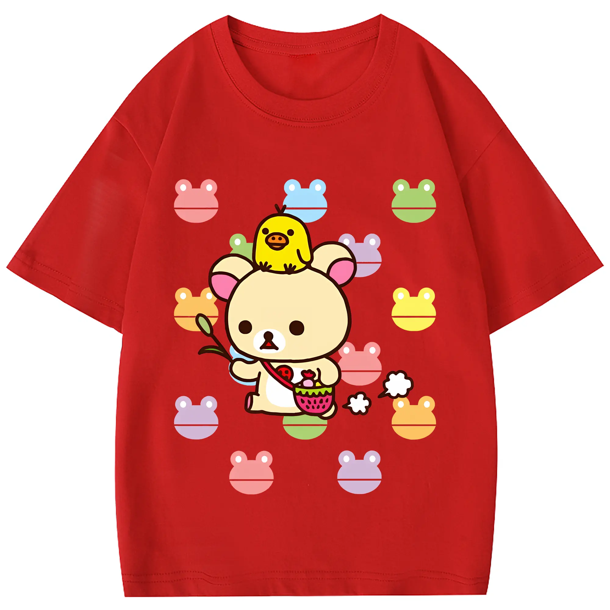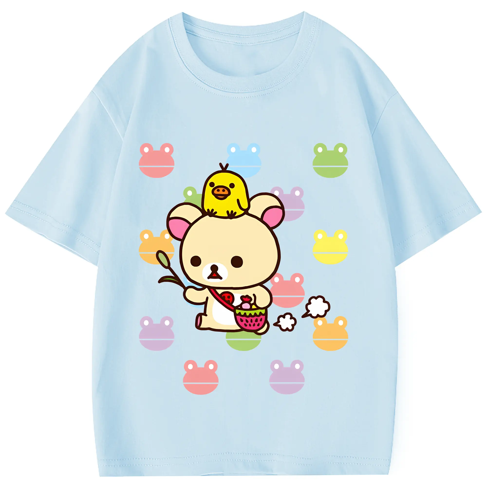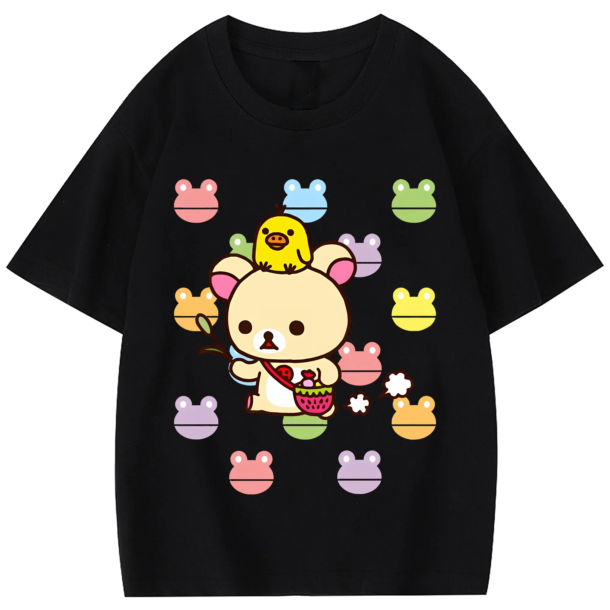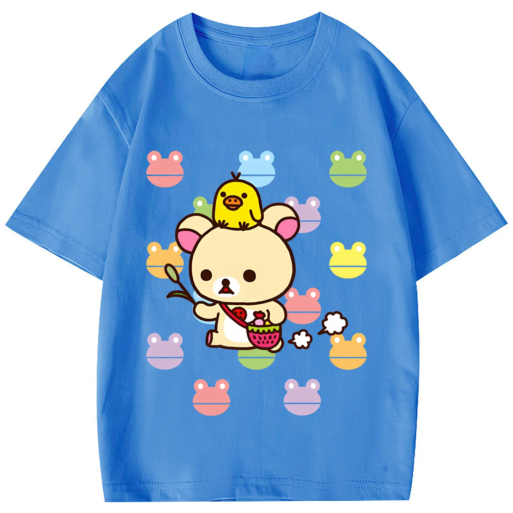 リラックマ (Rilakkuma) グッズ コリラックマ (Korirakkuma) - 綿100% 半袖Tシャツ ・ フロントプリント ・ 快適 通気性 ・ 日常使い 散歩 スポーツ用