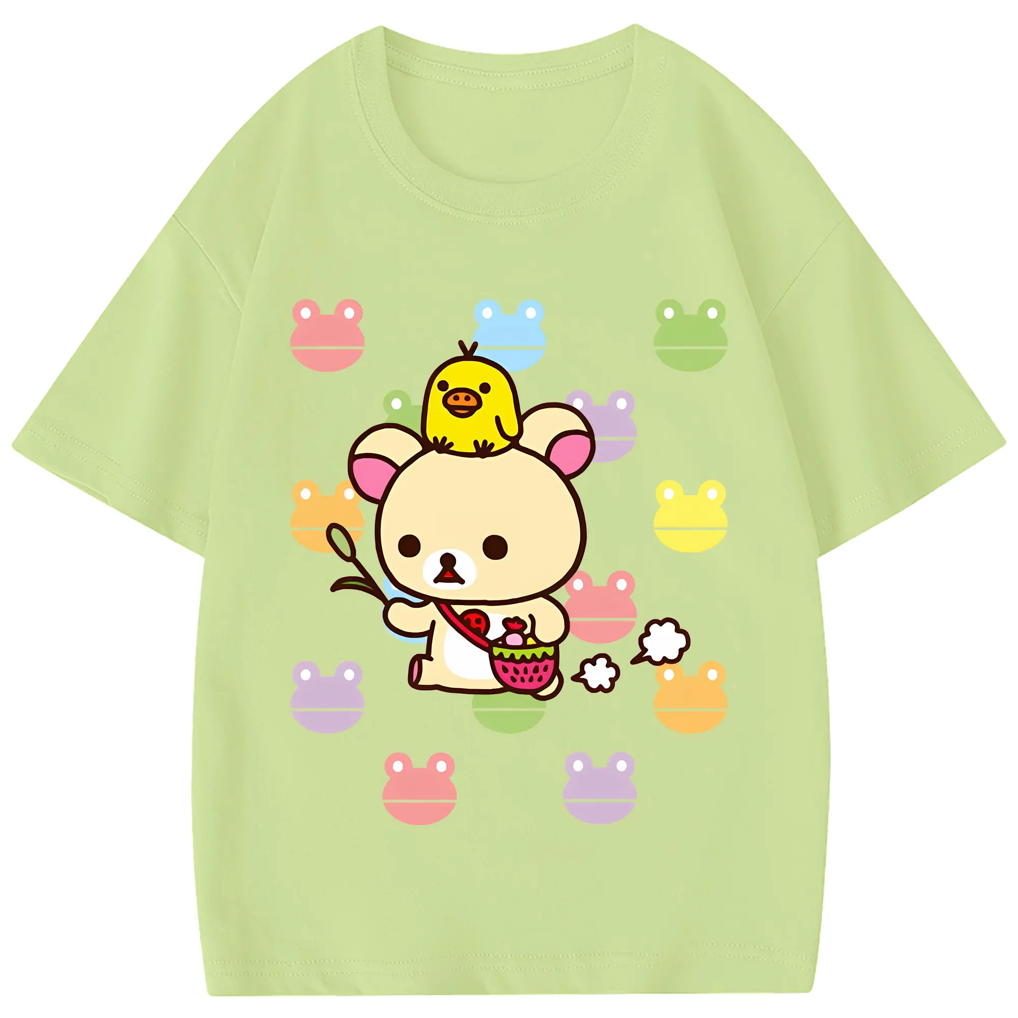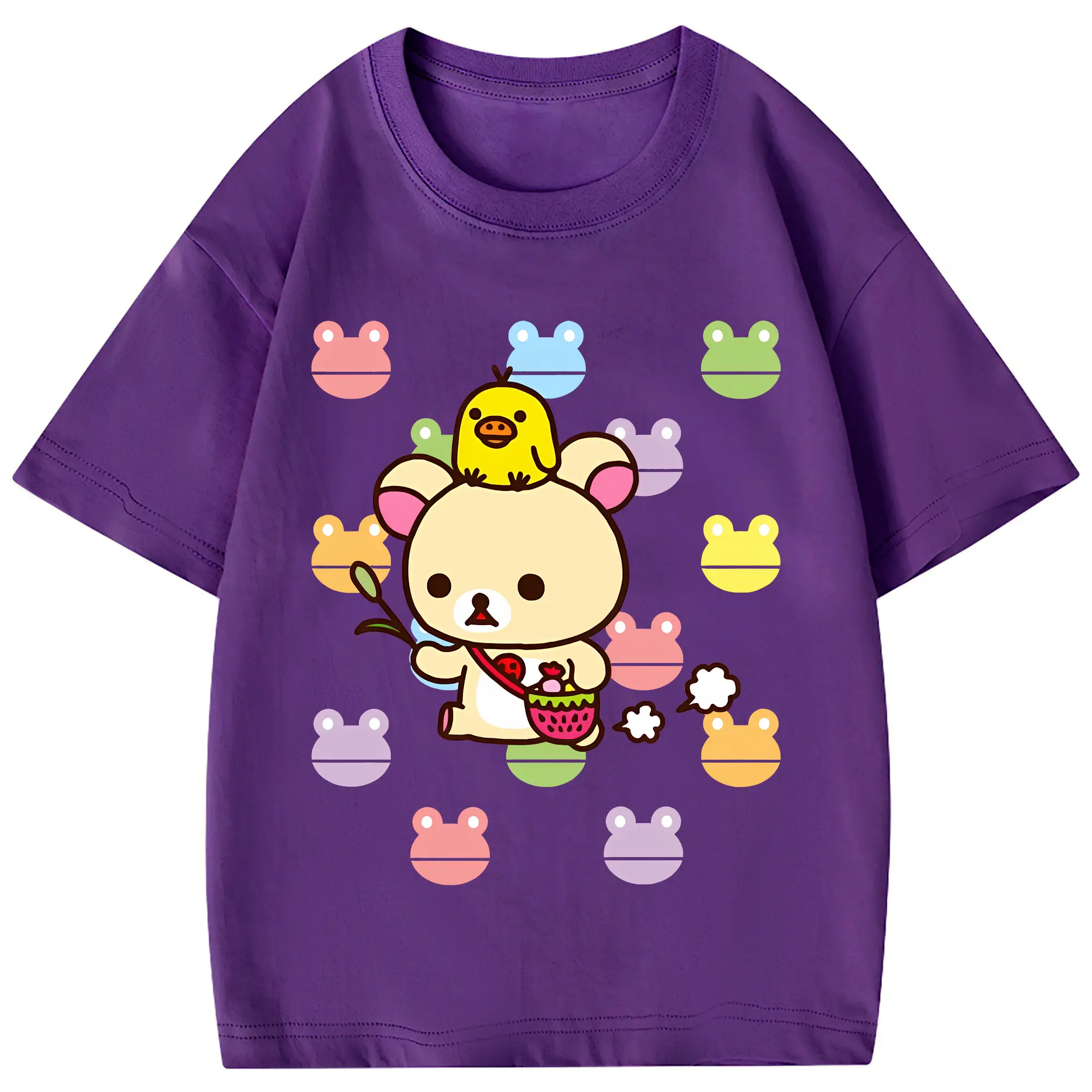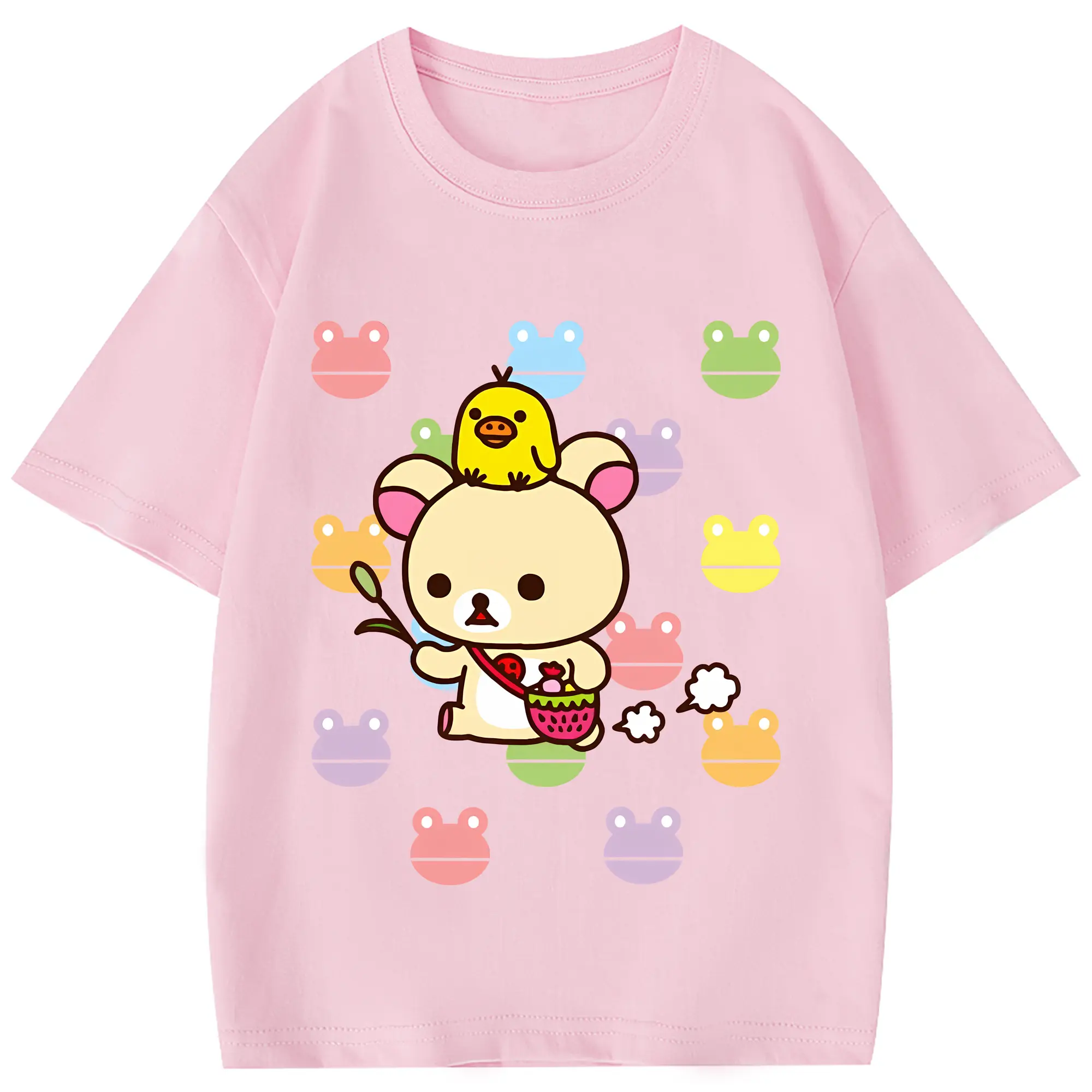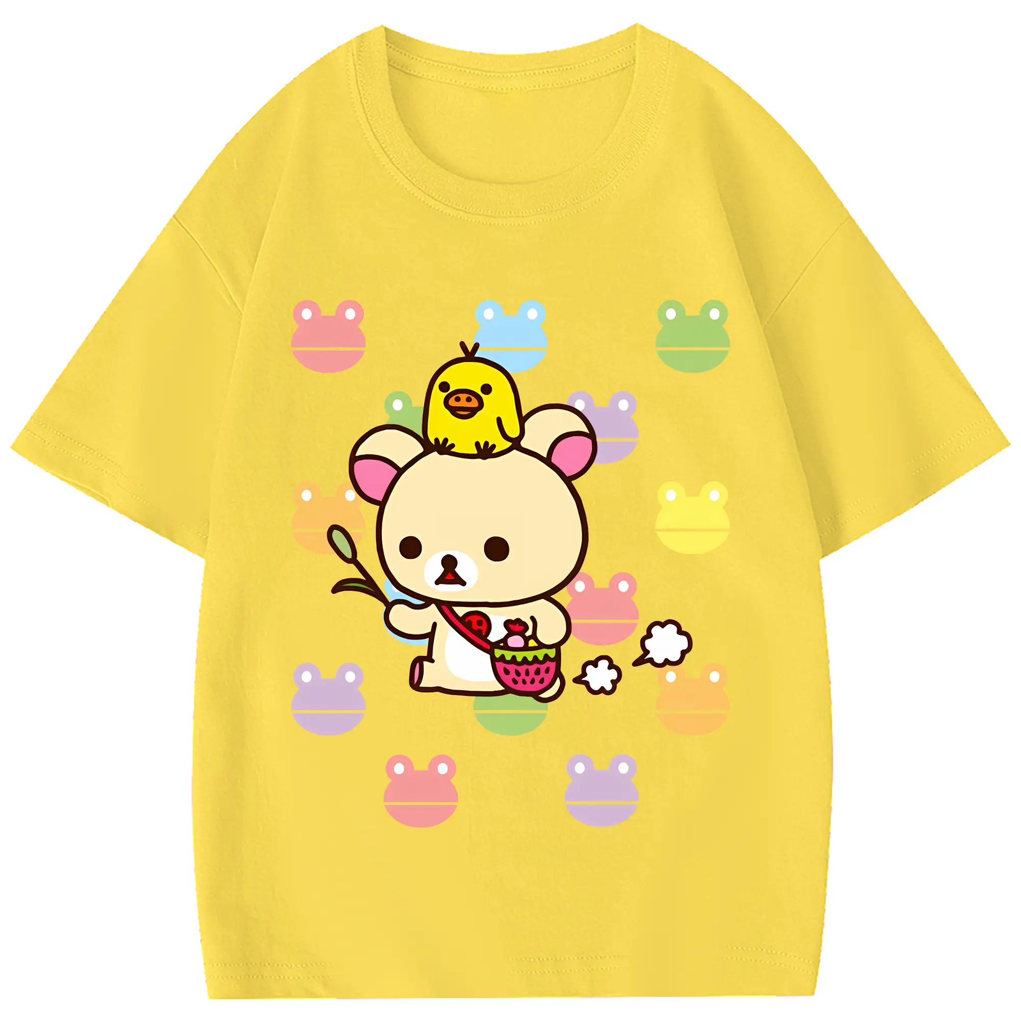 リラックマ (Rilakkuma) グッズ コリラックマ (Korirakkuma) - 綿100% 半袖Tシャツ ・ フロントプリント ・ 快適 通気性 ・ 日常使い 散歩 スポーツ用