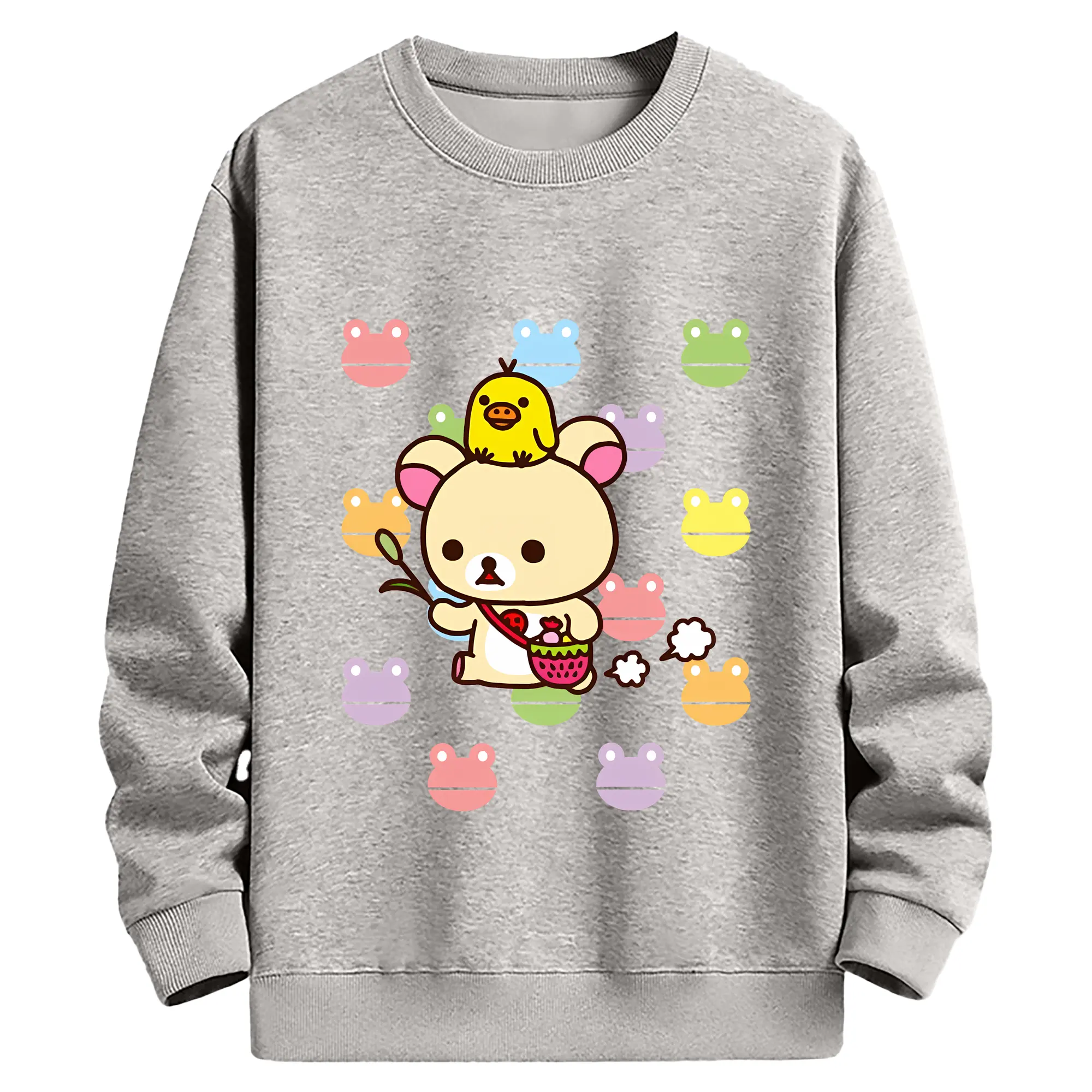 ラブブ グッズ ジモモ - キッズ クルーネックスウェットシャツ ・ フロントプリント ・ 綿80% ポリエステル20% ・ 快適 通学 スポーツ 日常使い お散歩用