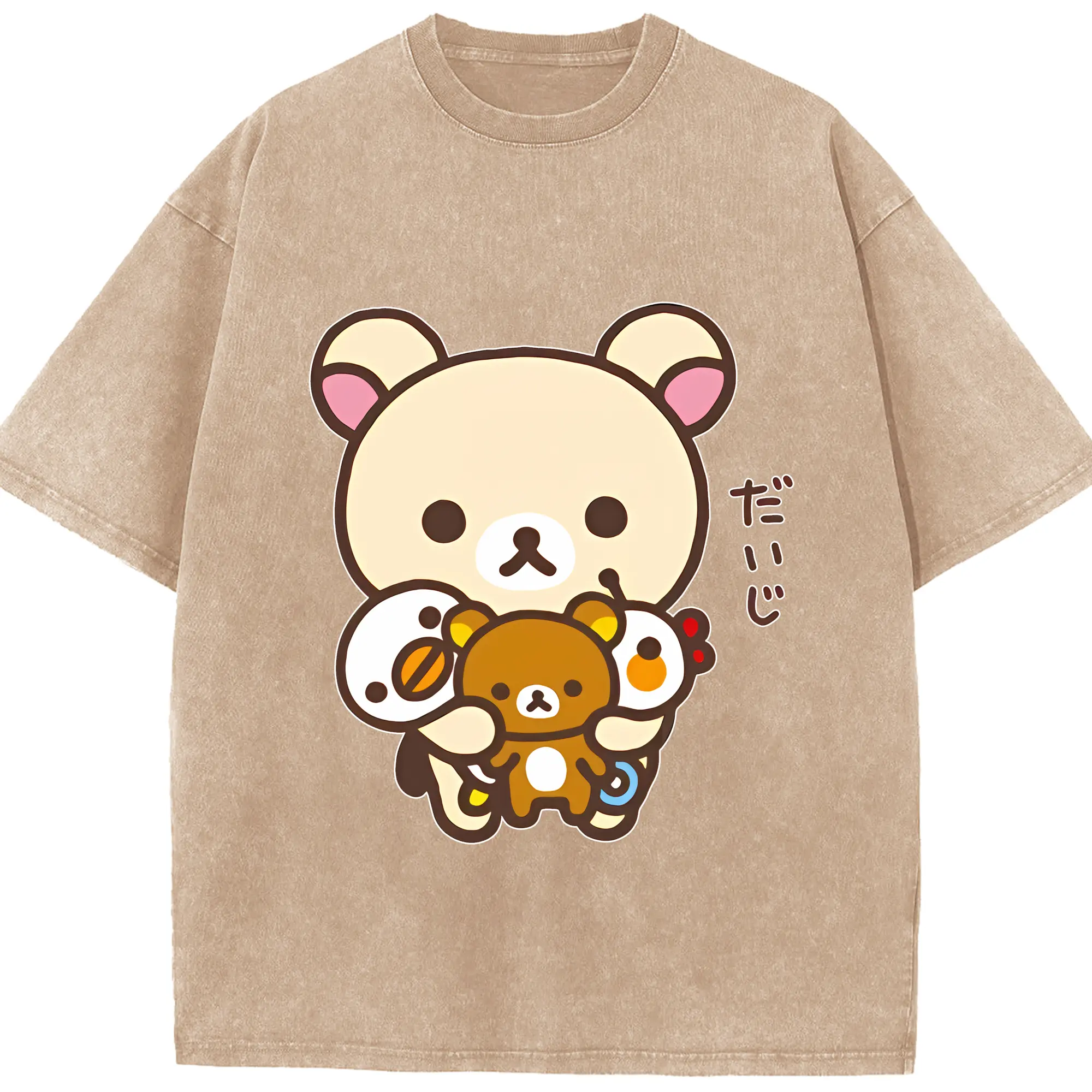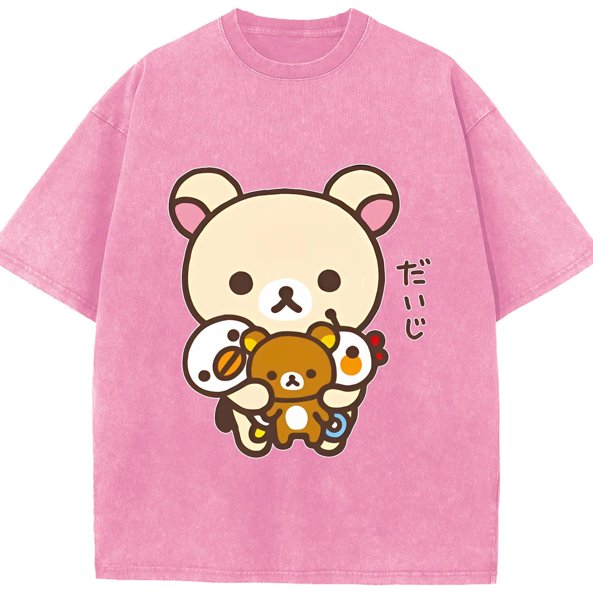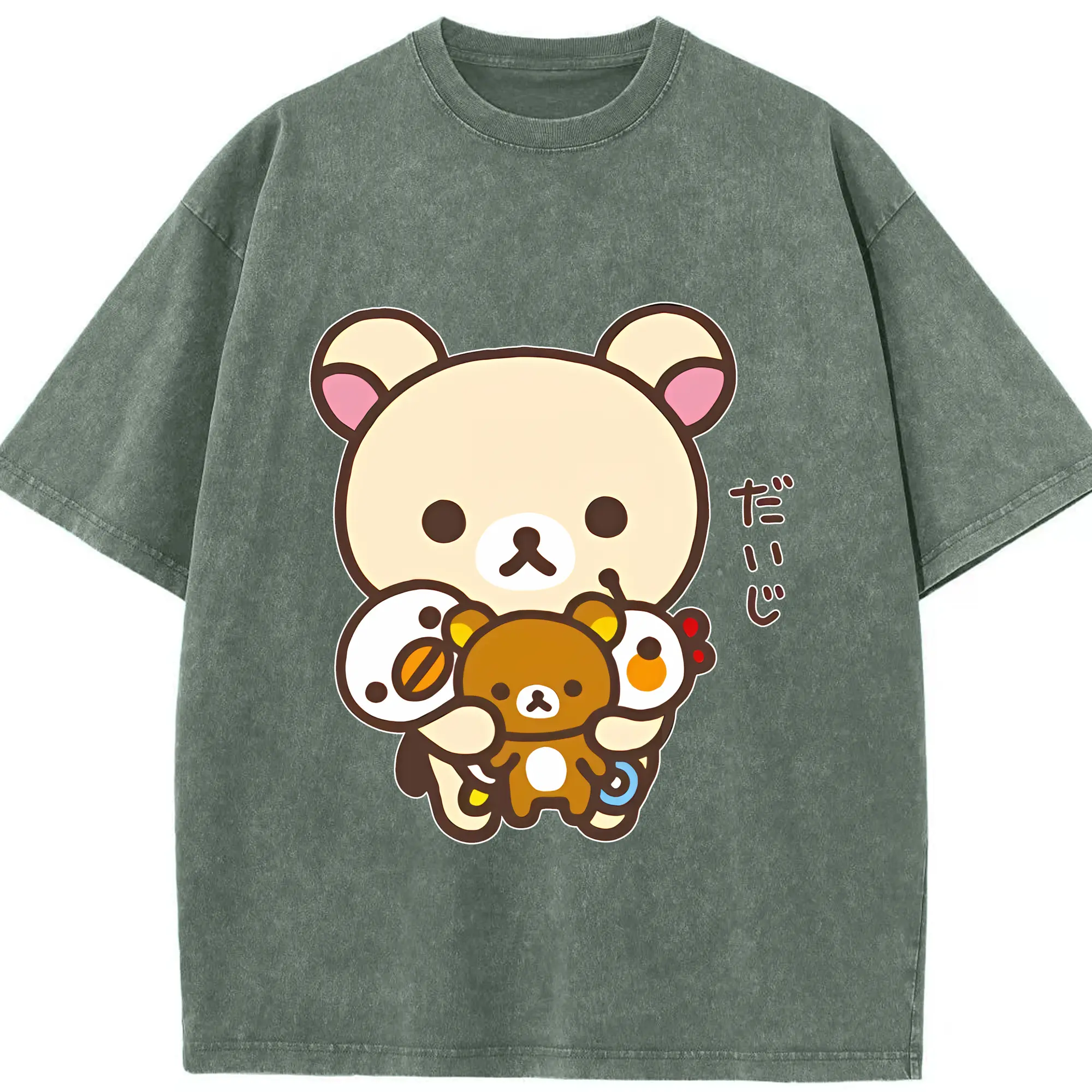 リラックマ (Rilakkuma) グッズ コリラックマ (Korirakkuma) - 綿100% 半袖Tシャツ ・ フロントプリント ・ 快適 通気性 ・ 日常使い 散歩 スポーツ用