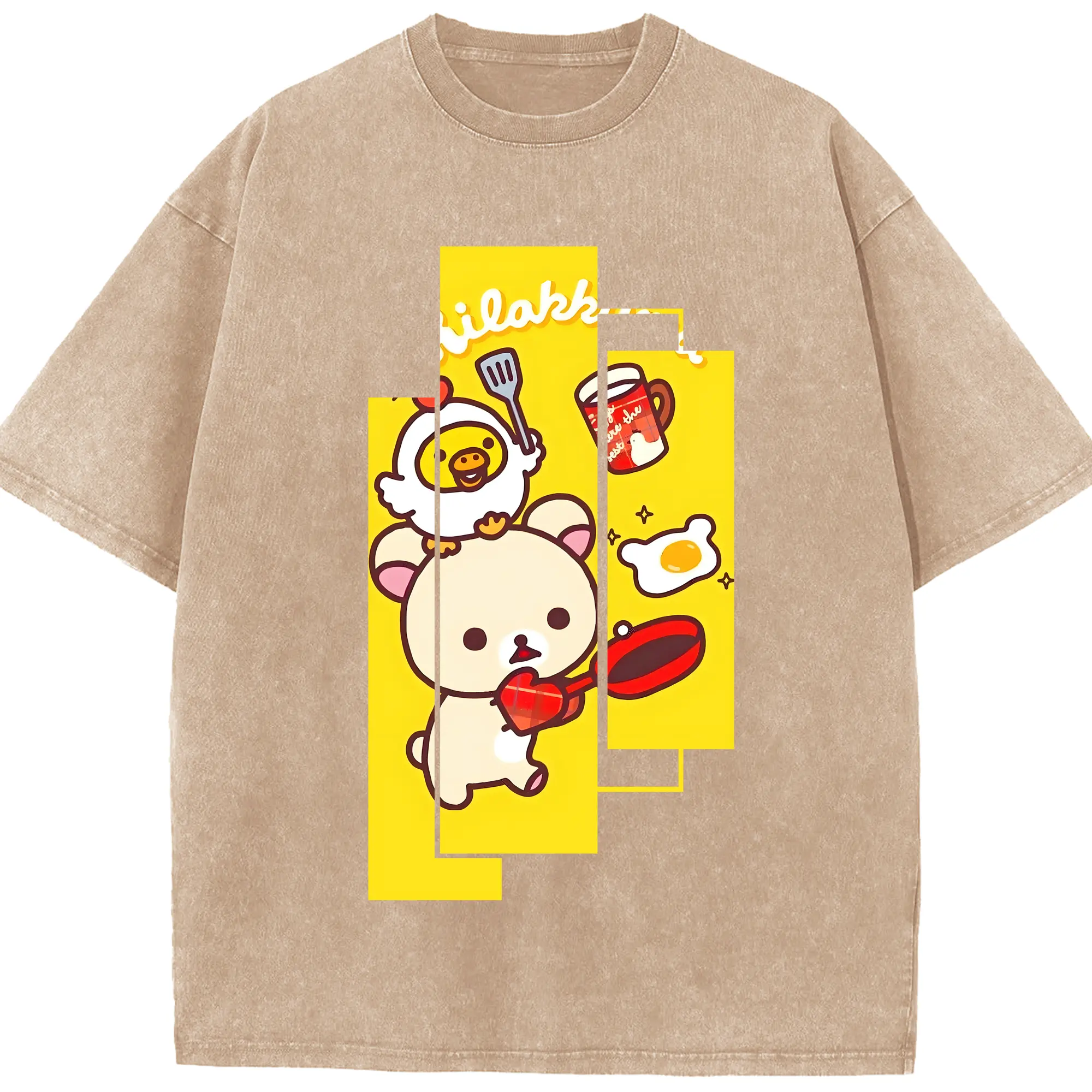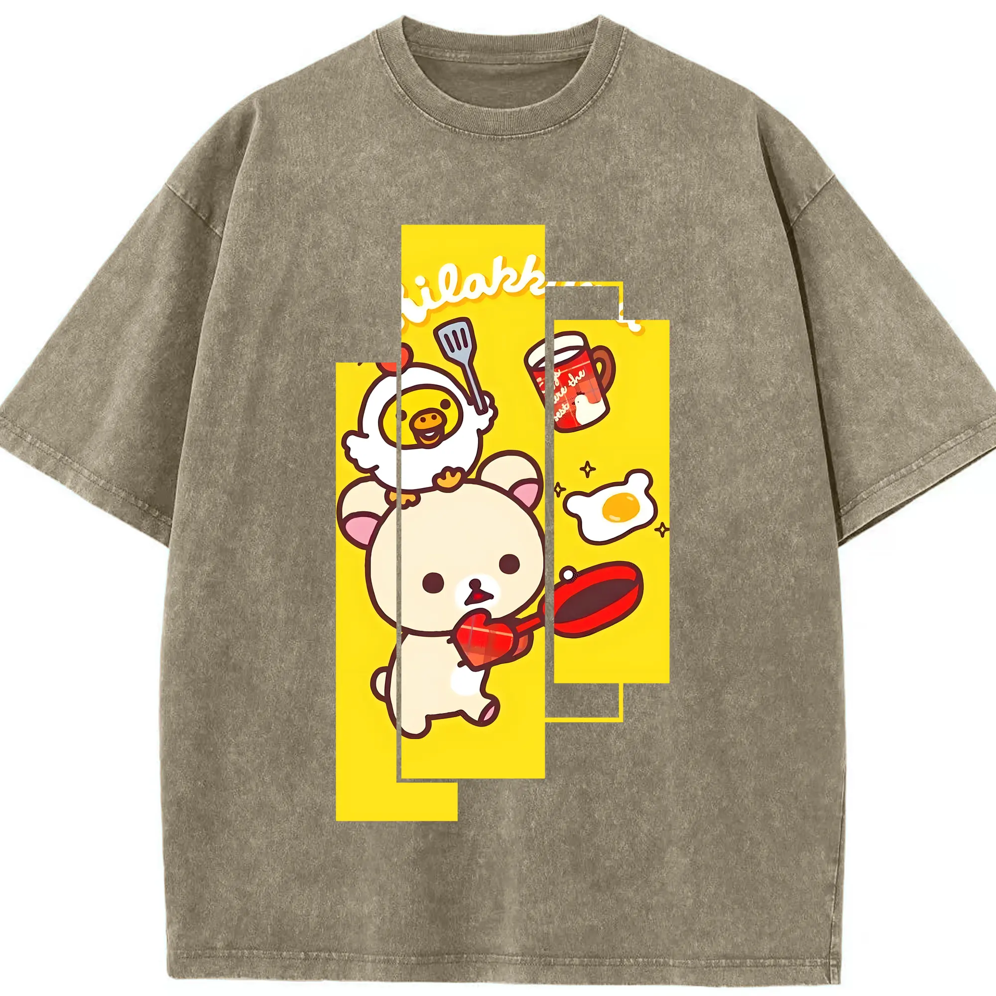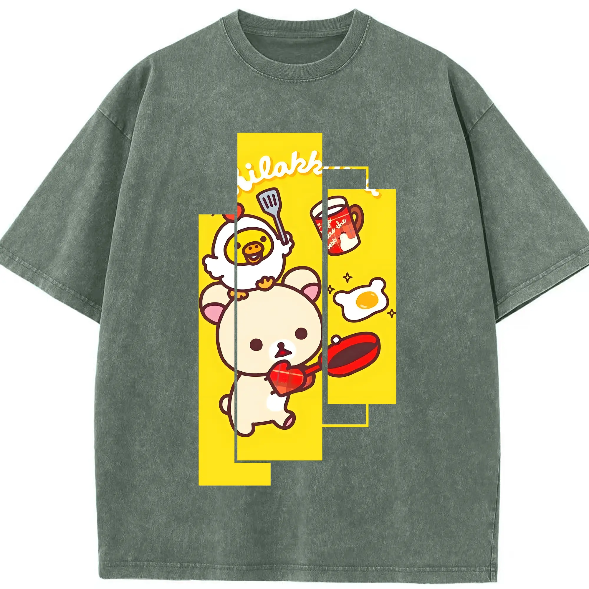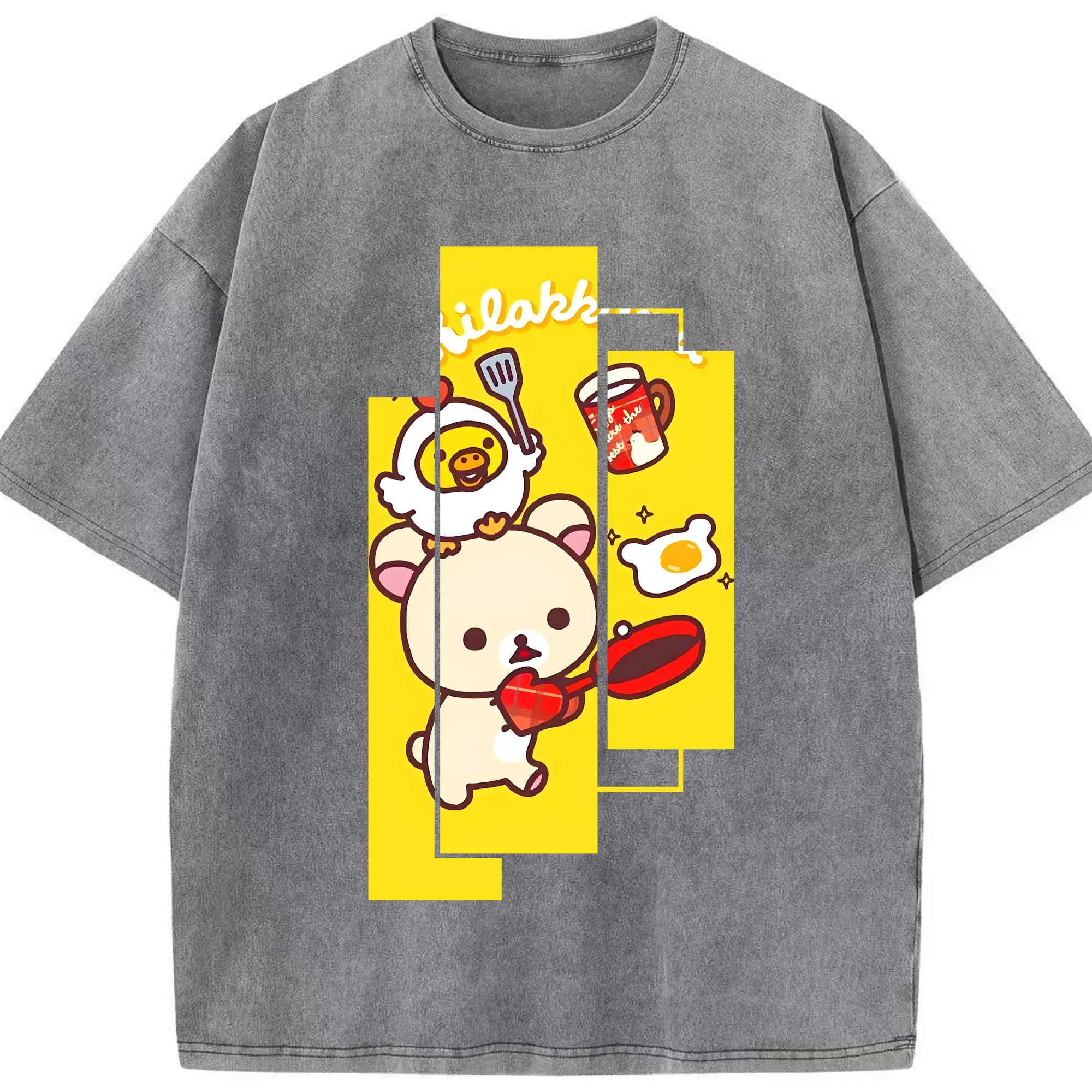 リラックマ (Rilakkuma) グッズ コリラックマ (Korirakkuma) - 綿100% 半袖Tシャツ ・ フロントプリント ・ 快適 通気性 ・ 日常使い 散歩 スポーツ用
