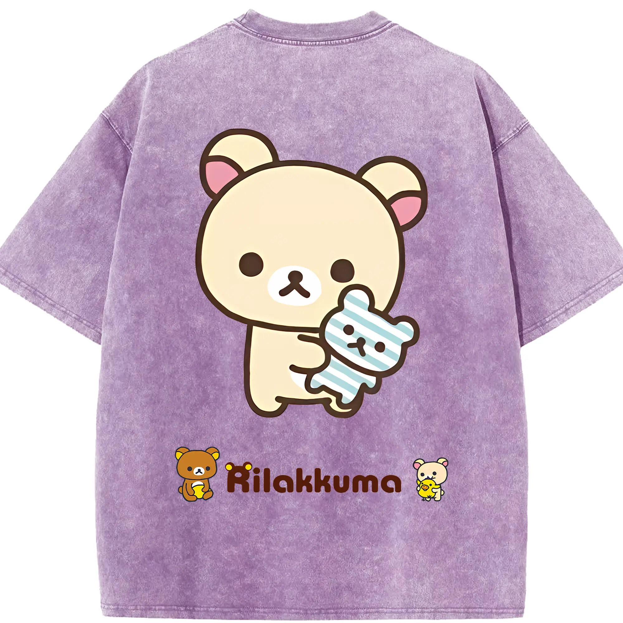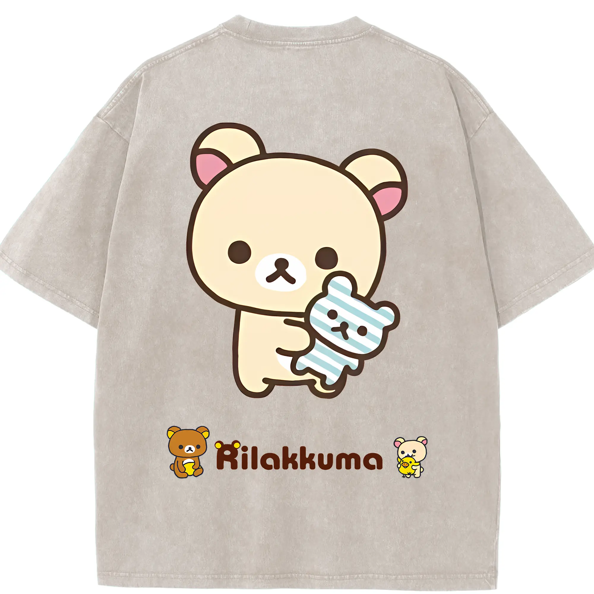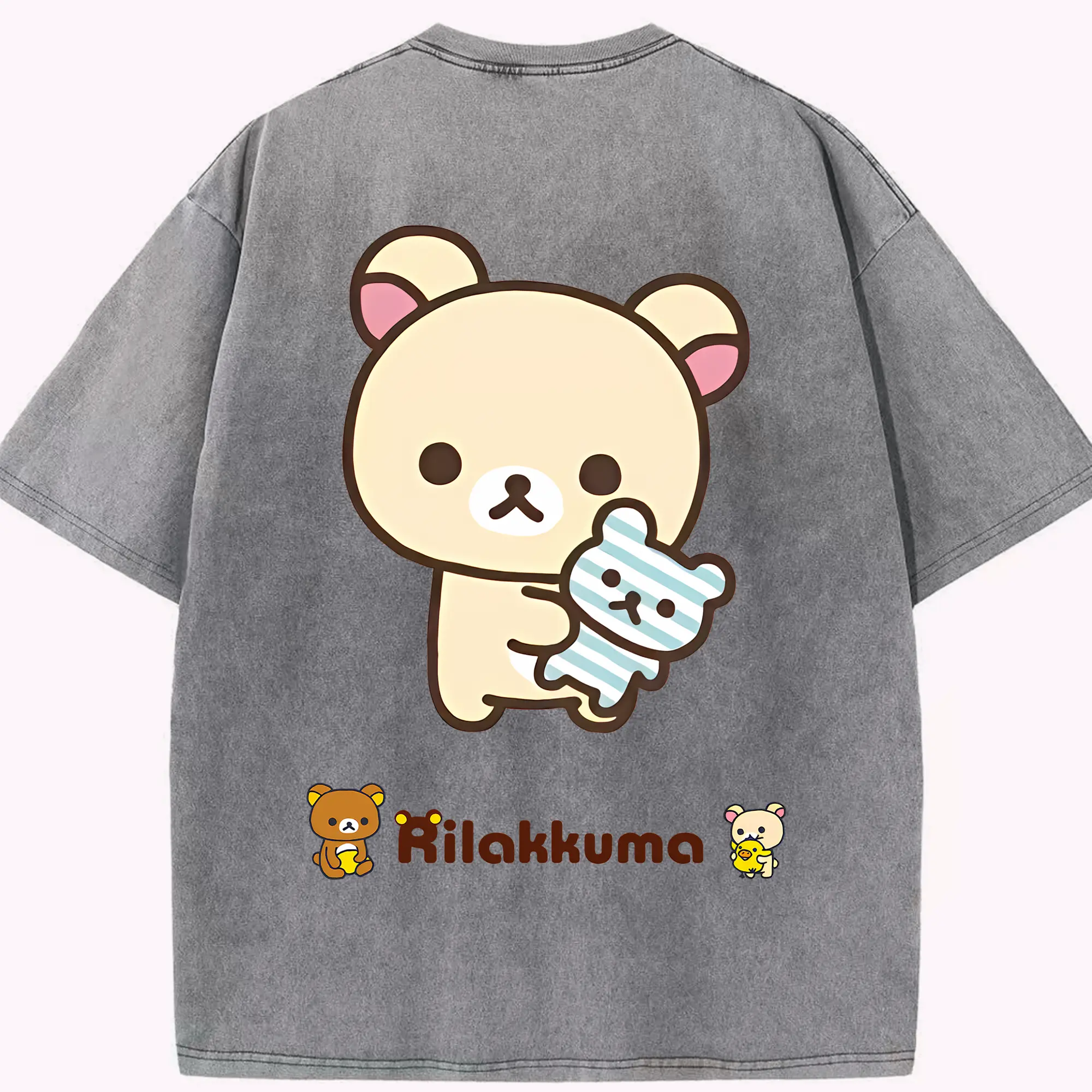 リラックマ (Rilakkuma) グッズ コリラックマ (Korirakkuma) - 綿100% 半袖Tシャツ ・ バックプリント ・ 快適 通気性 ・ 日常使い 散歩 スポーツ用