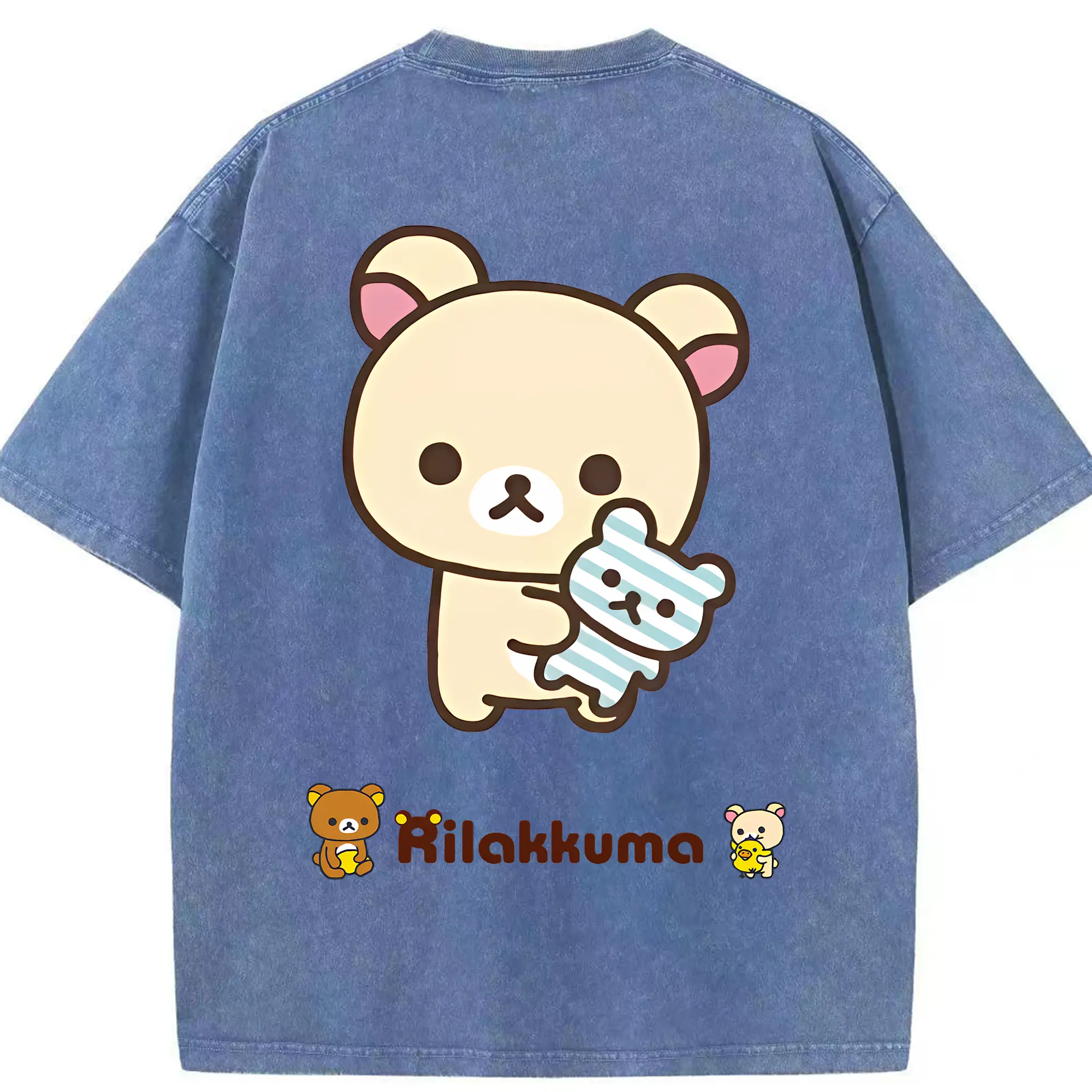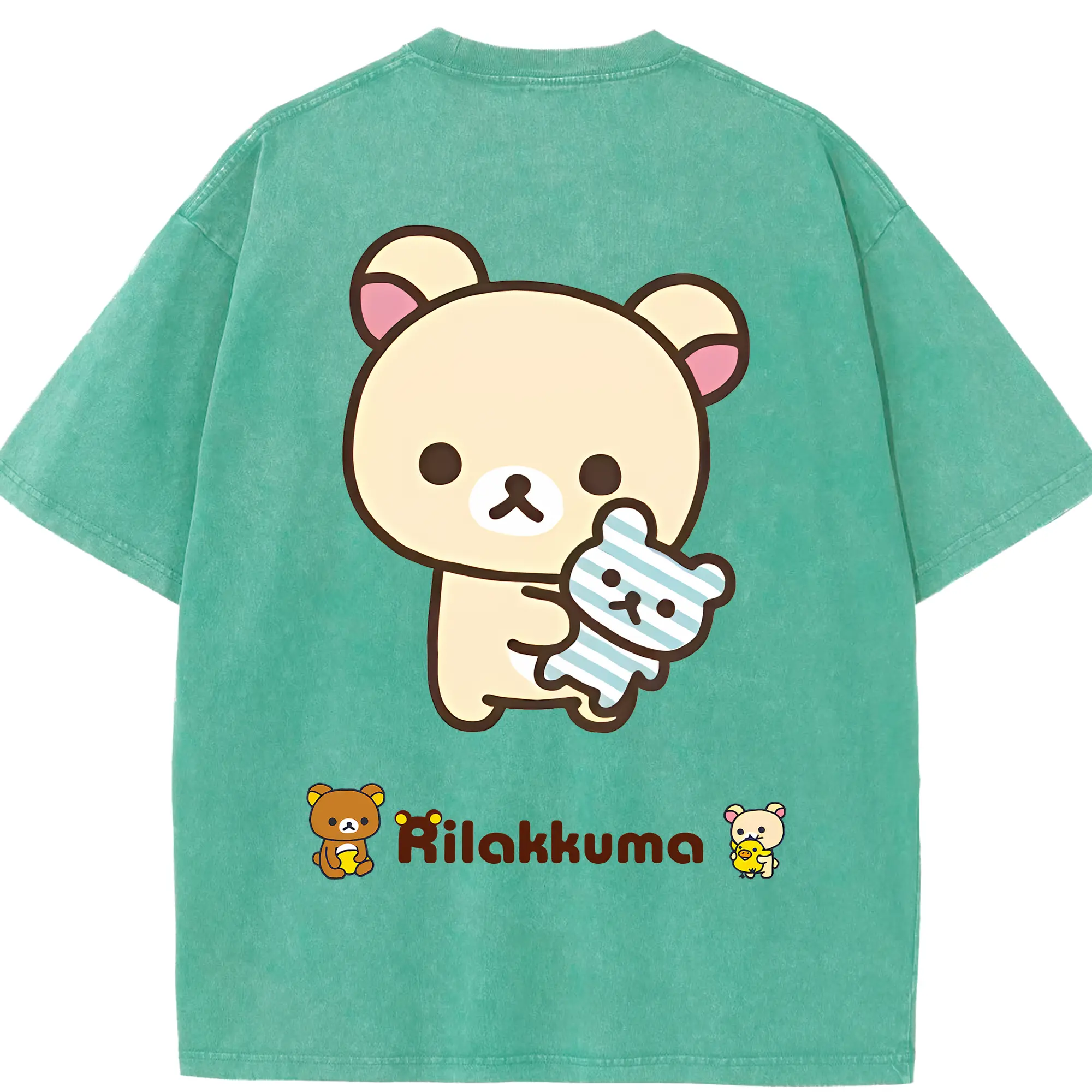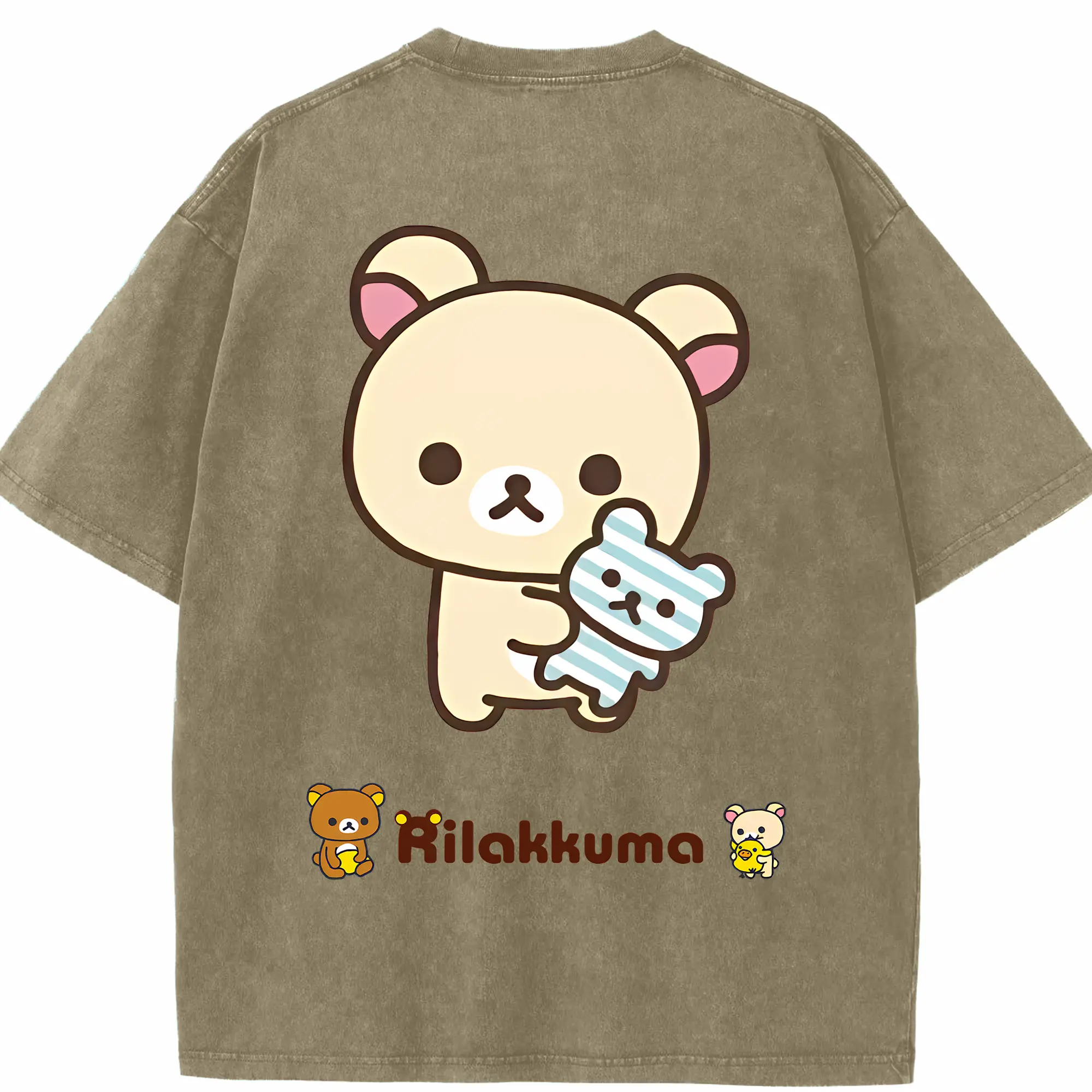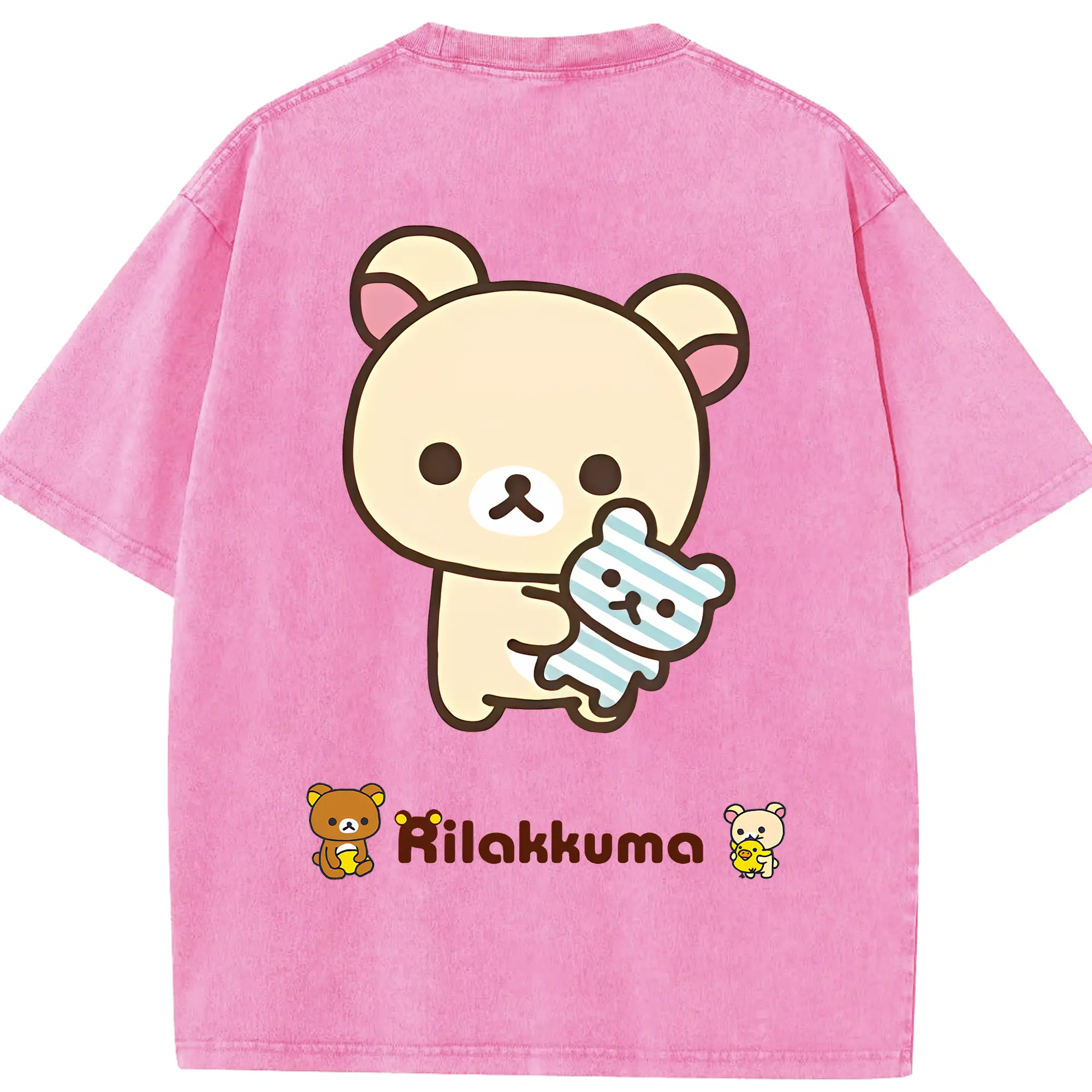 リラックマ (Rilakkuma) グッズ コリラックマ (Korirakkuma) - 綿100% 半袖Tシャツ ・ バックプリント ・ 快適 通気性 ・ 日常使い 散歩 スポーツ用