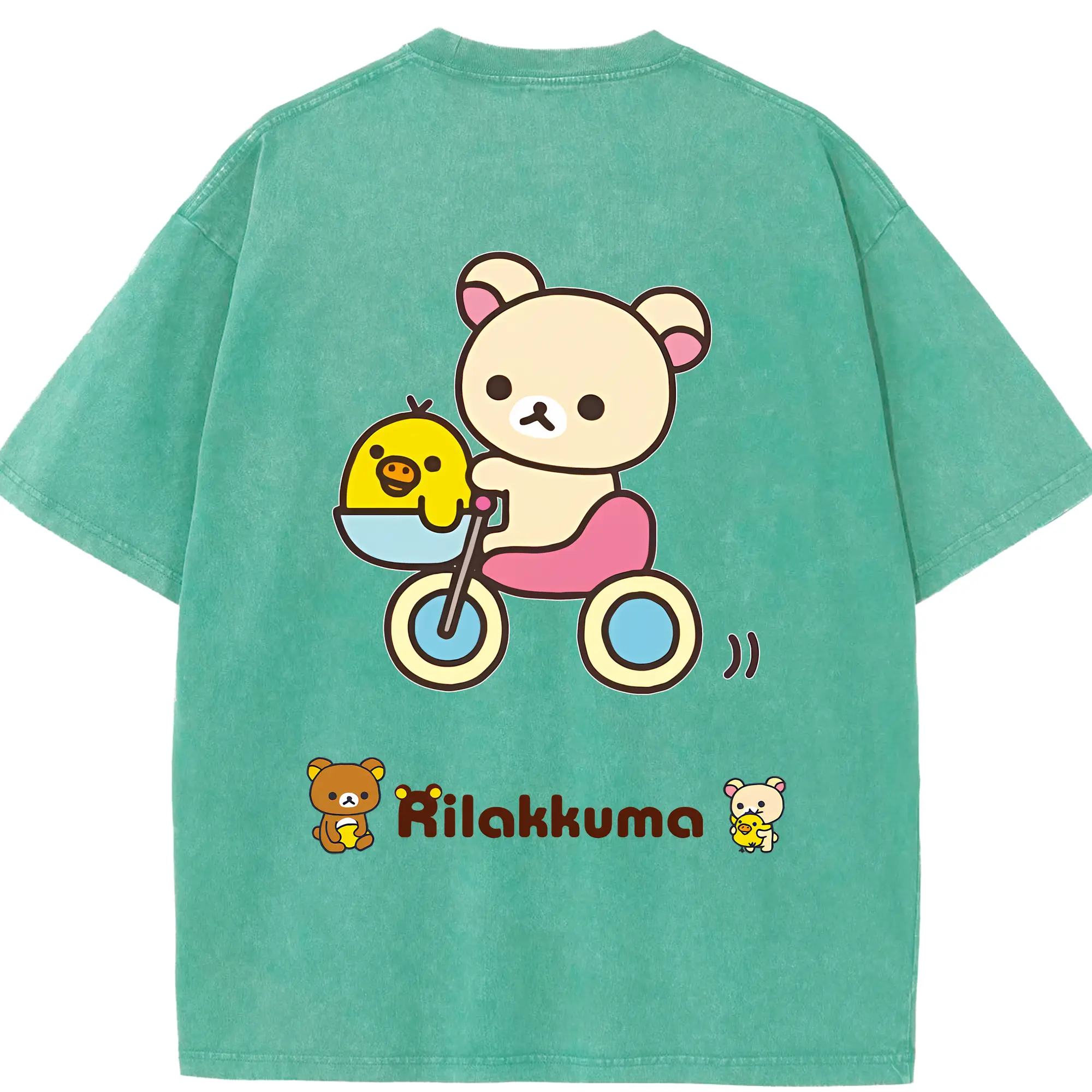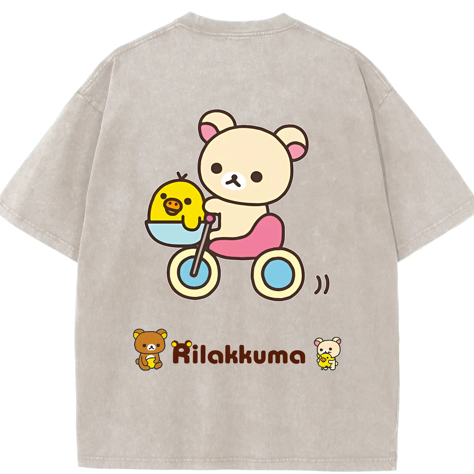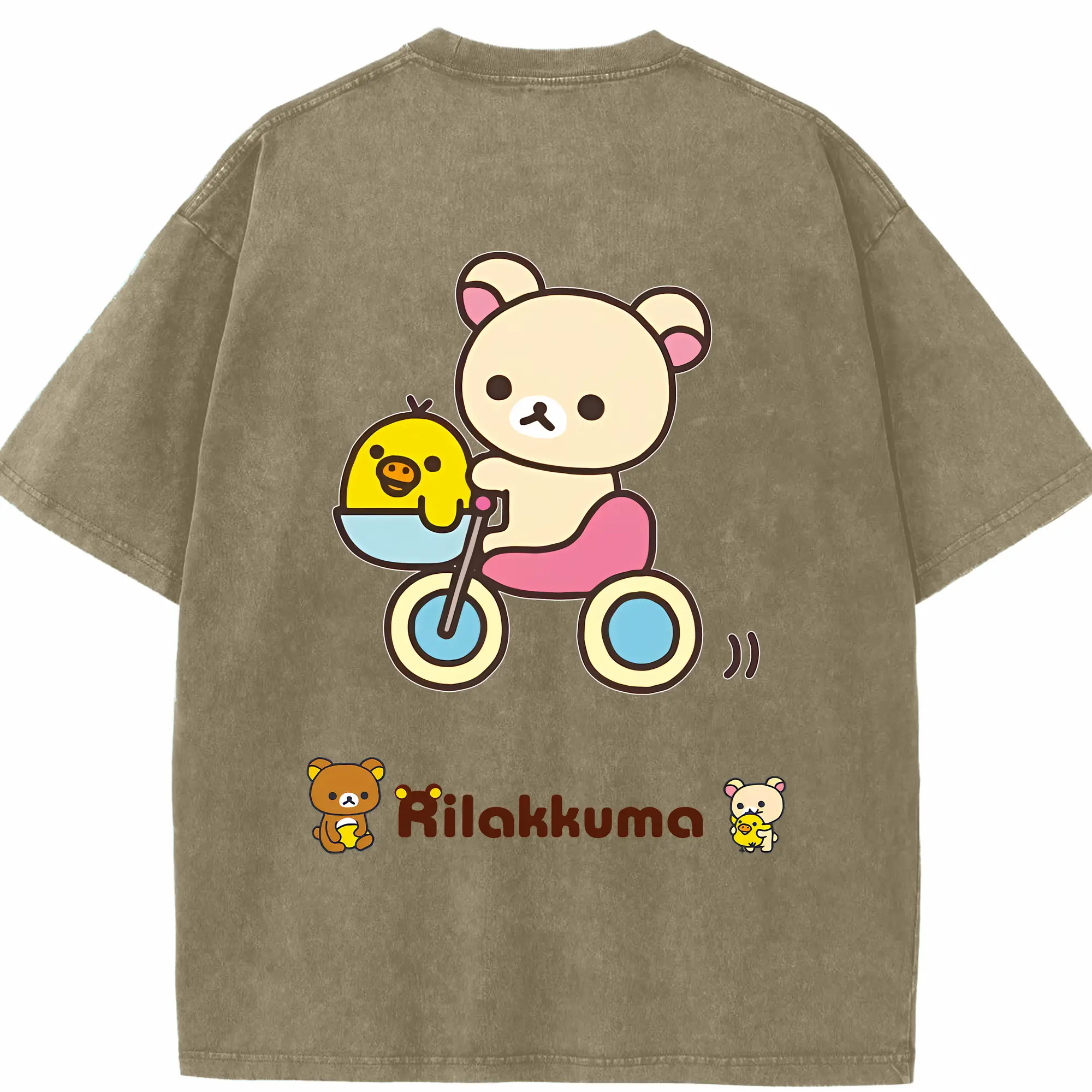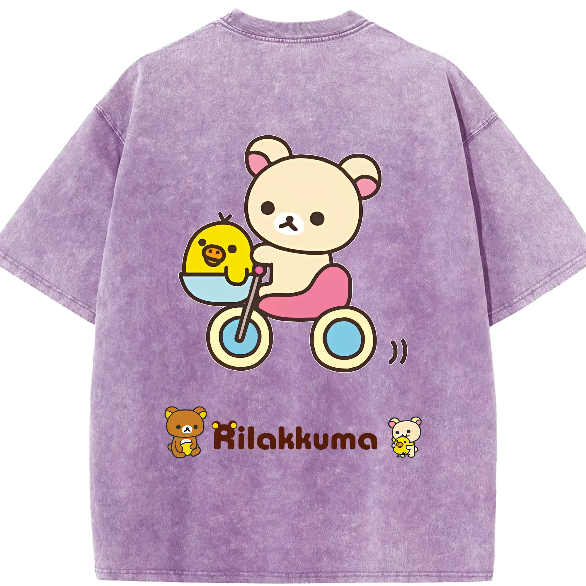 リラックマ (Rilakkuma) グッズ コリラックマ (Korirakkuma) - 綿100% 半袖Tシャツ ・ バックプリント ・ 快適 通気性 ・ 日常使い 散歩 スポーツ用