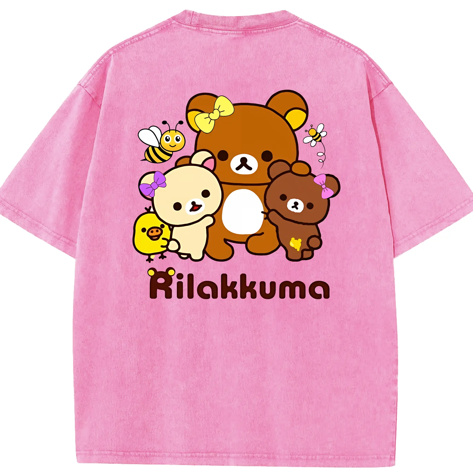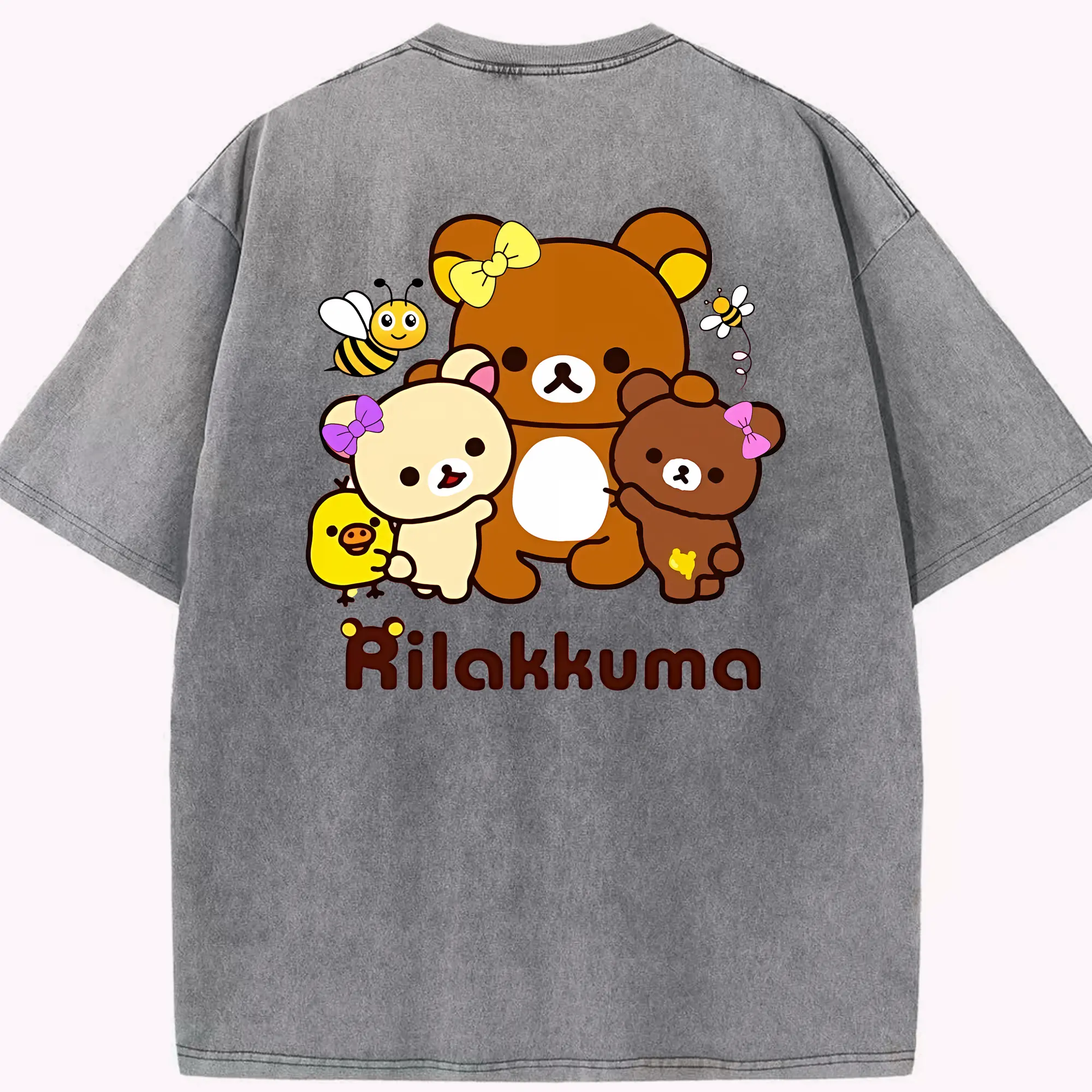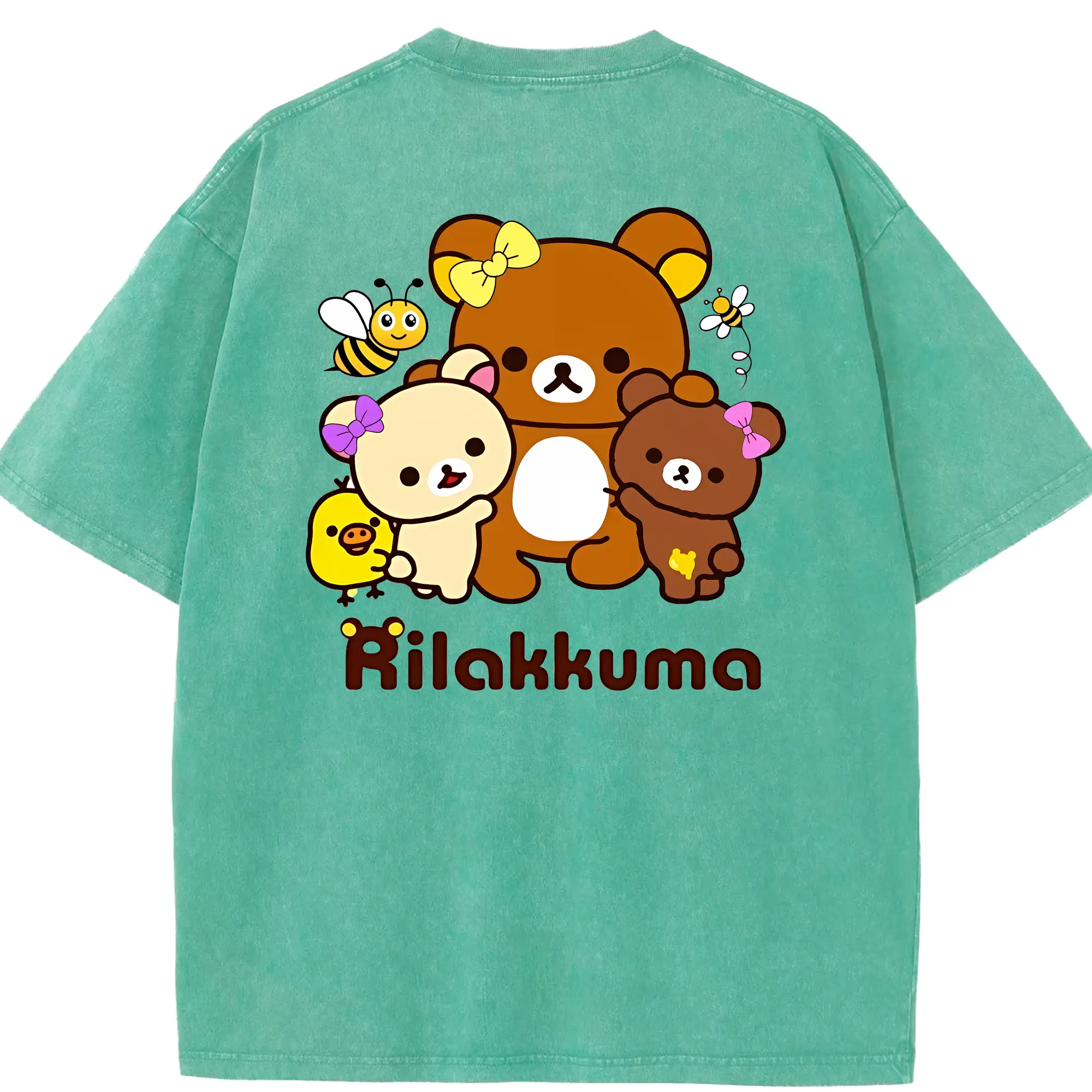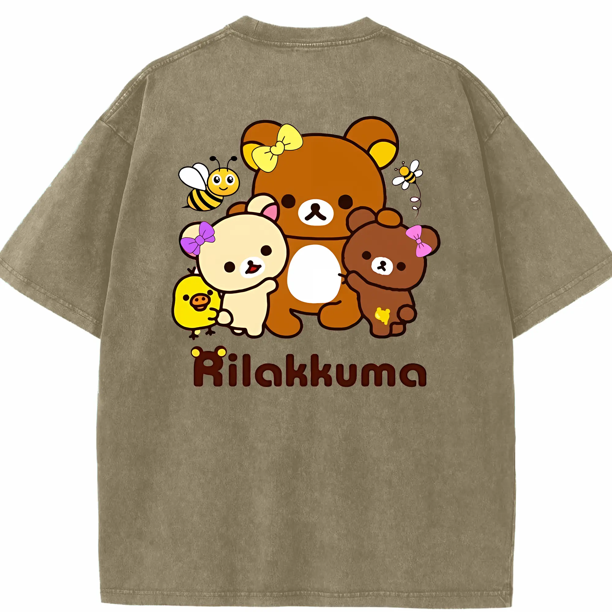 リラックマ (Rilakkuma) グッズ コリラックマ (Korirakkuma) - 綿100% 半袖Tシャツ ・ バックプリント ・ 快適 通気性 ・ 日常使い 散歩 スポーツ用
