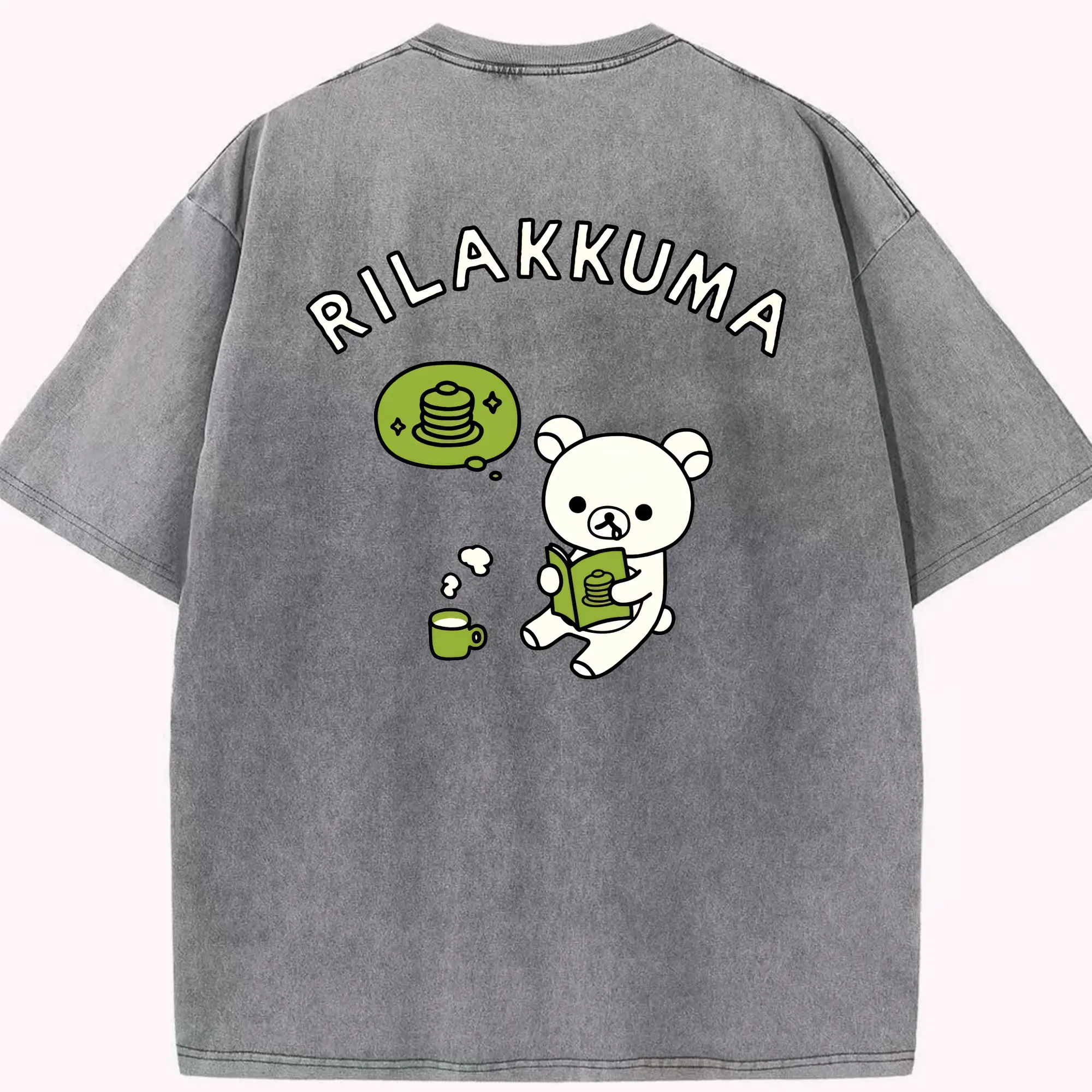 リラックマ (Rilakkuma) グッズ コリラックマ (Korirakkuma) - 綿100% 半袖Tシャツ ・ バックプリント ・ 快適 通気性 ・ 日常使い 散歩 スポーツ用