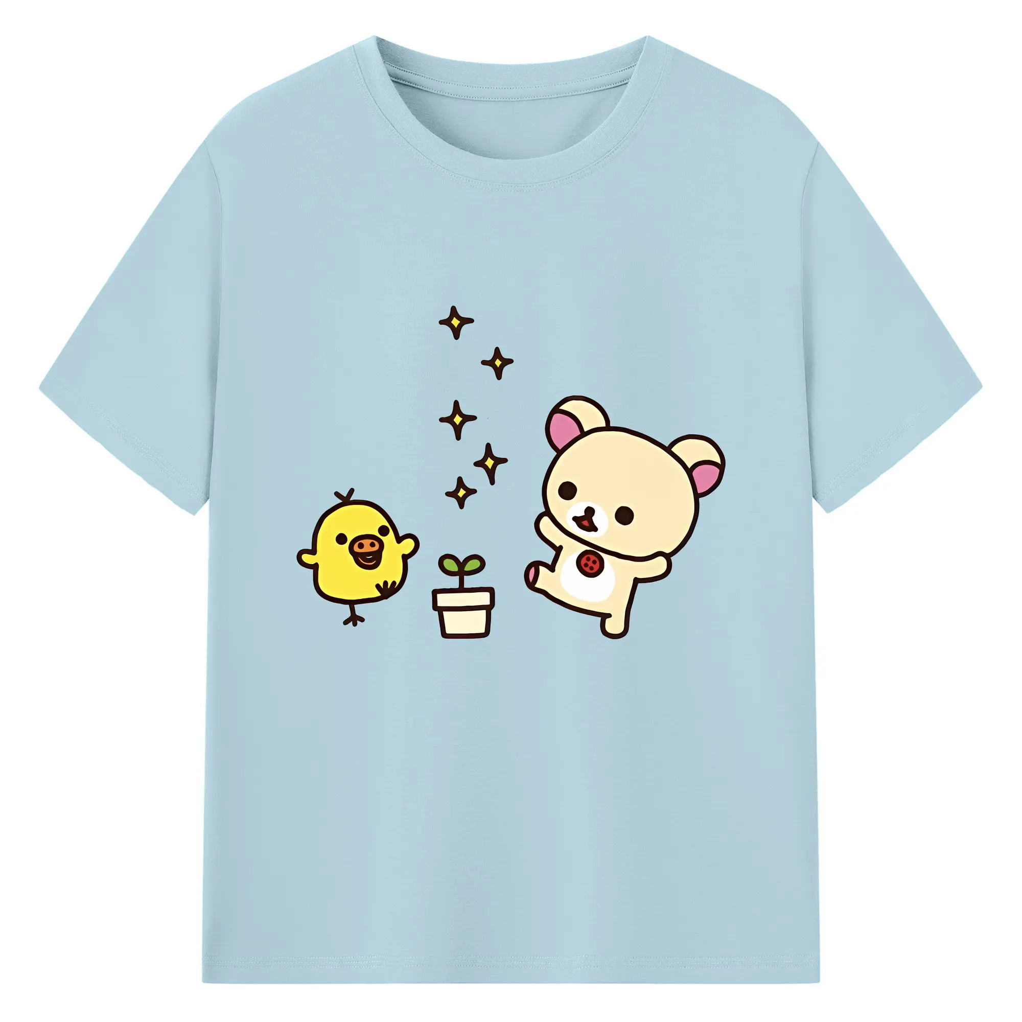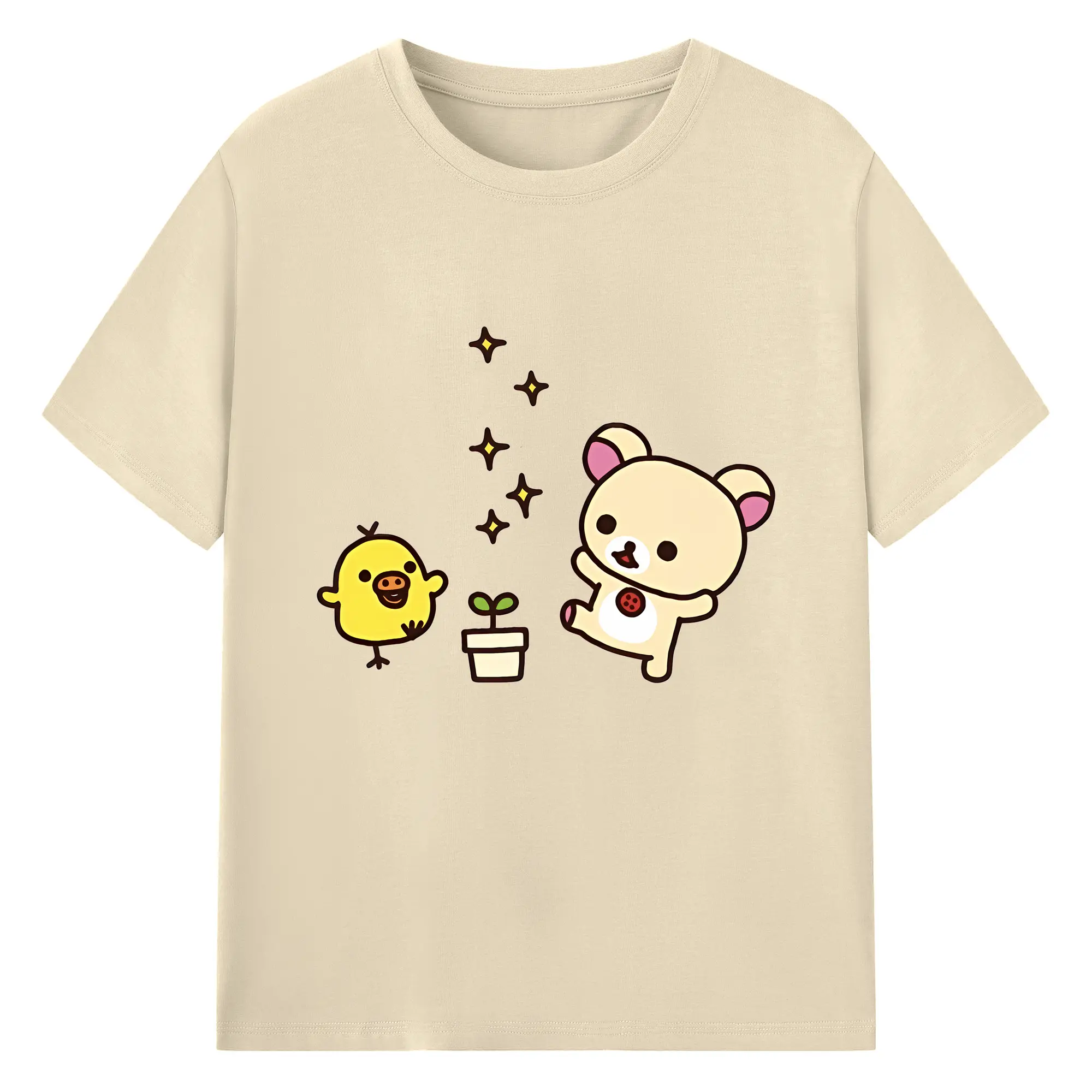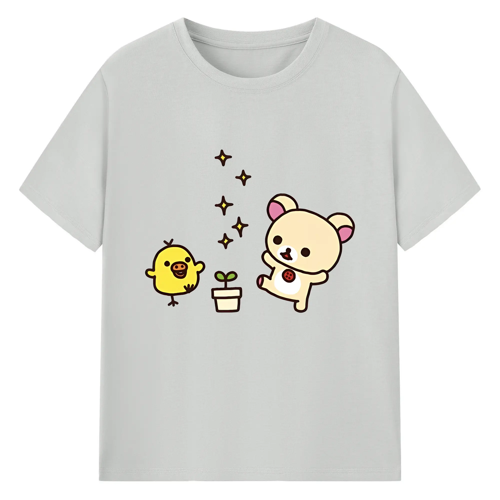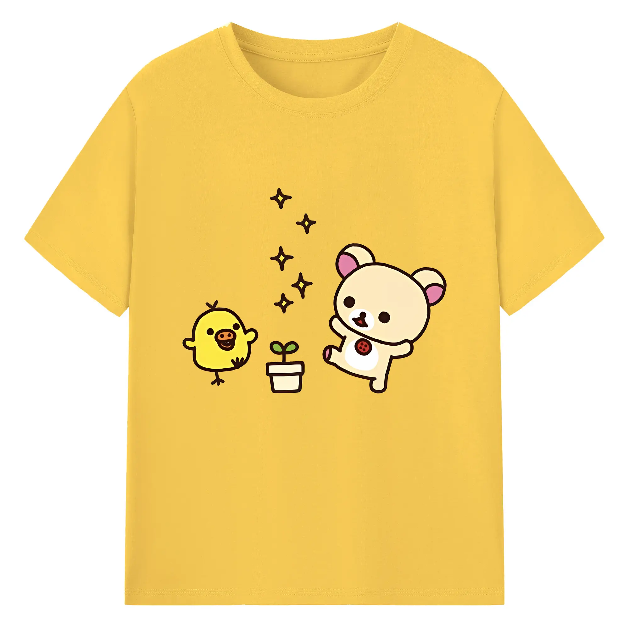 リラックマ (Rilakkuma) グッズ キイロイトリ (Kiiroitori) - 綿100% 半袖Tシャツ ・ バックプリント ・ 快適 通気性 ・ 日常使い 散歩 スポーツ用