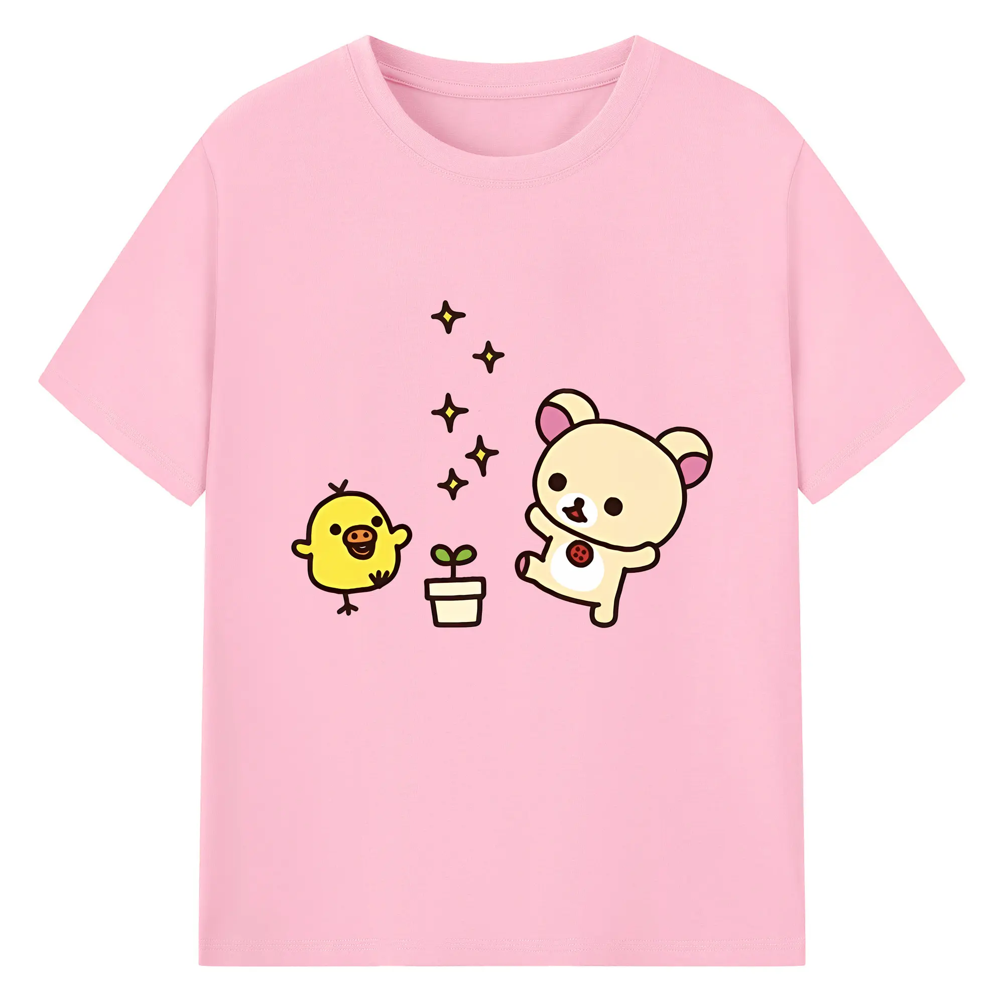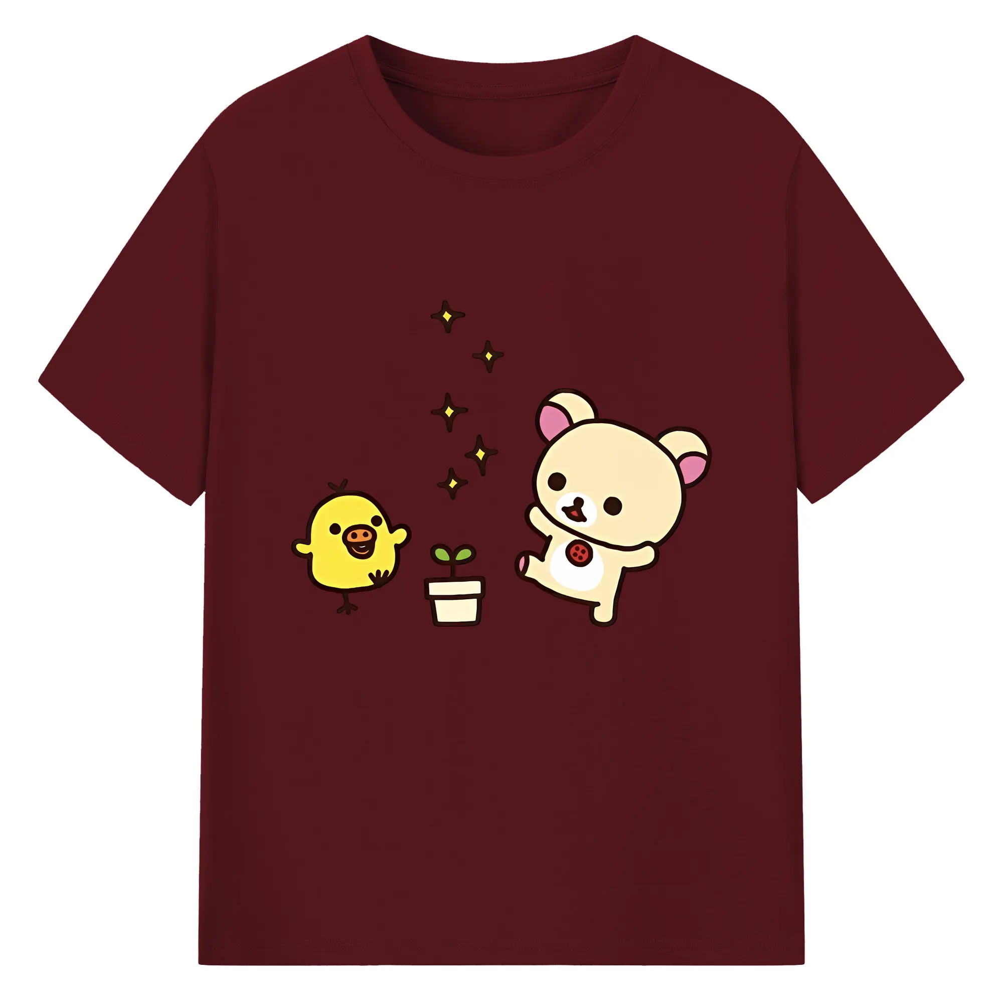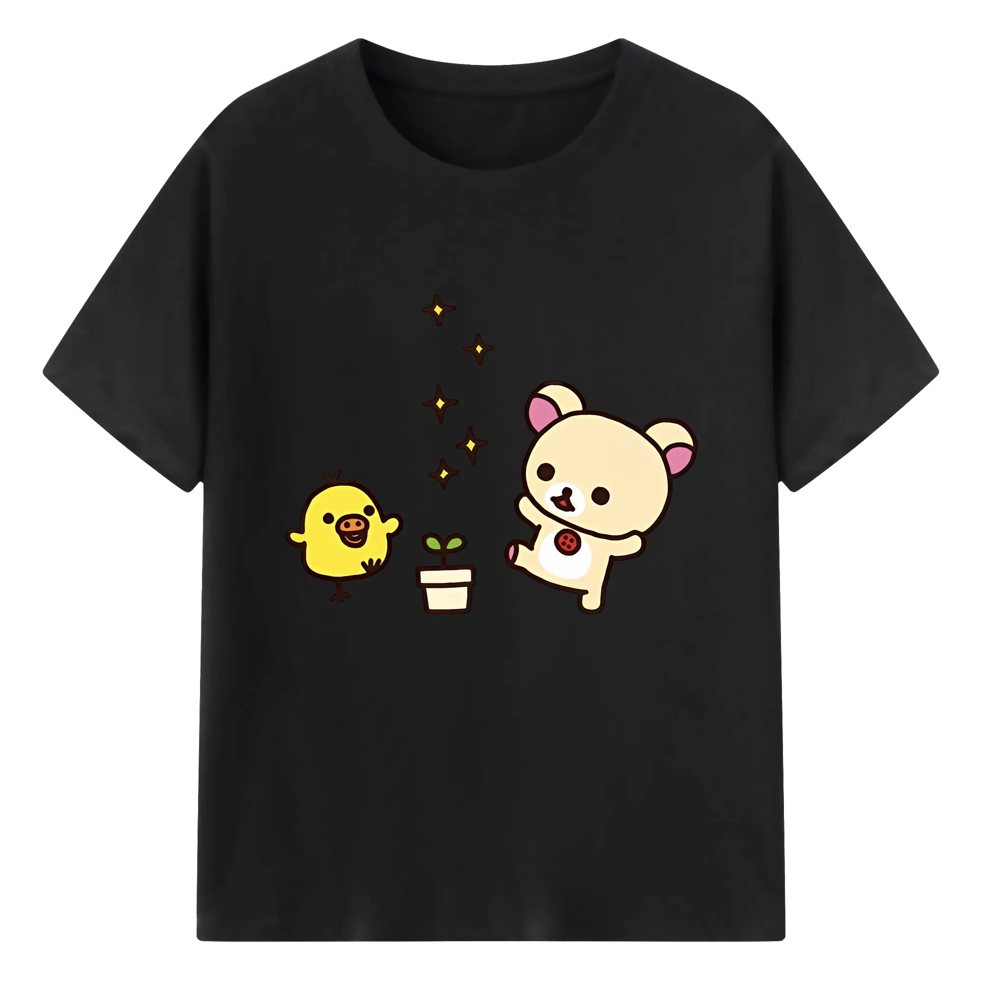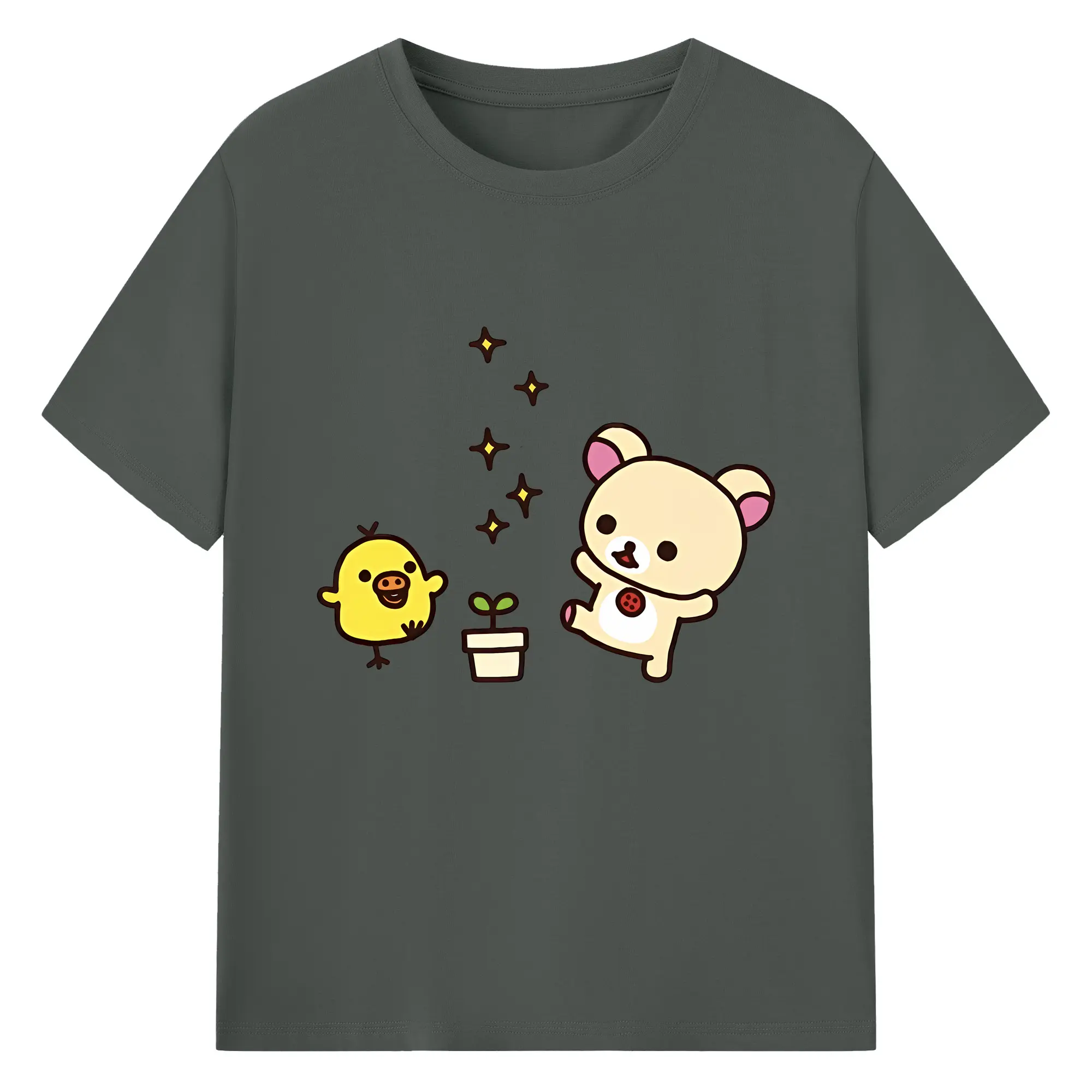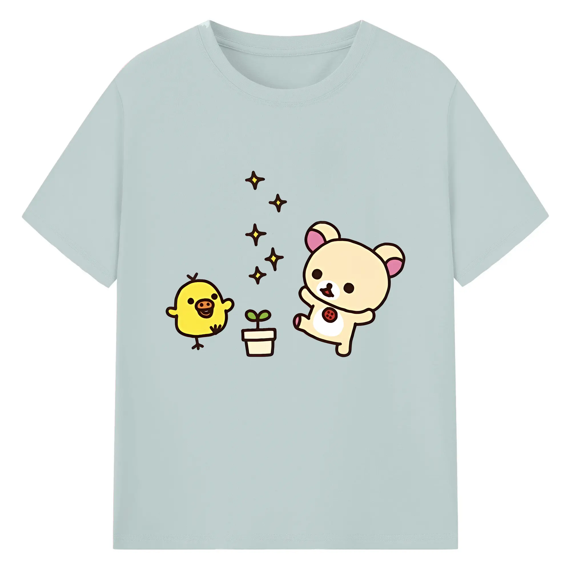リラックマ (Rilakkuma) グッズ キイロイトリ (Kiiroitori) - 綿100% 半袖Tシャツ ・ バックプリント ・ 快適 通気性 ・ 日常使い 散歩 スポーツ用