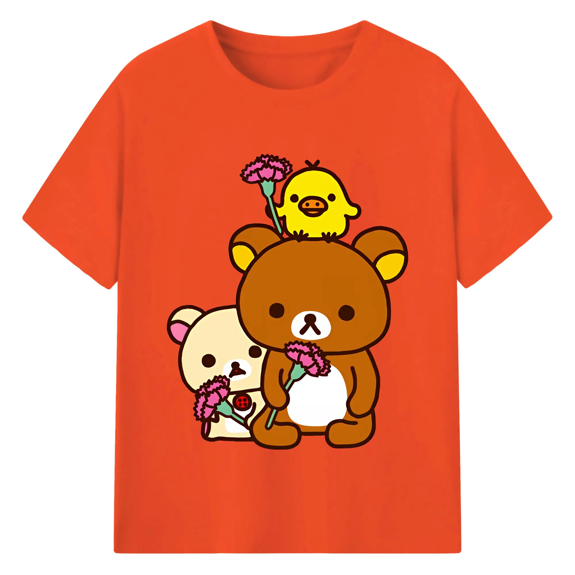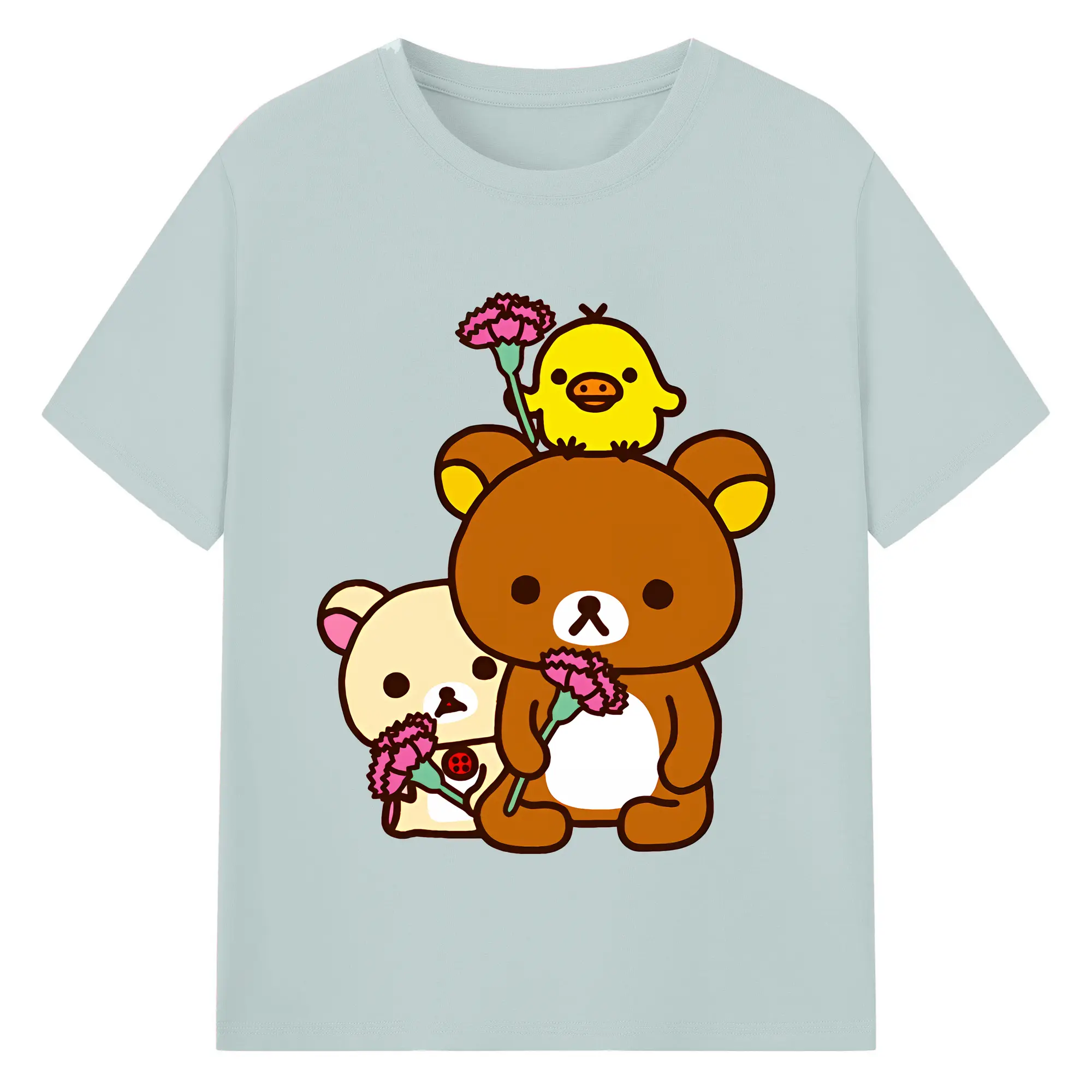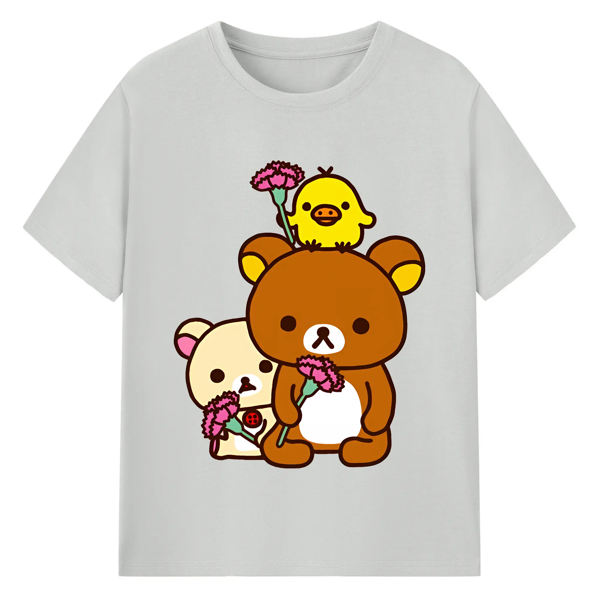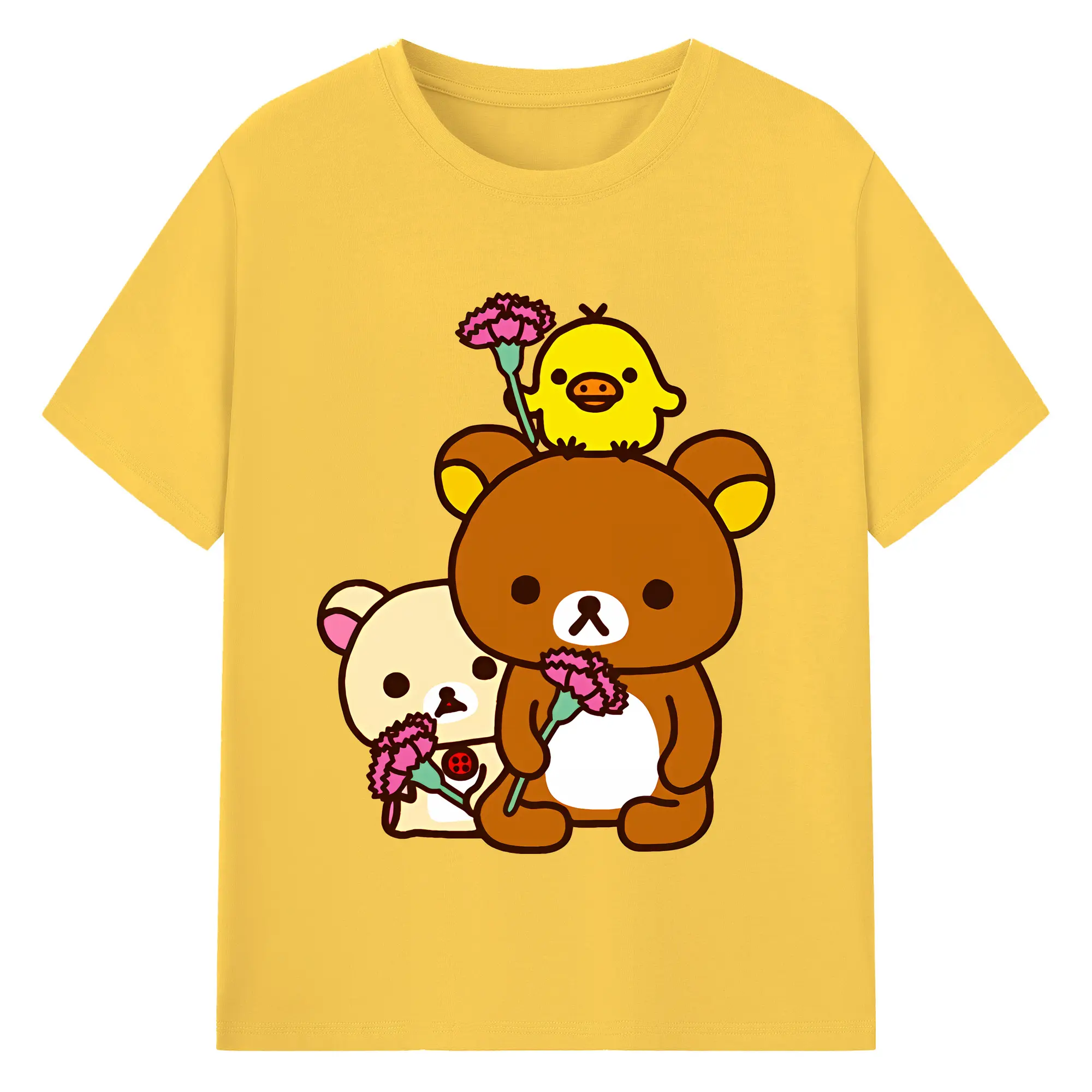 リラックマ (Rilakkuma) グッズ キイロイトリ (Kiiroitori) - 綿100% 半袖Tシャツ ・ バックプリント ・ 快適 通気性 ・ 日常使い 散歩 スポーツ用