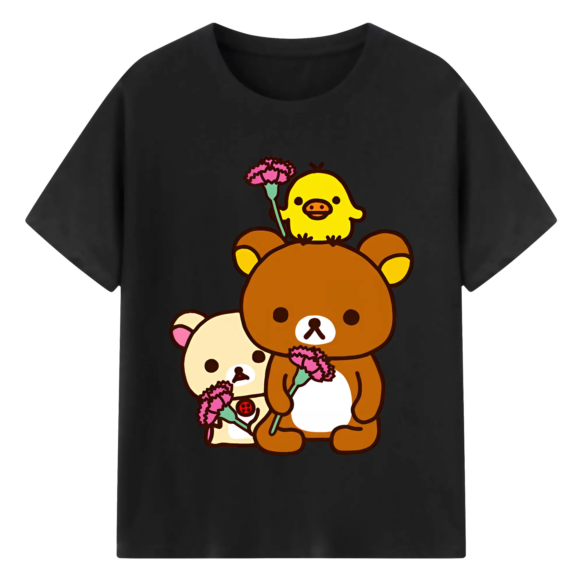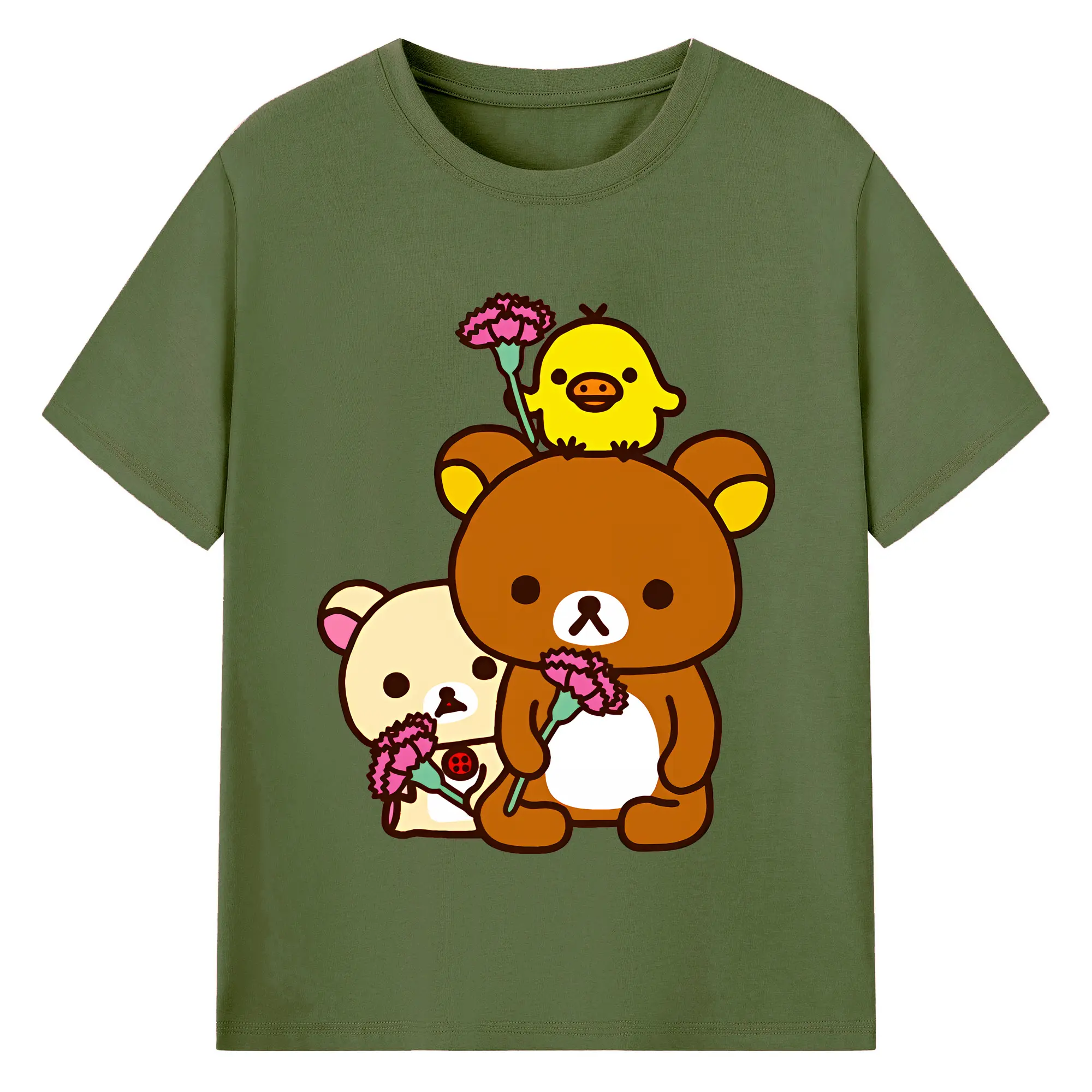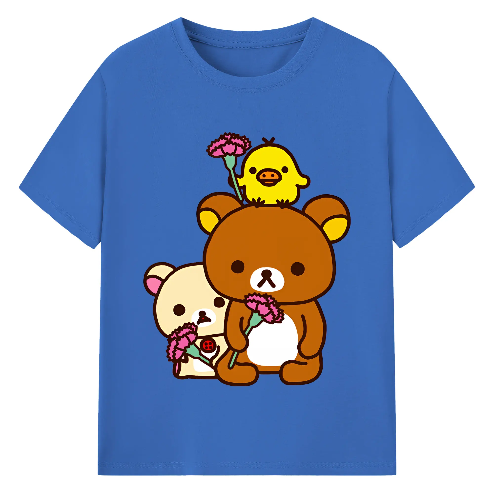 リラックマ (Rilakkuma) グッズ キイロイトリ (Kiiroitori) - 綿100% 半袖Tシャツ ・ バックプリント ・ 快適 通気性 ・ 日常使い 散歩 スポーツ用