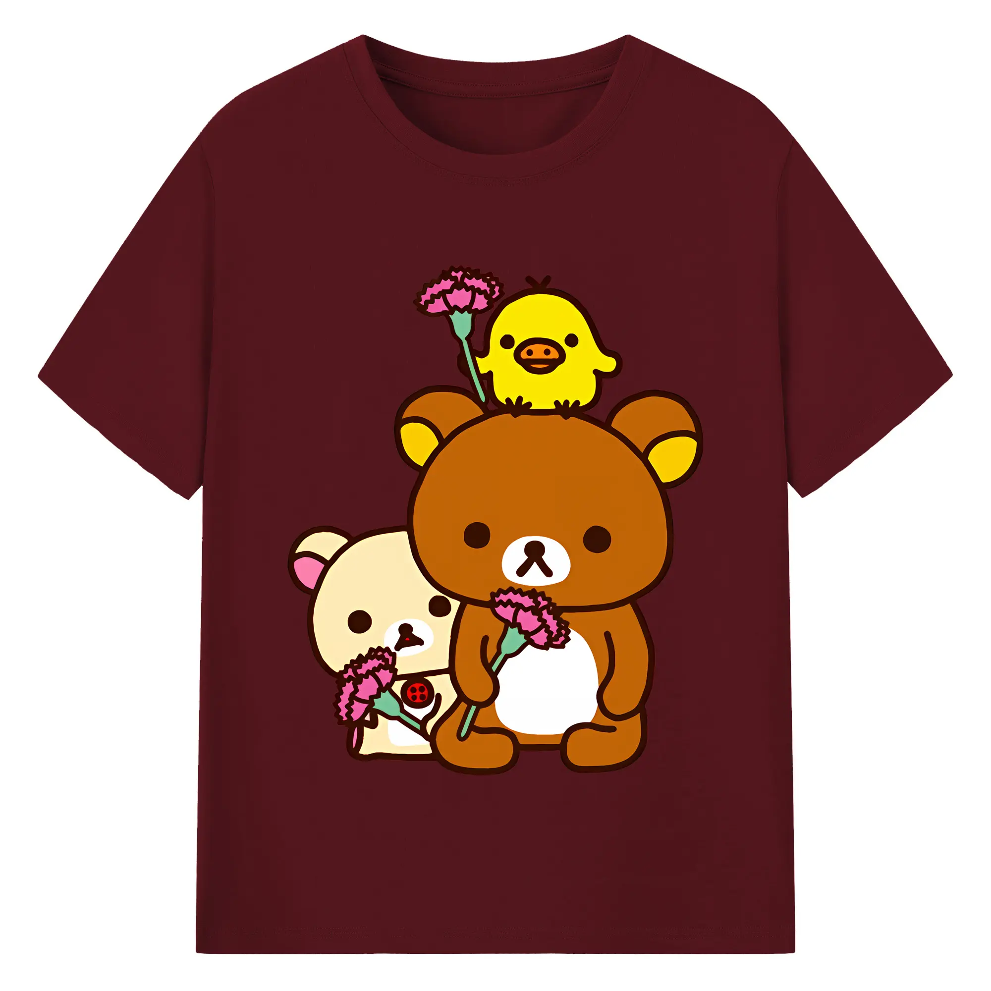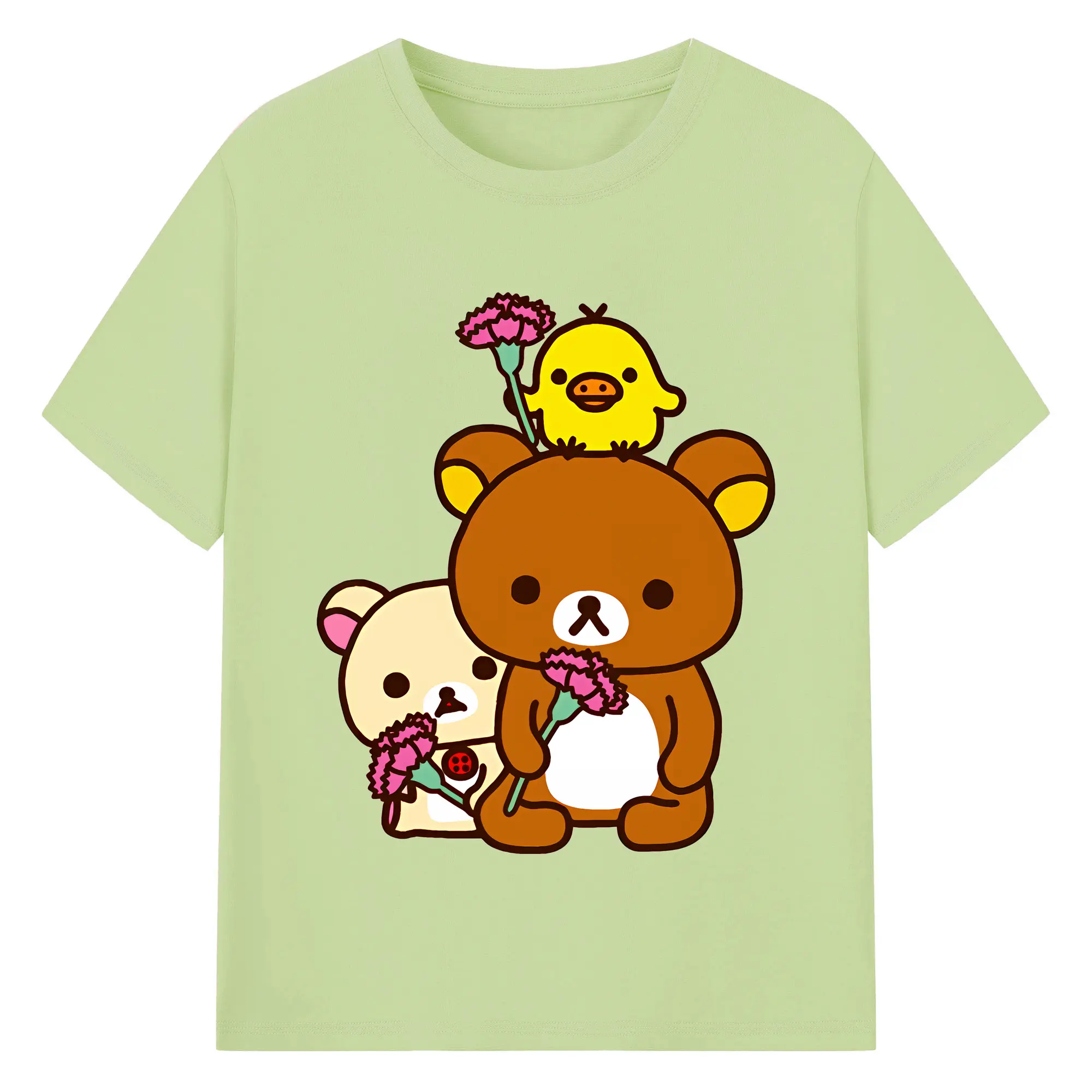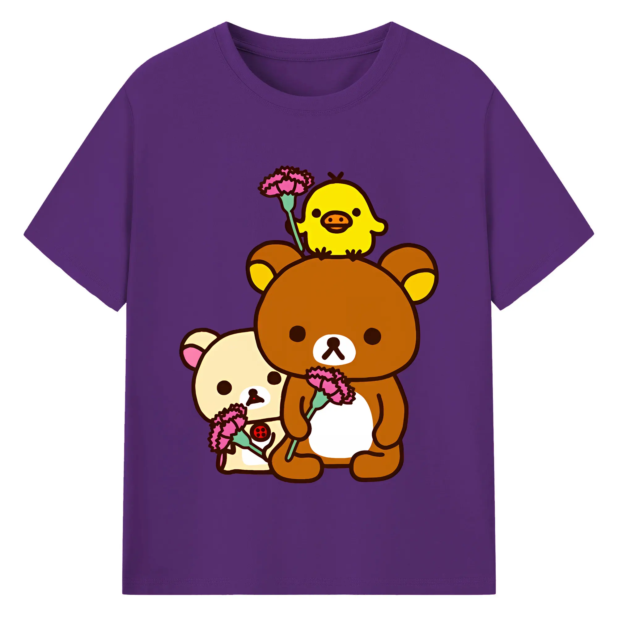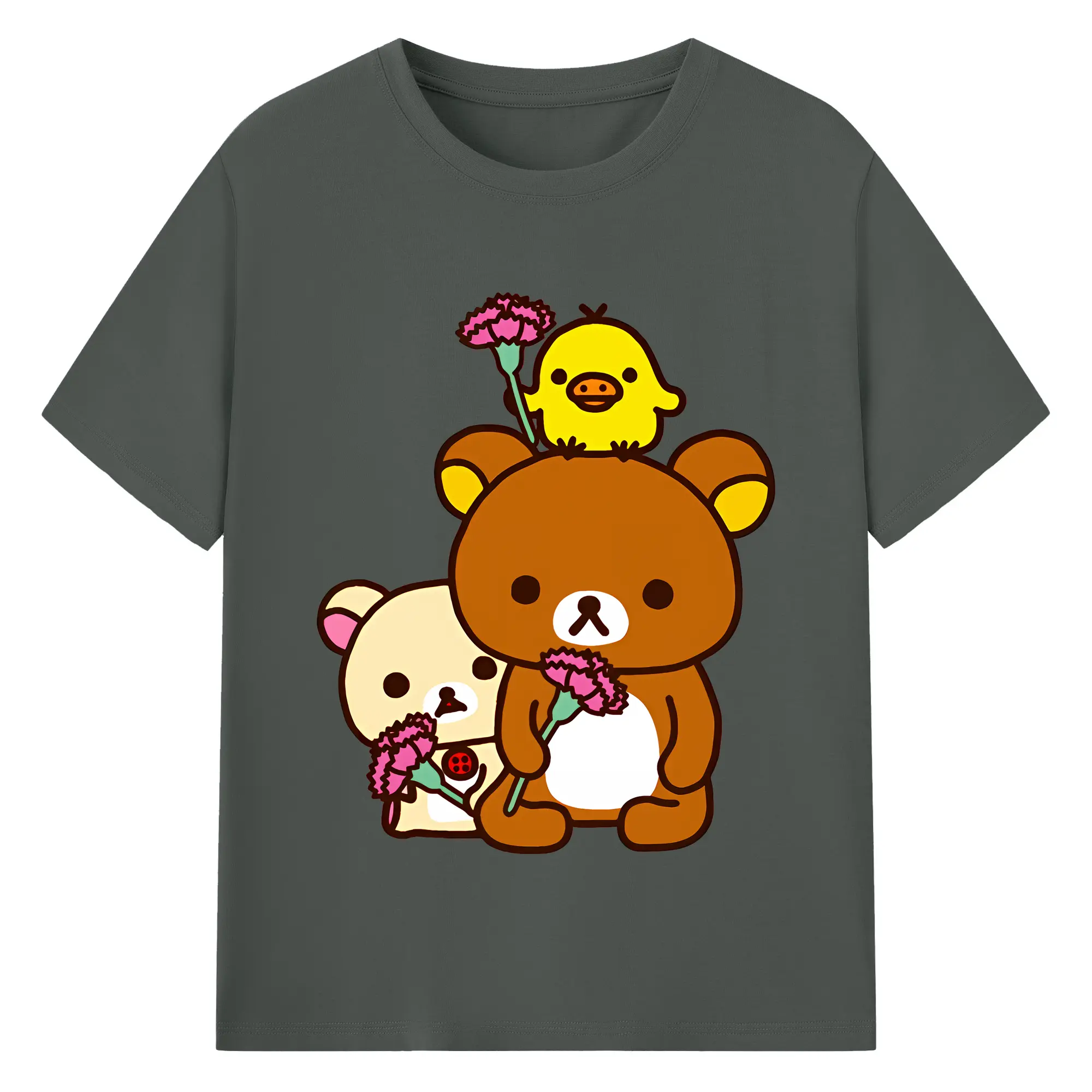 リラックマ (Rilakkuma) グッズ キイロイトリ (Kiiroitori) - 綿100% 半袖Tシャツ ・ バックプリント ・ 快適 通気性 ・ 日常使い 散歩 スポーツ用