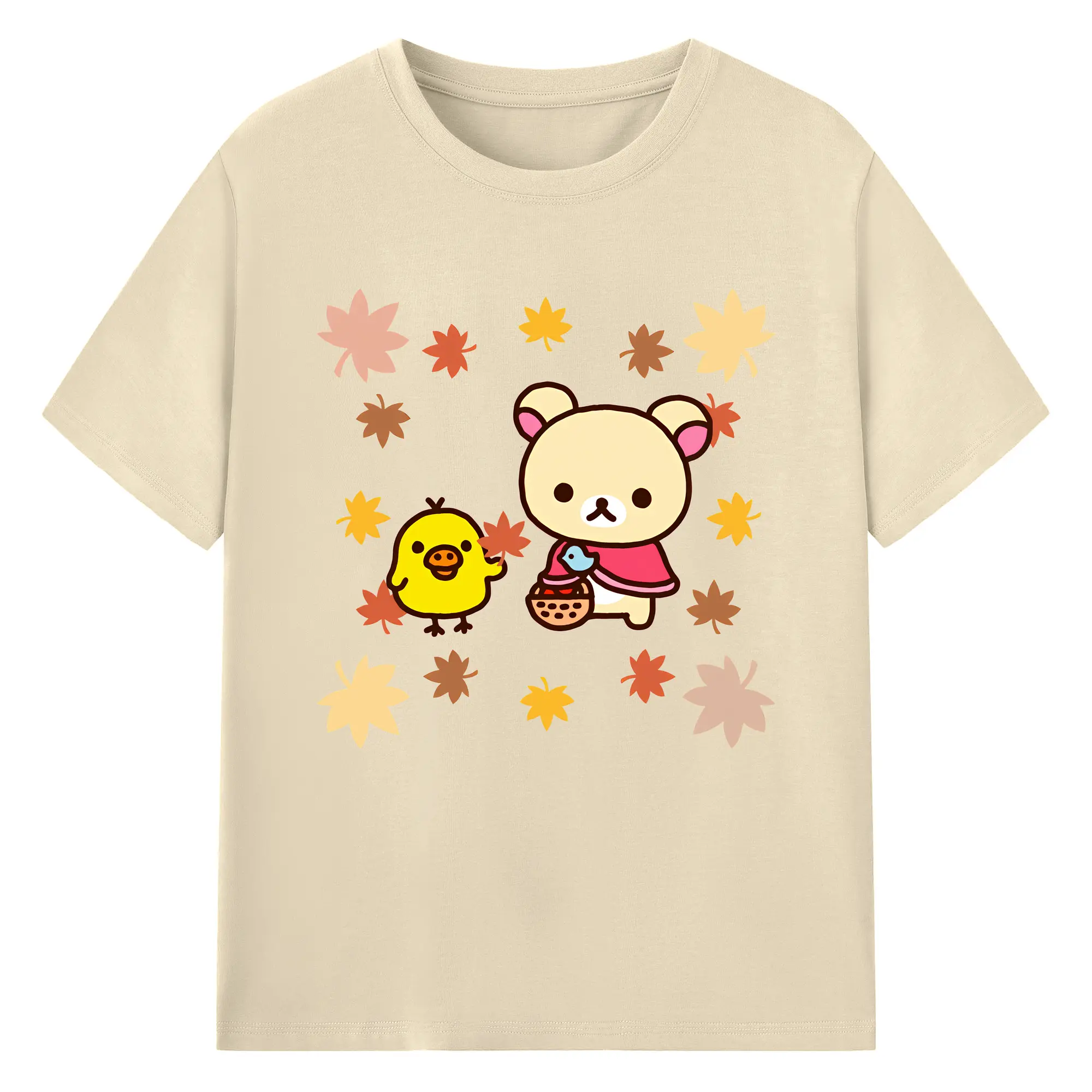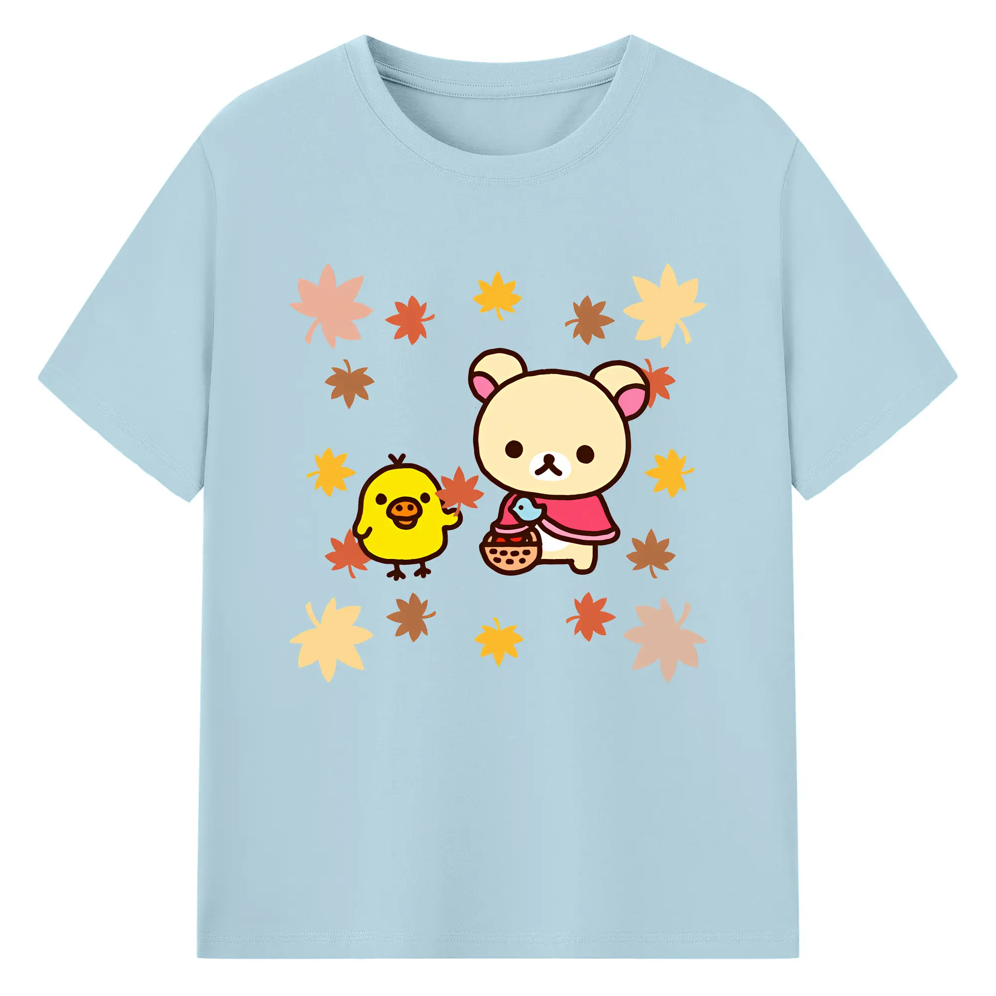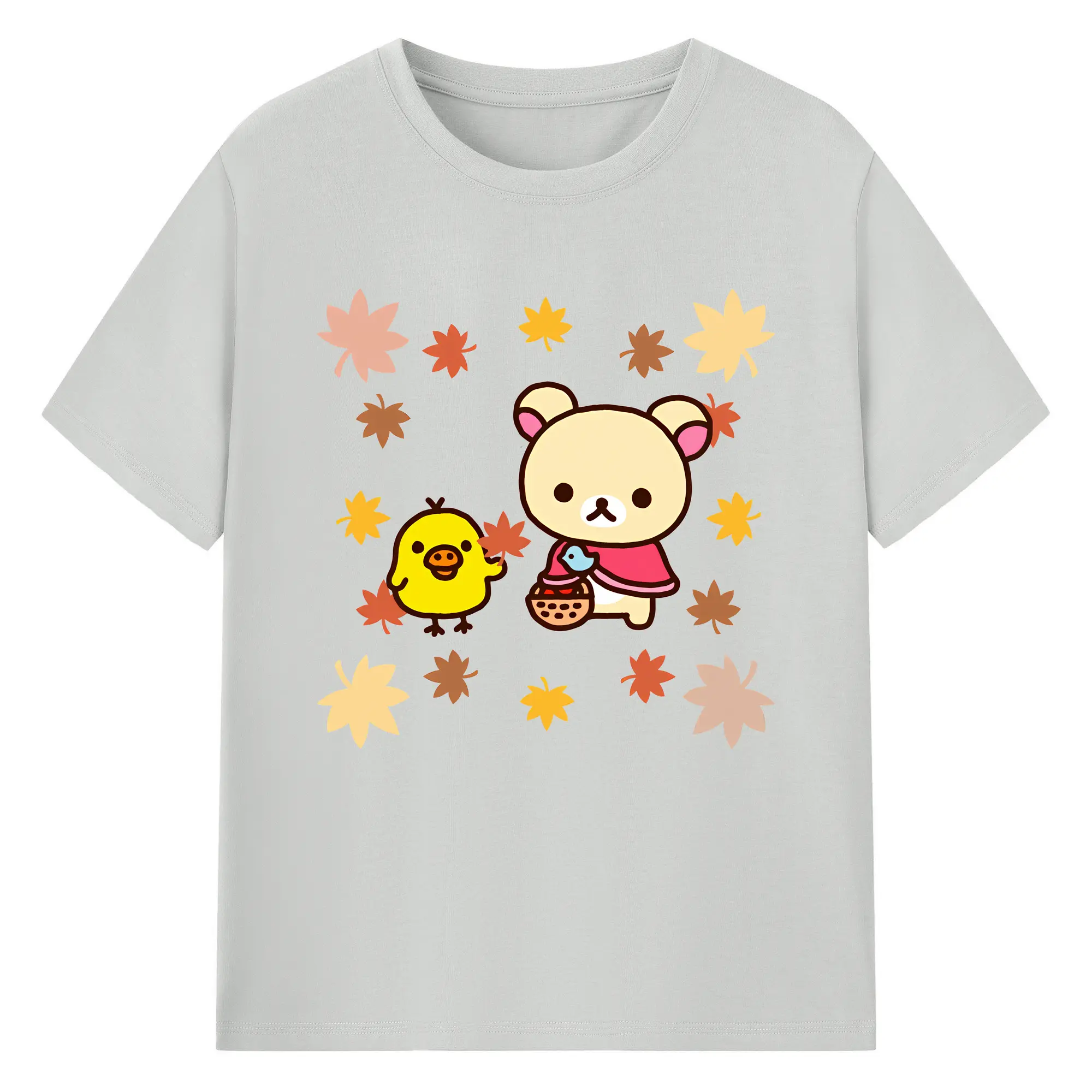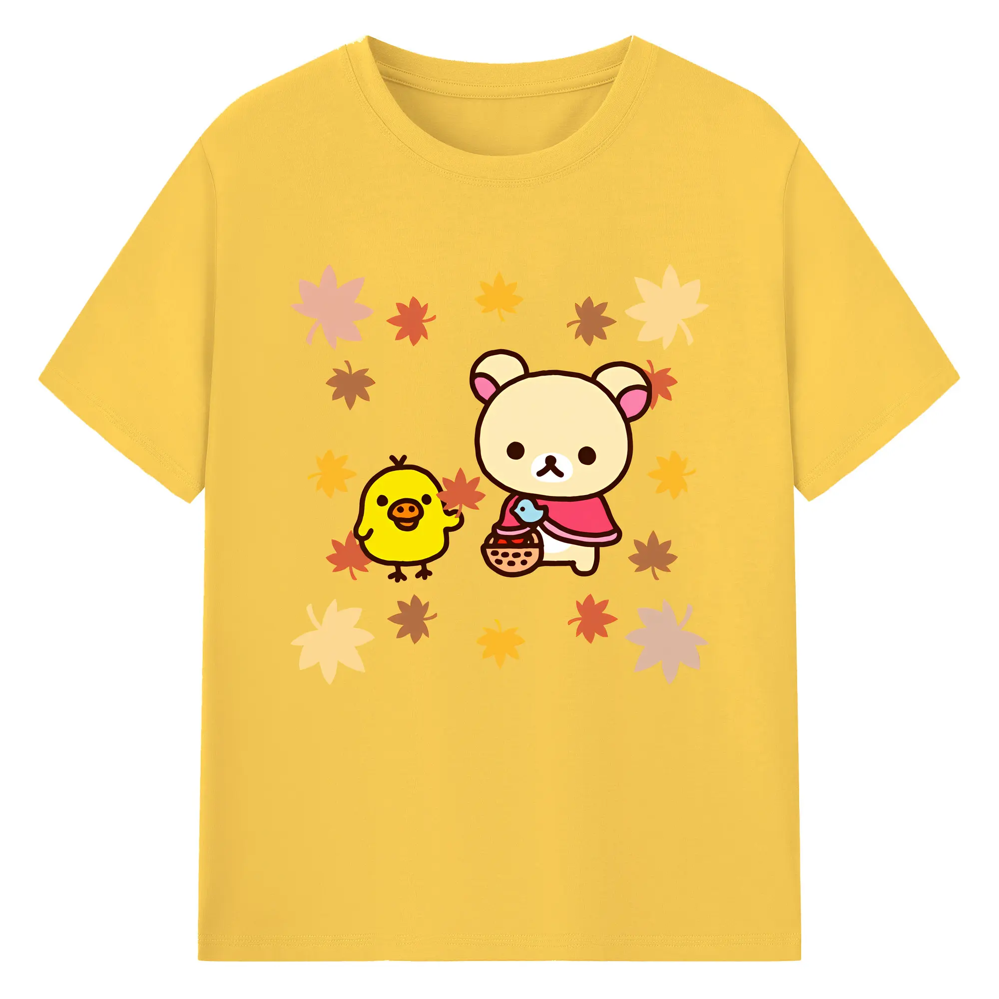 リラックマ (Rilakkuma) グッズ キイロイトリ (Kiiroitori) - 綿100% 半袖Tシャツ ・ バックプリント ・ 快適 通気性 ・ 日常使い 散歩 スポーツ用