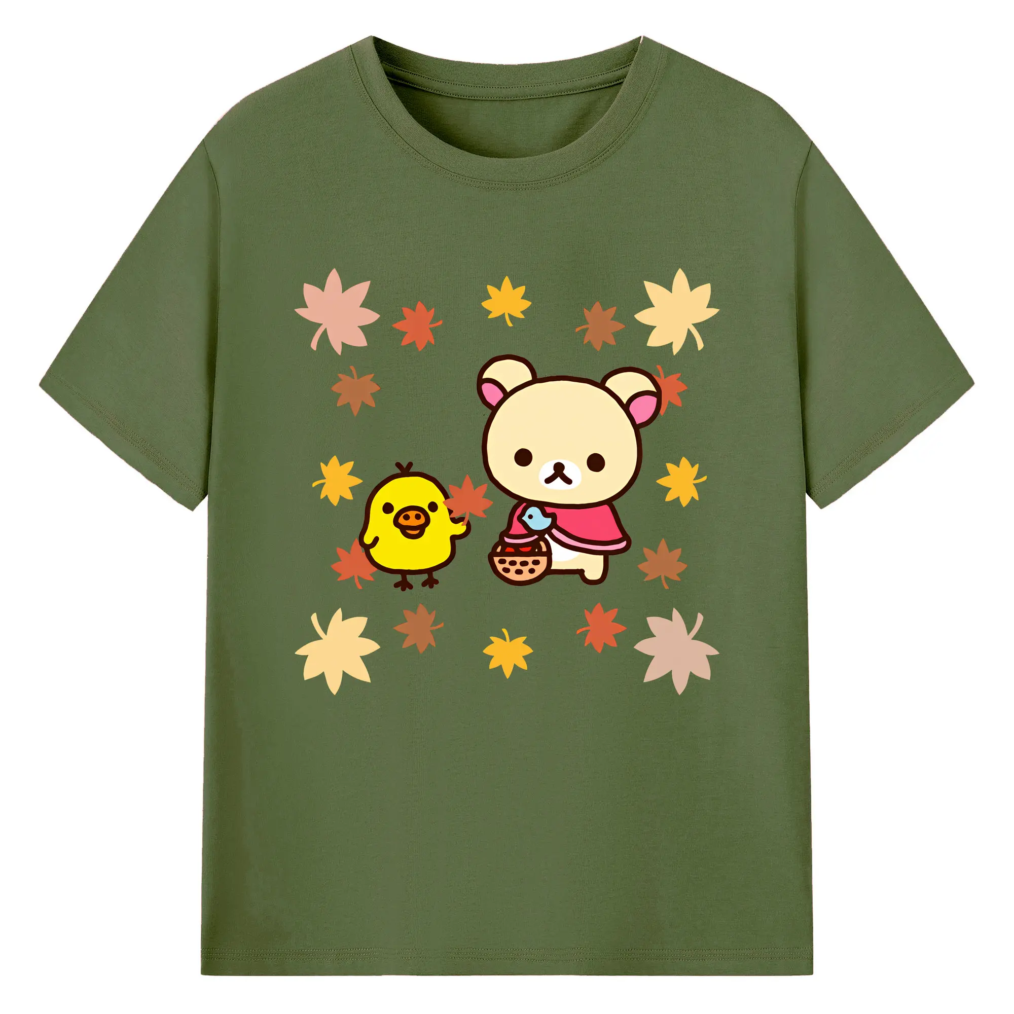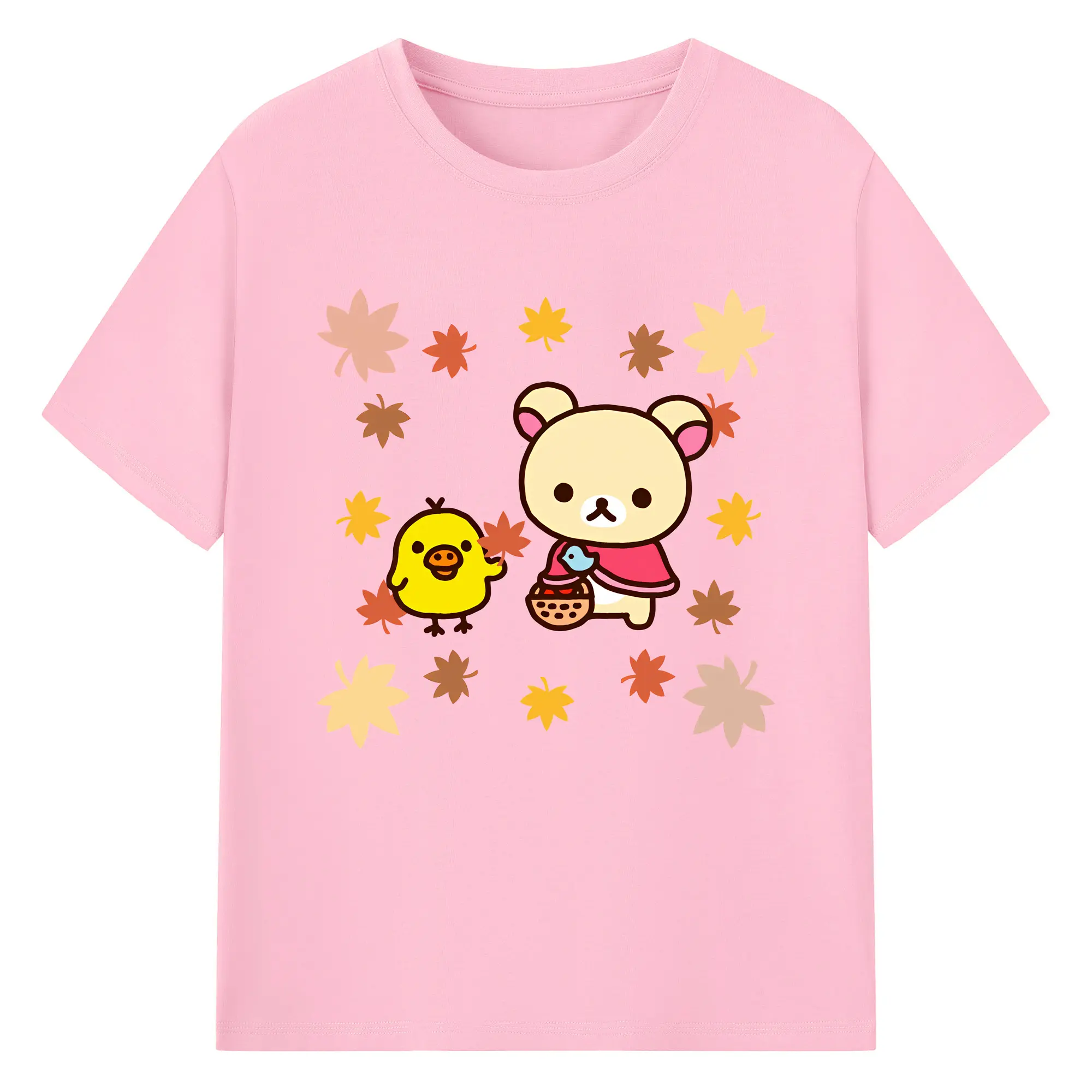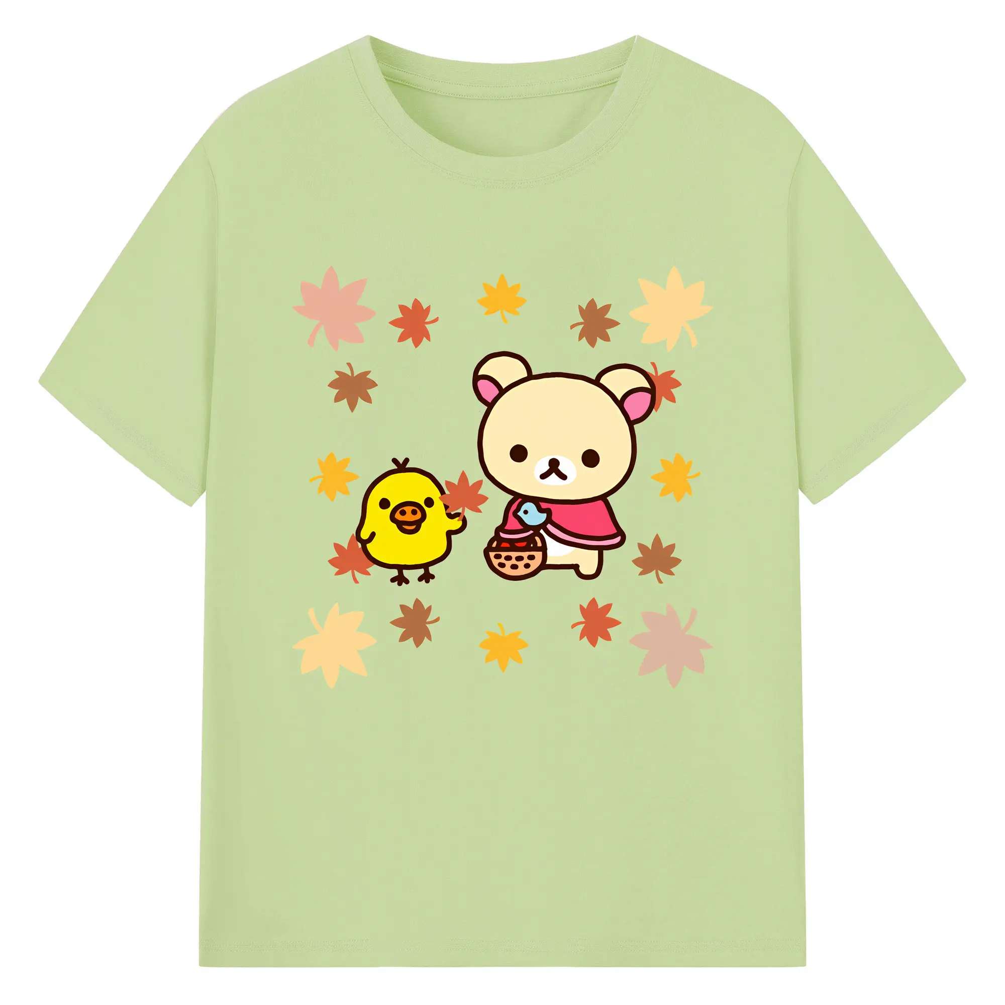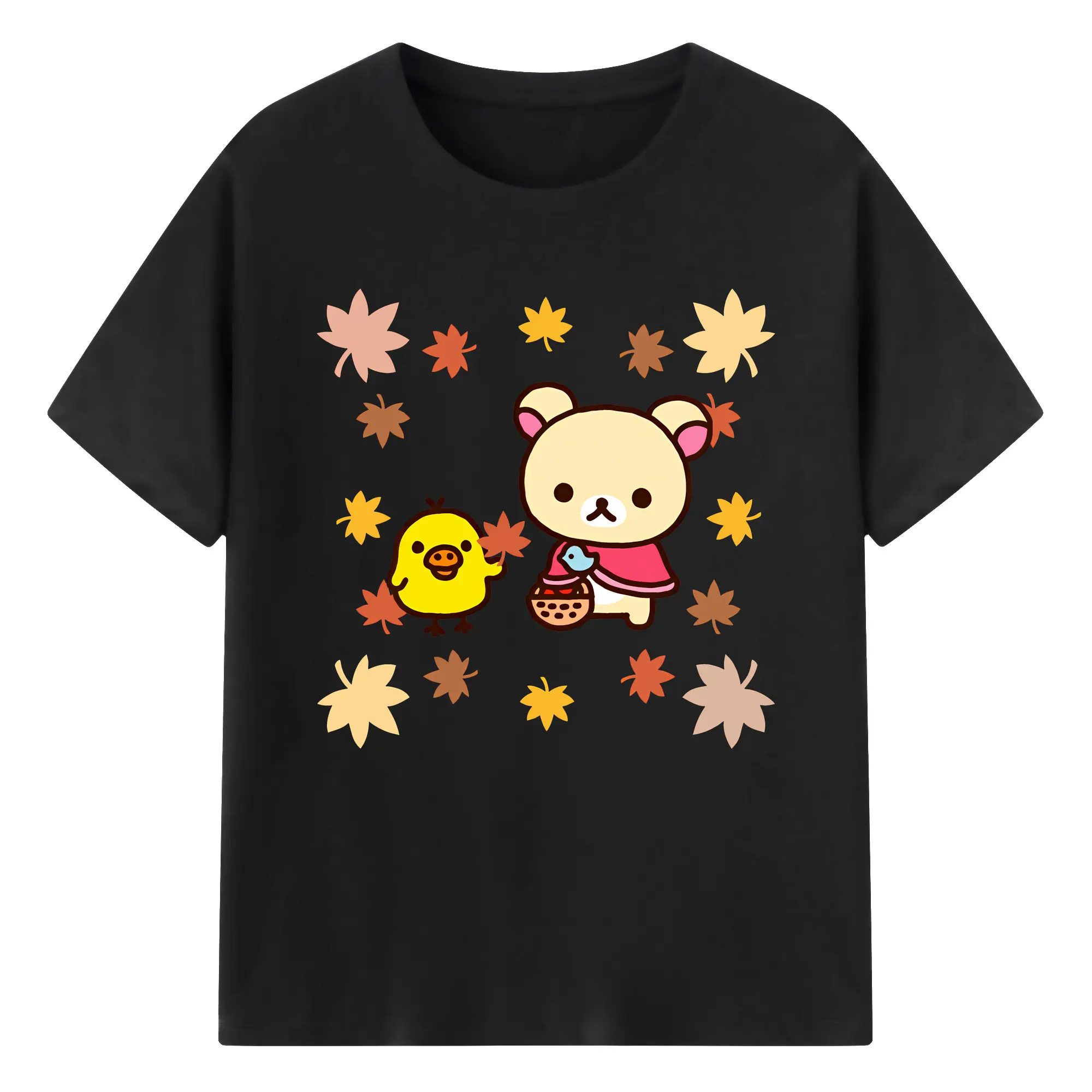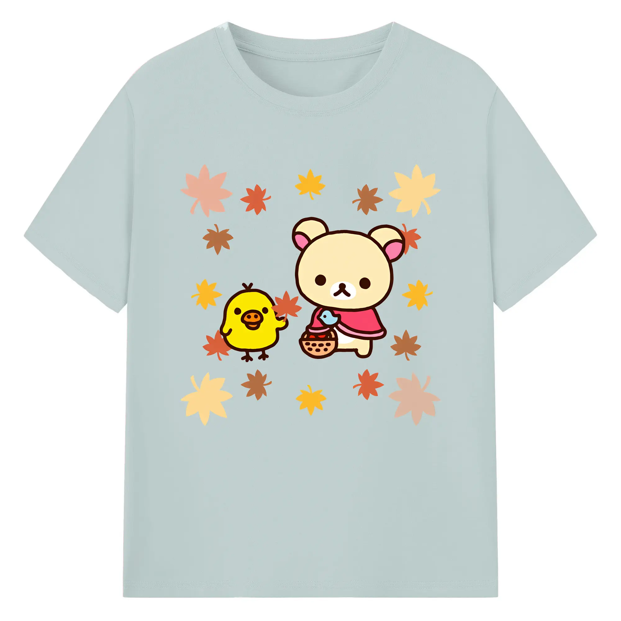 リラックマ (Rilakkuma) グッズ キイロイトリ (Kiiroitori) - 綿100% 半袖Tシャツ ・ バックプリント ・ 快適 通気性 ・ 日常使い 散歩 スポーツ用