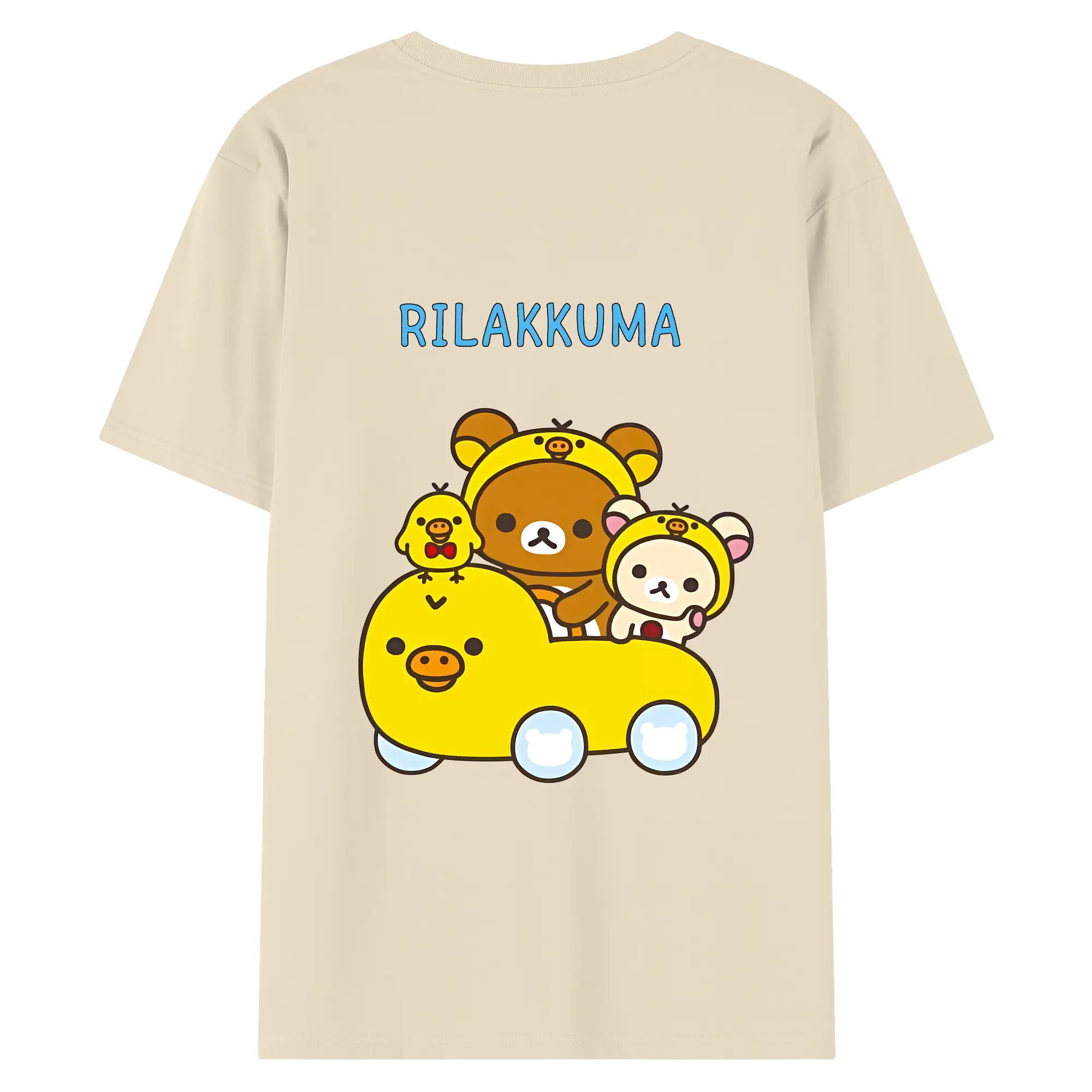 リラックマ (Rilakkuma) グッズ キイロイトリ (Kiiroitori) - 綿100% ヴィンテージ風 半袖Tシャツ ・ 背面プリント ・ 柔らか肌触り ・ 通気性 快適 ・ スポーツ カジュアル 外出用