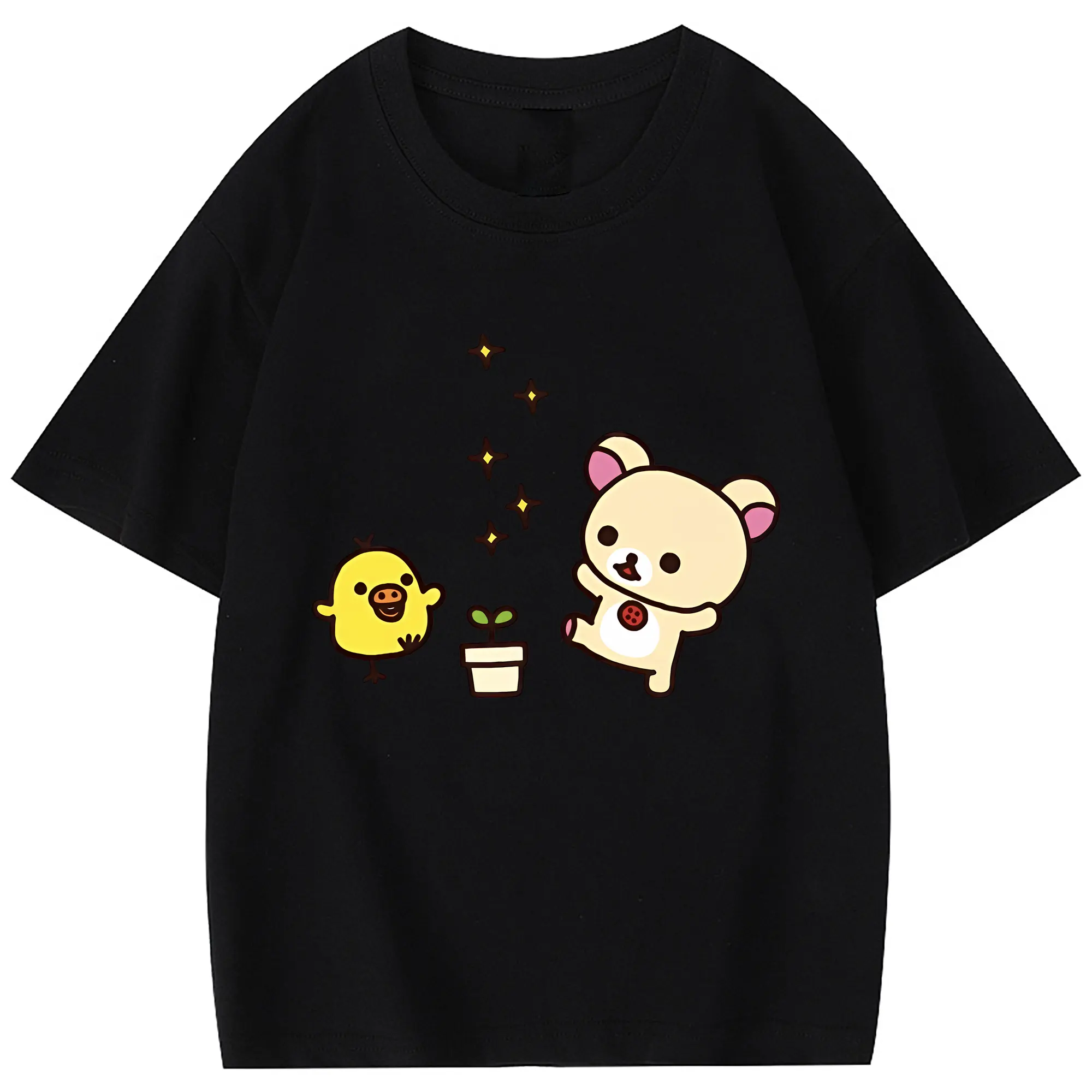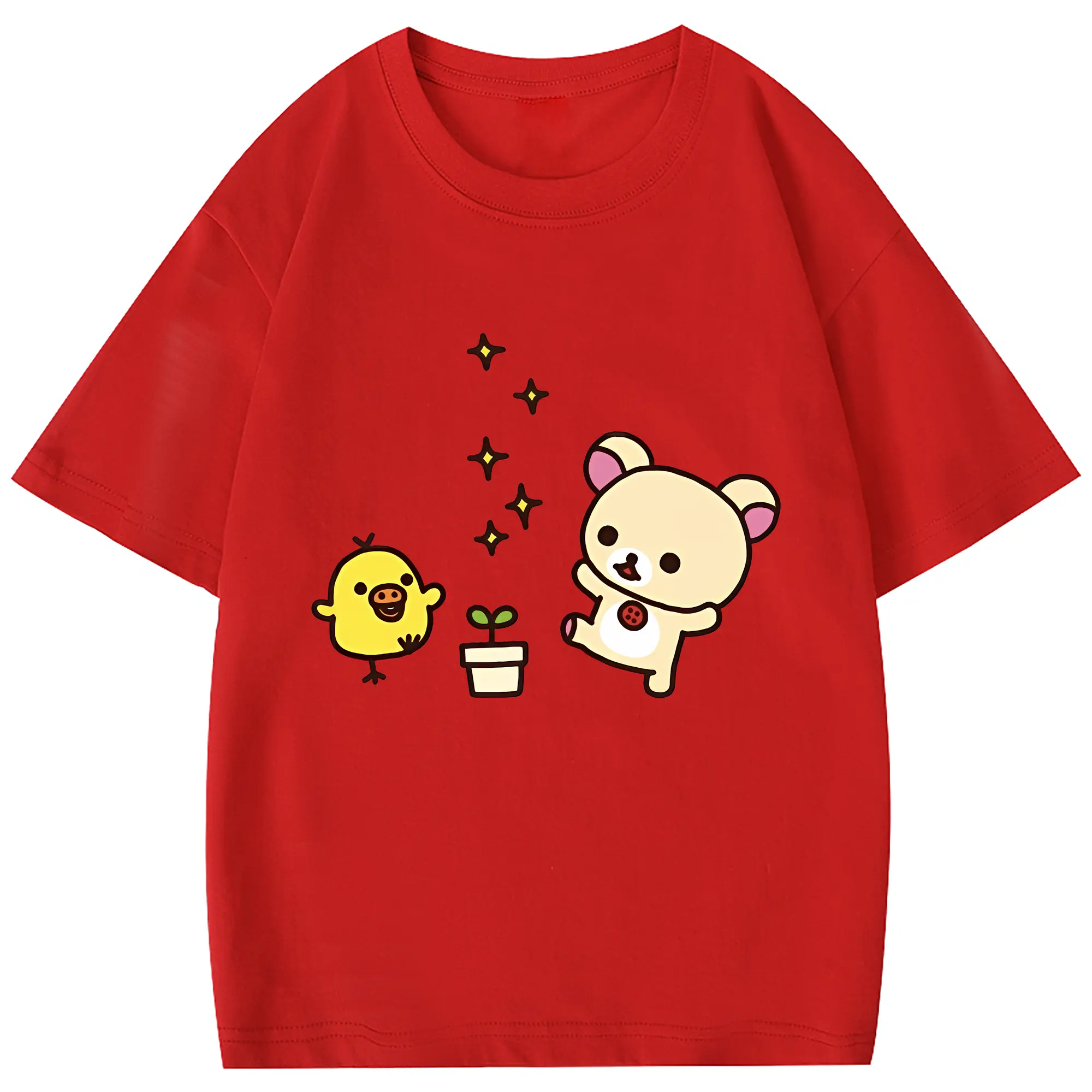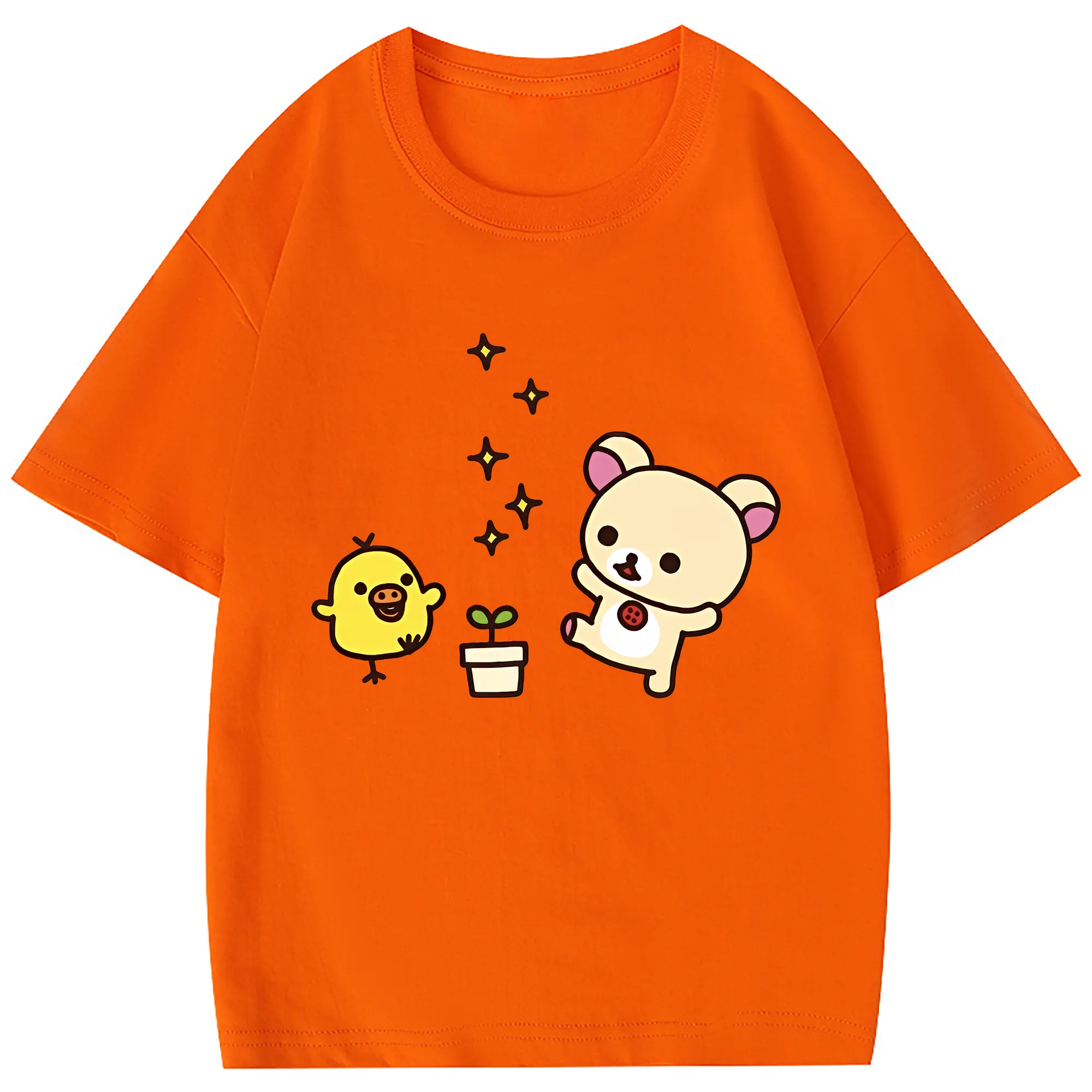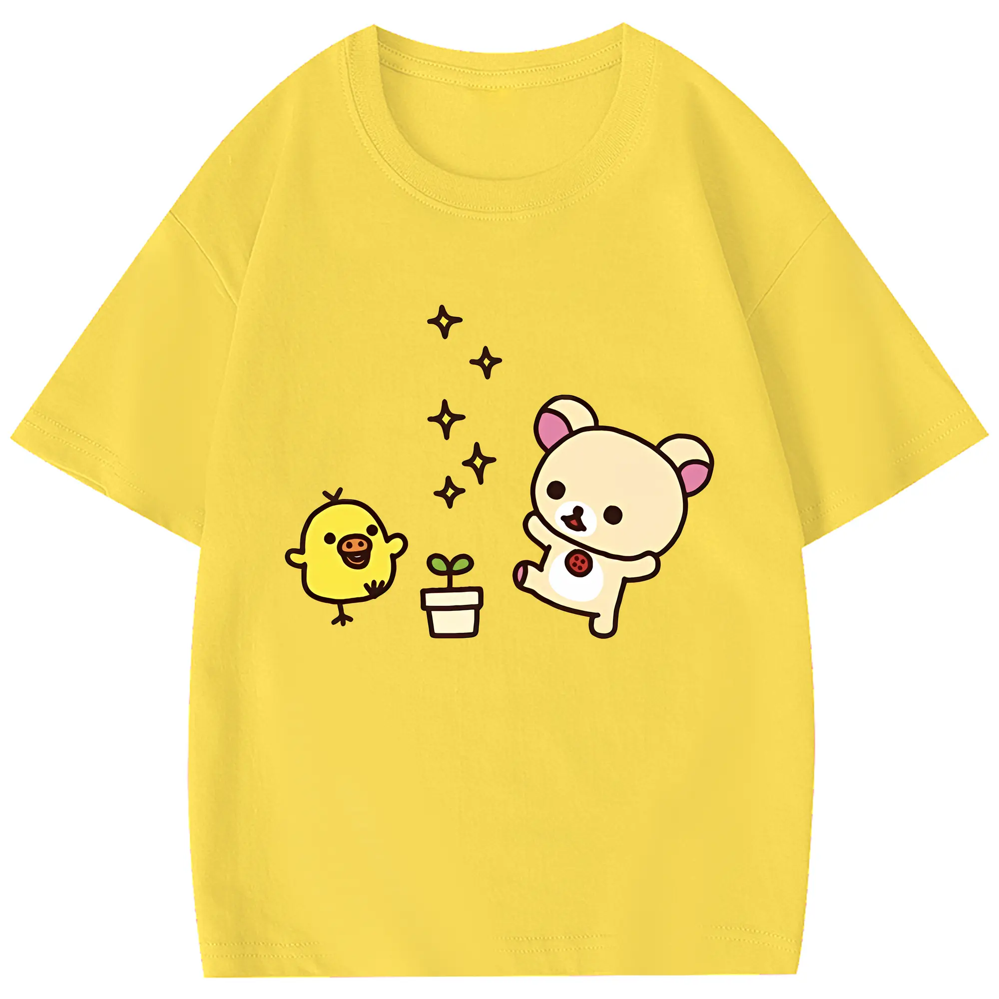 リラックマ (Rilakkuma) グッズ キイロイトリ (Kiiroitori) - 綿100% 半袖Tシャツ ・ フロントプリント ・ 快適 通気性 ・ 日常使い 散歩 スポーツ用