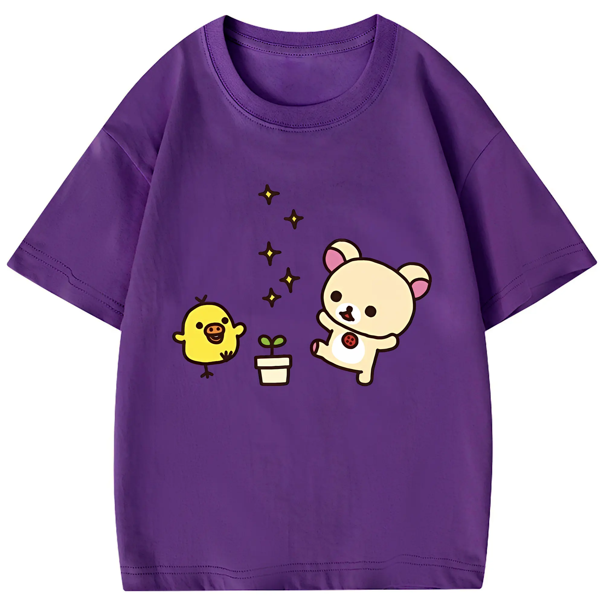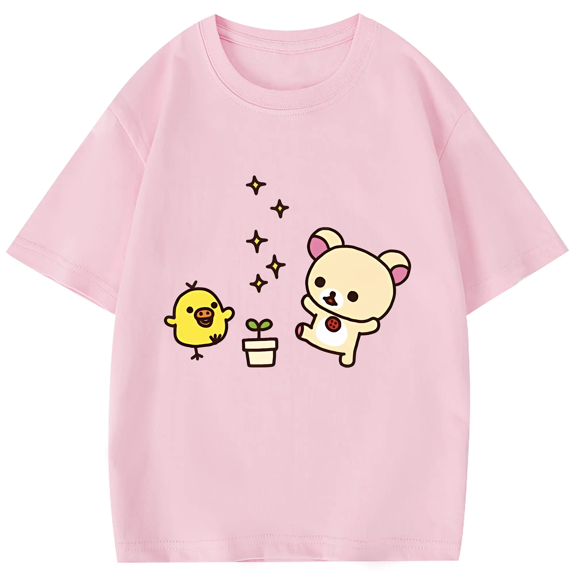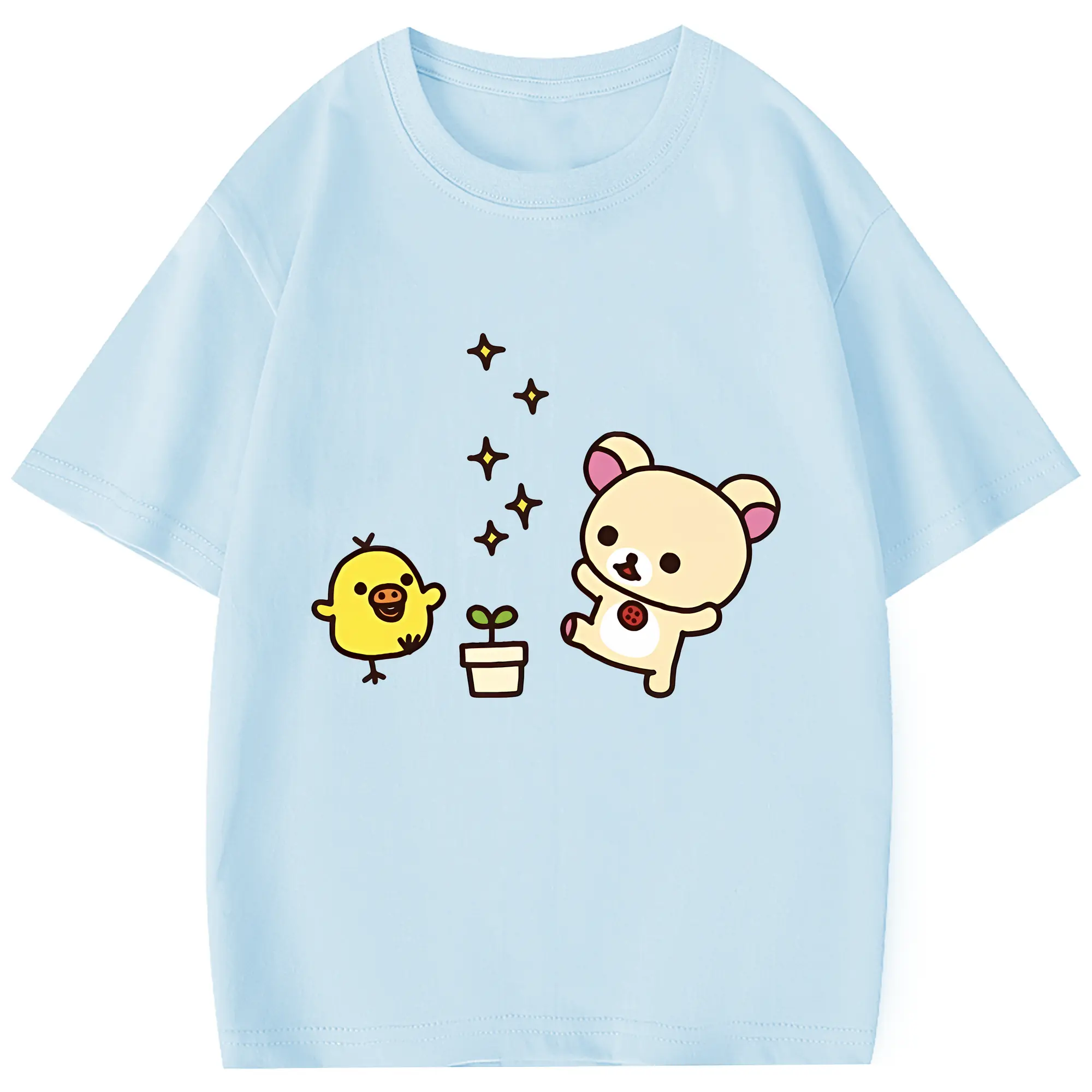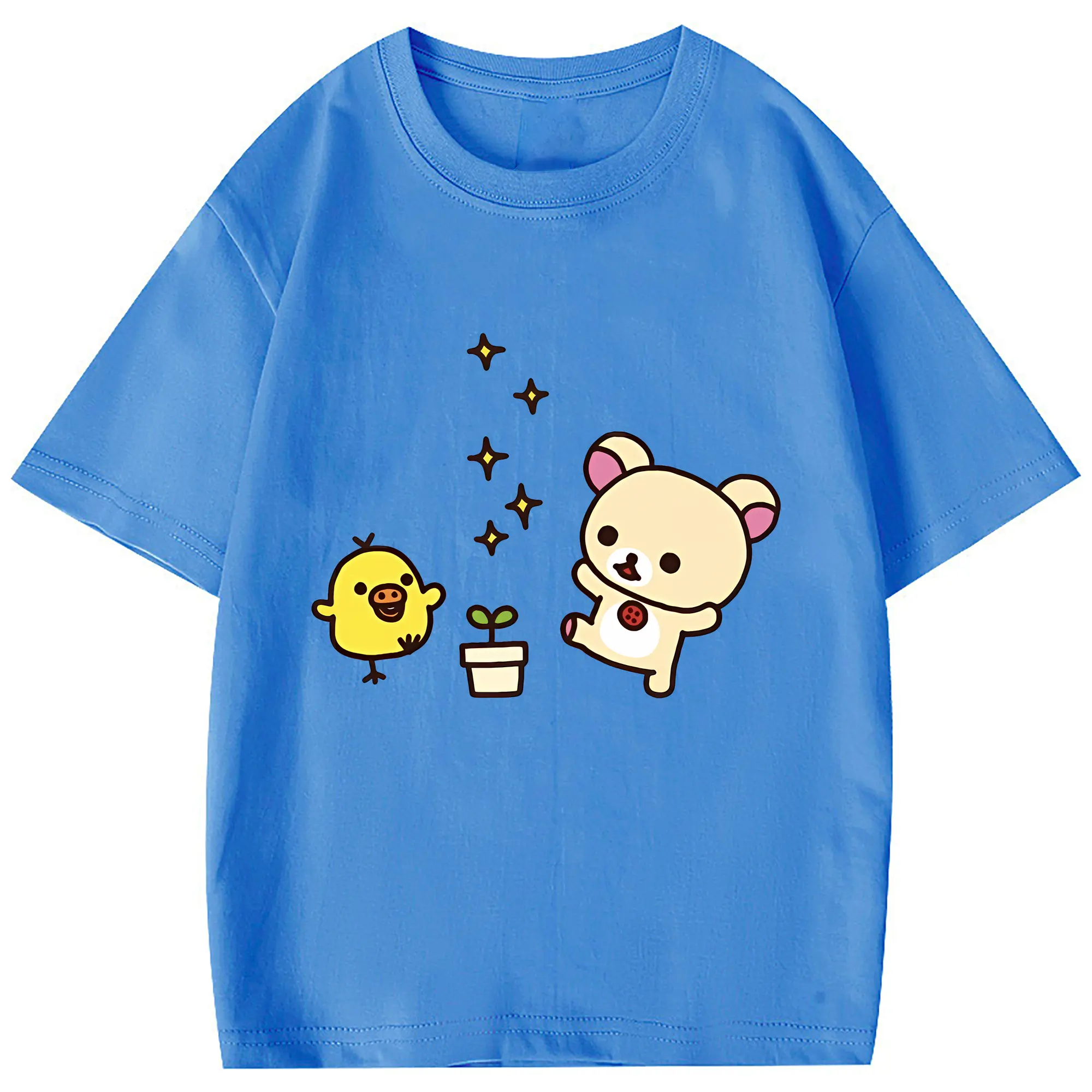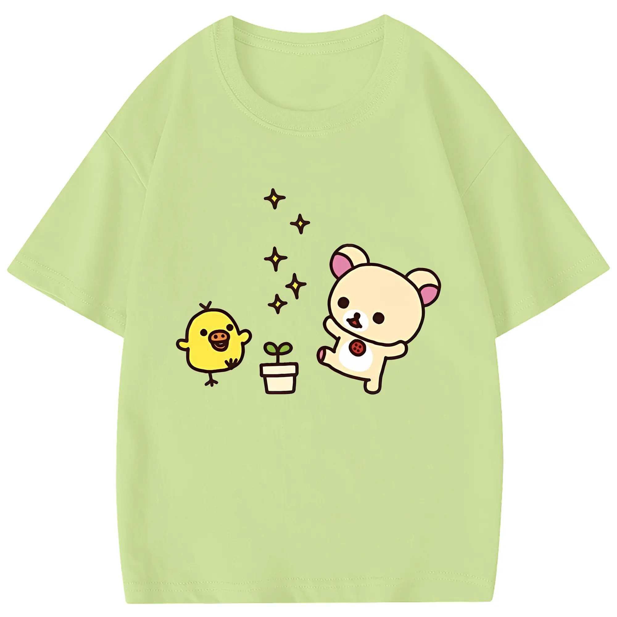 リラックマ (Rilakkuma) グッズ キイロイトリ (Kiiroitori) - 綿100% 半袖Tシャツ ・ フロントプリント ・ 快適 通気性 ・ 日常使い 散歩 スポーツ用