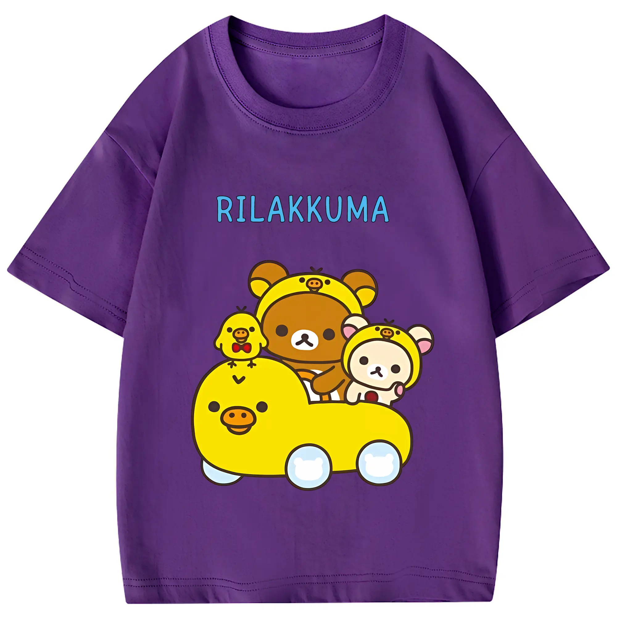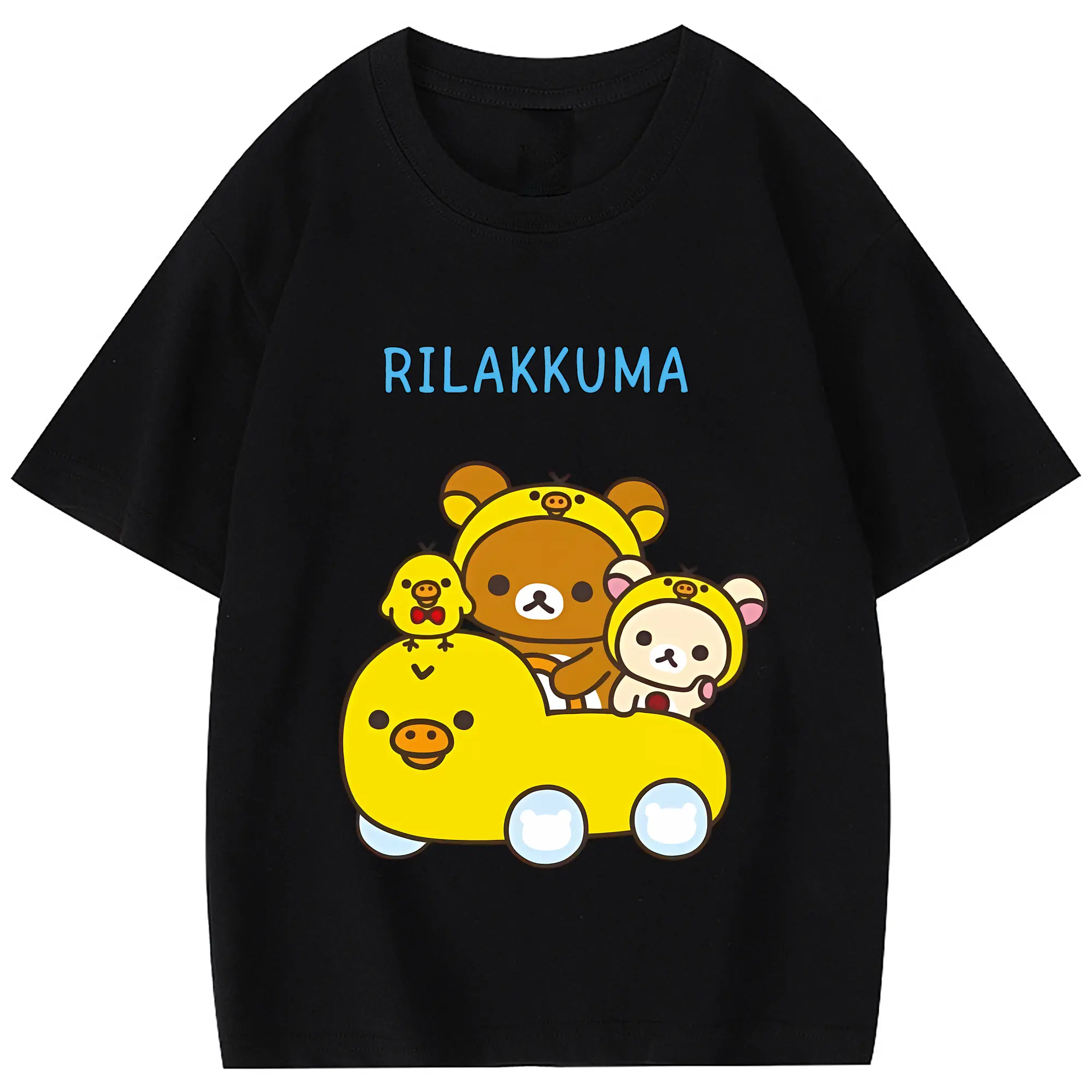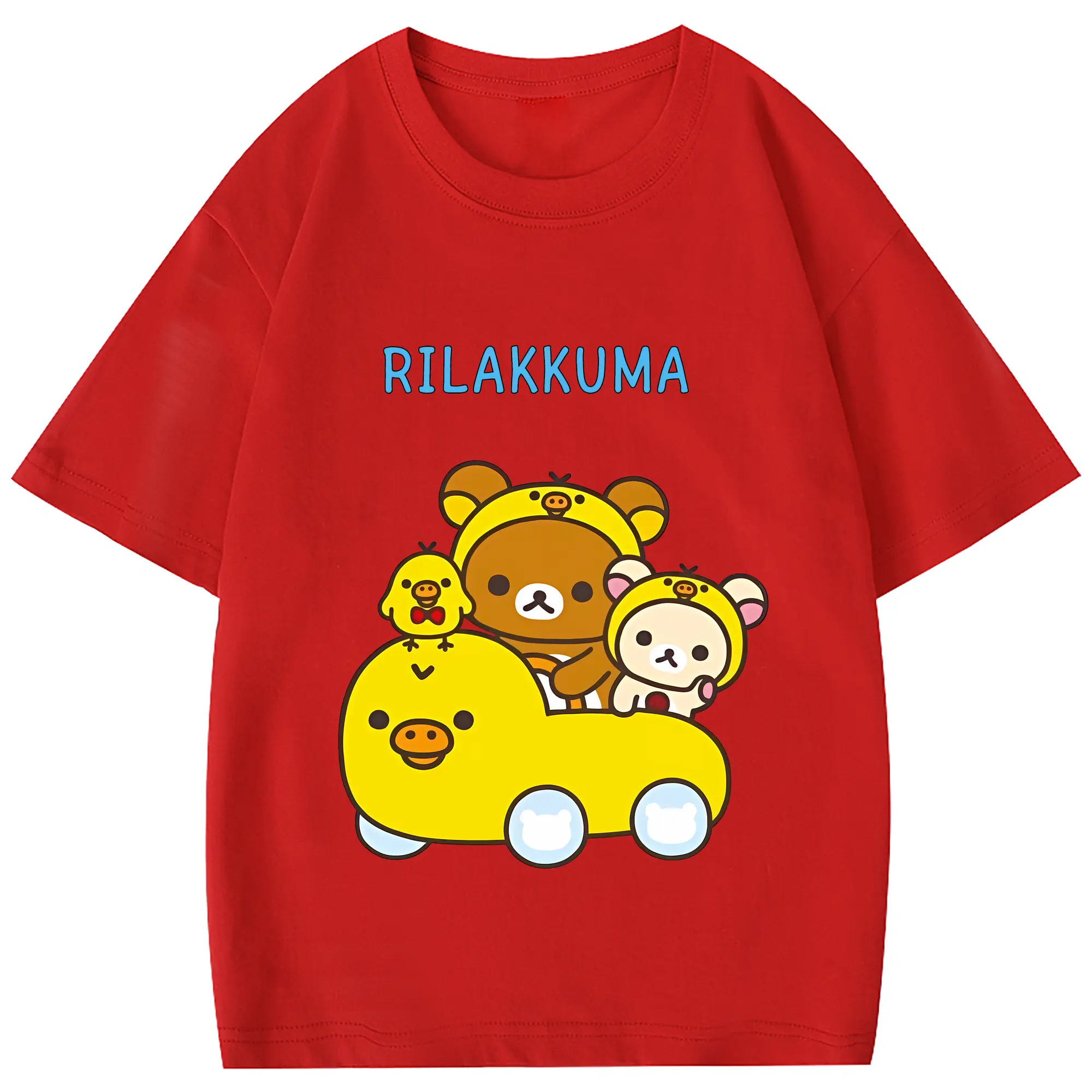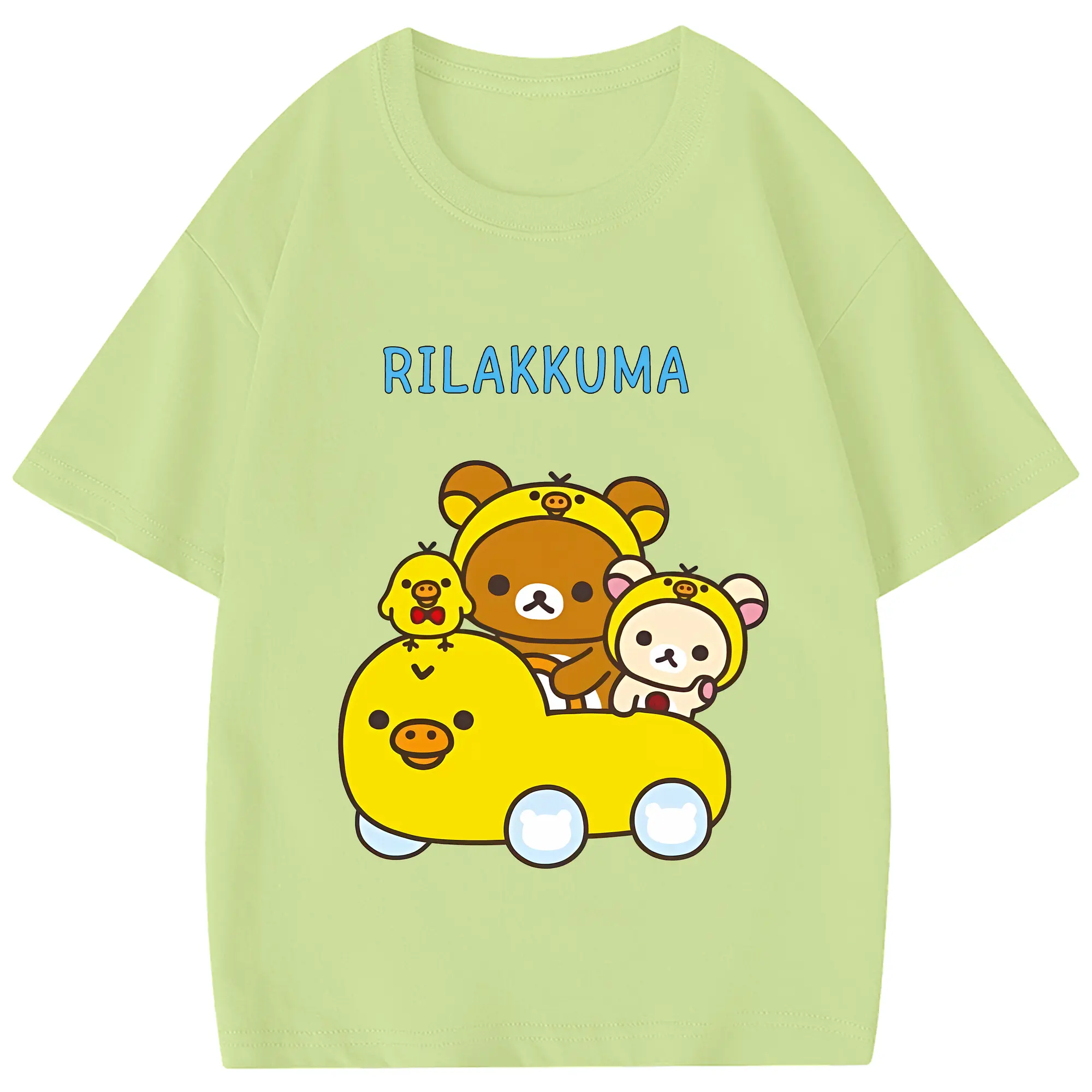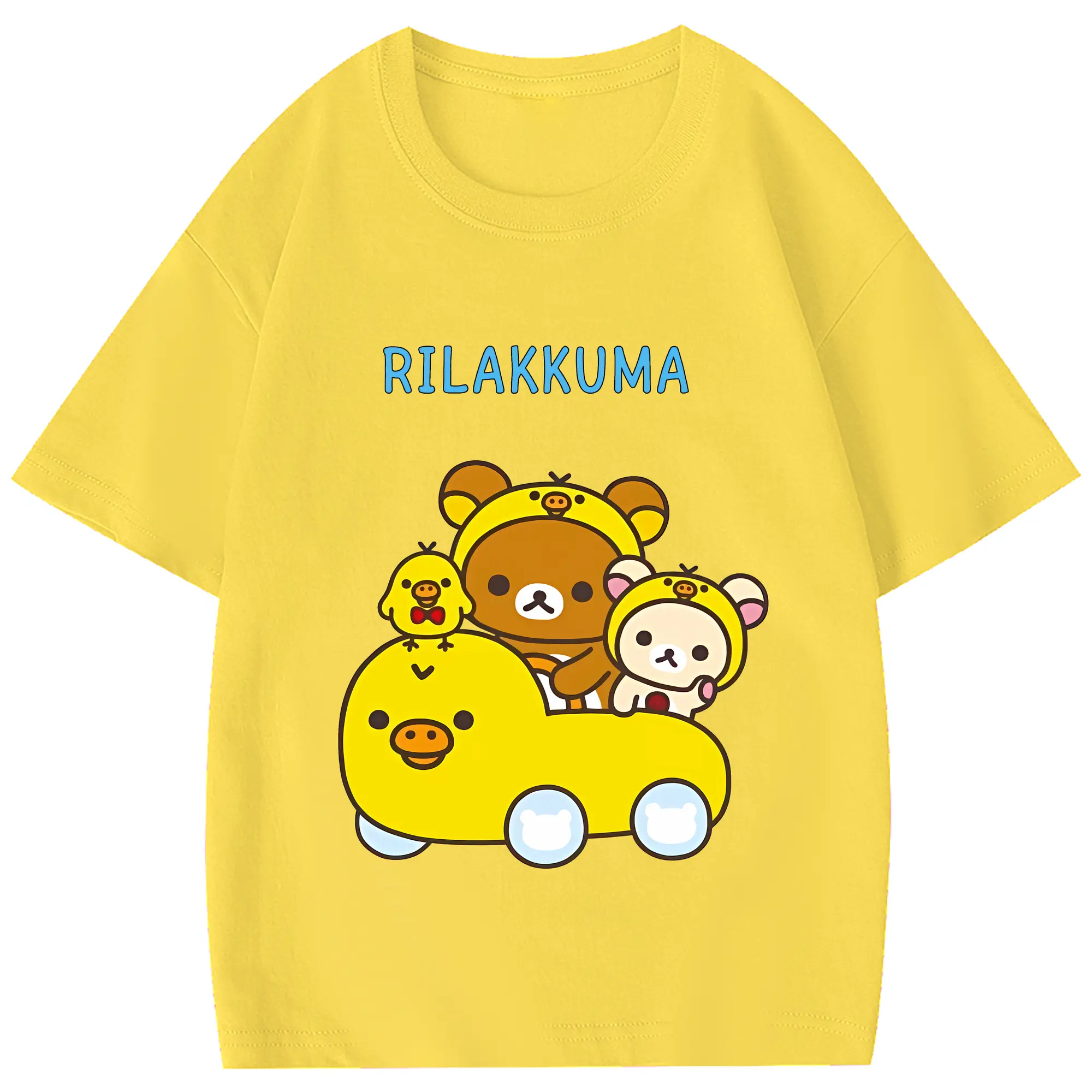 リラックマ (Rilakkuma) グッズ キイロイトリ (Kiiroitori) - 綿100% 半袖Tシャツ ・ フロントプリント ・ 快適 通気性 ・ 日常使い 散歩 スポーツ用