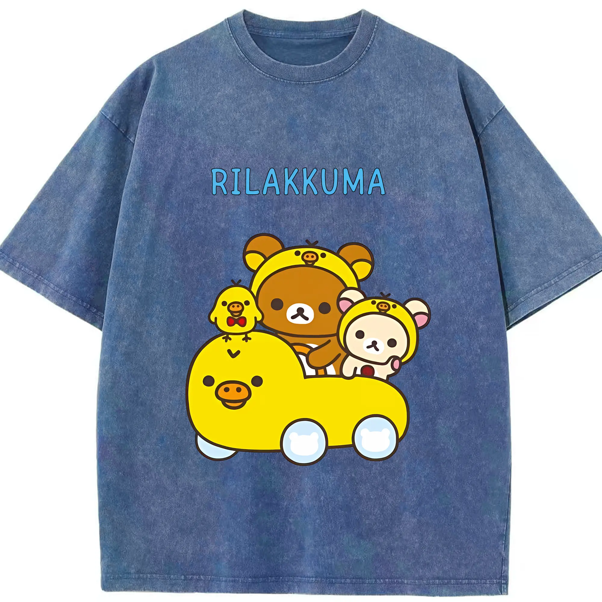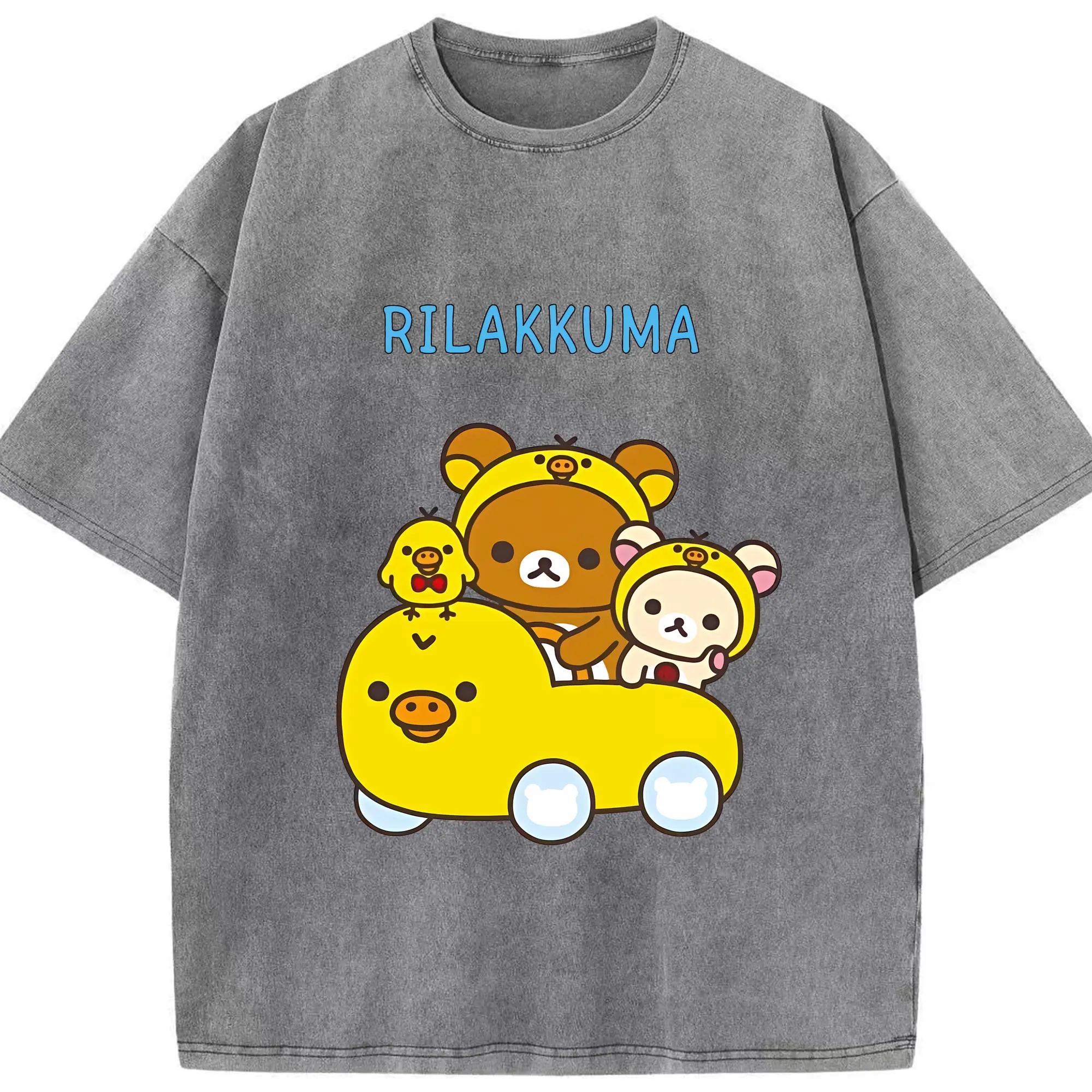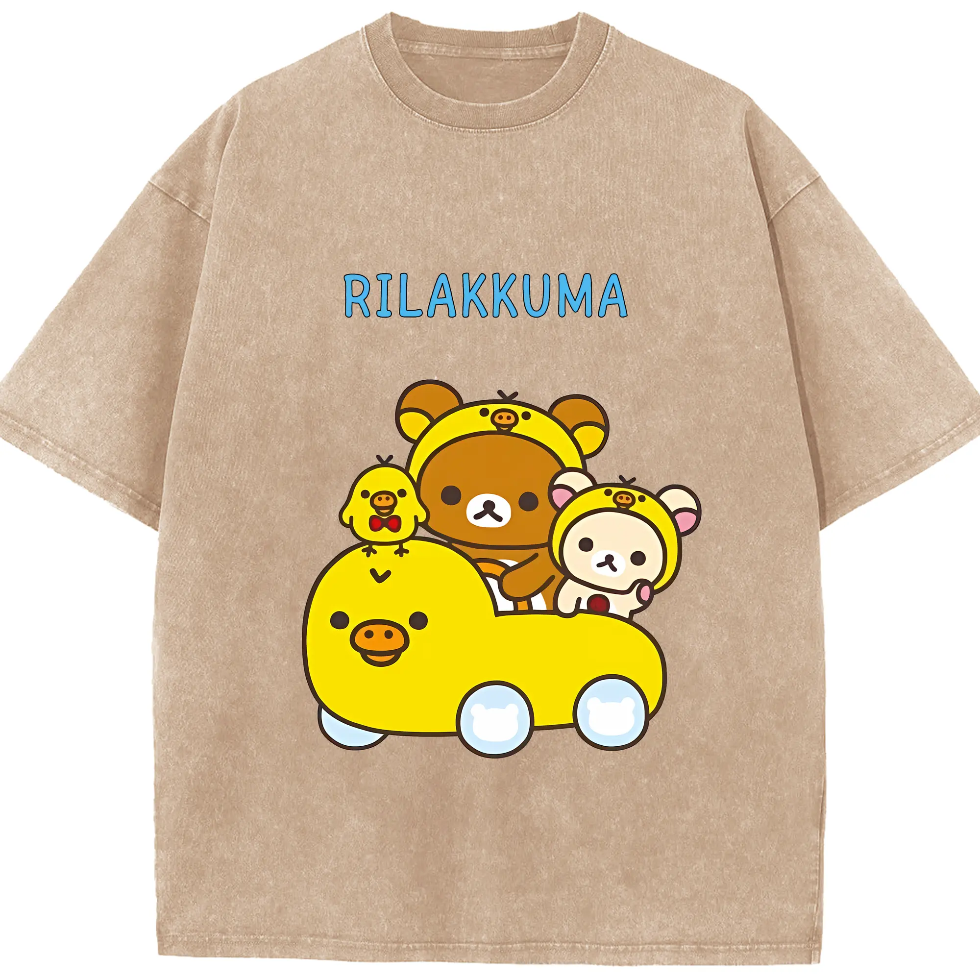 リラックマ (Rilakkuma) グッズ キイロイトリ (Kiiroitori) - 綿100% ヴィンテージ風 半袖Tシャツ ・ 背面プリント ・ 柔らか肌触り ・ 通気性 快適 ・ スポーツ カジュアル 外出用