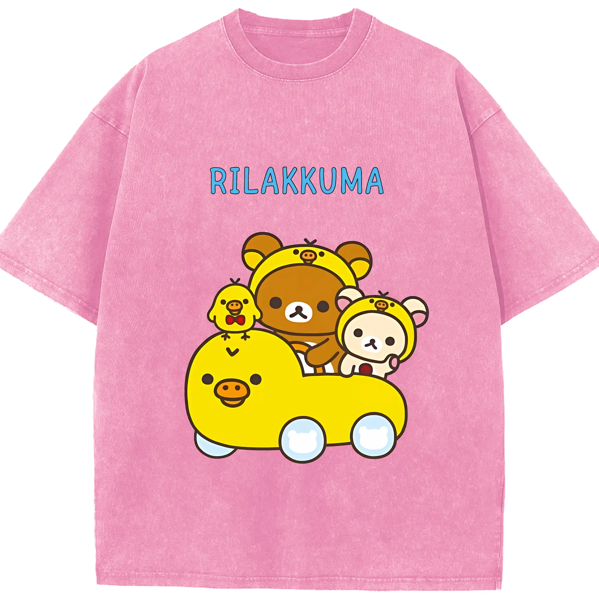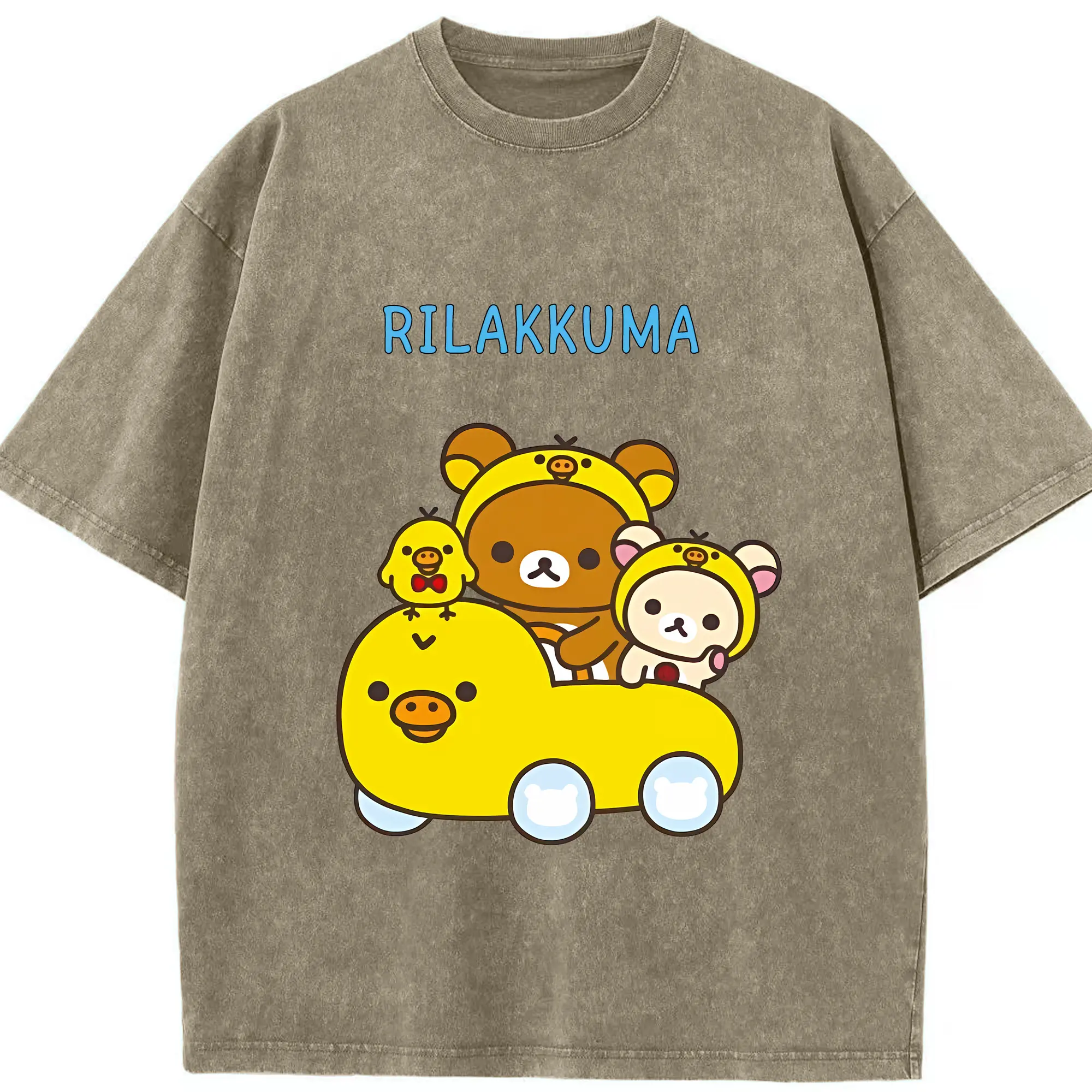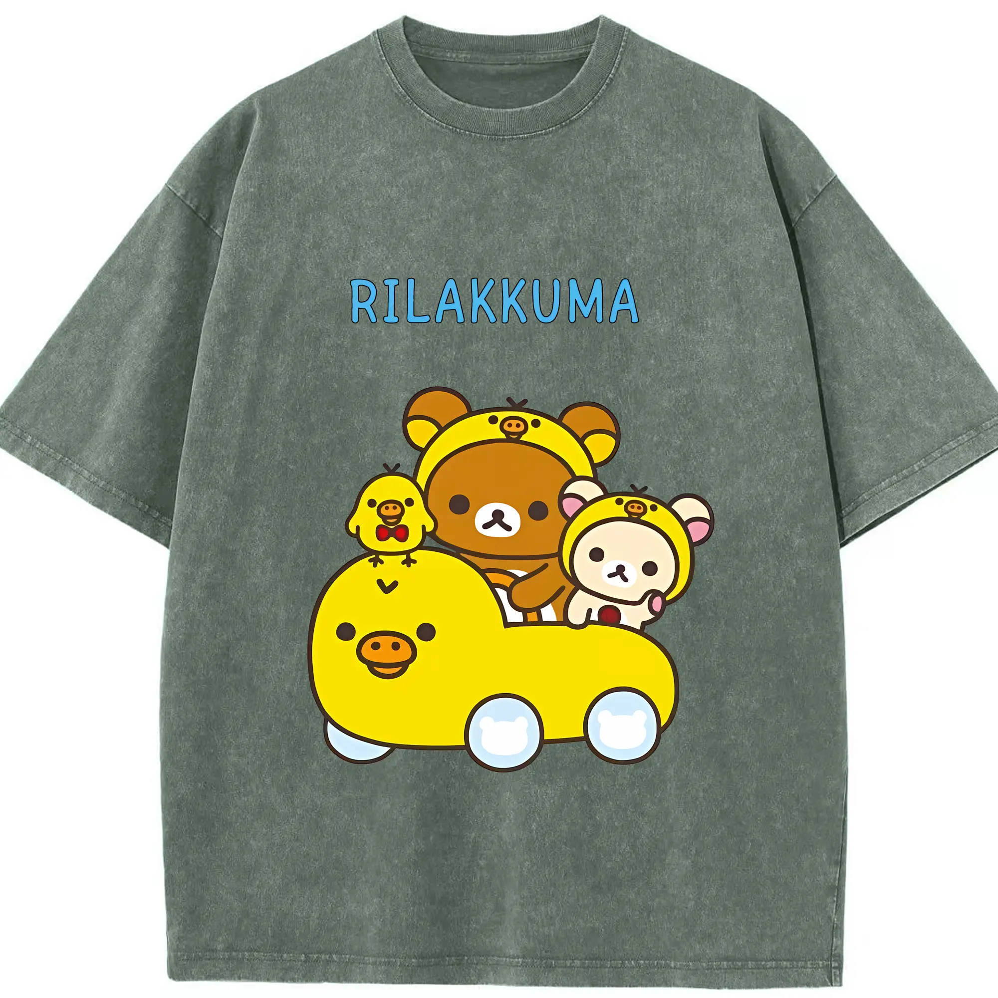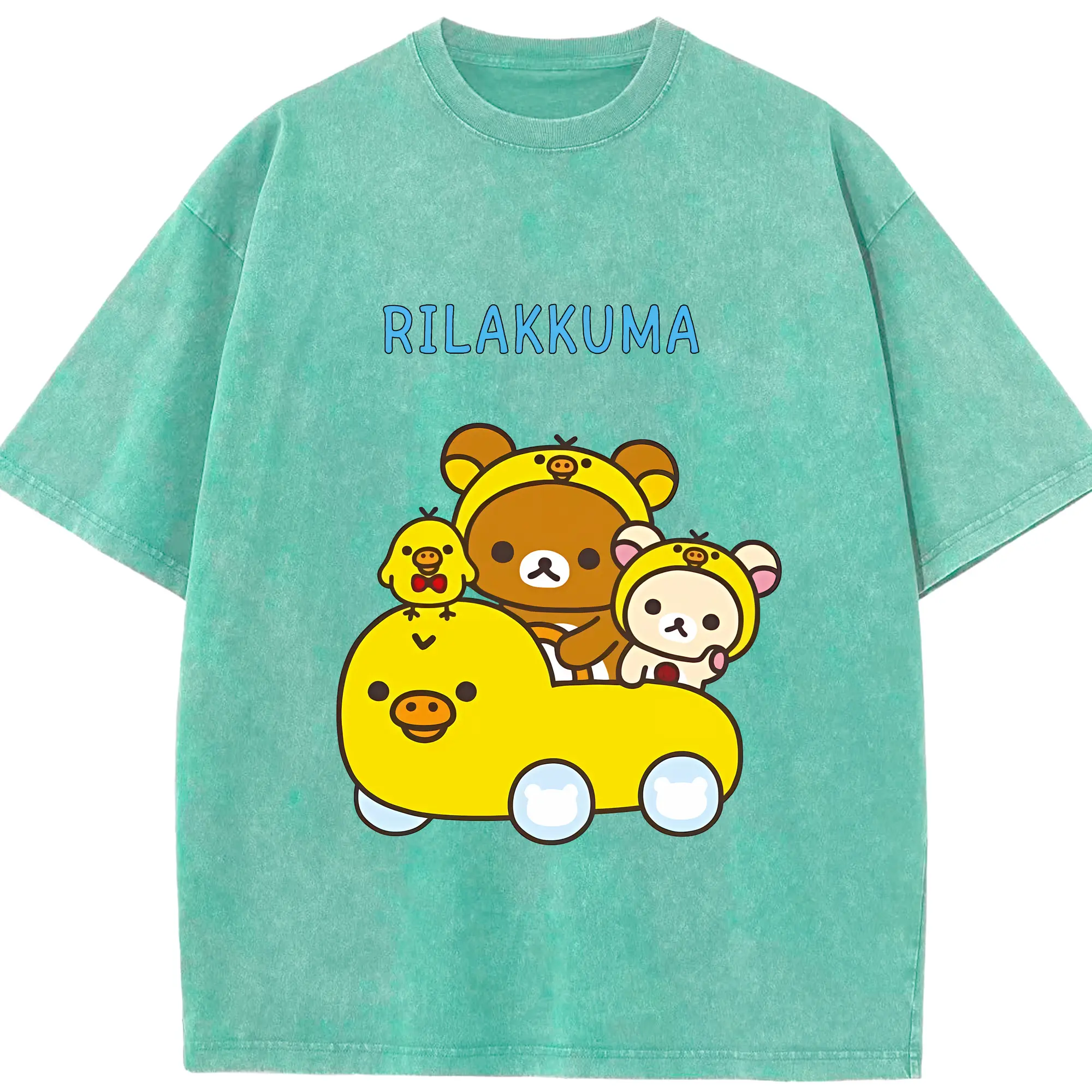 リラックマ (Rilakkuma) グッズ キイロイトリ (Kiiroitori) - 綿100% ヴィンテージ風 半袖Tシャツ ・ 背面プリント ・ 柔らか肌触り ・ 通気性 快適 ・ スポーツ カジュアル 外出用
