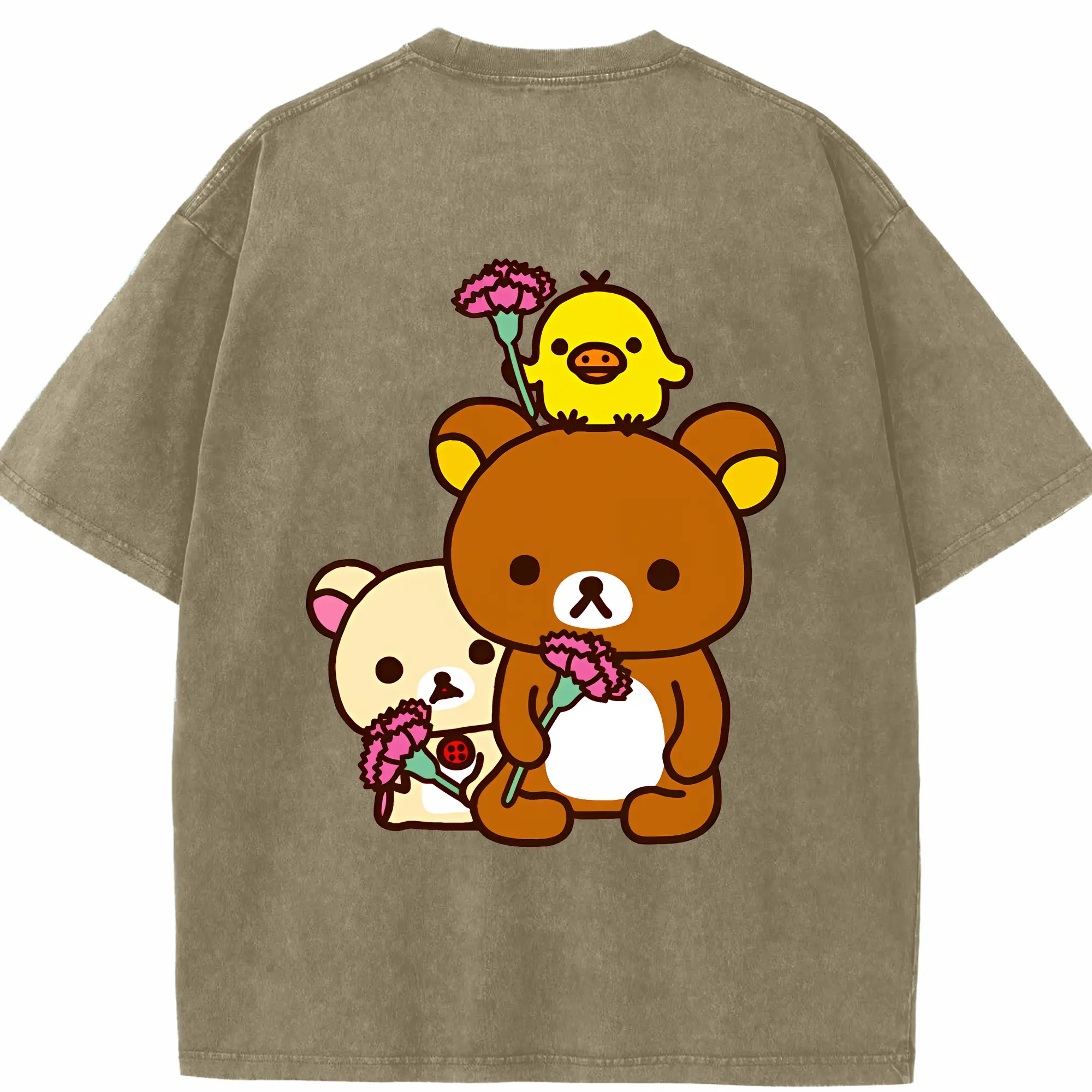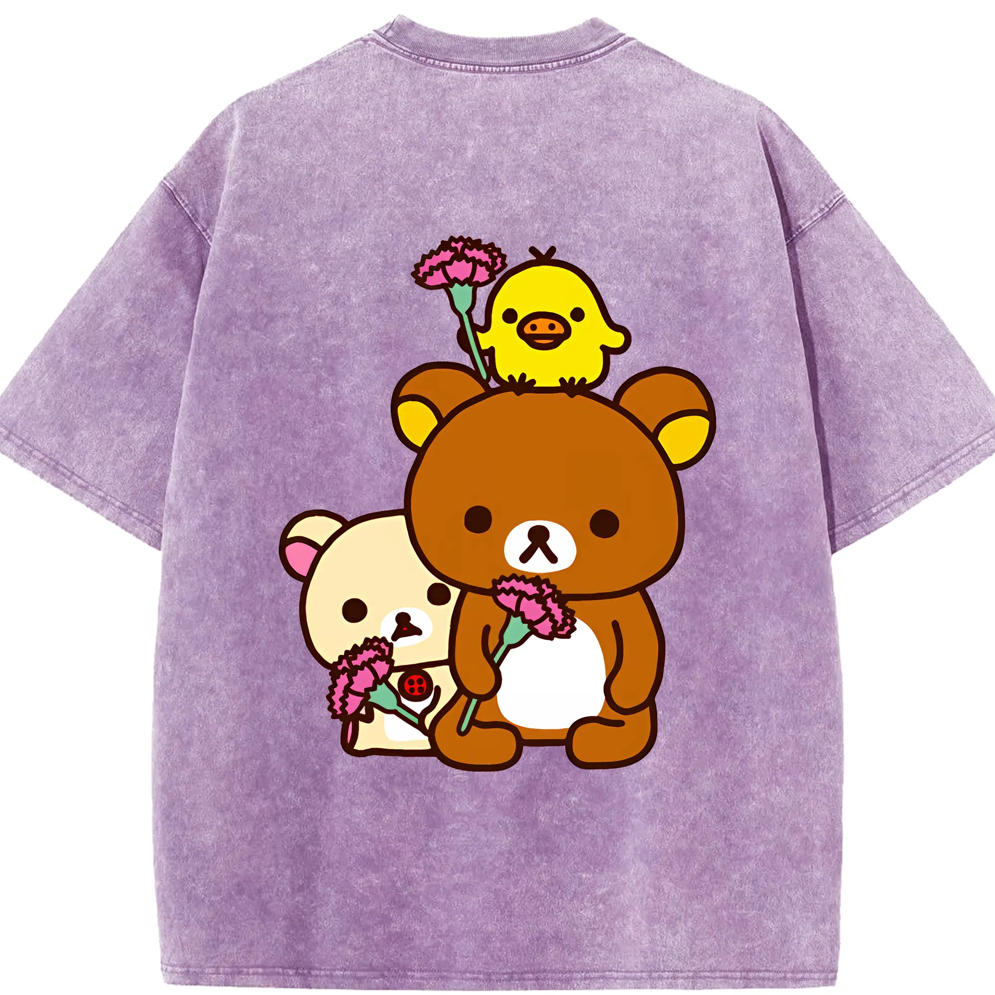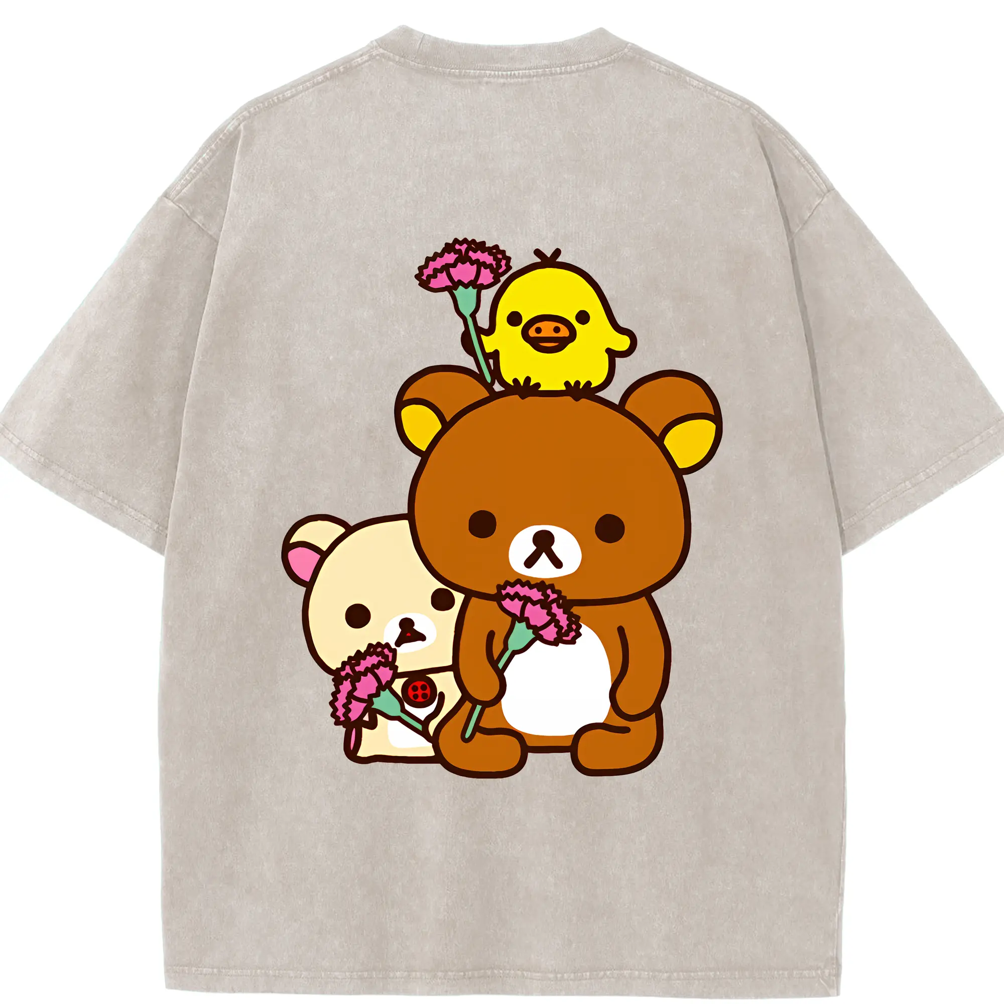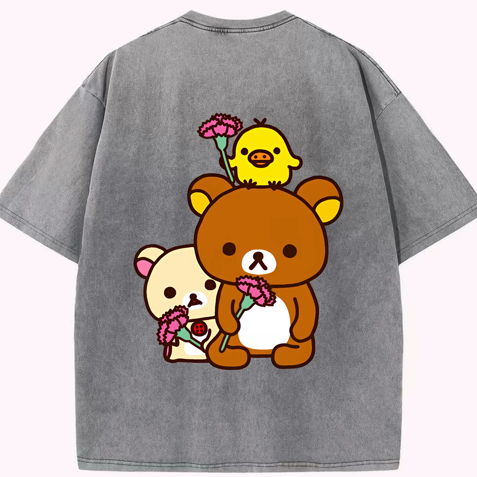 リラックマ (Rilakkuma) グッズ キイロイトリ (Kiiroitori) - 綿100% 半袖Tシャツ ・ バックプリント ・ 快適 通気性 ・ 日常使い 散歩 スポーツ用