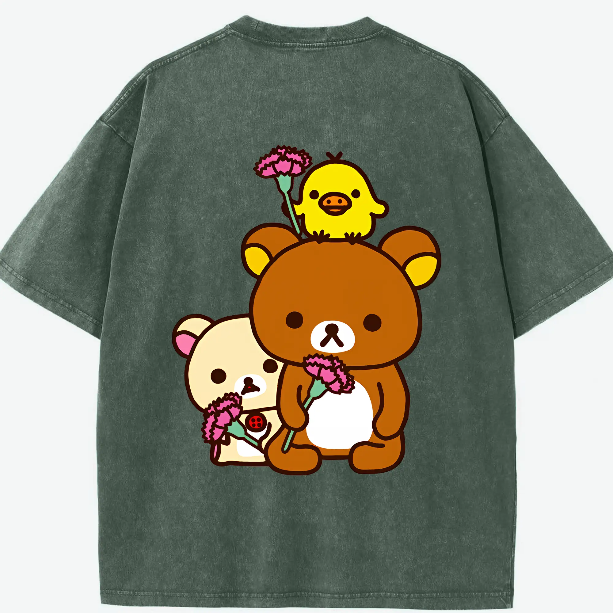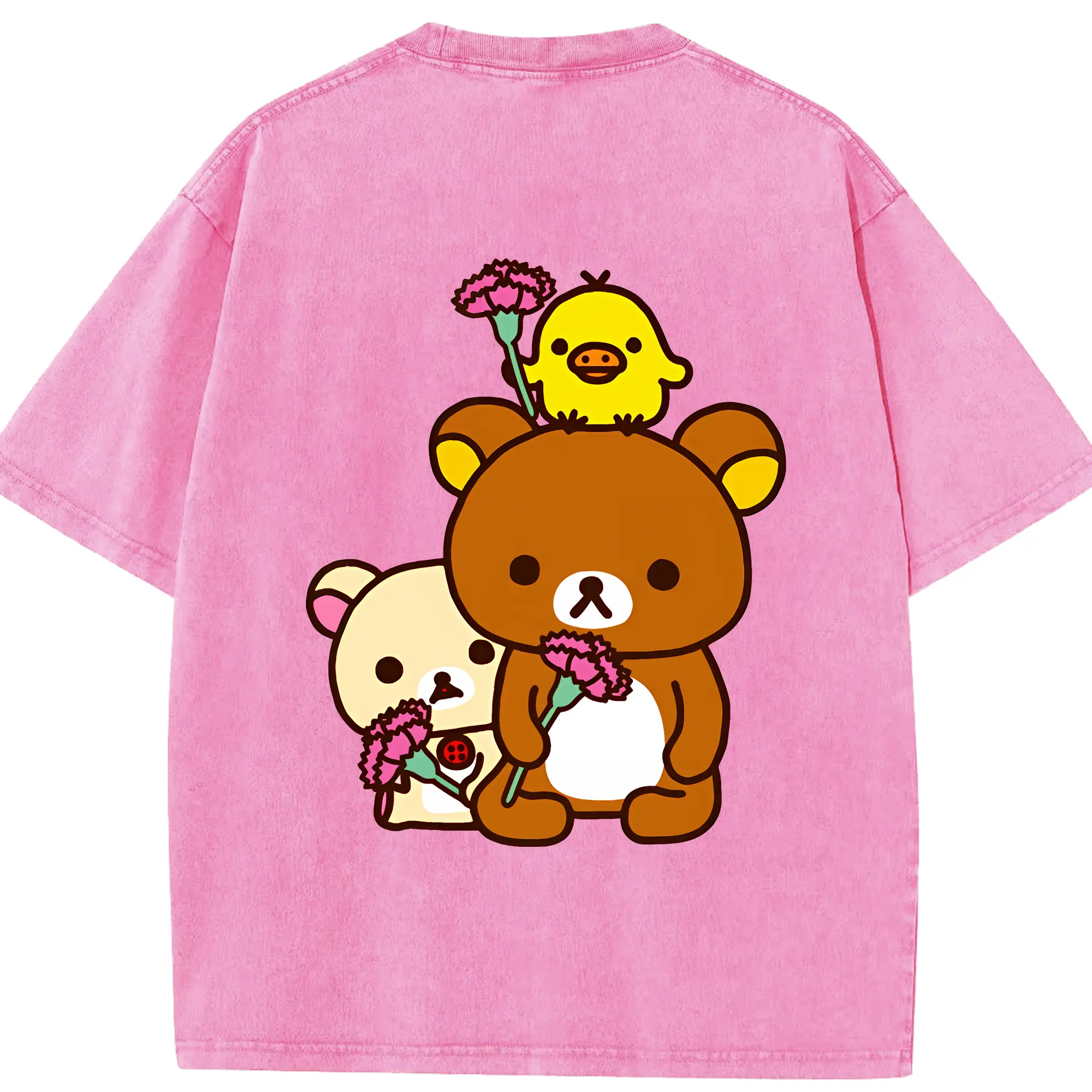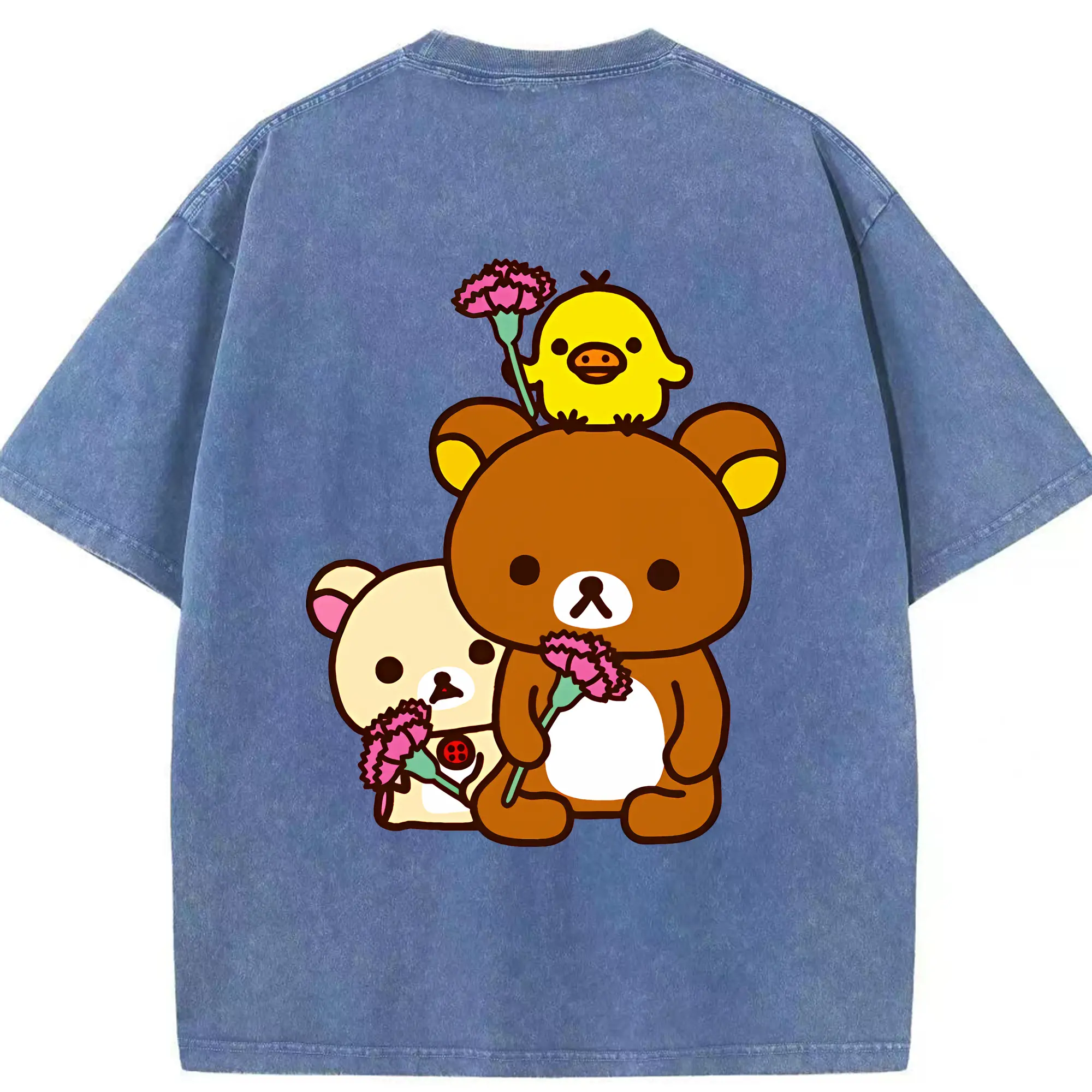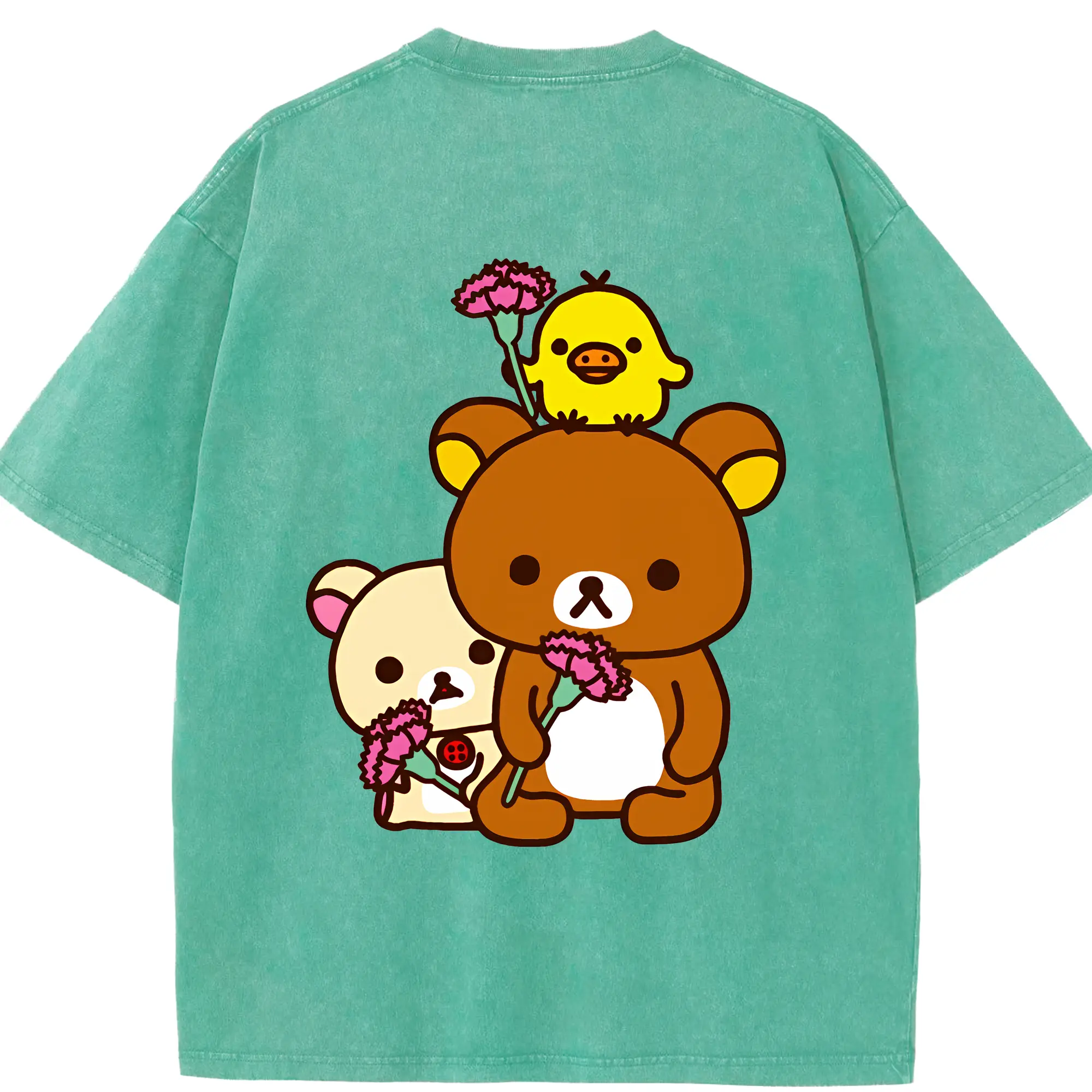 リラックマ (Rilakkuma) グッズ キイロイトリ (Kiiroitori) - 綿100% 半袖Tシャツ ・ バックプリント ・ 快適 通気性 ・ 日常使い 散歩 スポーツ用
