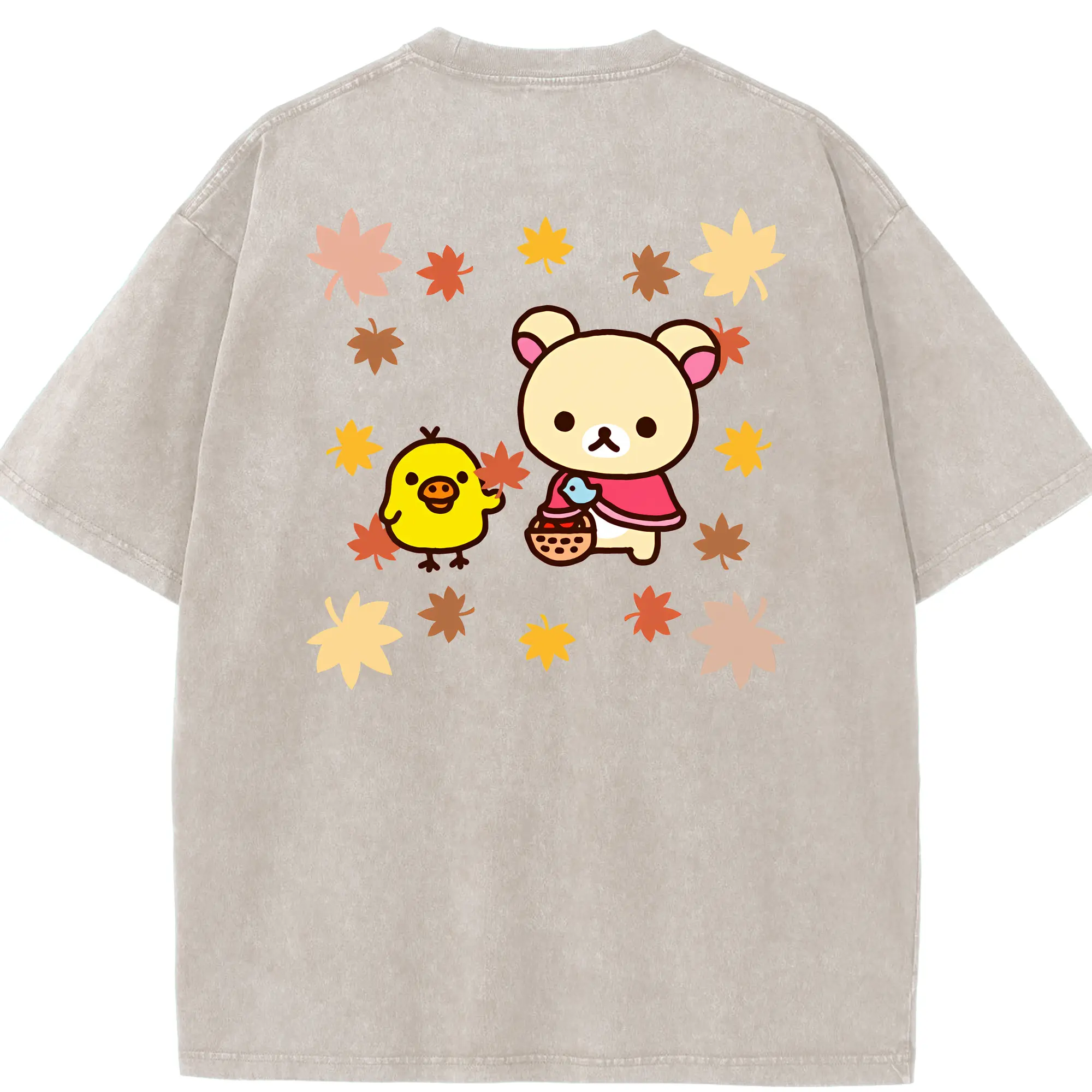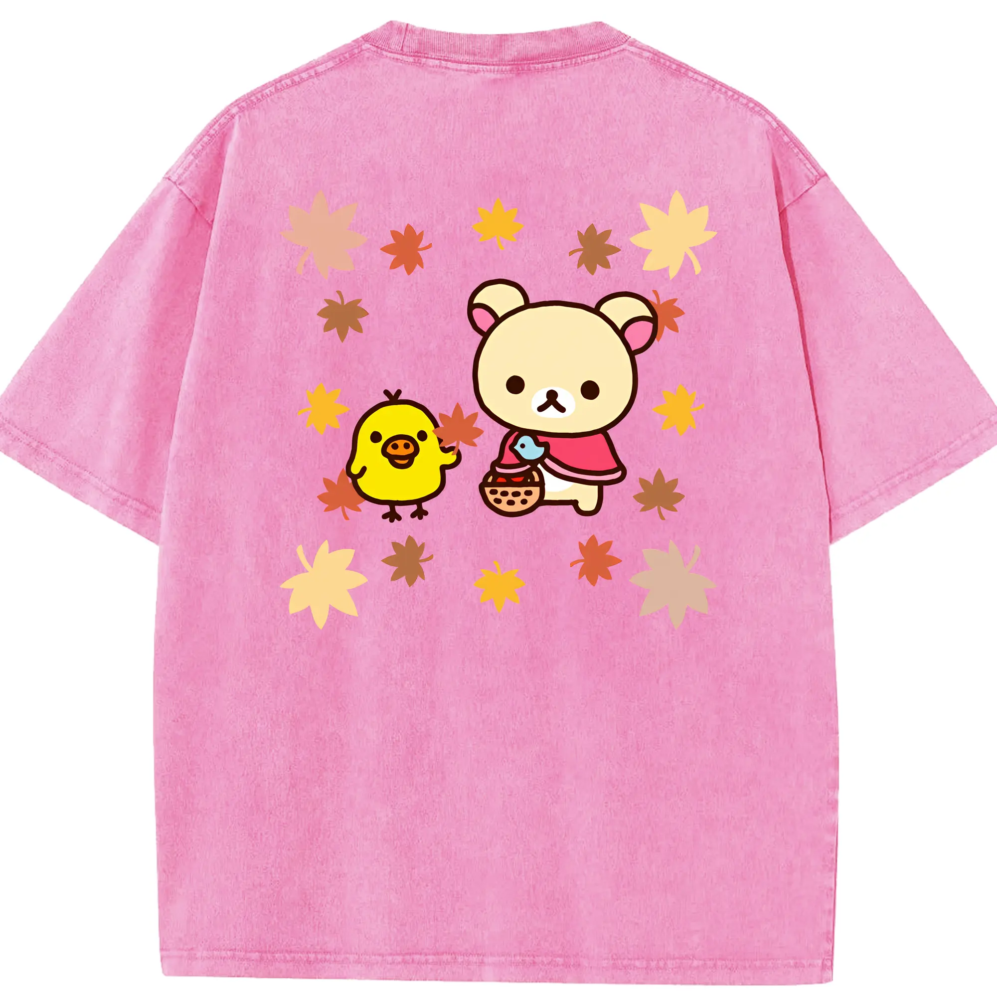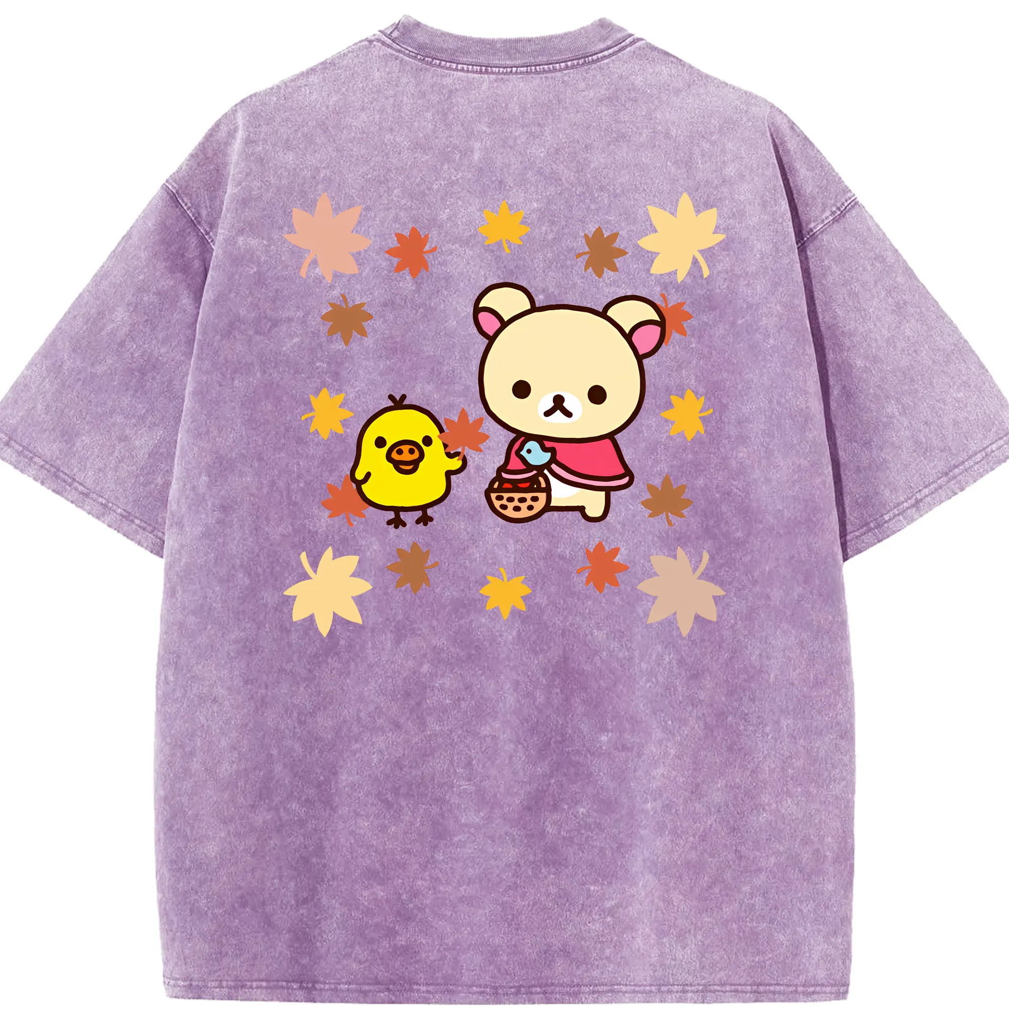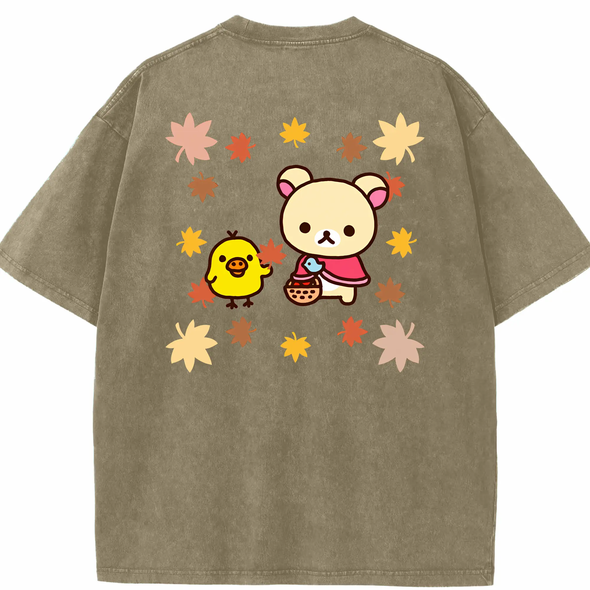 リラックマ (Rilakkuma) グッズ キイロイトリ (Kiiroitori) - 綿100% 半袖Tシャツ ・ バックプリント ・ 快適 通気性 ・ 日常使い 散歩 スポーツ用