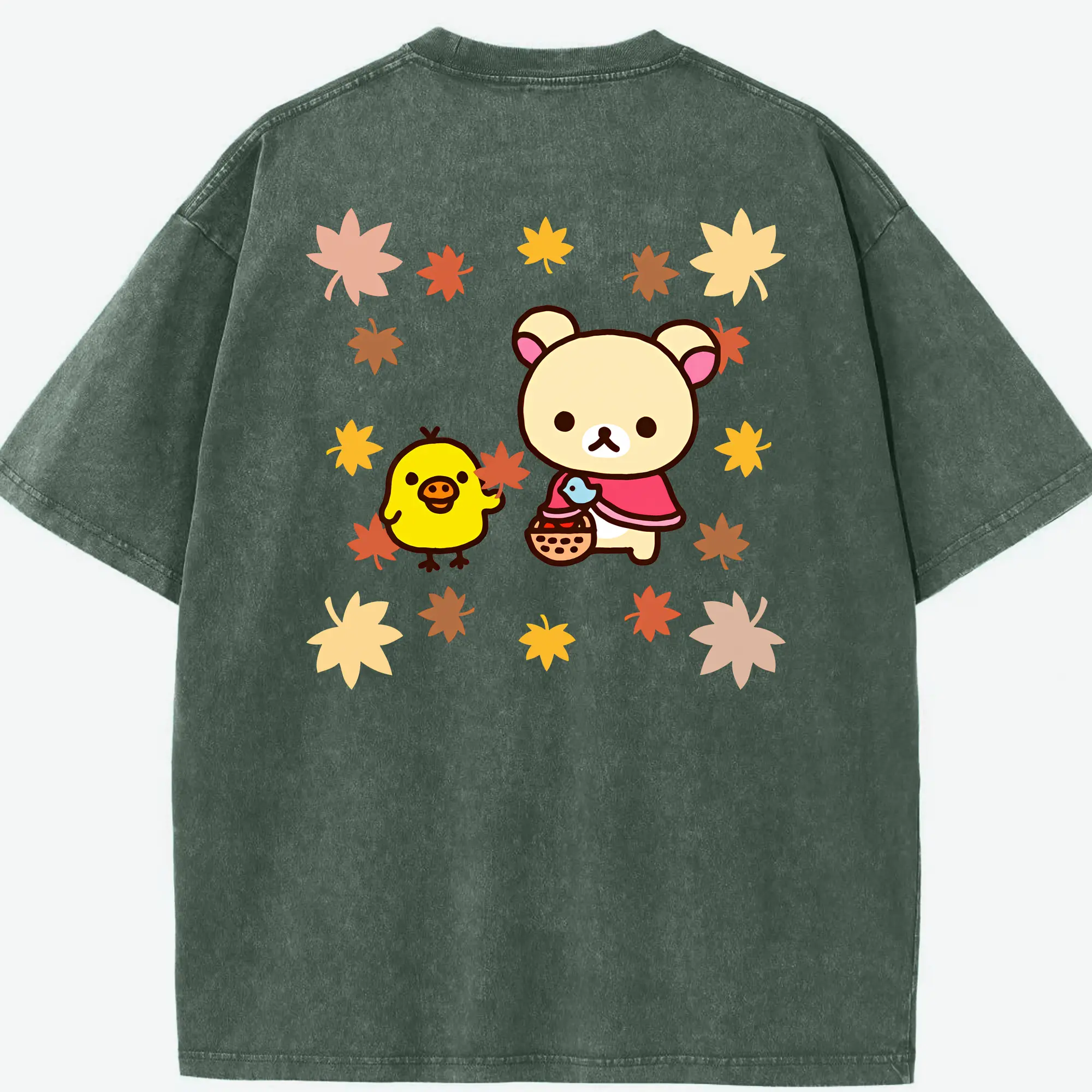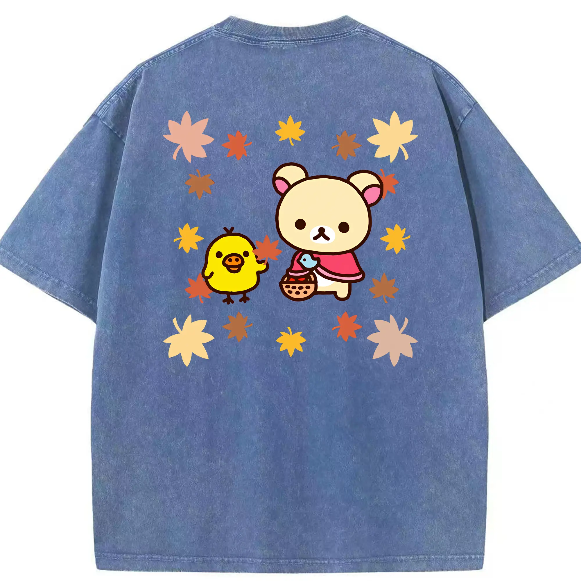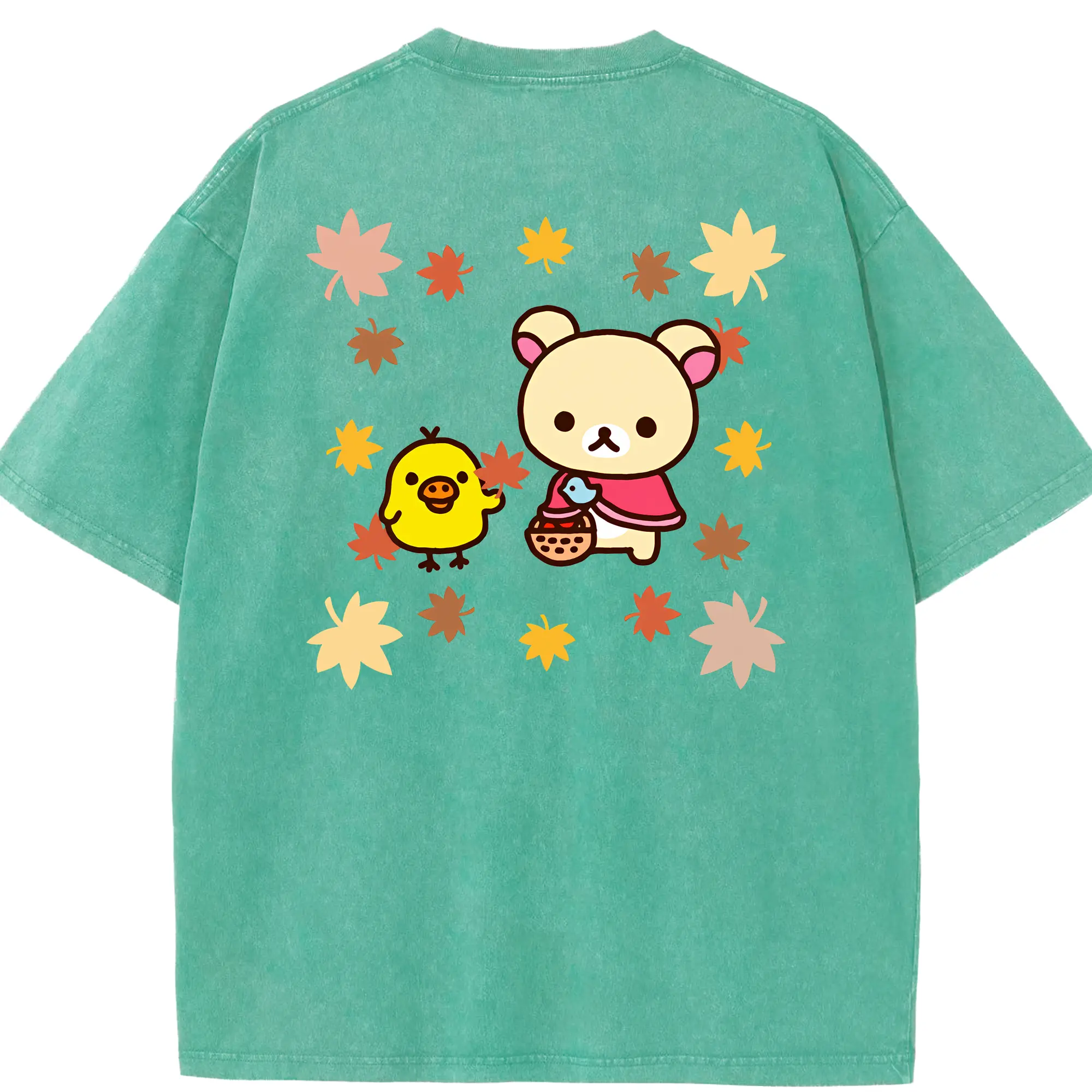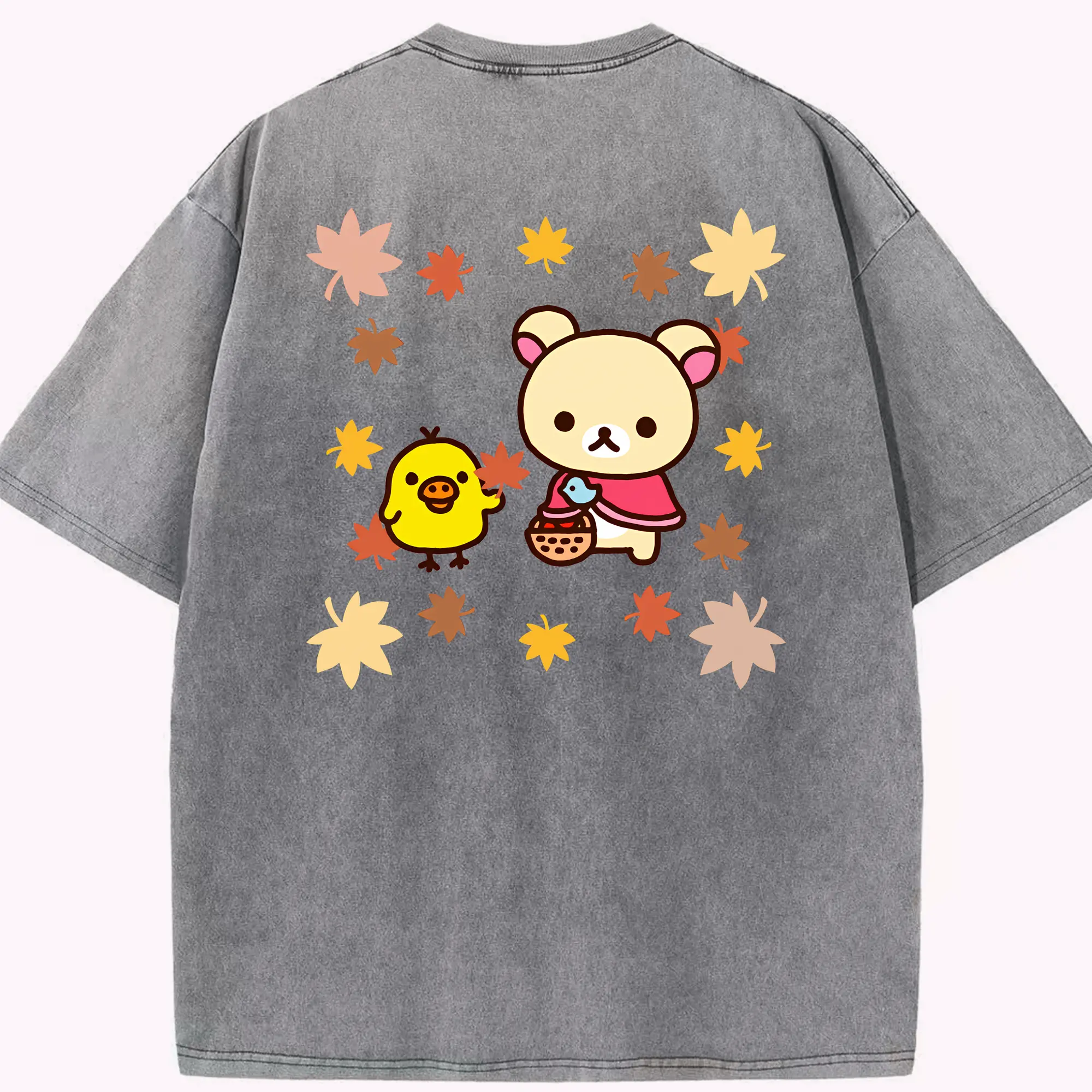 リラックマ (Rilakkuma) グッズ キイロイトリ (Kiiroitori) - 綿100% 半袖Tシャツ ・ バックプリント ・ 快適 通気性 ・ 日常使い 散歩 スポーツ用